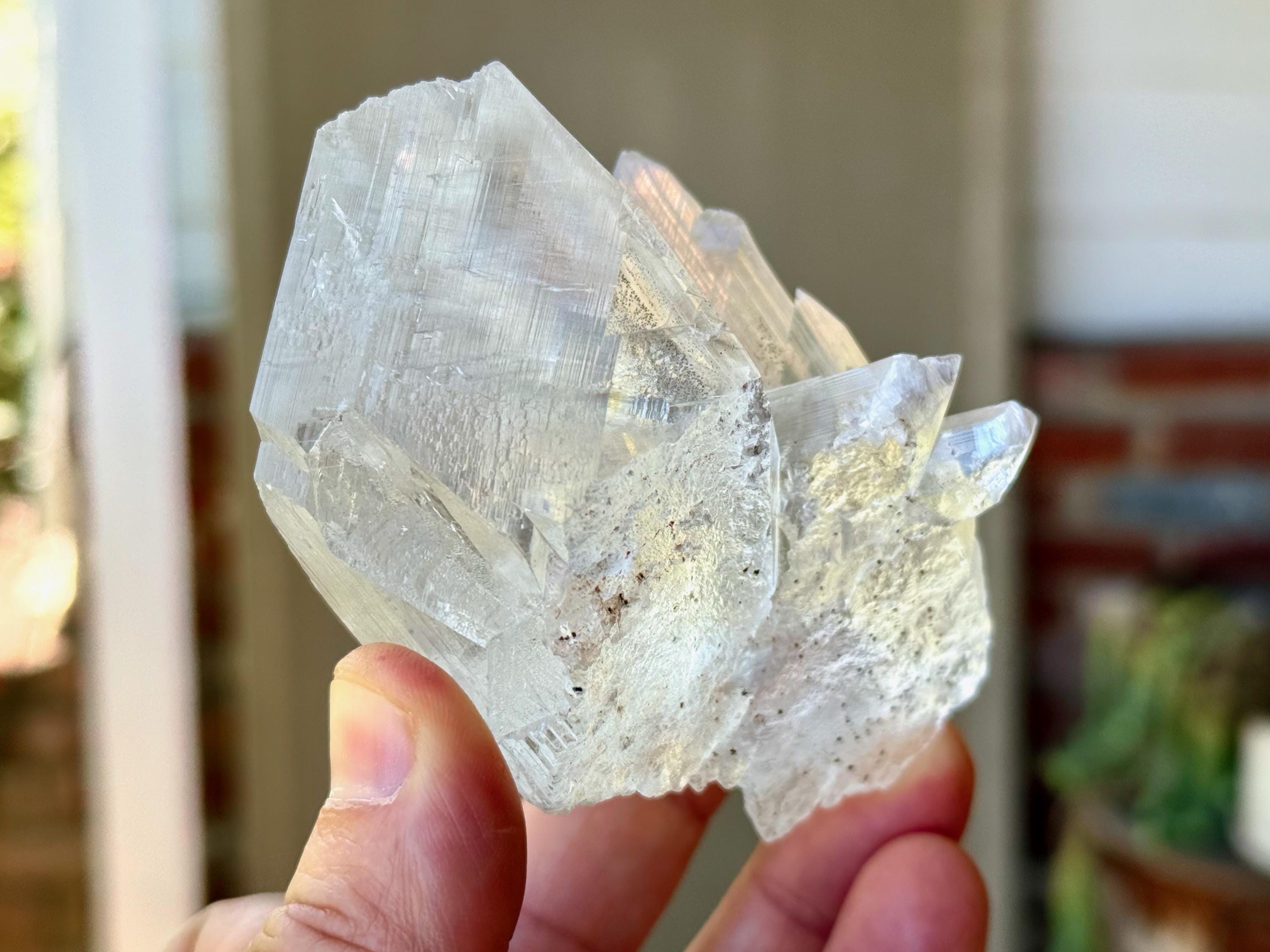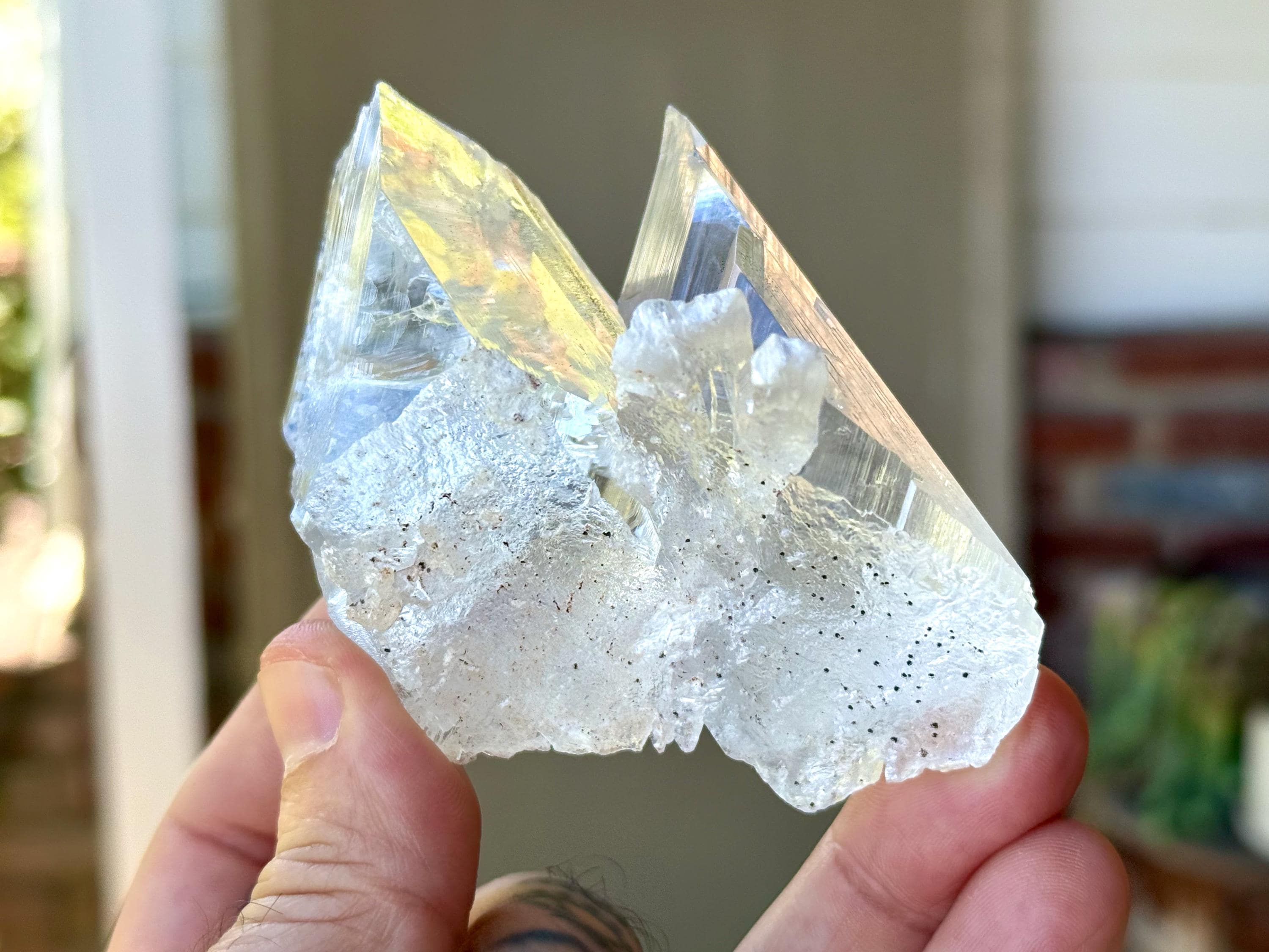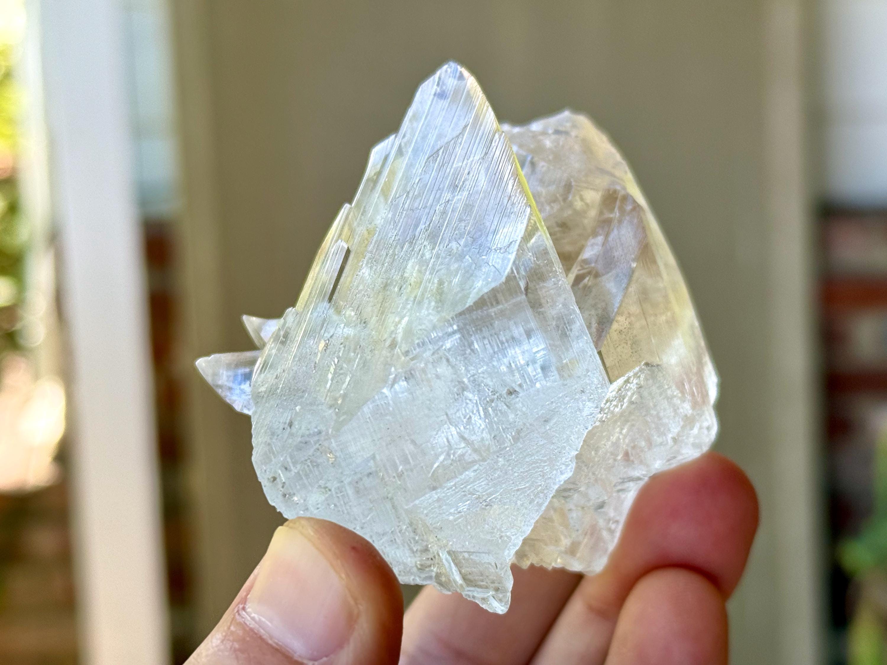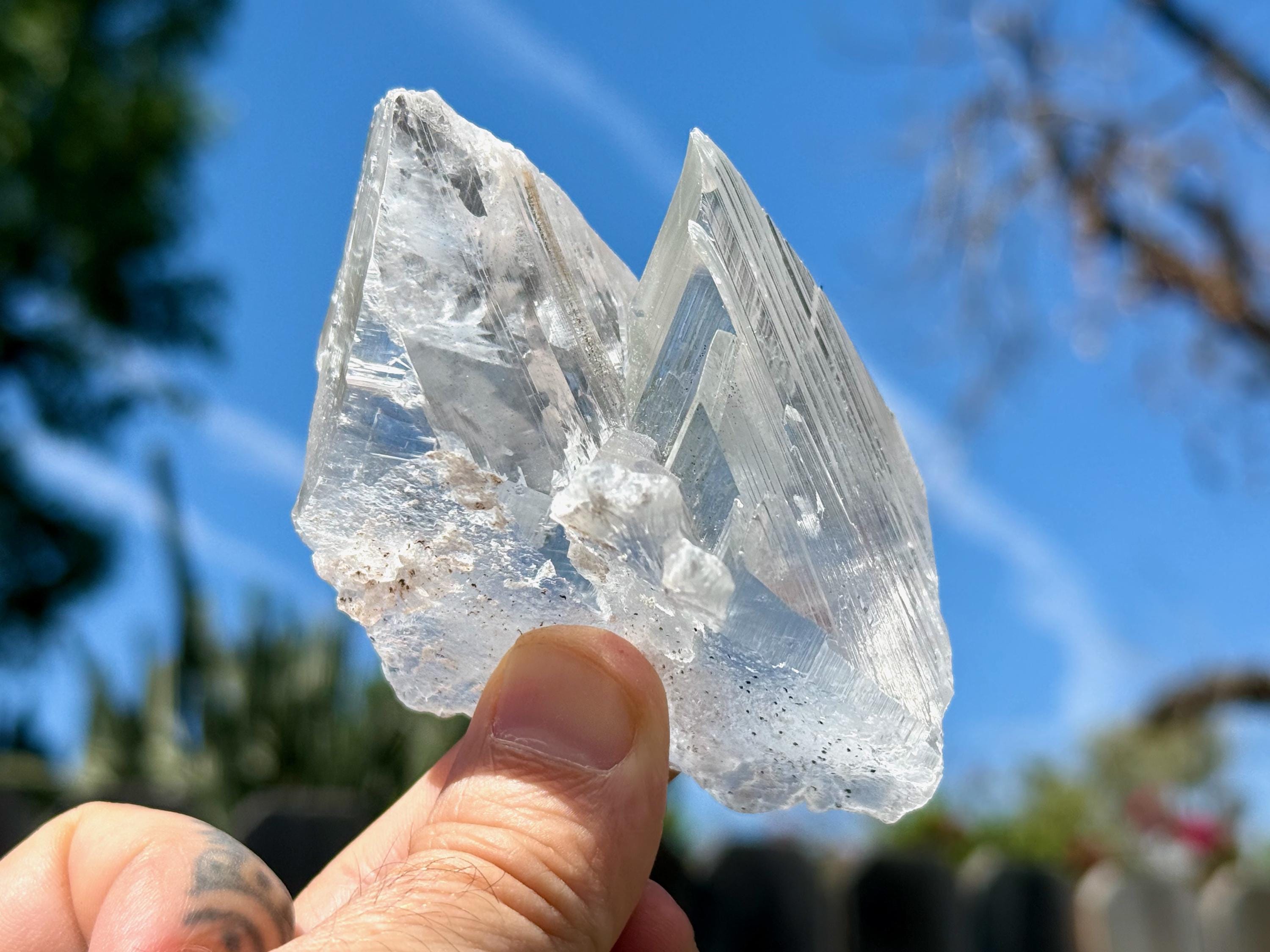 Water clear clarity and brilliant luster to this exquisite Naica Selenite in a Tantric Twin formation. This crystal is a superfine example of the quality we've come to appreciate from the Naica Mine, with a stable crystalline formation and beautiful vertical grooves.