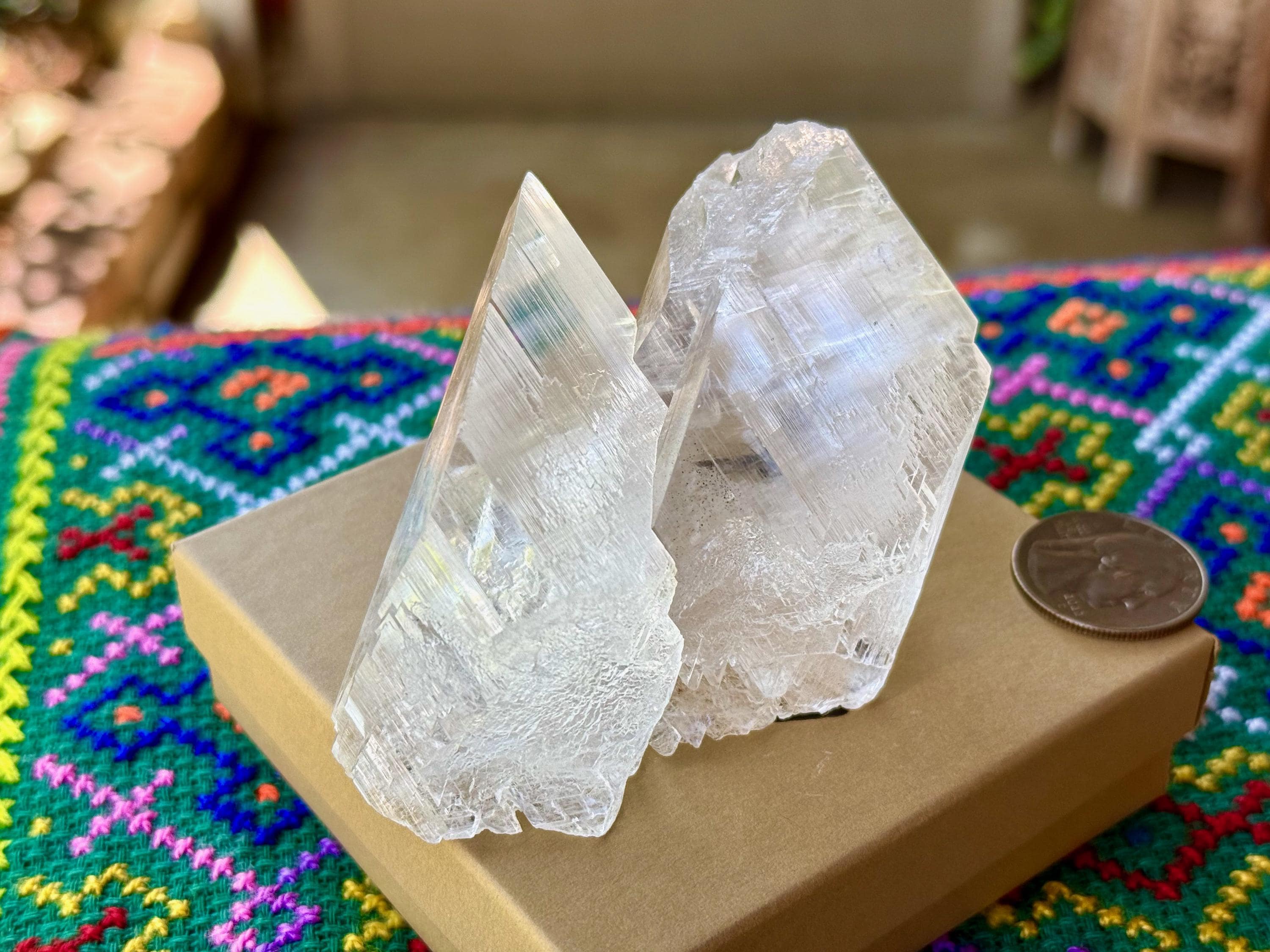 The Selenite found in the Naica Mine is considered to be some of the finest Selenite in the world, renowned for its clarity and luster. Selenite is esteemed for its purification and cleansing powers, as well as its ability to clear blockages and densities in the energy field.