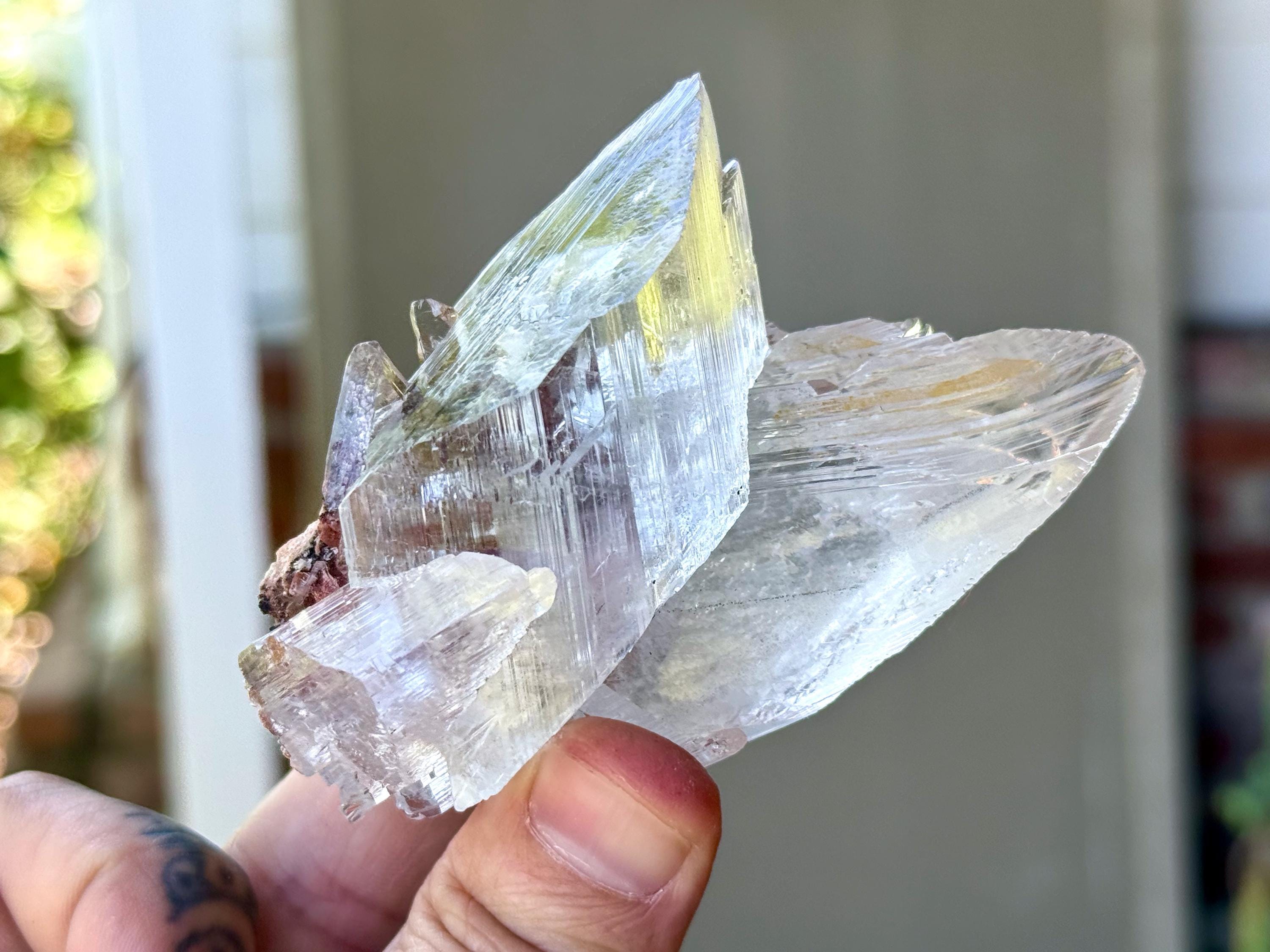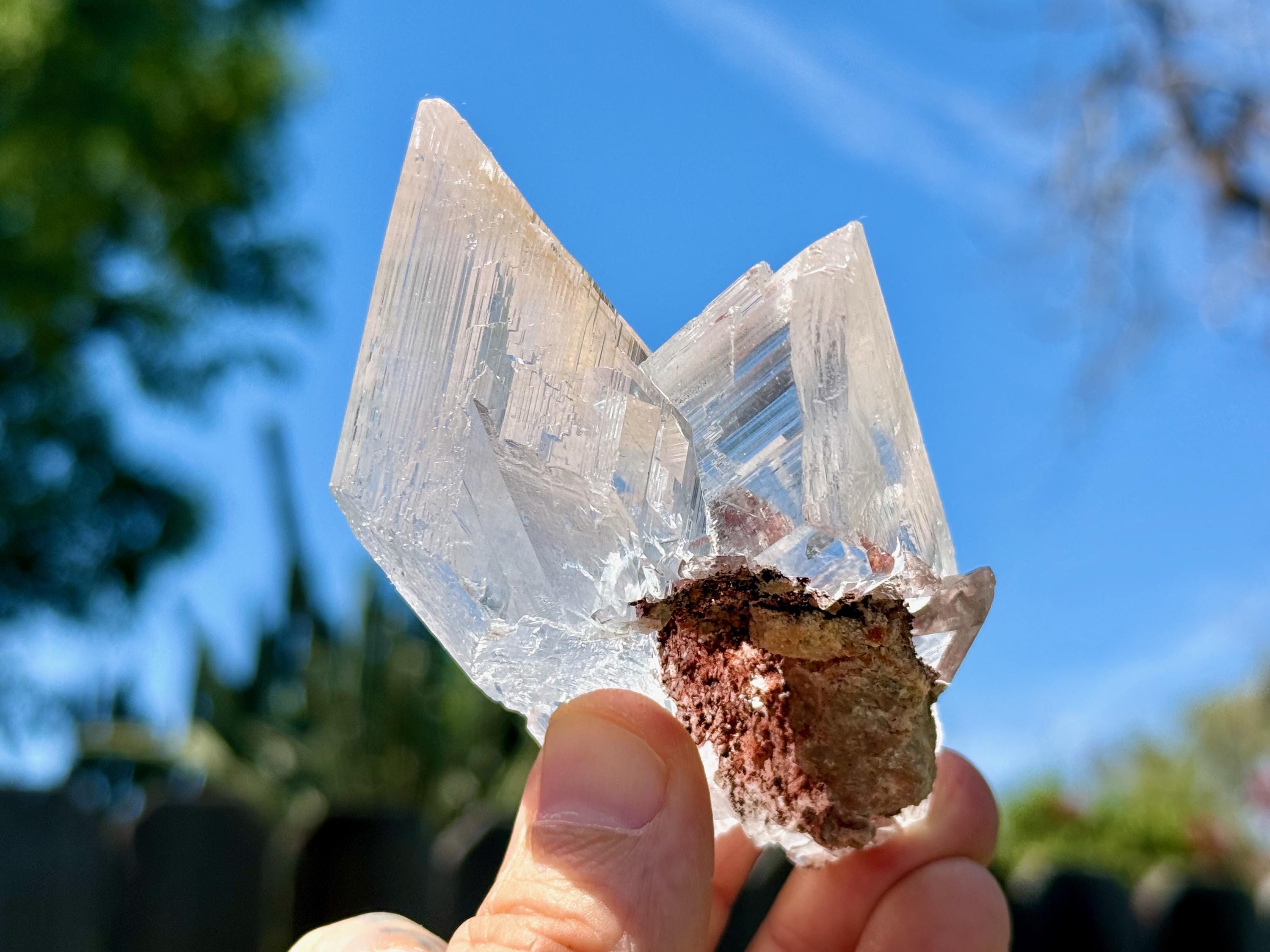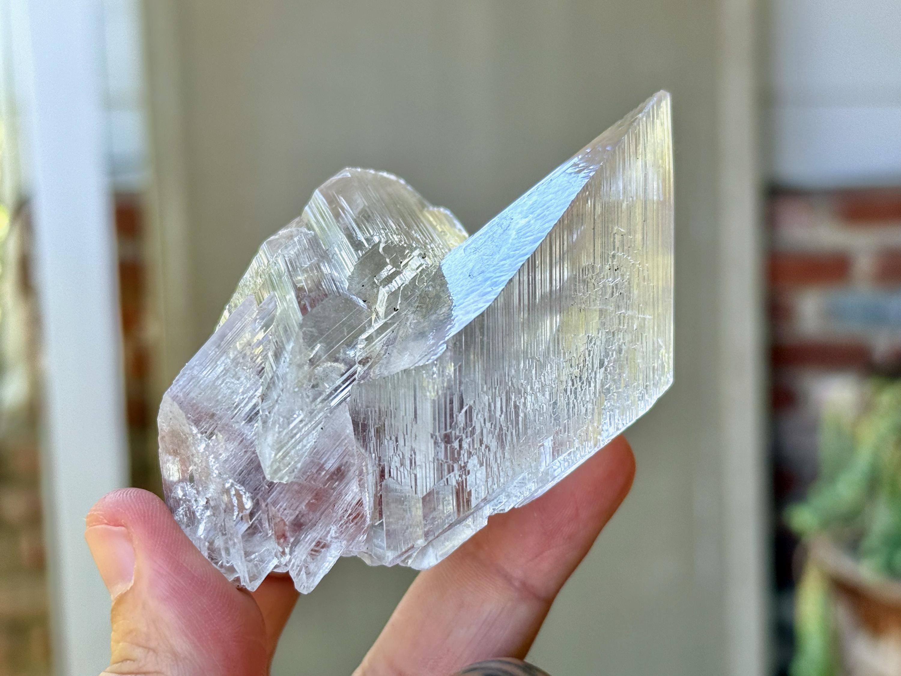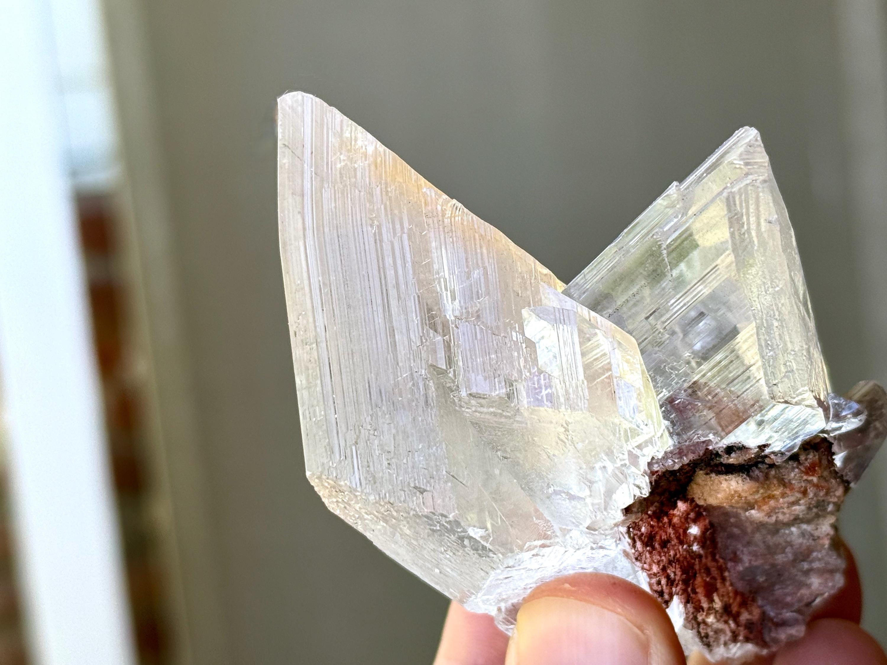 Water clear clarity and brilliant luster to this exquisite Naica Selenite in a Twin Flame formation (see more on this below). This crystal is a superfine example of the quality we've come to appreciate from the Naica Mine, with a stable crystalline formation and beautiful vertical grooves.