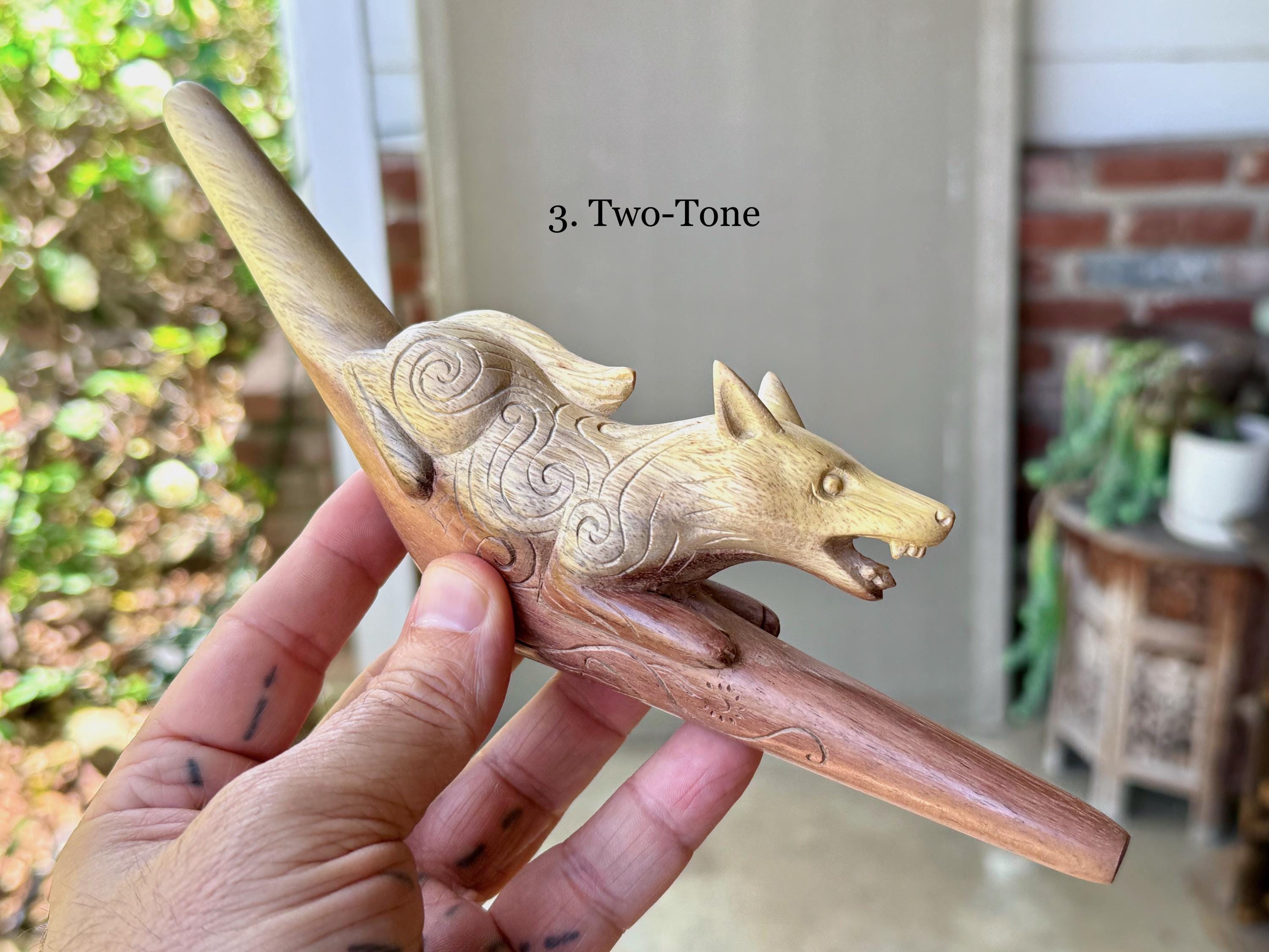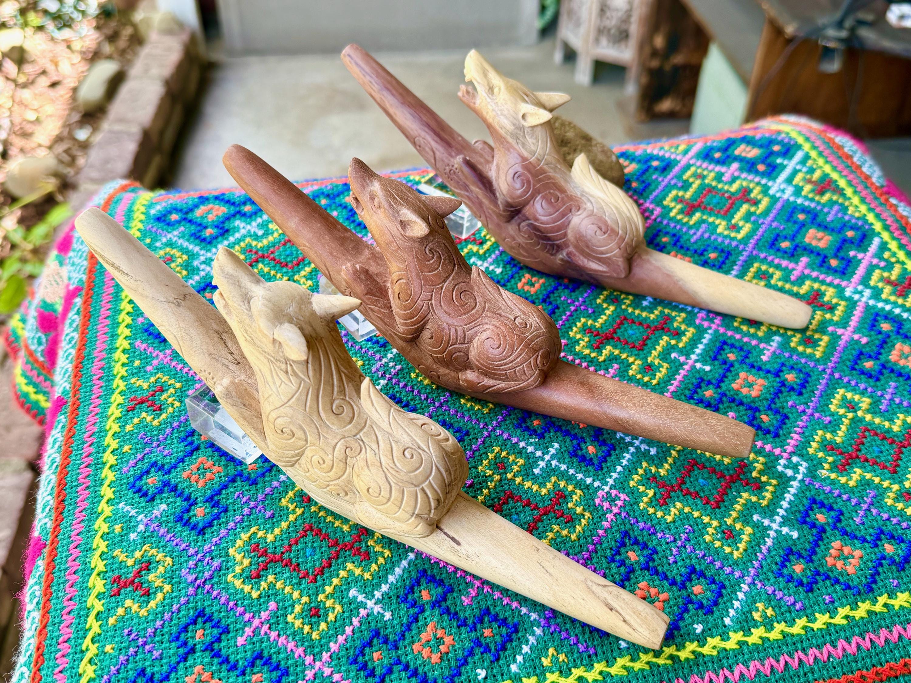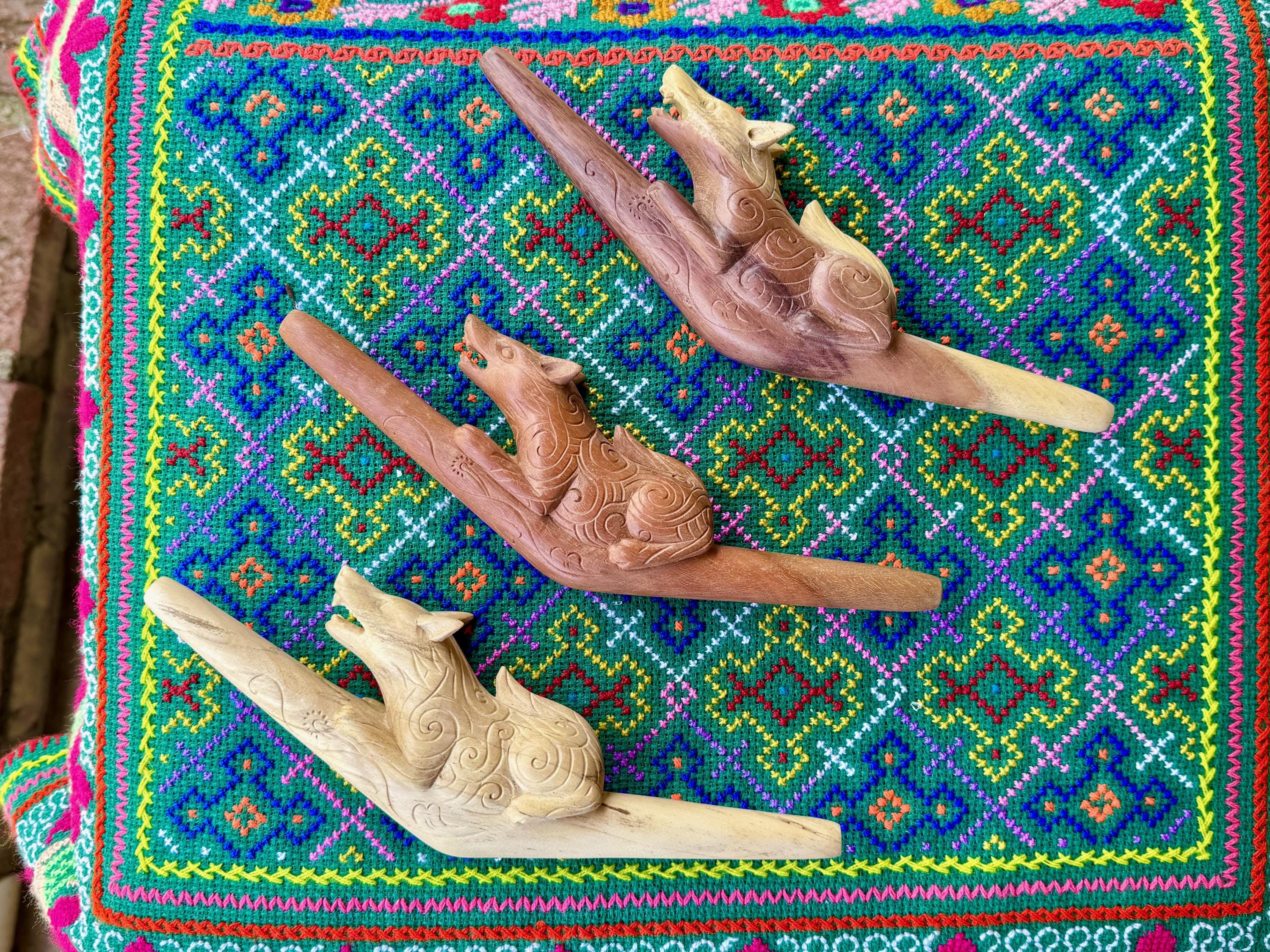 These beautiful Wolf Tepi Pipes — for administering hapé — were hand carved from native tropical hardwoods. Each selection is numbered, simply select your preference from the dropdown menu.