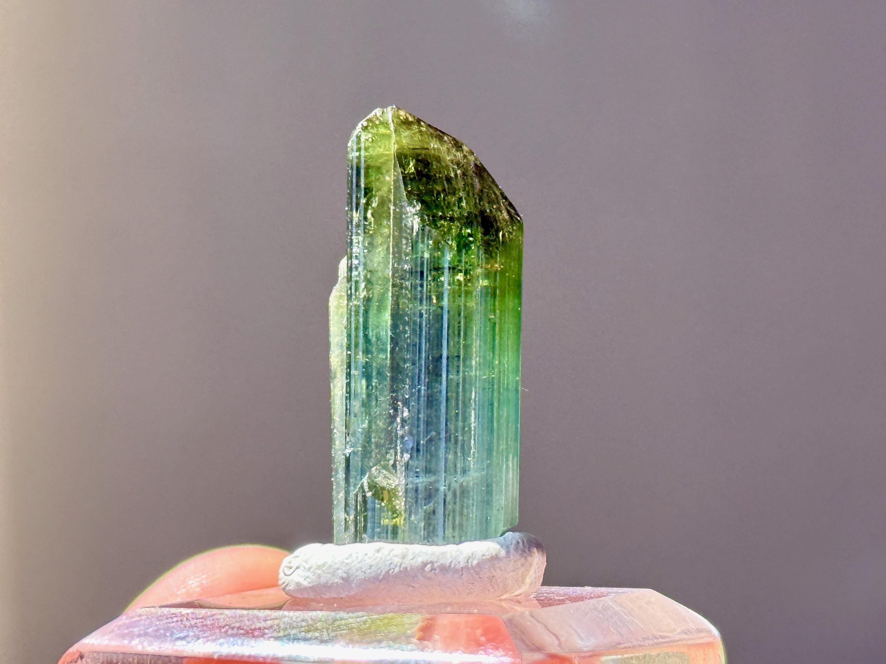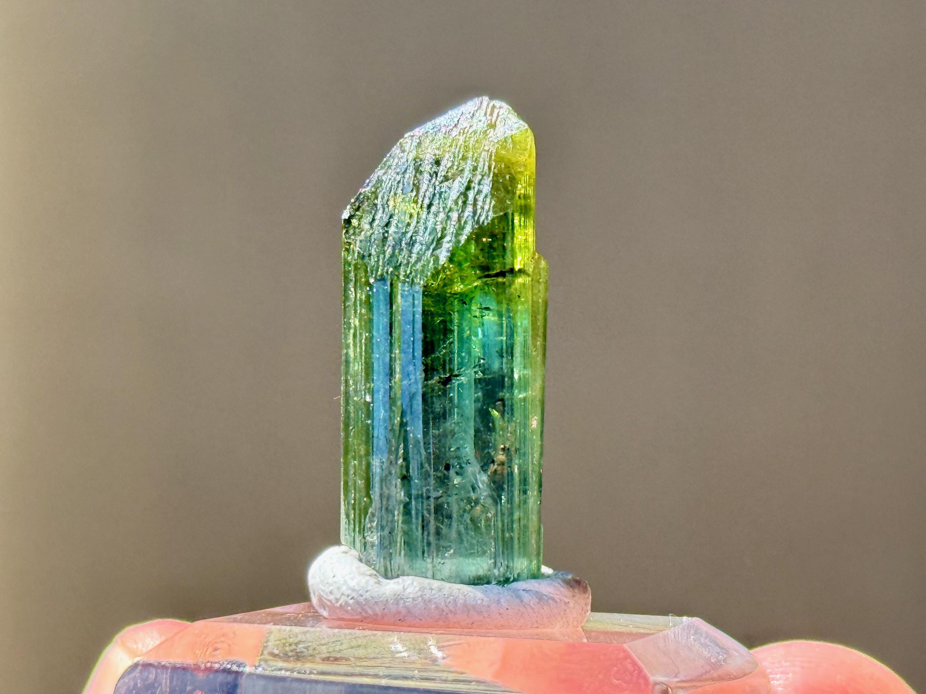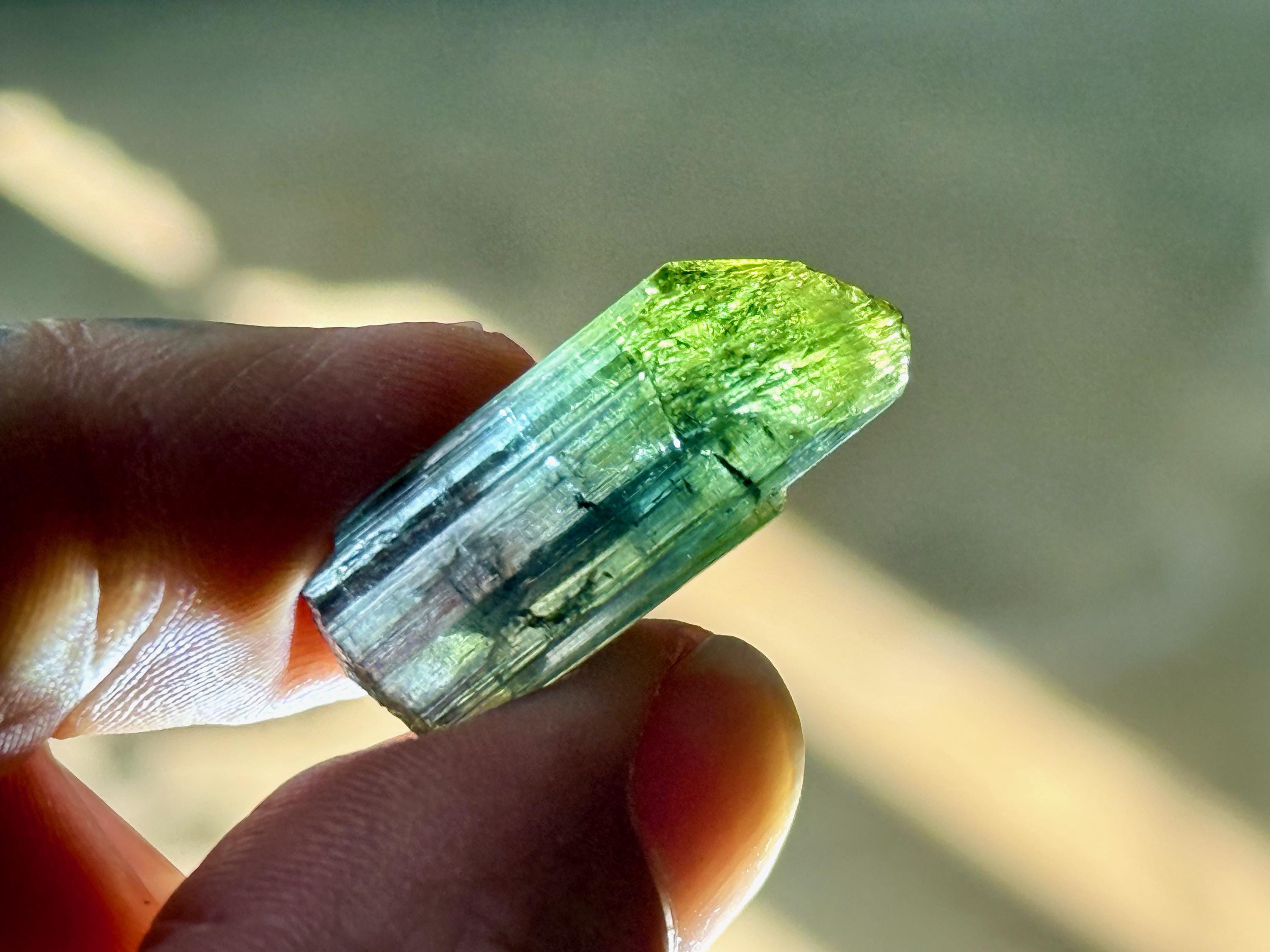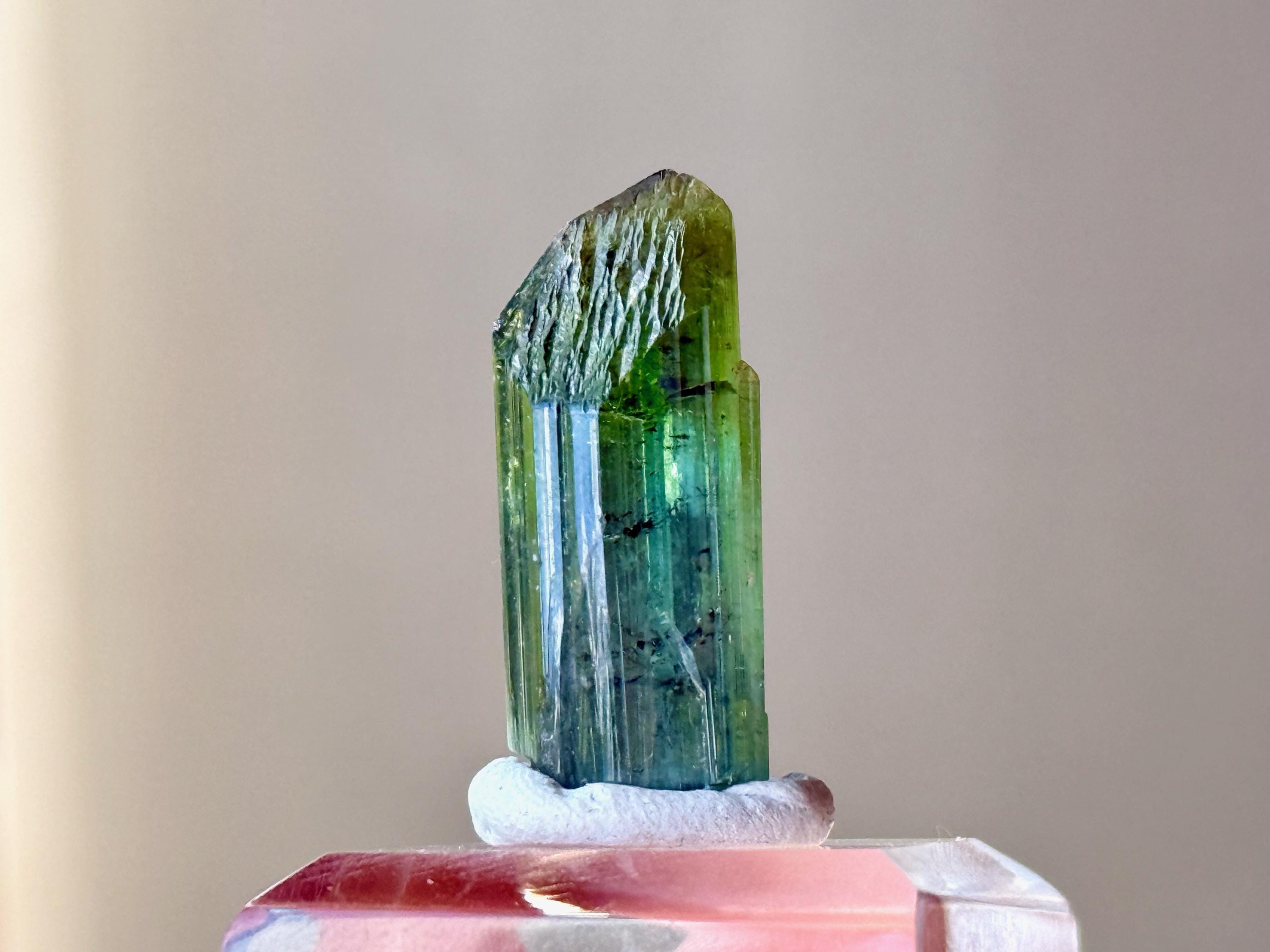 This exquisite Bicolor Tourmaline comes from a 2025 find in Coronel Murta, Minas Gerais, Brazil. This crystal is all-natural, with blue and green hues and a true termination.