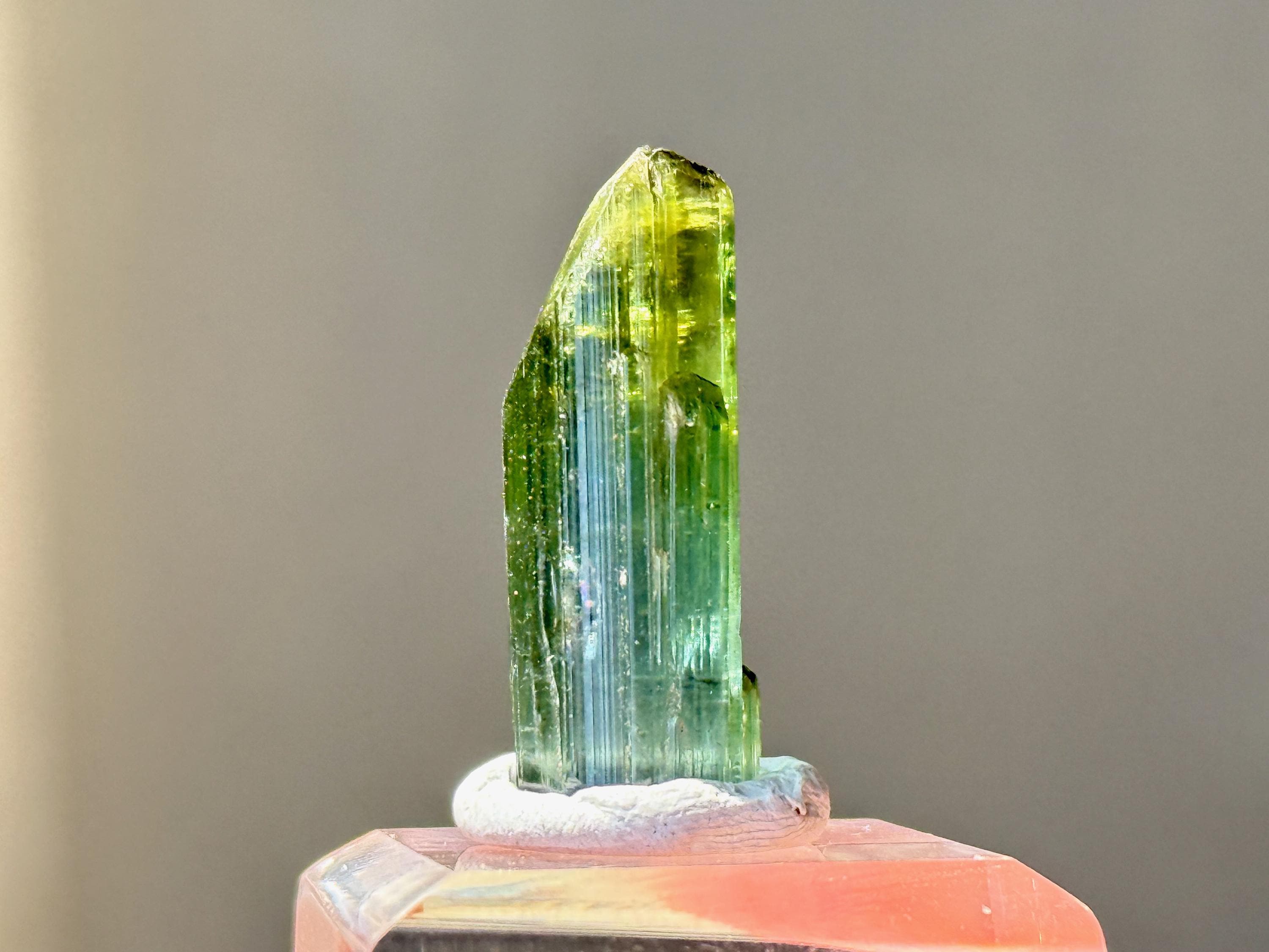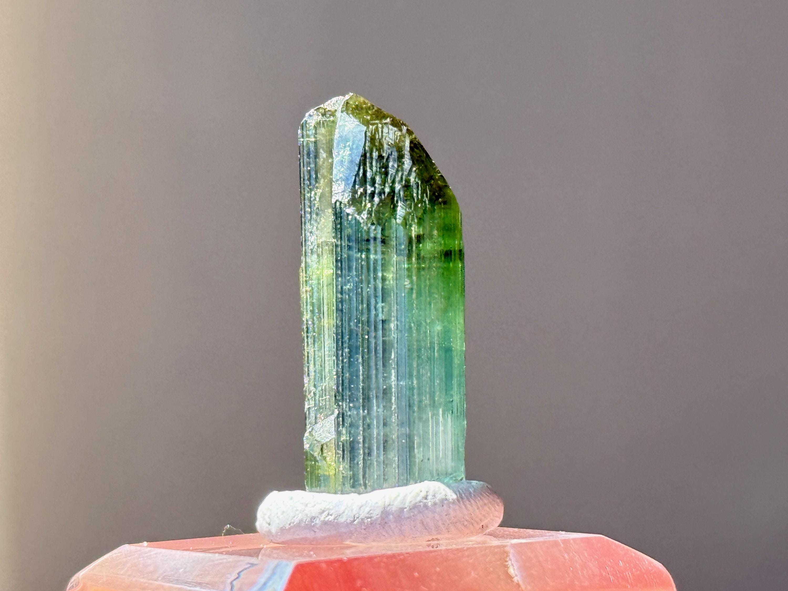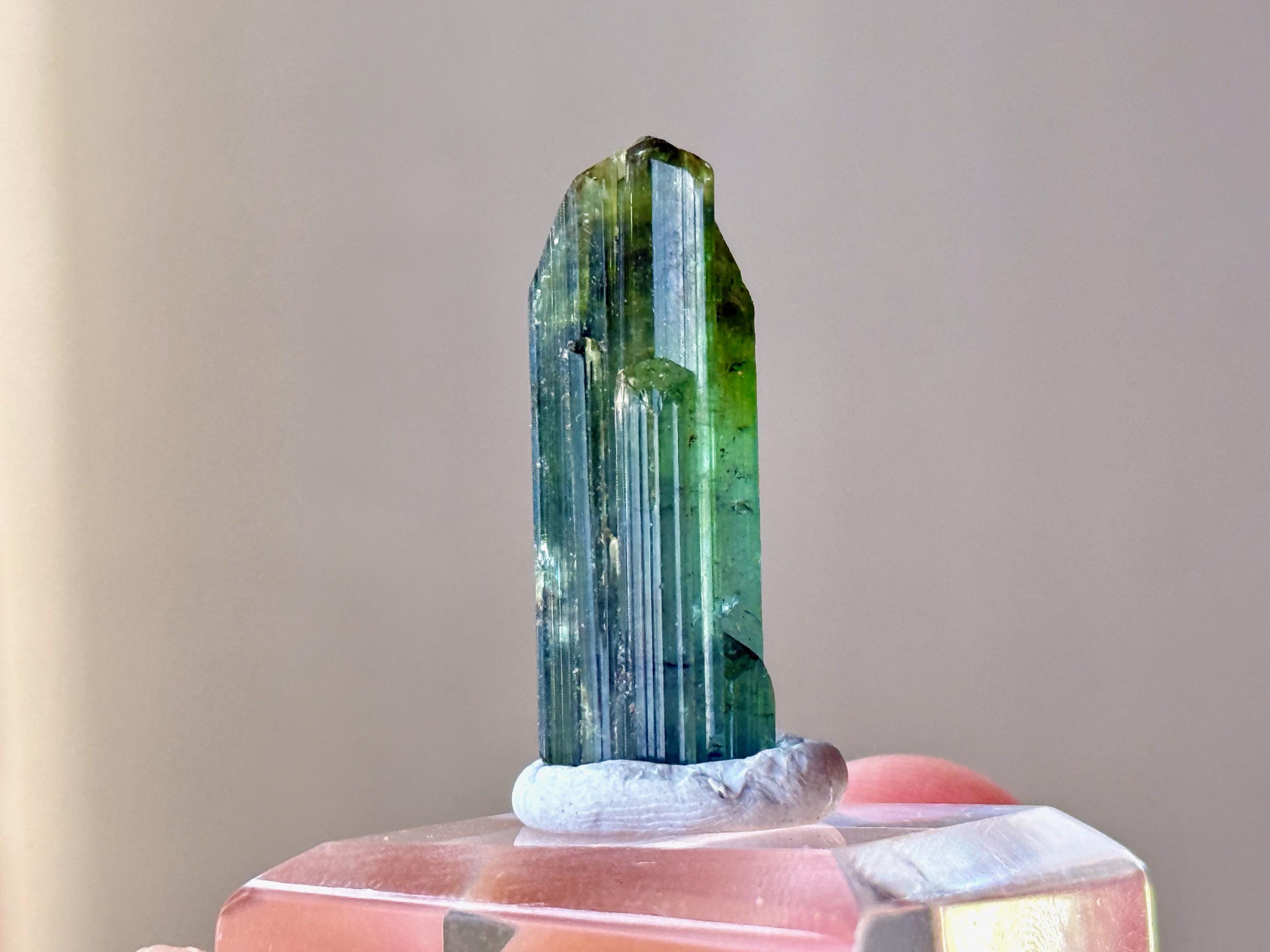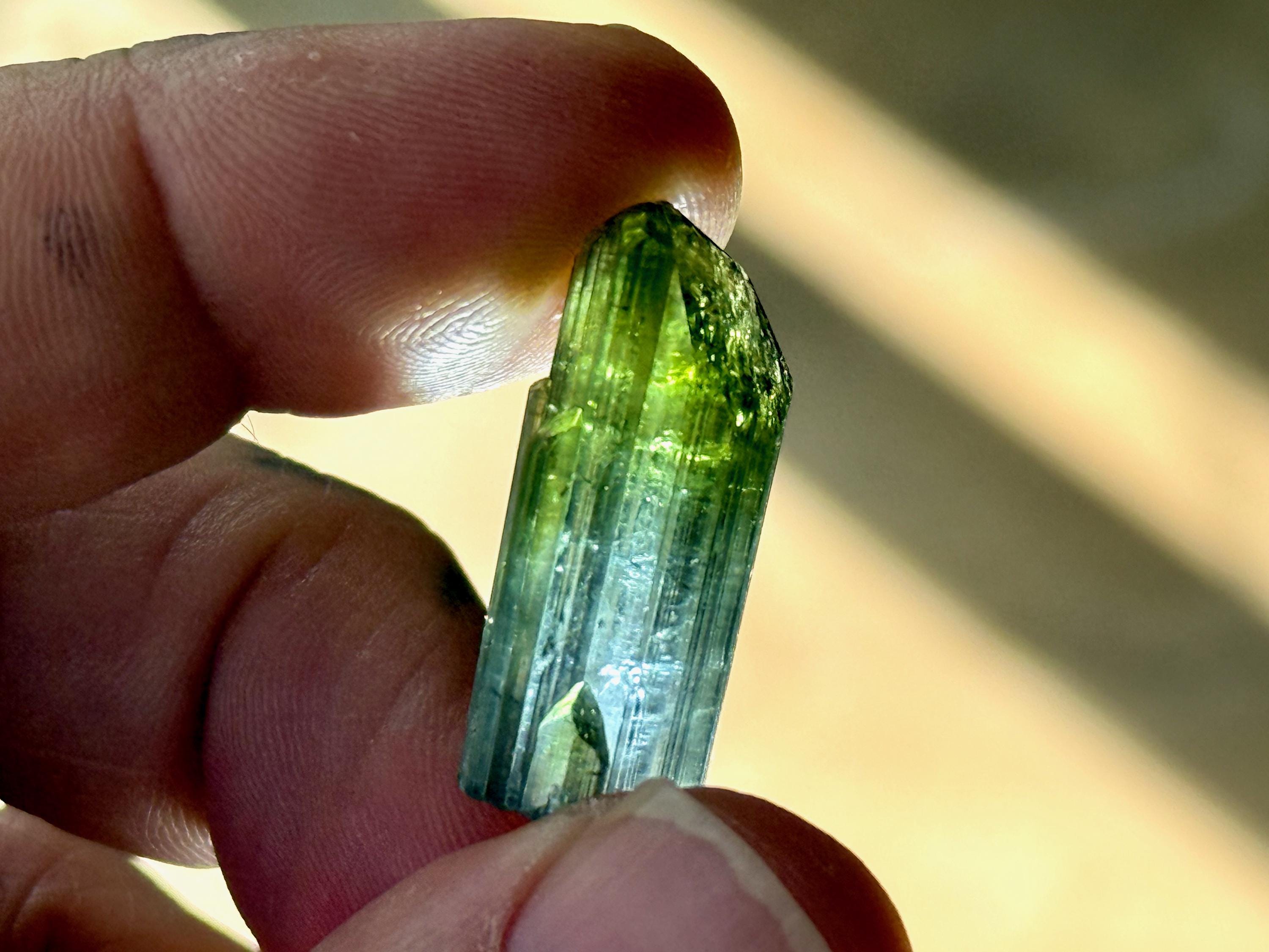 This exquisite Bicolor Tourmaline comes from a 2025 find in Coronel Murta, Minas Gerais, Brazil. This crystal is all-natural, with blue and green hues and a true termination.