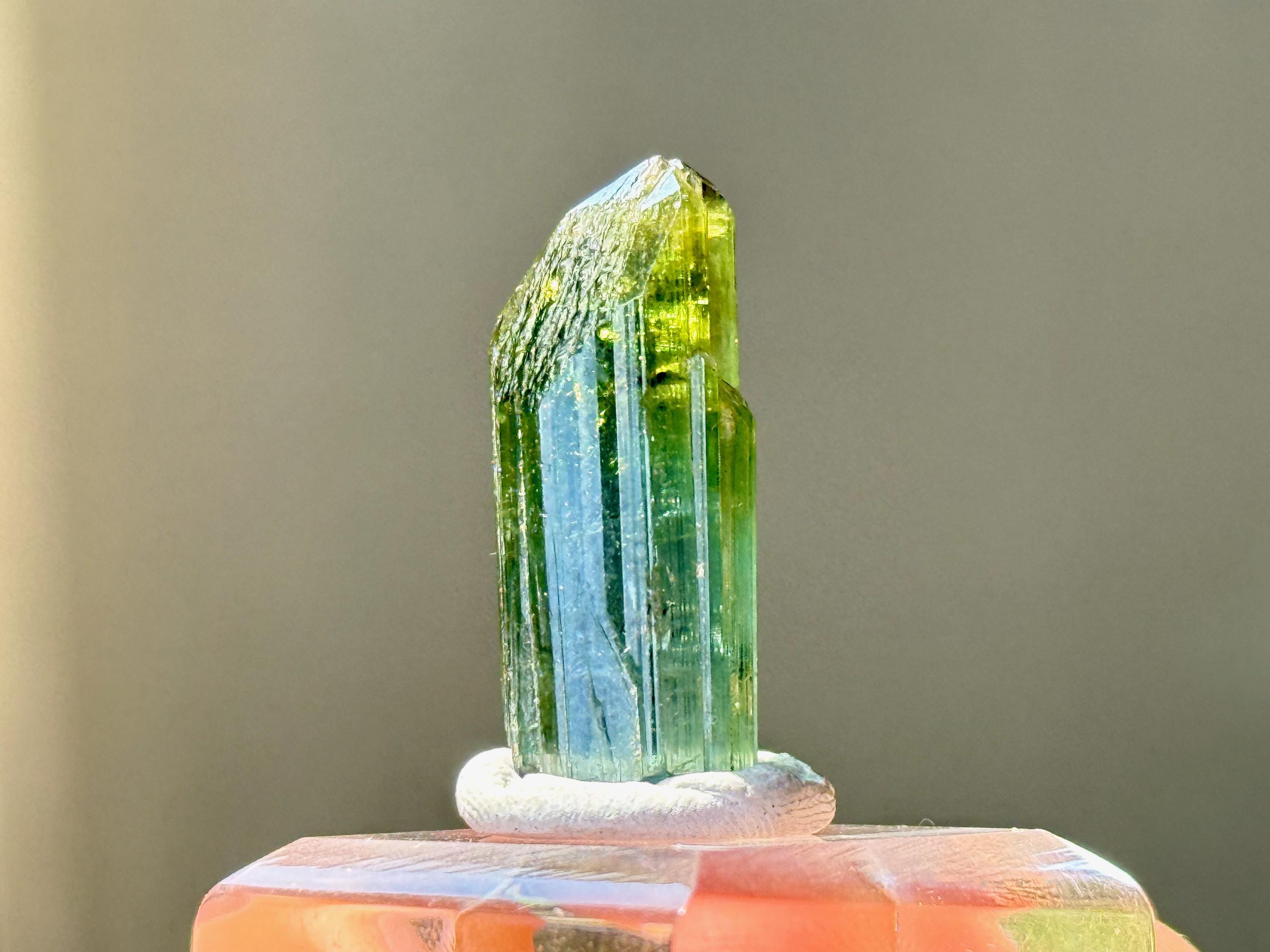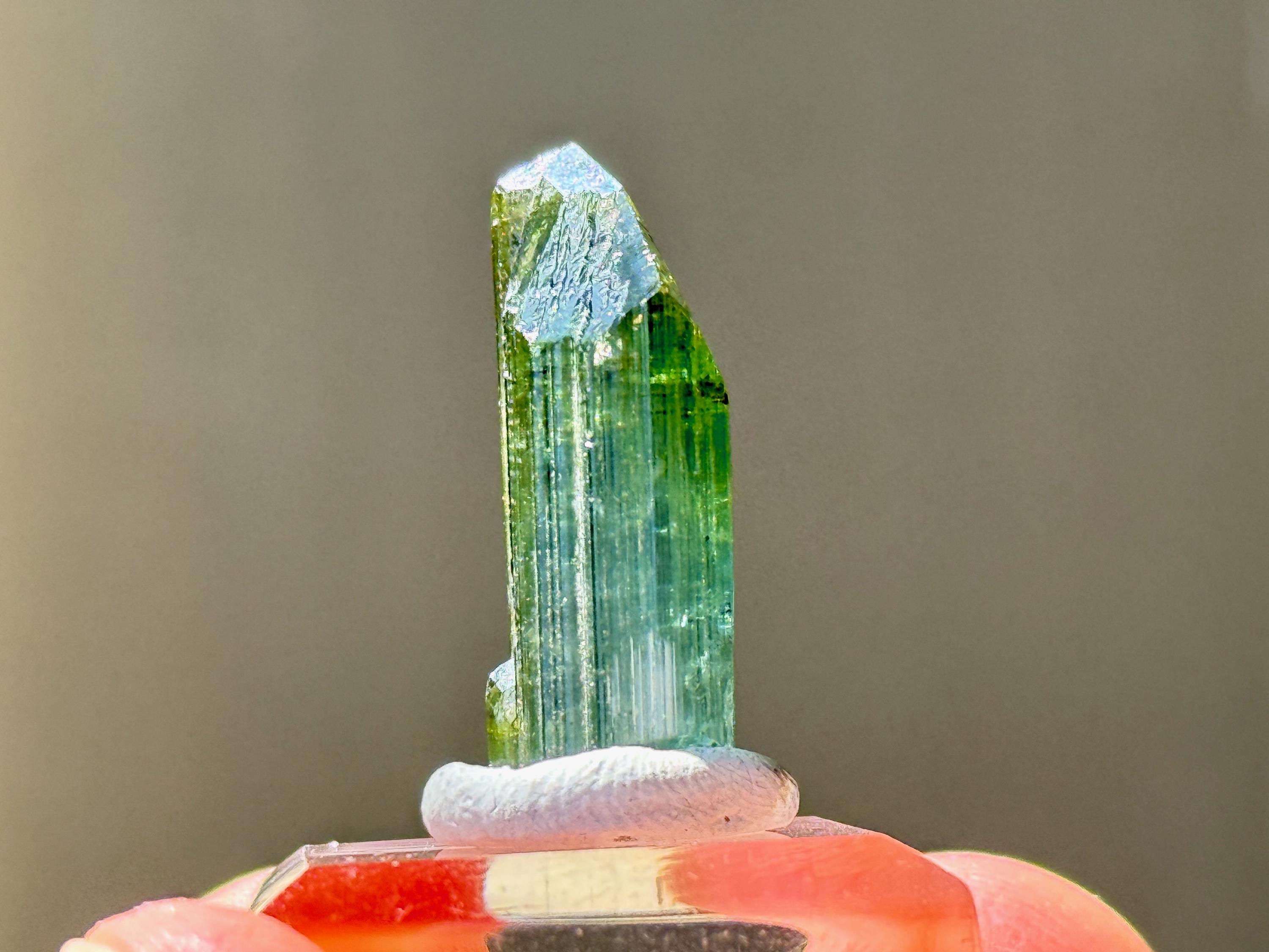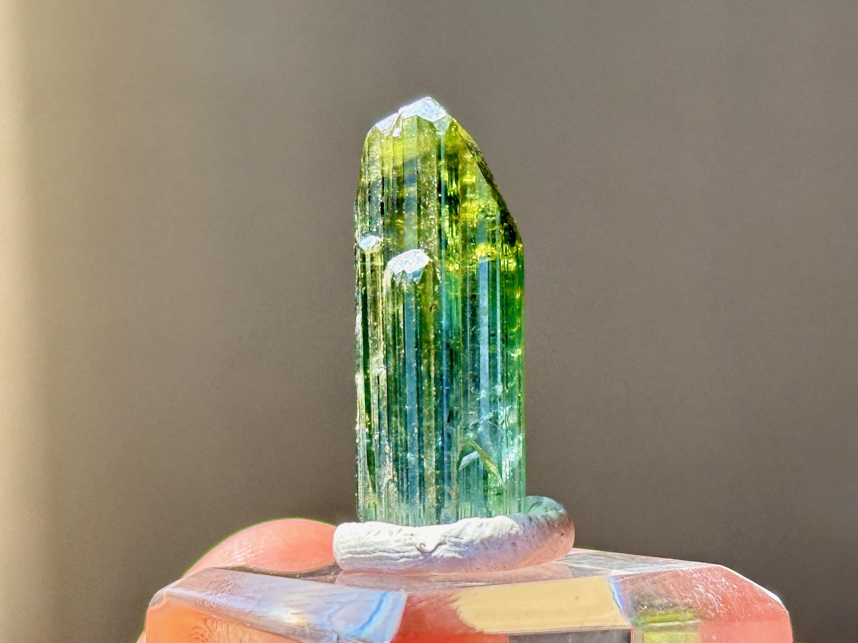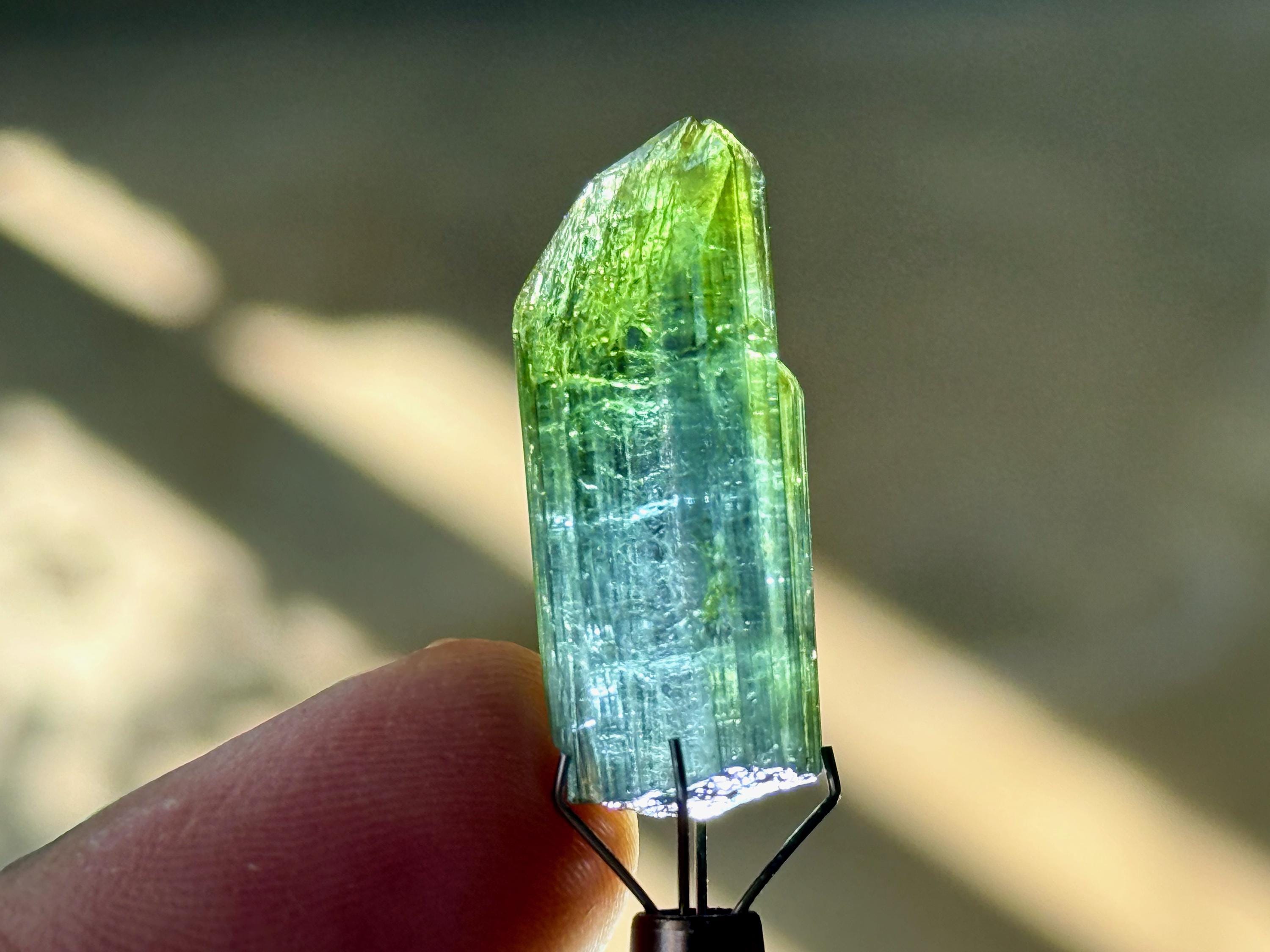 This exquisite Bicolor Tourmaline comes from a 2025 find in Coronel Murta, Minas Gerais, Brazil. This crystal is all-natural, with blue and green hues and a true termination.