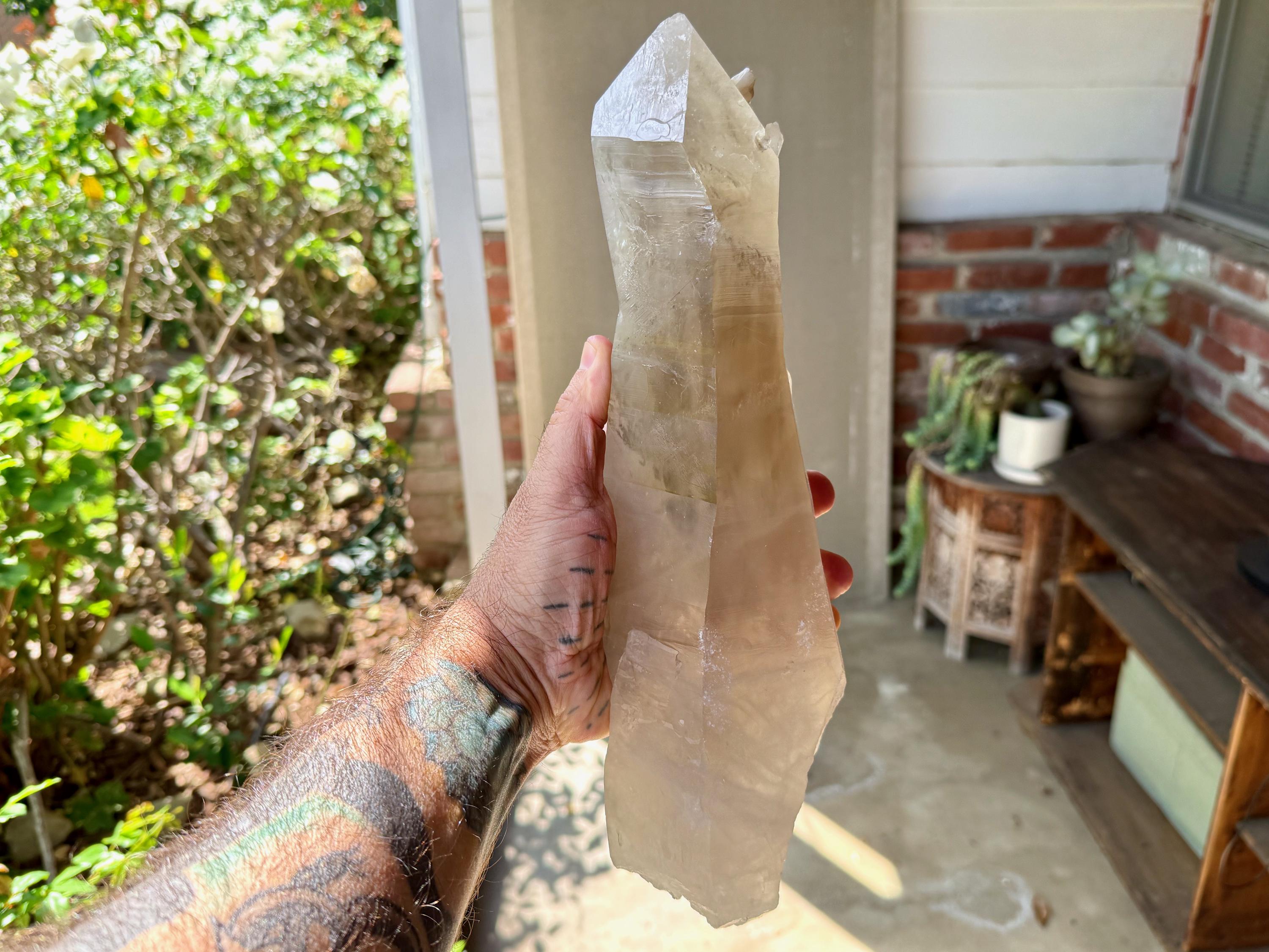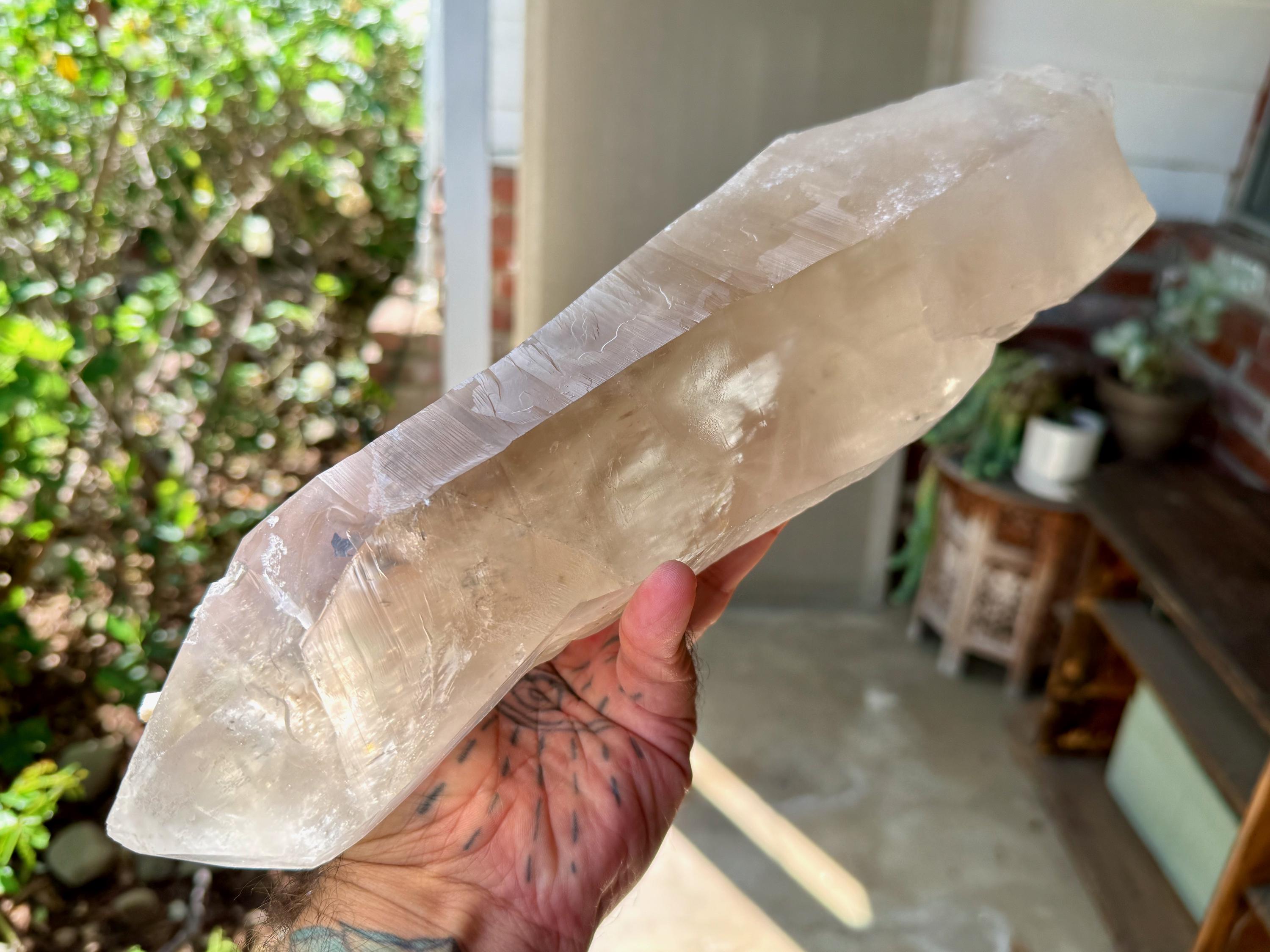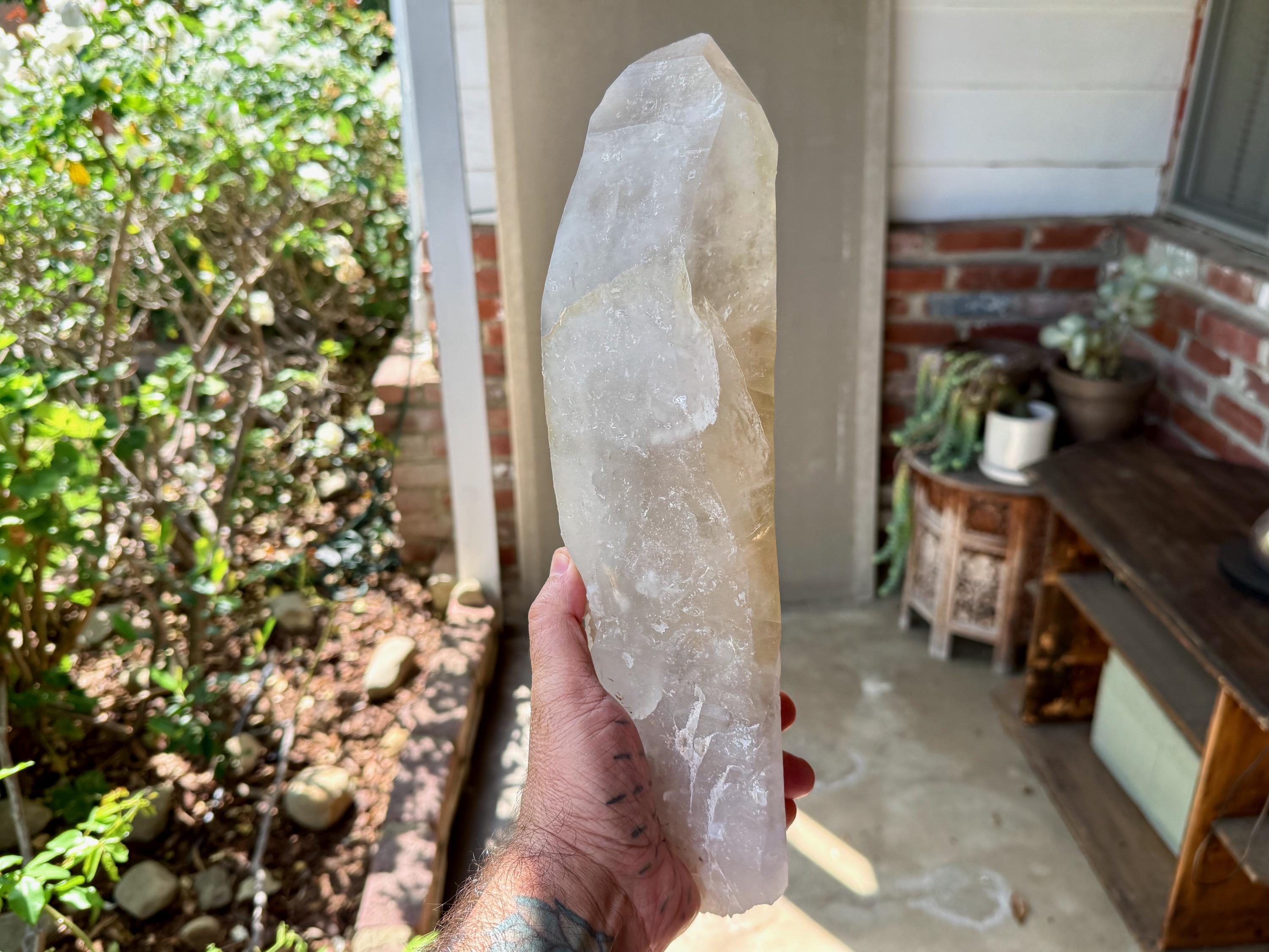 One of the largest Golden Healer Lemurians we've ever offered, this majestic crystal stands over 13 inches (34 cm) tall and weighs 6.5 pounds (3 kilograms). It is a true gentle giant!