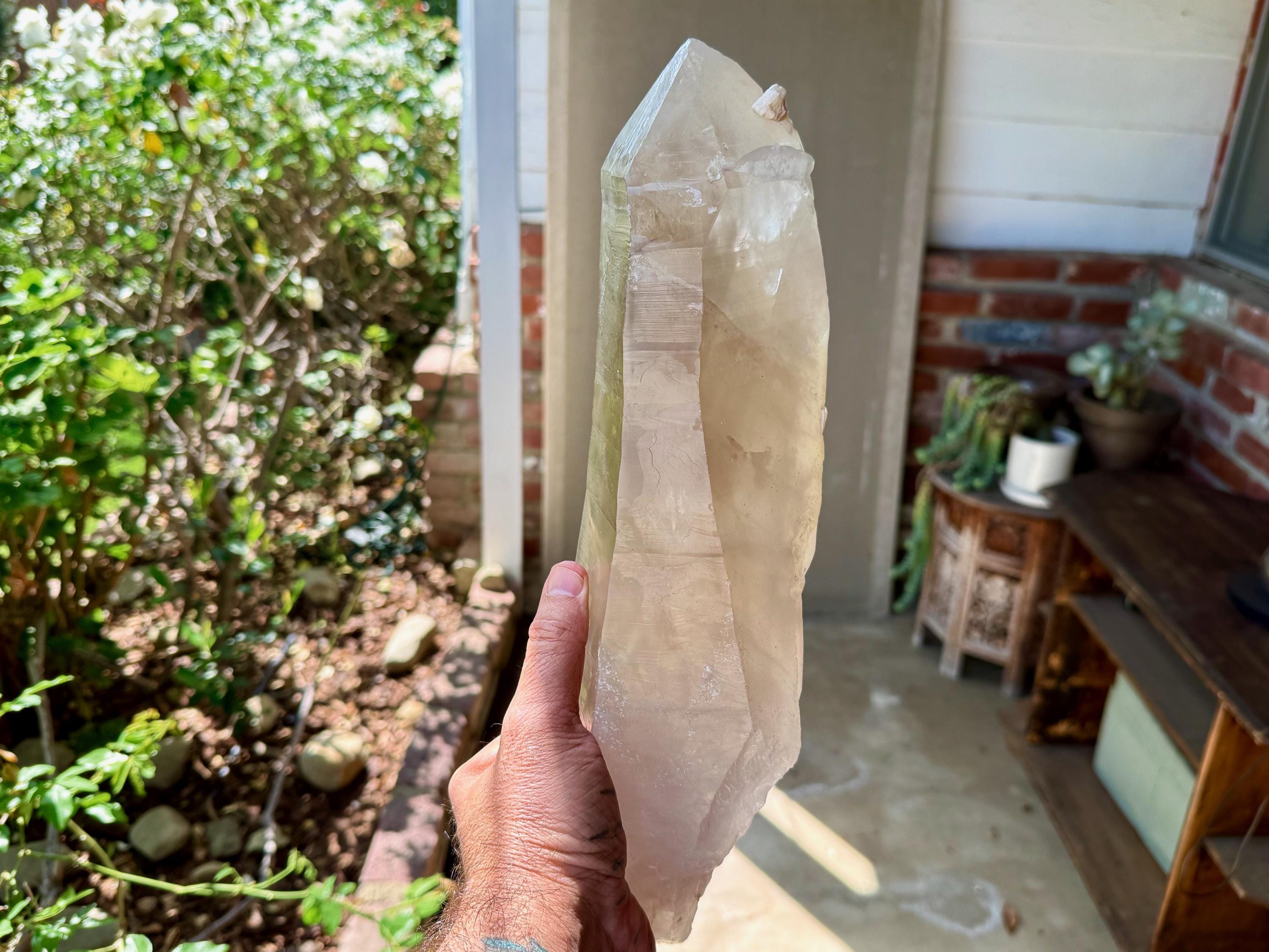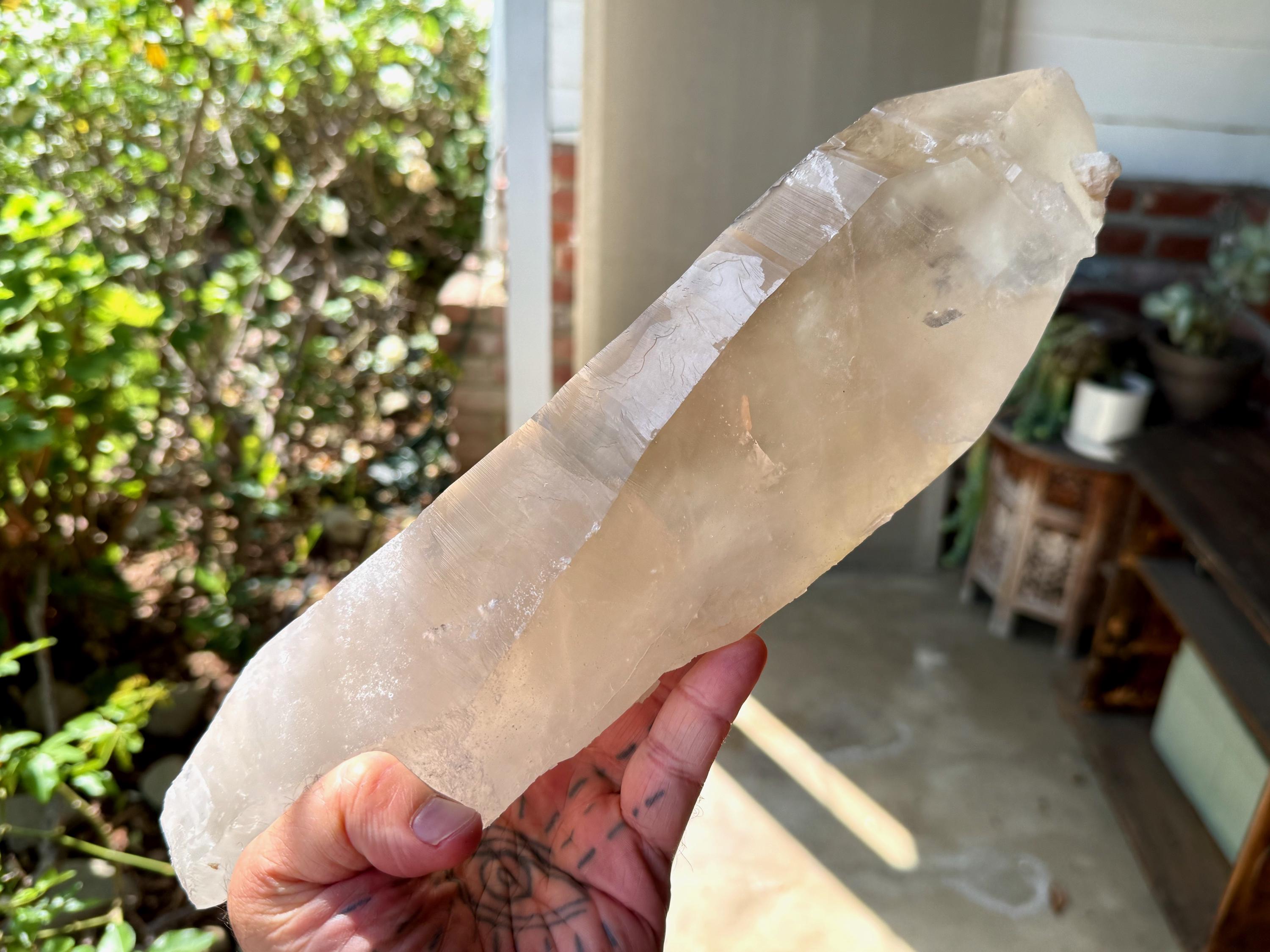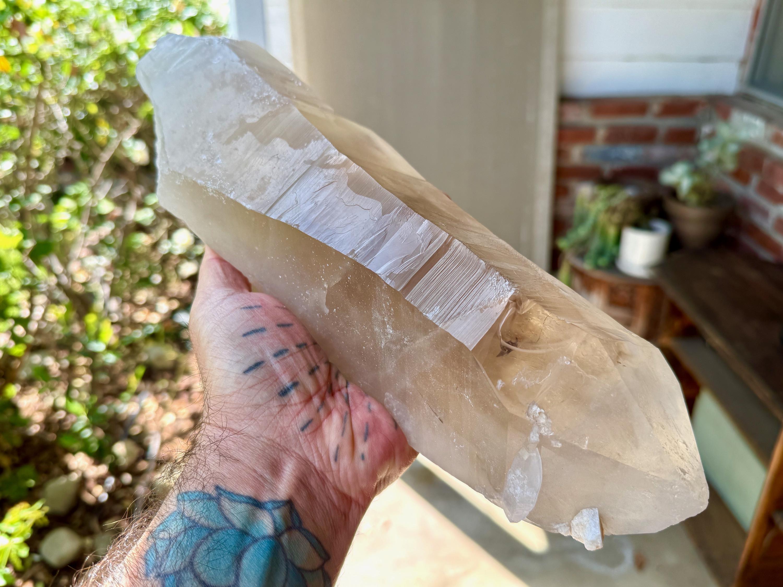 One of the largest Golden Healer Lemurians we've ever offered, this majestic crystal stands over 13 inches (34 cm) tall and weighs 6.5 pounds (3 kilograms). It is a true gentle giant!