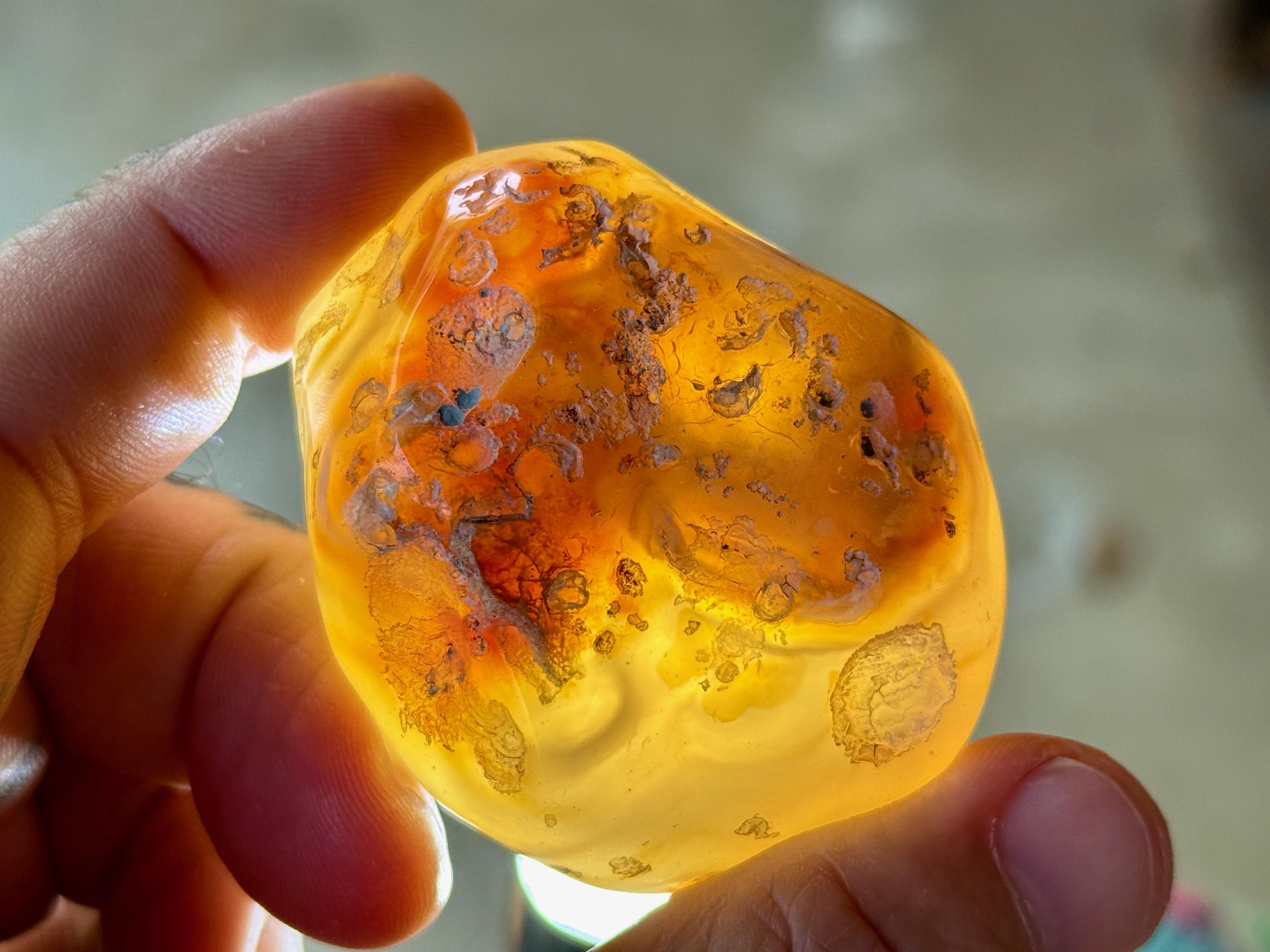 This Agate has AMAZING translucency when backlit which makes it easy to see the water swishing inside. The video shows this and it will be much more evident in person. We recommend using a strong light to backlight and doing so in a darkened room to fully appreciate the water within. We've also included photos of this piece with backlighting (Photos 2-3).