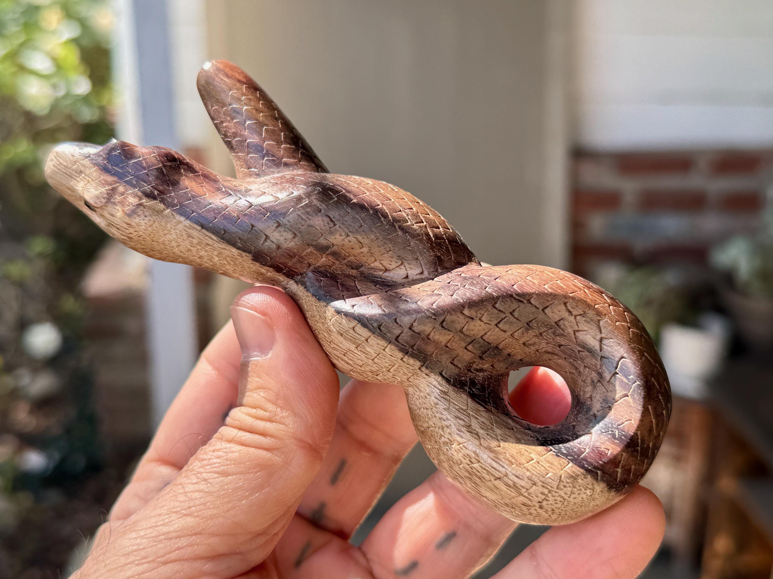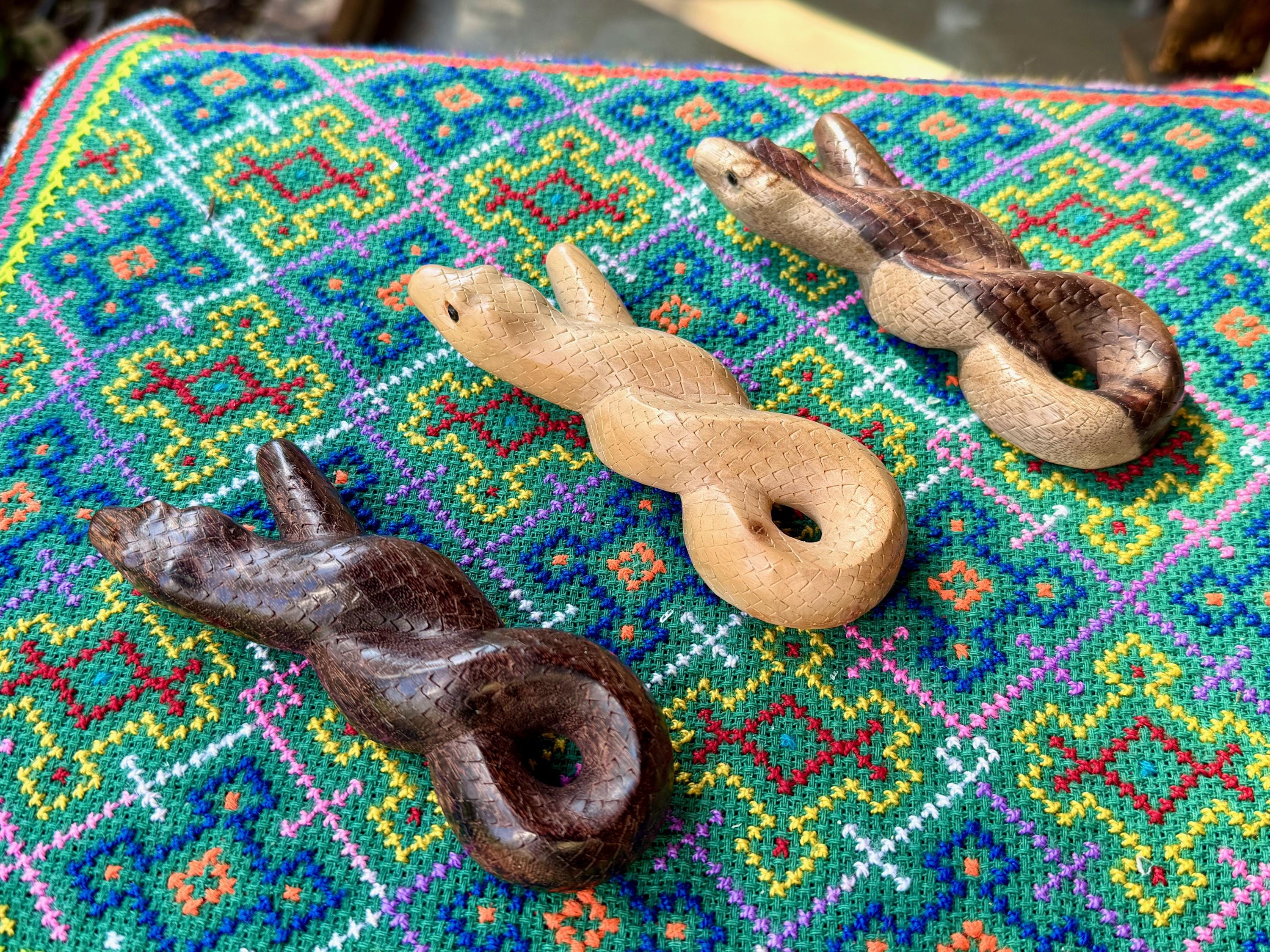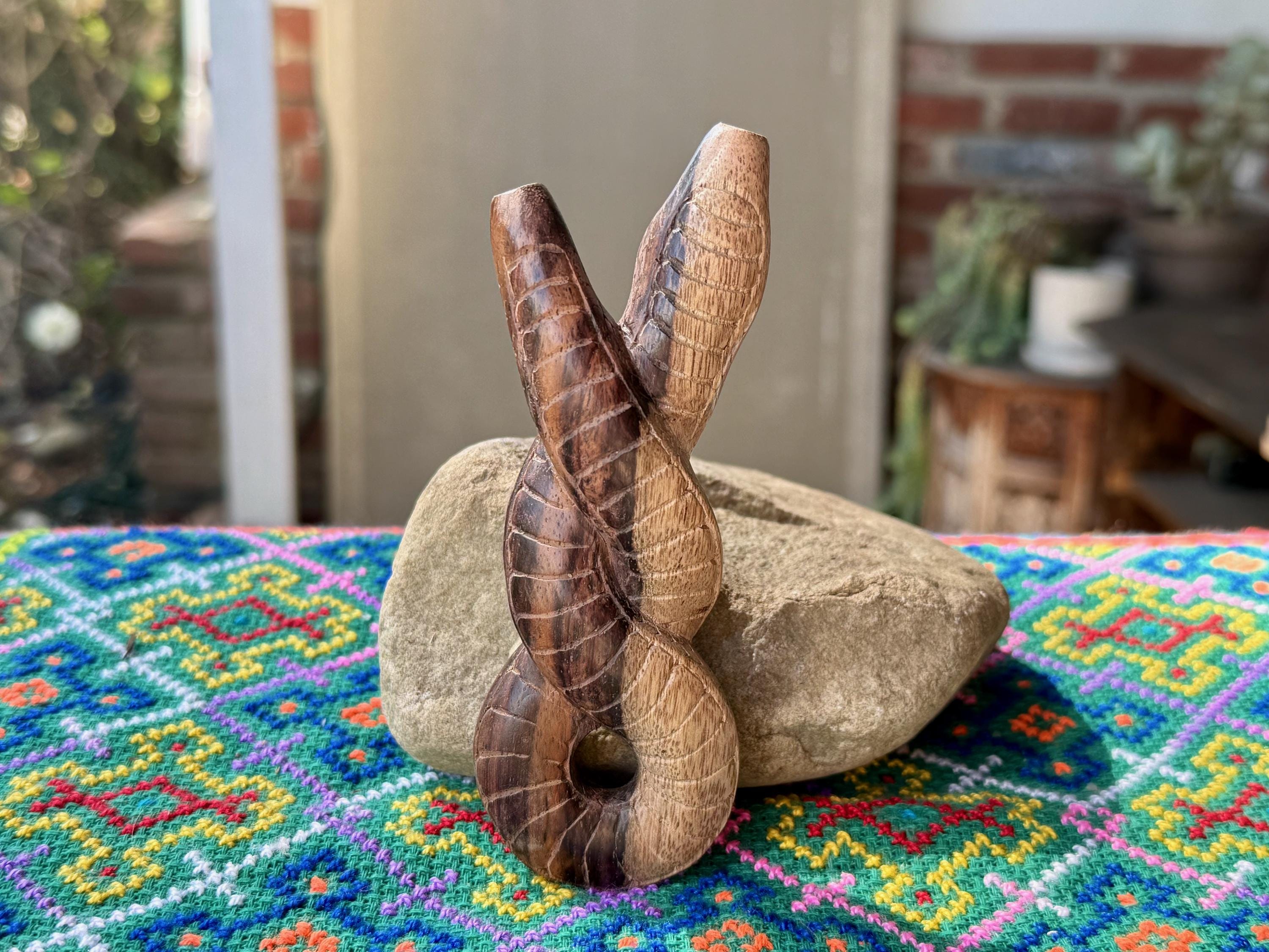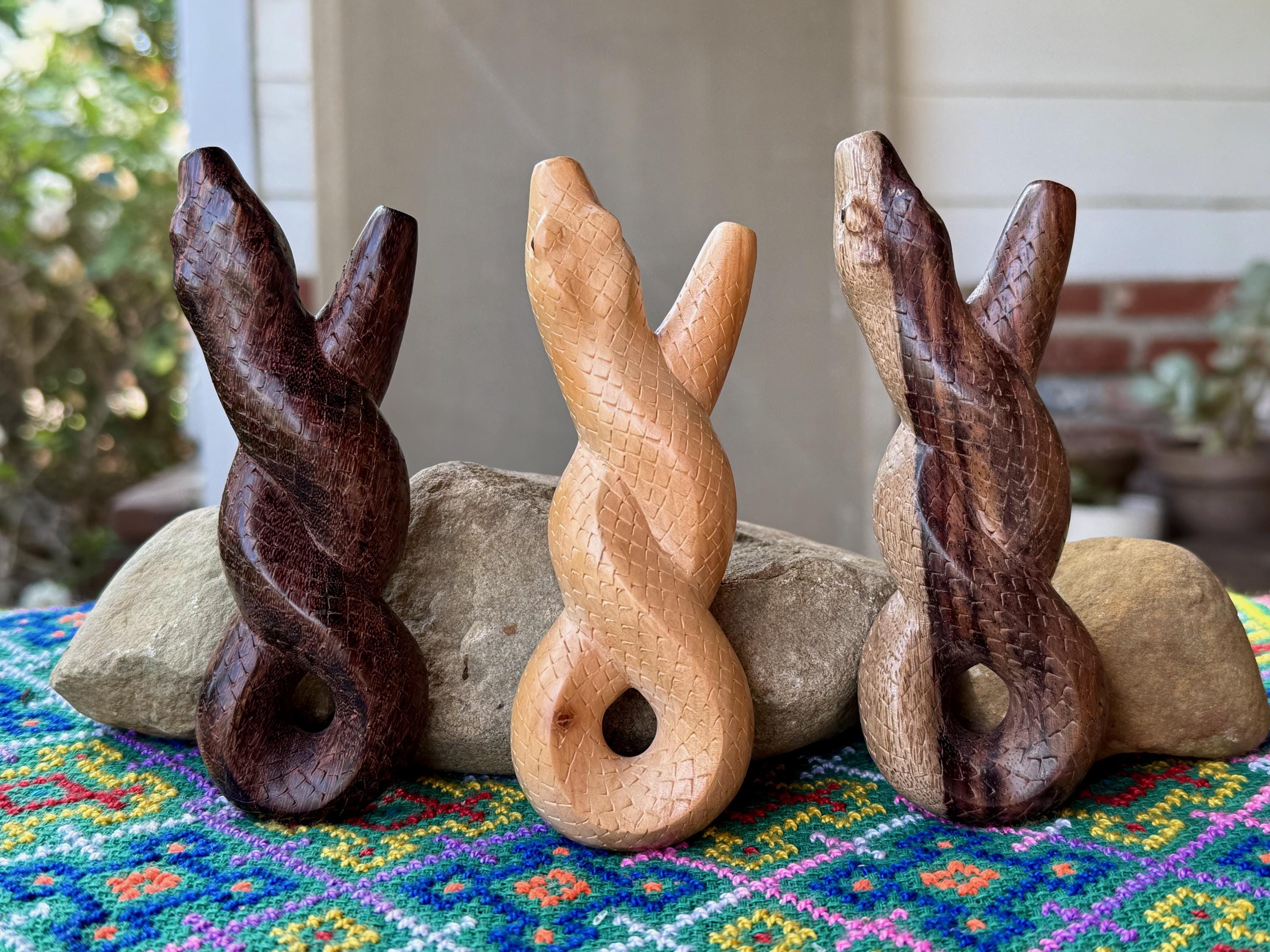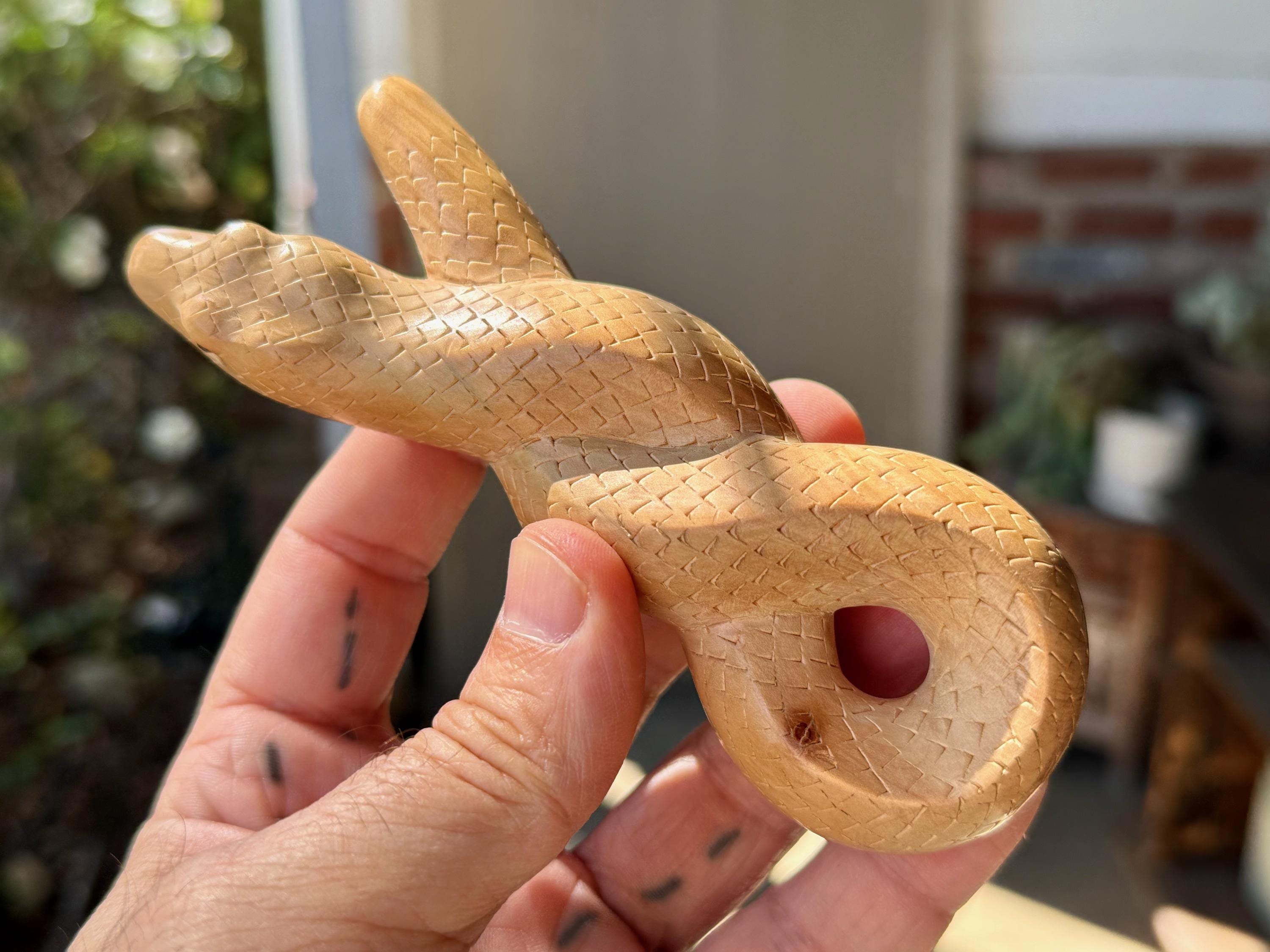 Masterful carving and elegant lines along with the natural wood grains really bring these kuripes to life. The attention to detail is evident when you consider every single scale was carved by hand. Sacred medicine tools with excellent functionality as well!