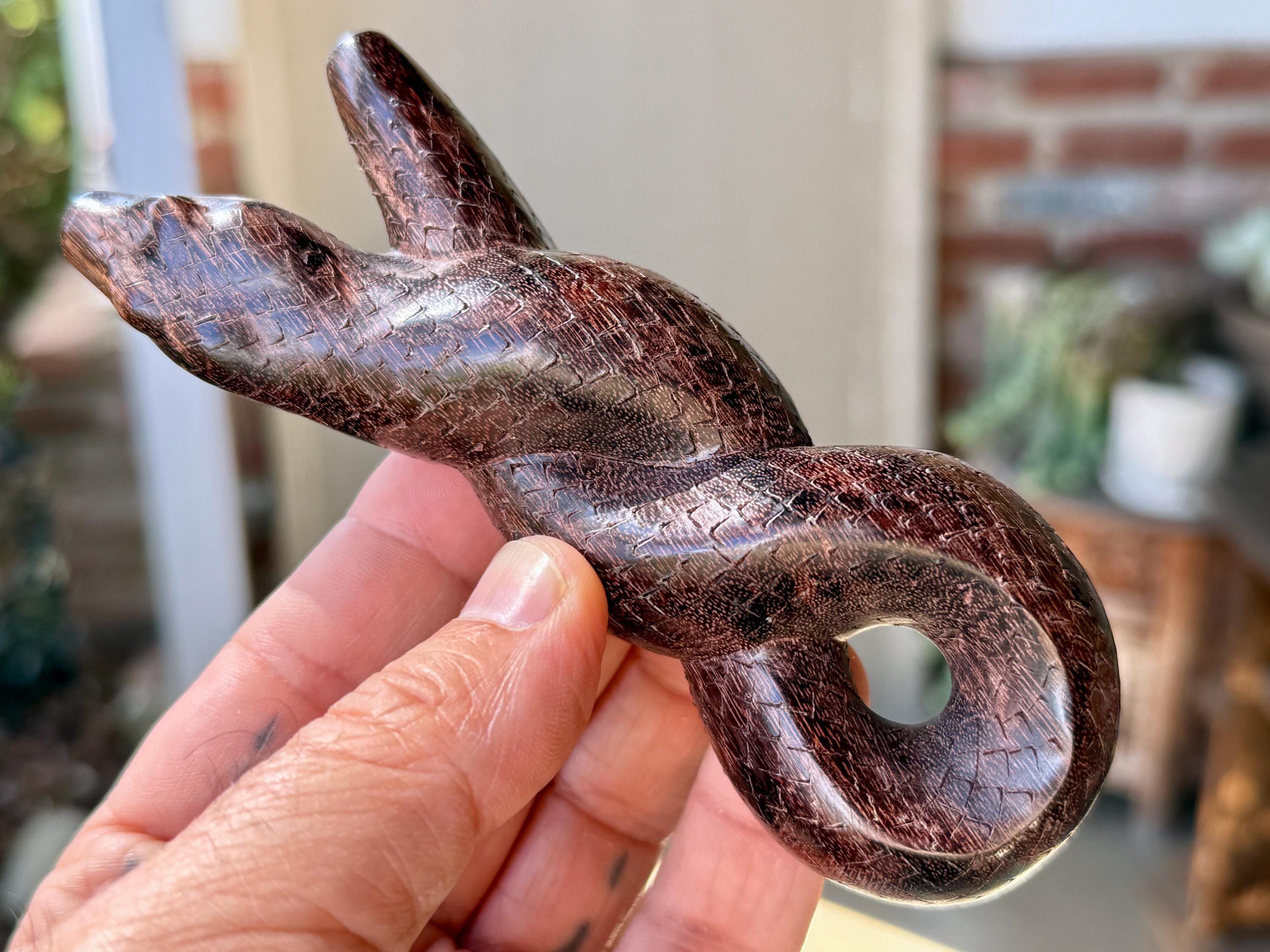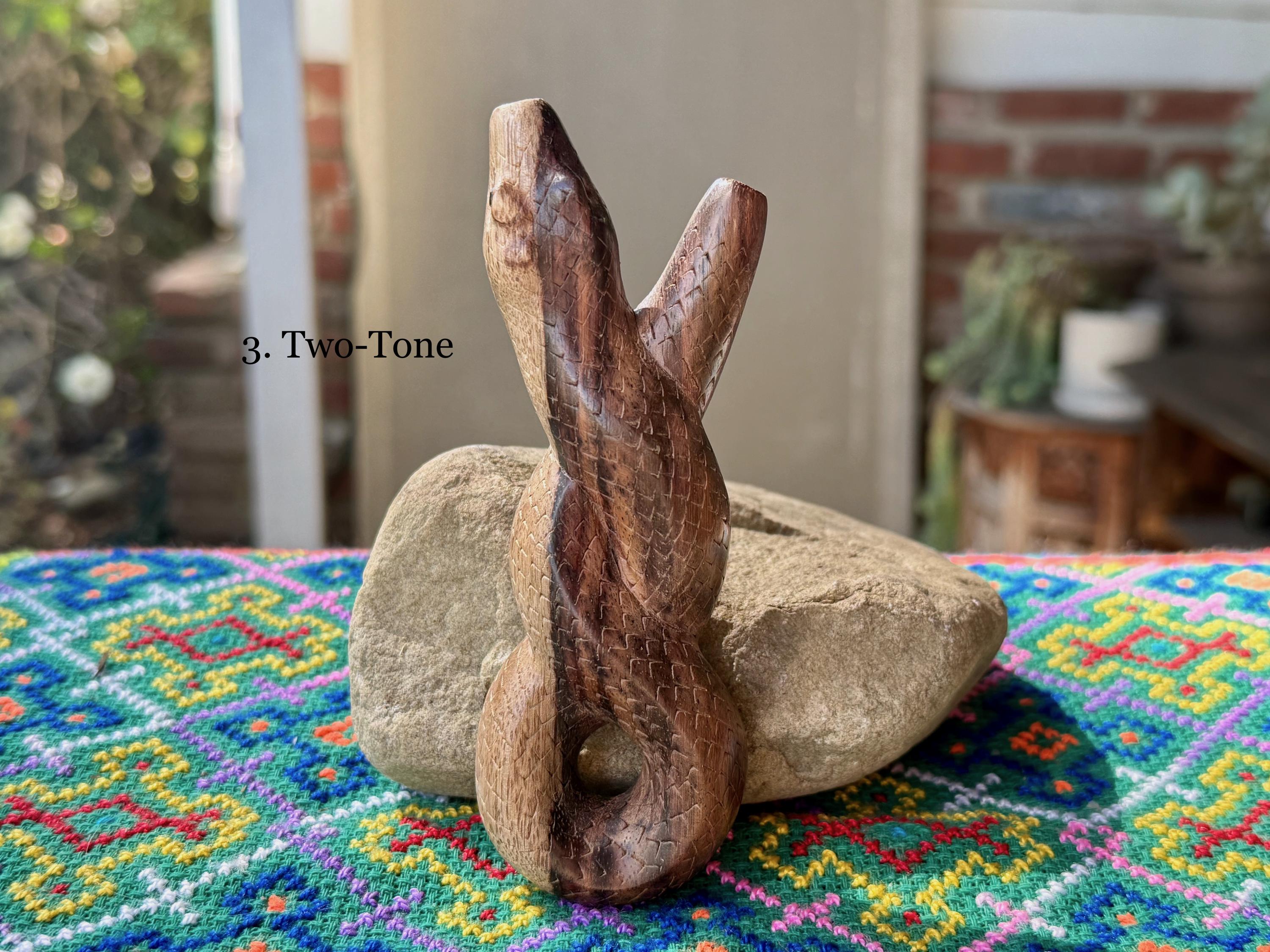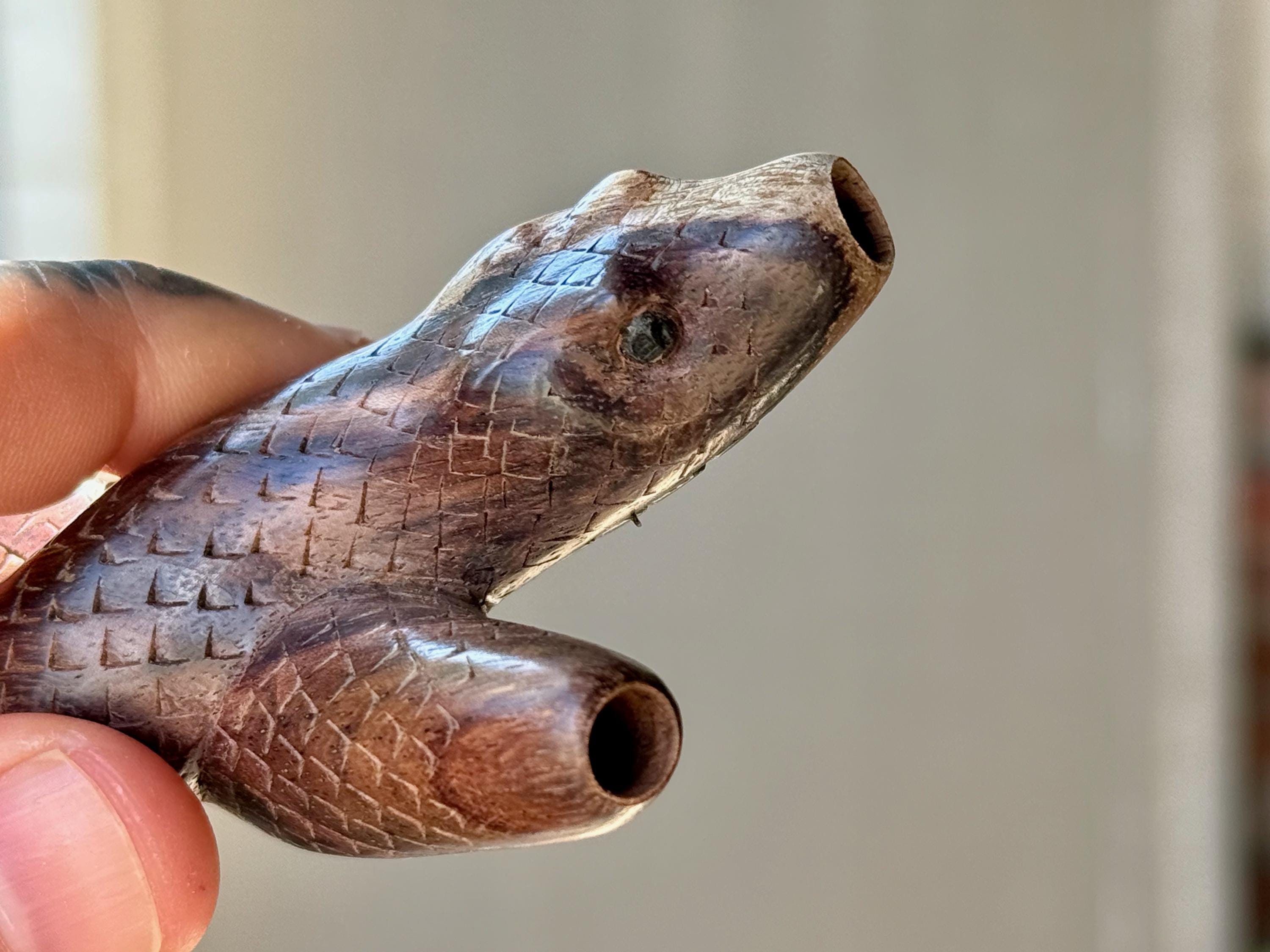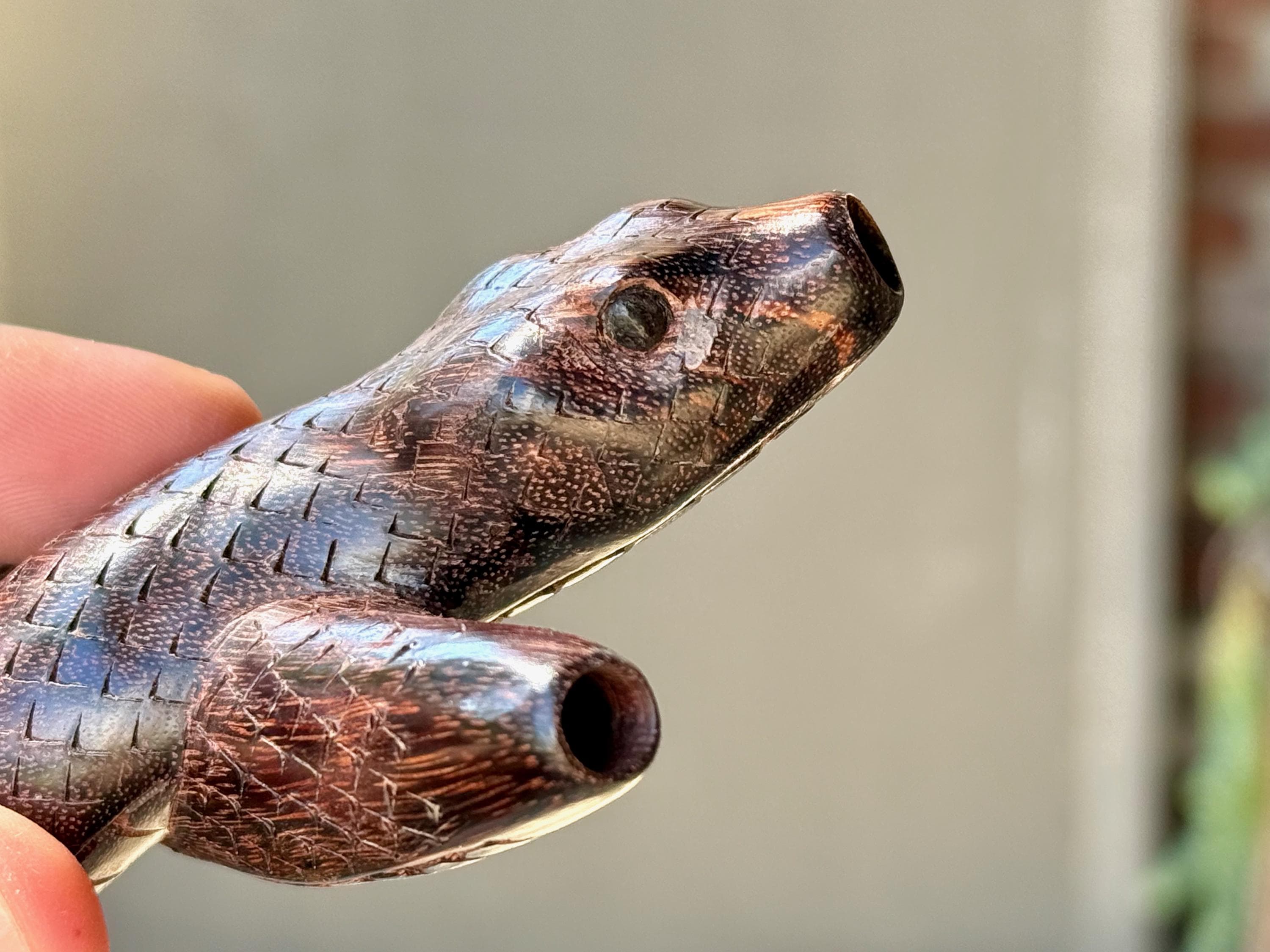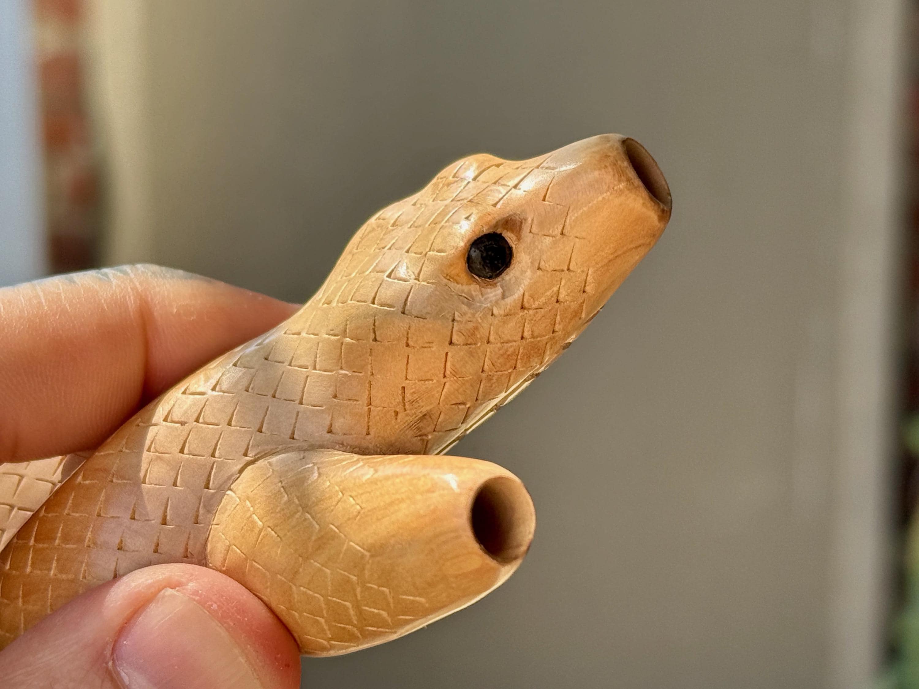 Masterful carving and elegant lines along with the natural wood grains really bring these kuripes to life. The attention to detail is evident when you consider every single scale was carved by hand. Sacred medicine tools with excellent functionality as well!