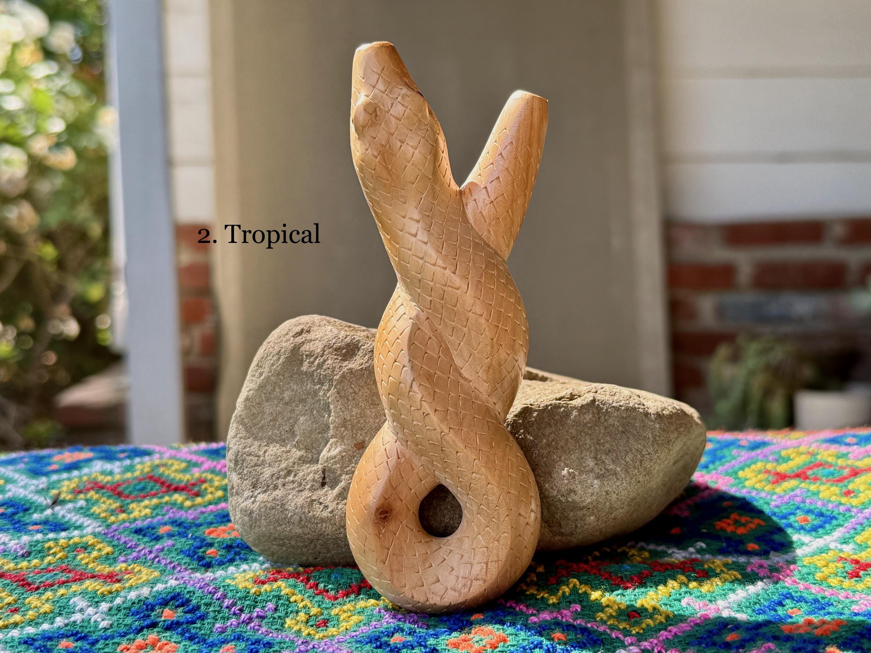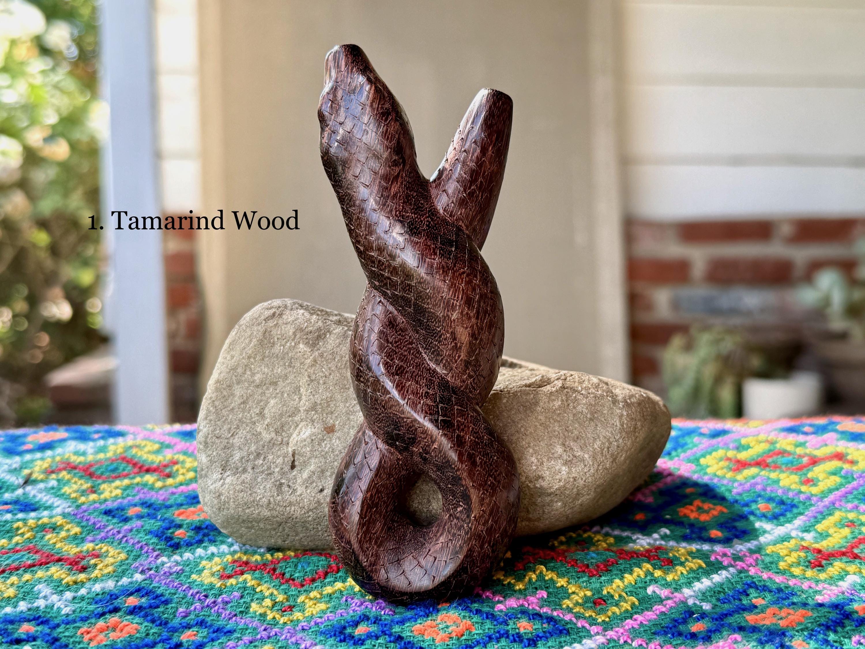 These beautiful Serpent Kuripes — for self-administering hapé — are hand carved from native hardwoods. Each selection is labeled, simply select your preference from the dropdown menu.