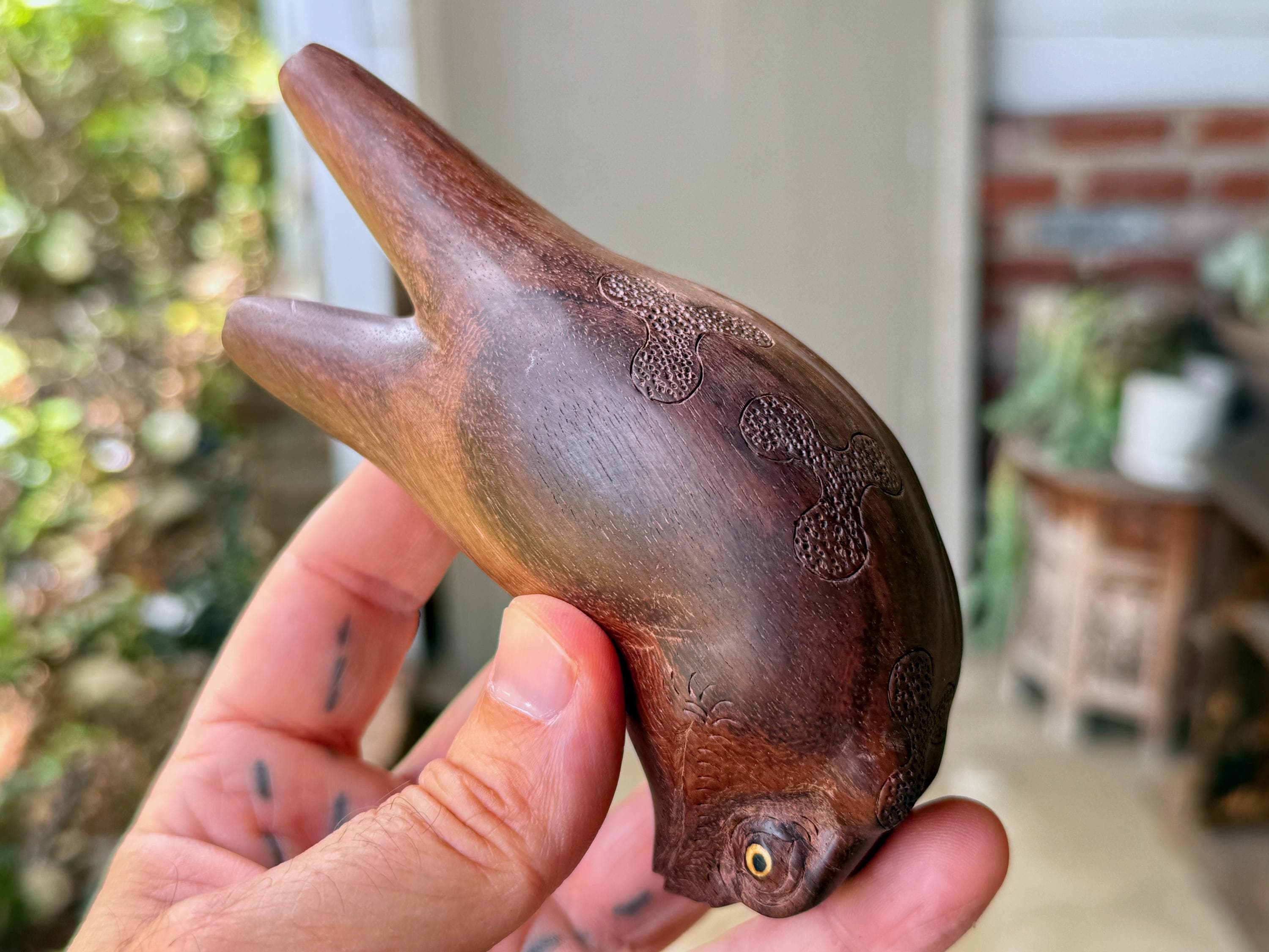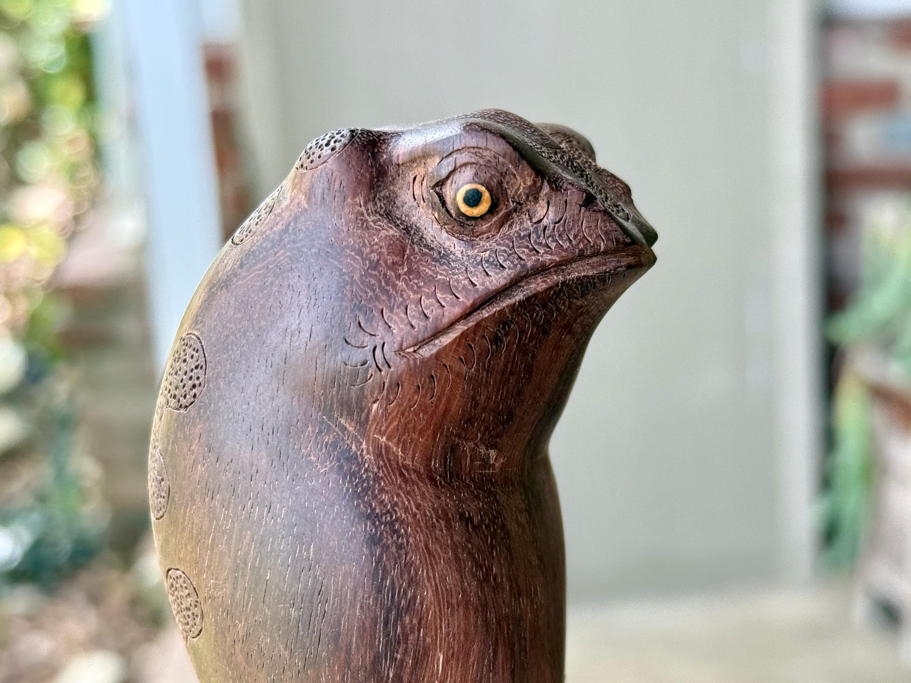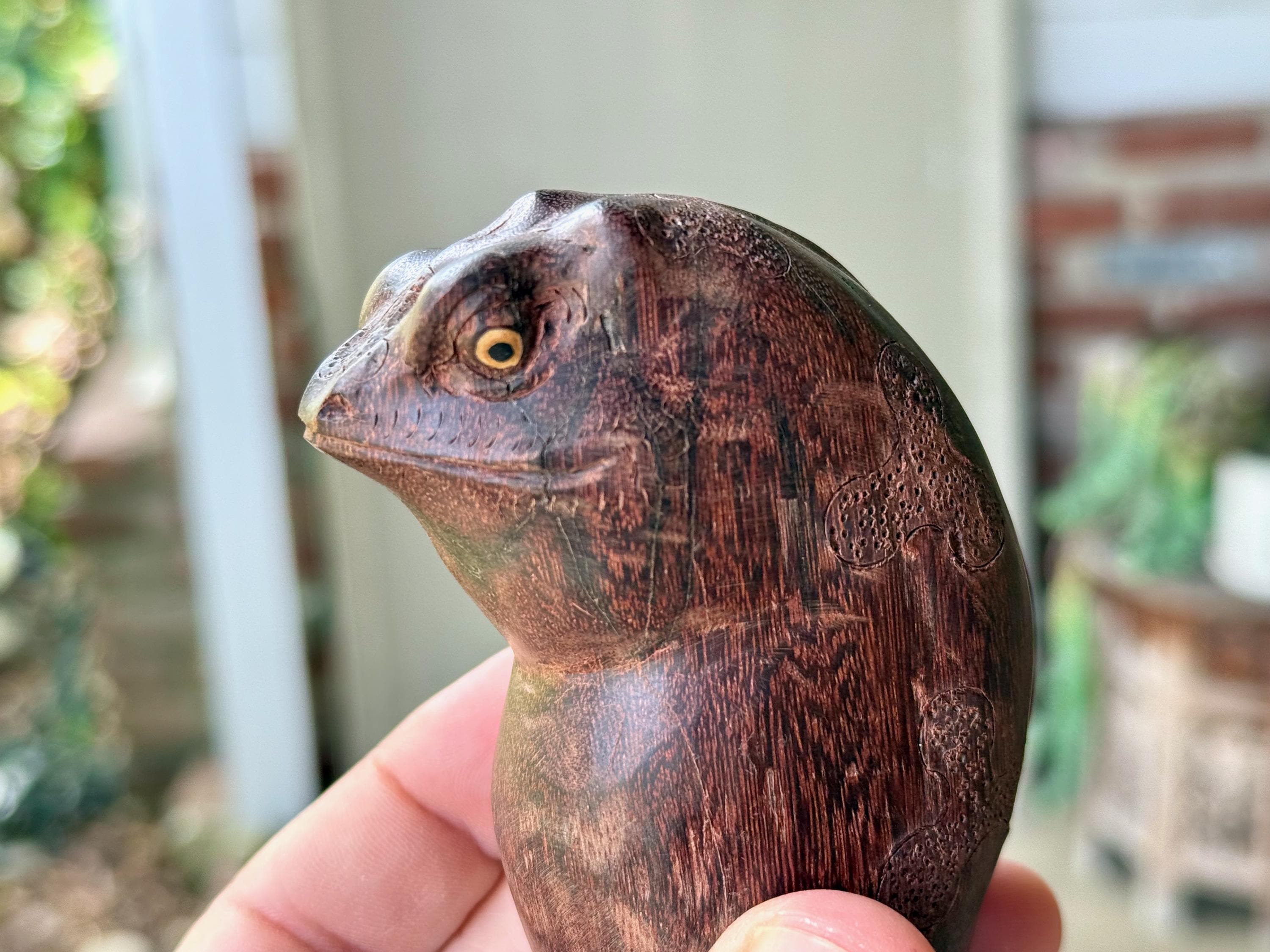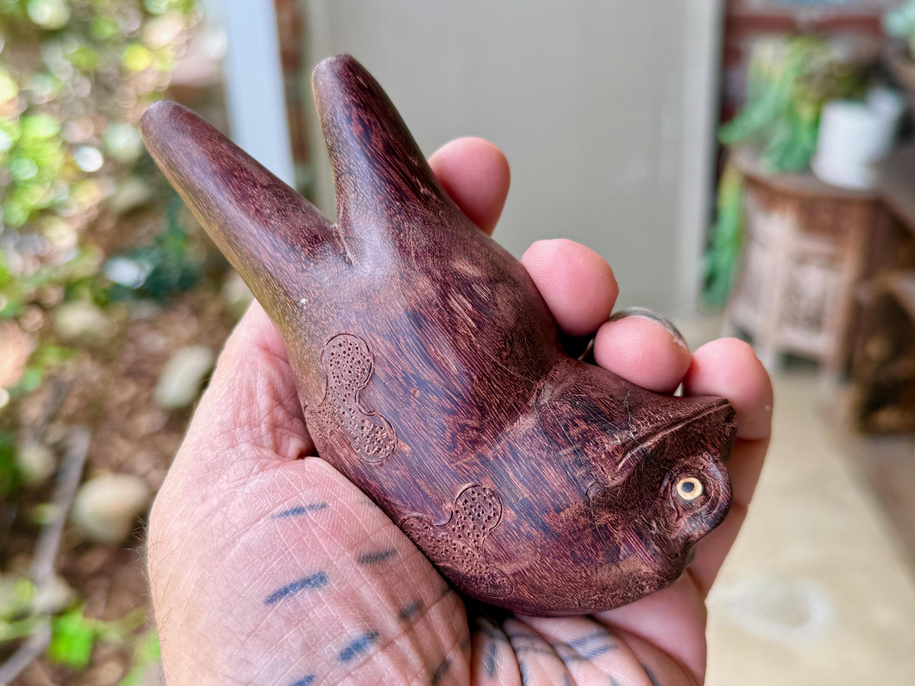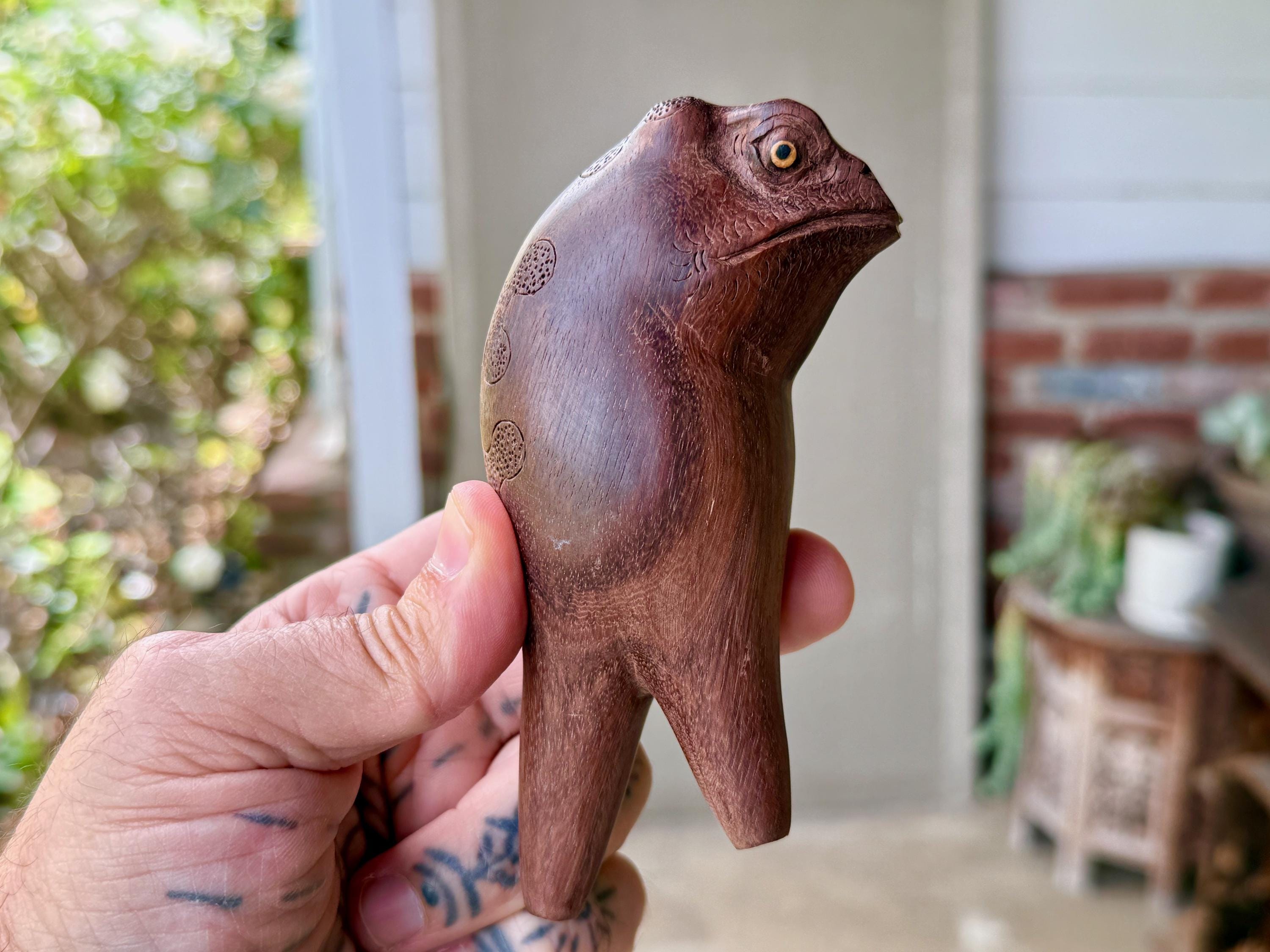 These handsome Jungle Frogs have a bit of a fairytale charm to them. But aside from their charming personas, they are *very* weighty and robust, made from native Tamarind and Dark Tropical hardwoods.