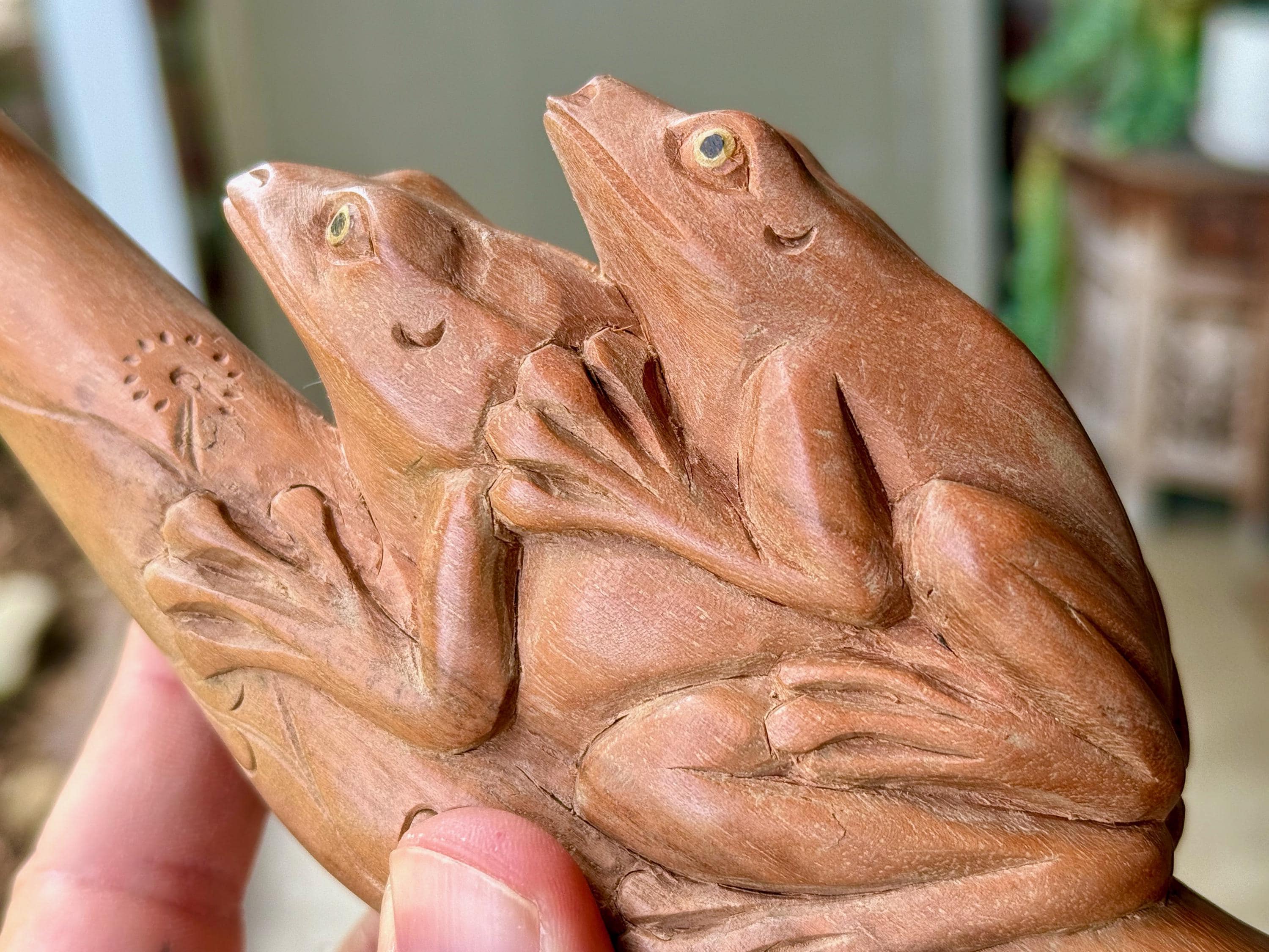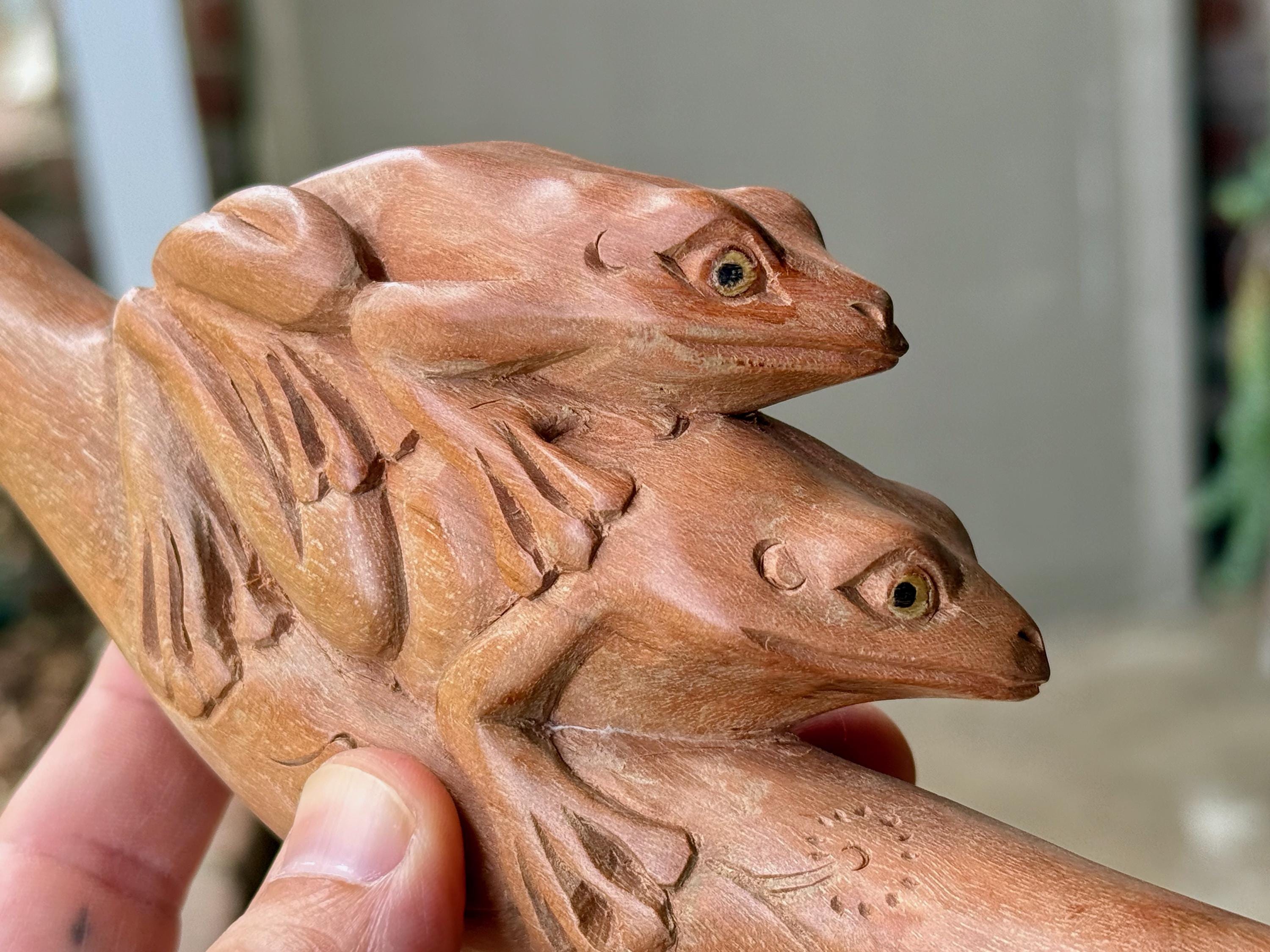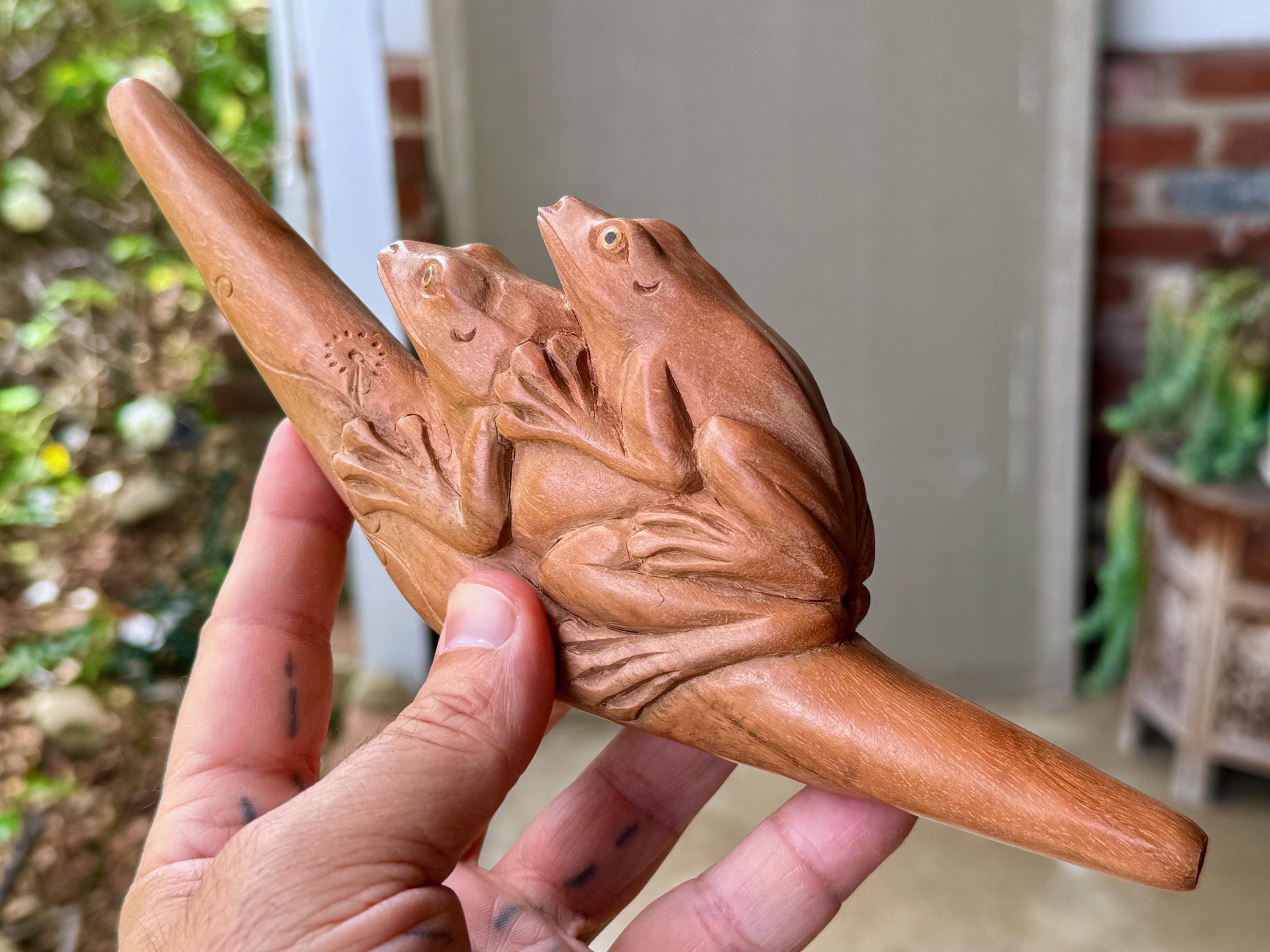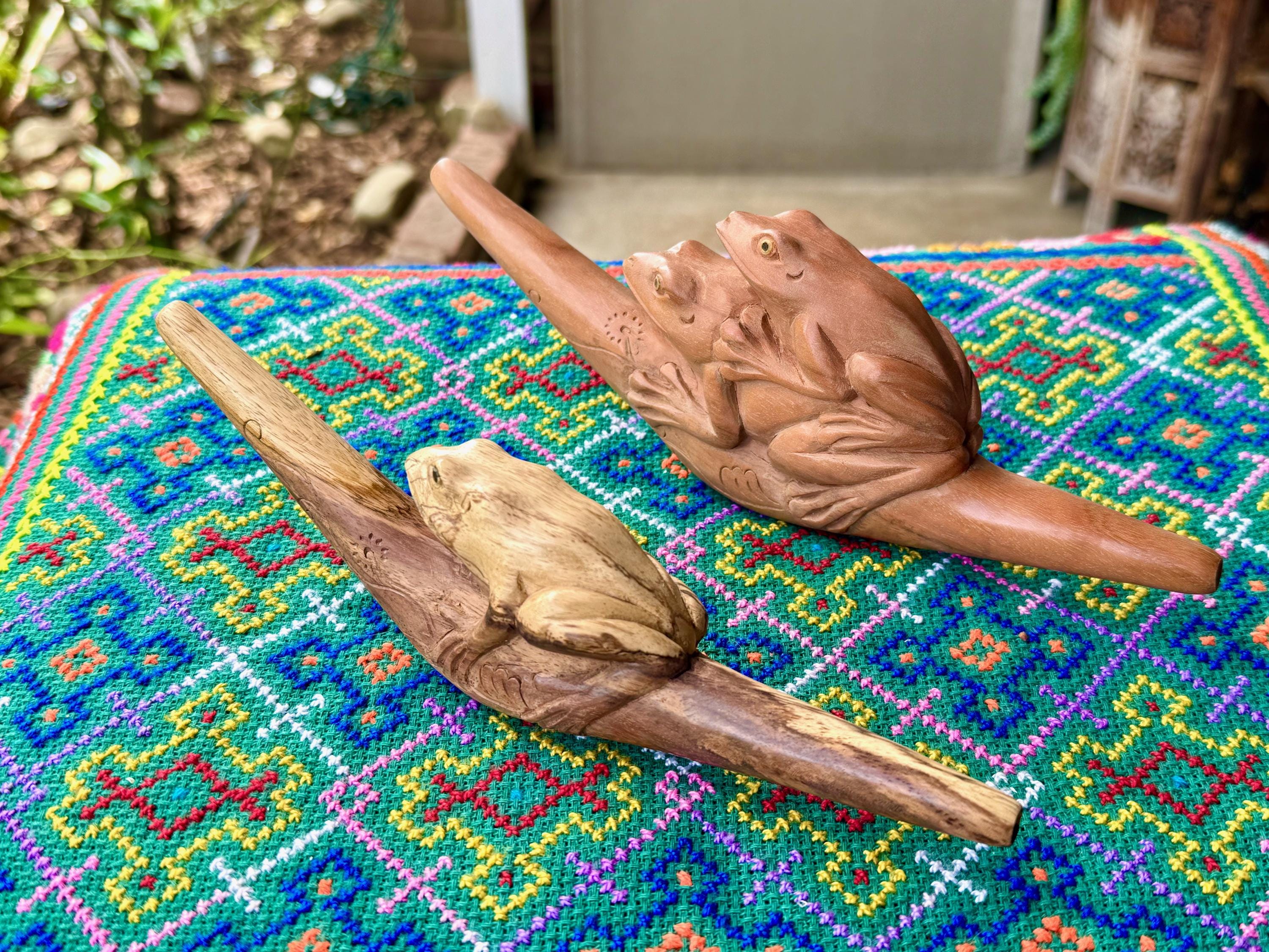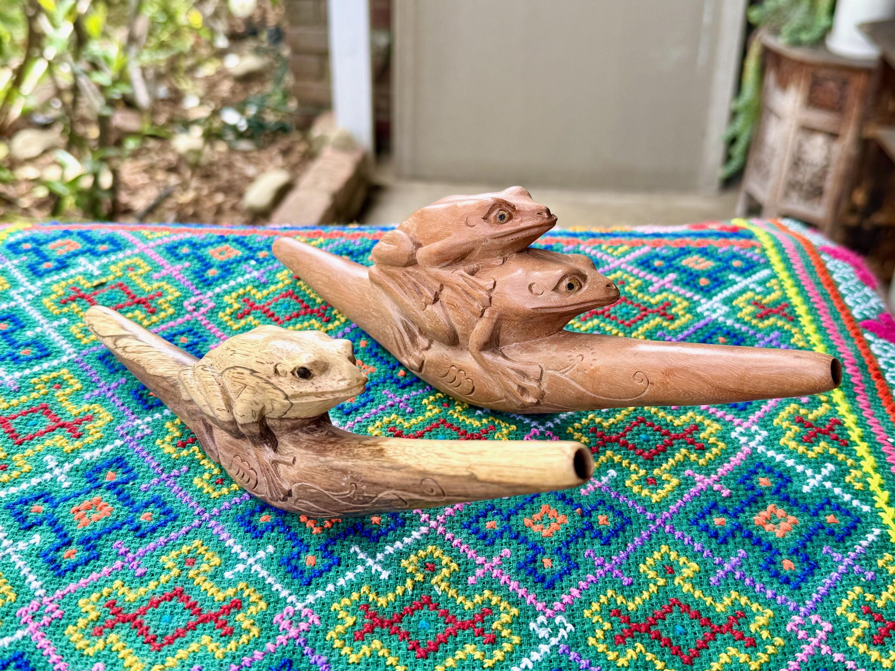 These beautiful Frog Tepi Pipes — for administering hapé — were hand carved from native tropical hardwoods. Each selection is numbered, simply select your preference from the dropdown menu.