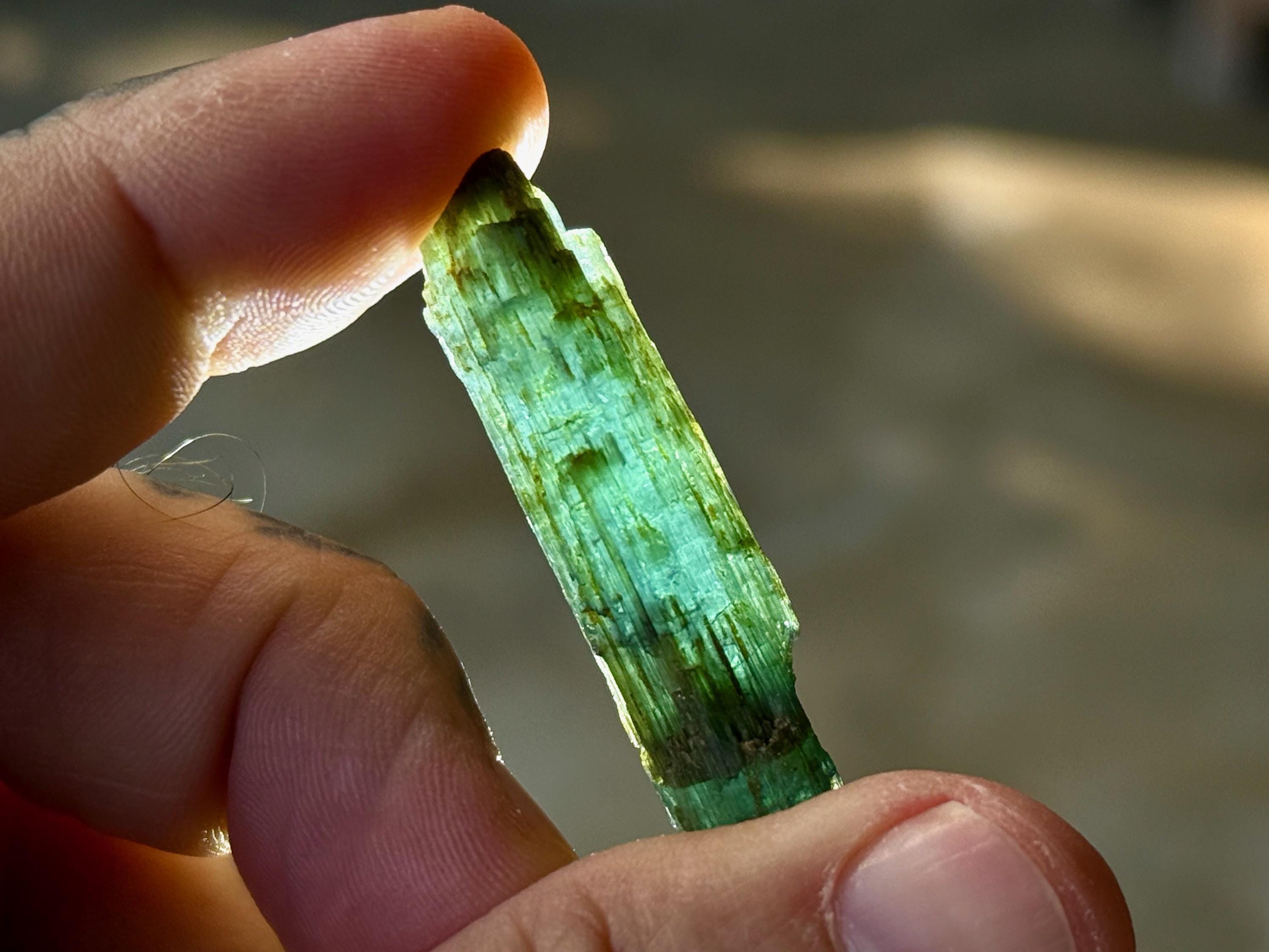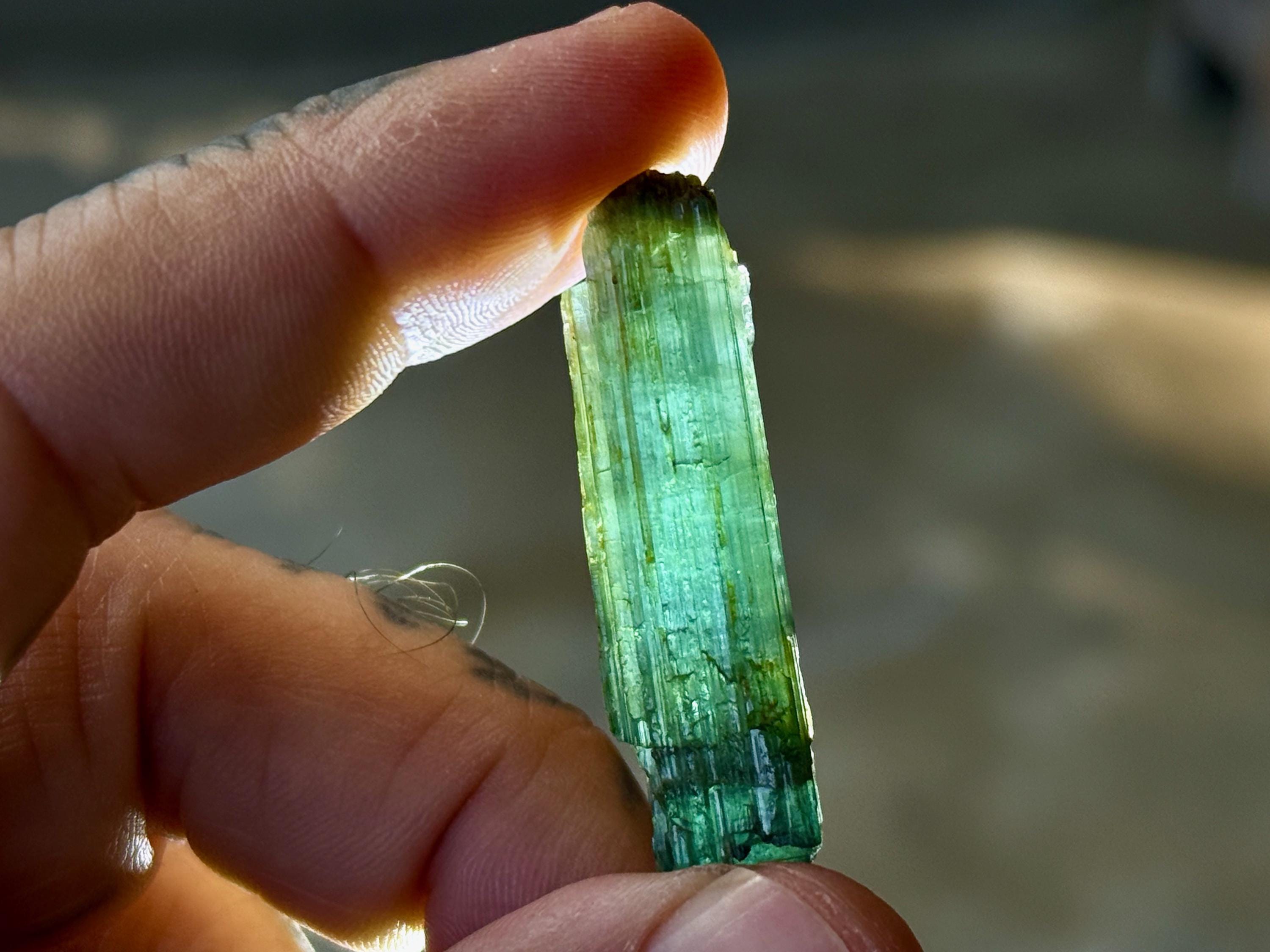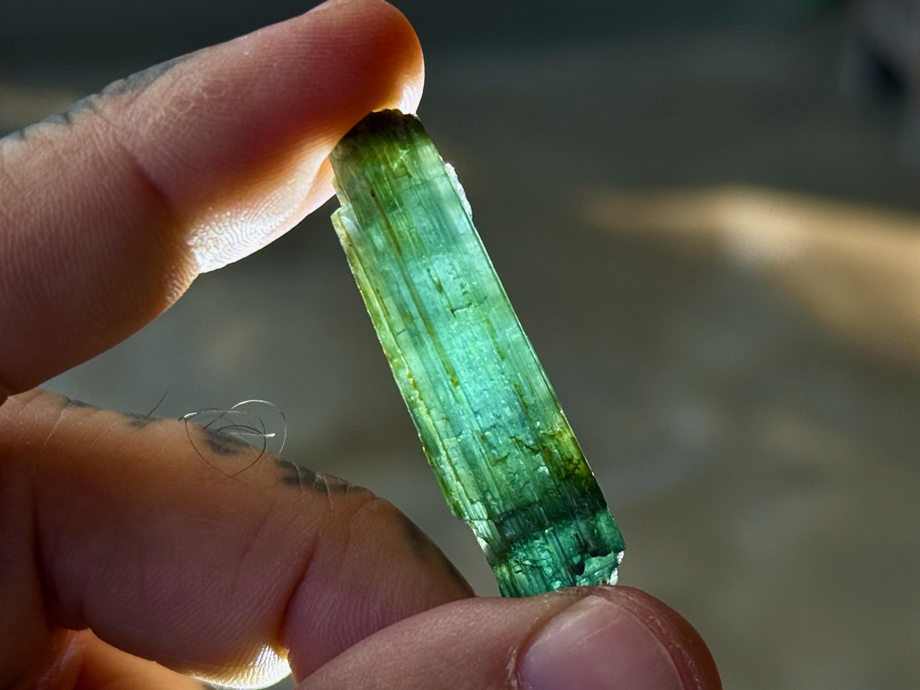 *These photos were taken in partially shaded, natural sunlight, as well as backlit. We've done our best to capture the true colors of this piece, but as with any gem tourmaline, please note that the color can vary a little depending on the lighting environment it is being viewed in.