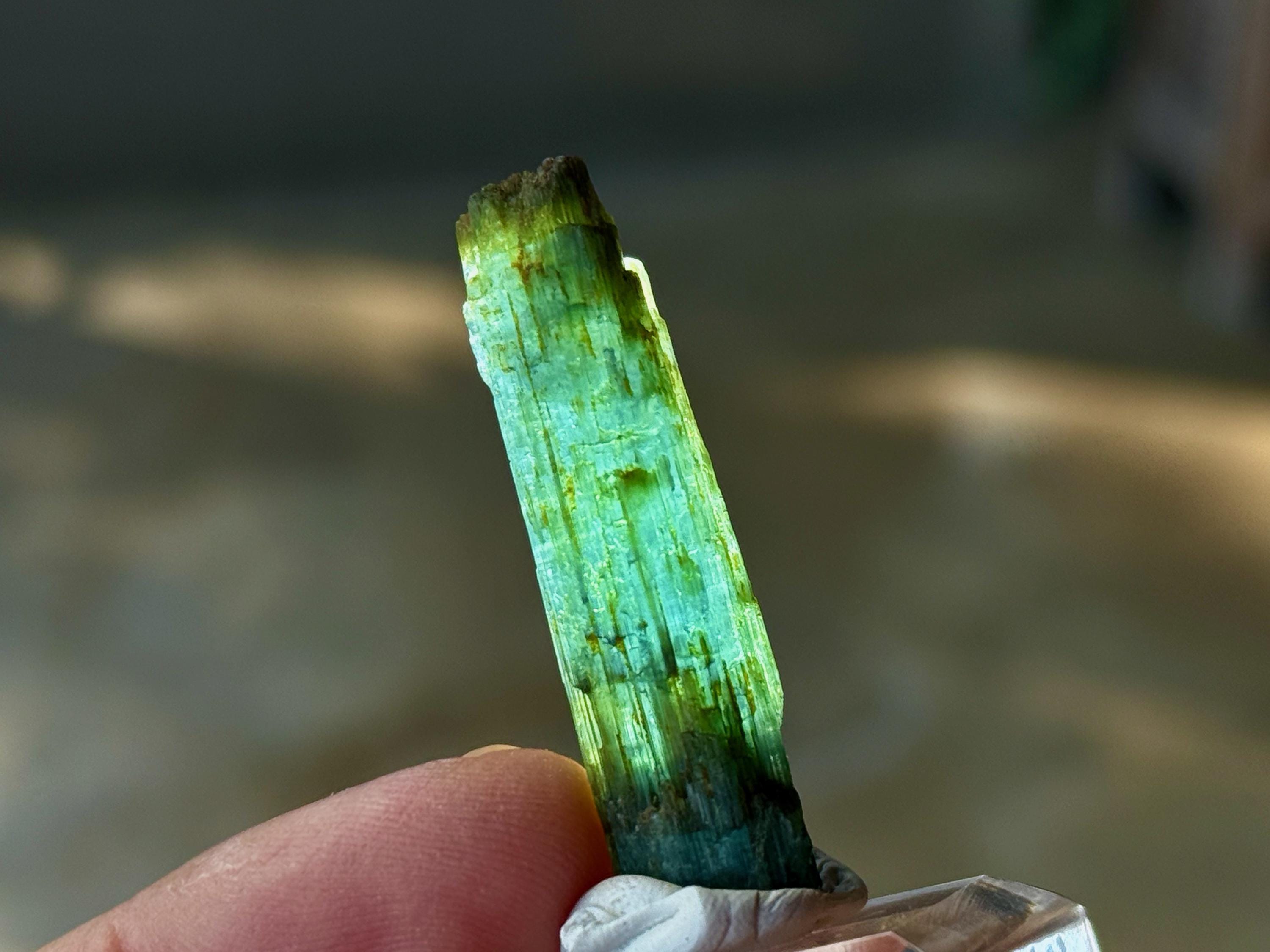 This vibrant Bicolor Tourmaline comes from a 2025 find in the Aricanga Mine, São Jose do Safira, Minas Gerais, Brazil. This crystal is all-natural, with blue and green hues.