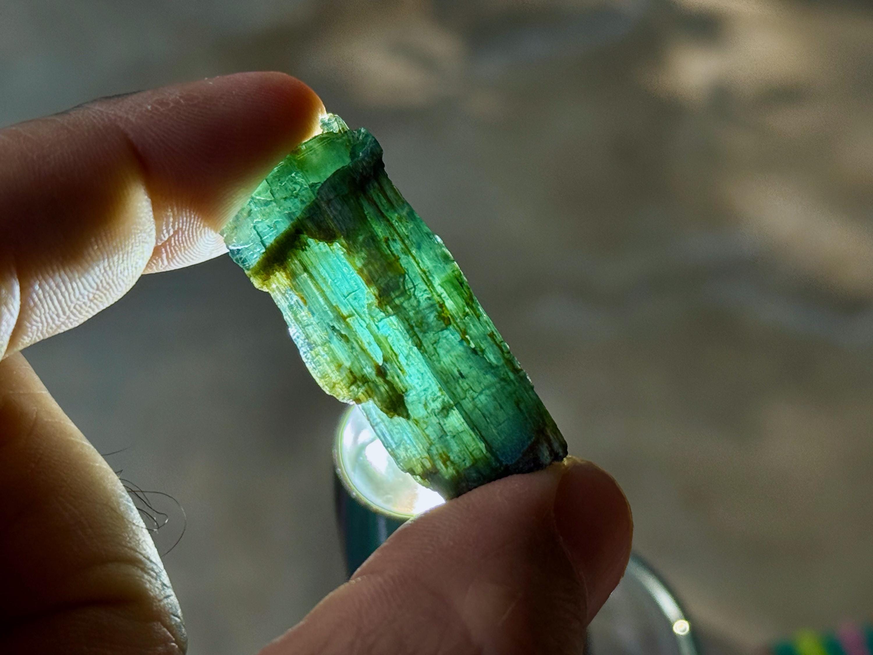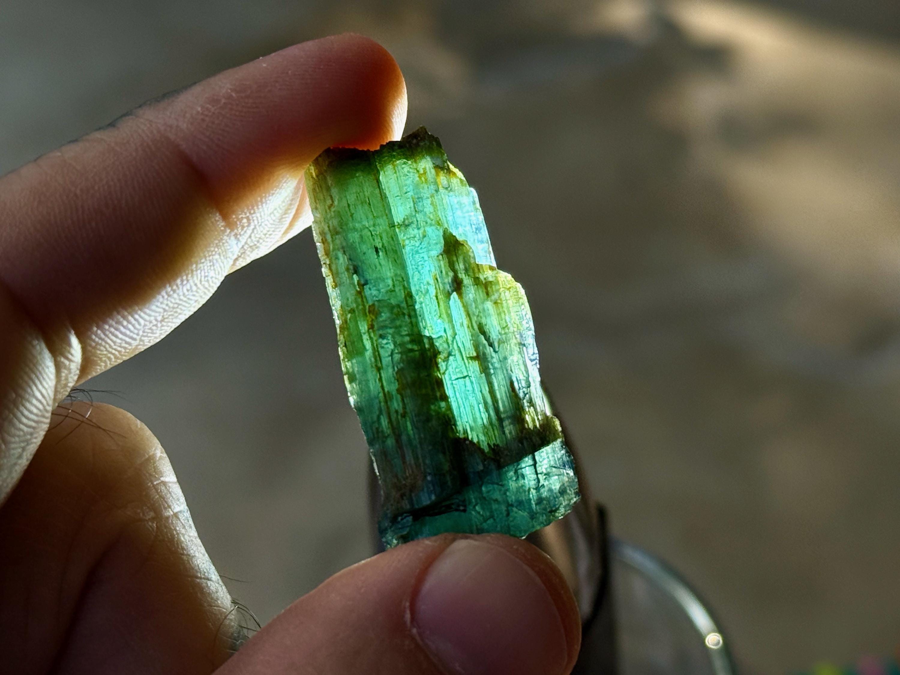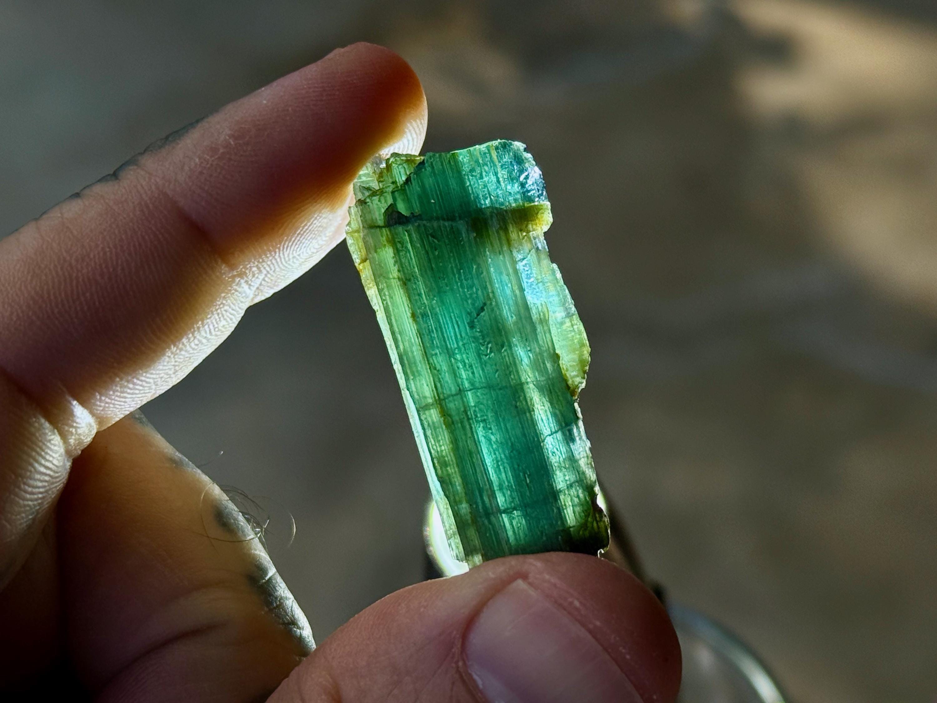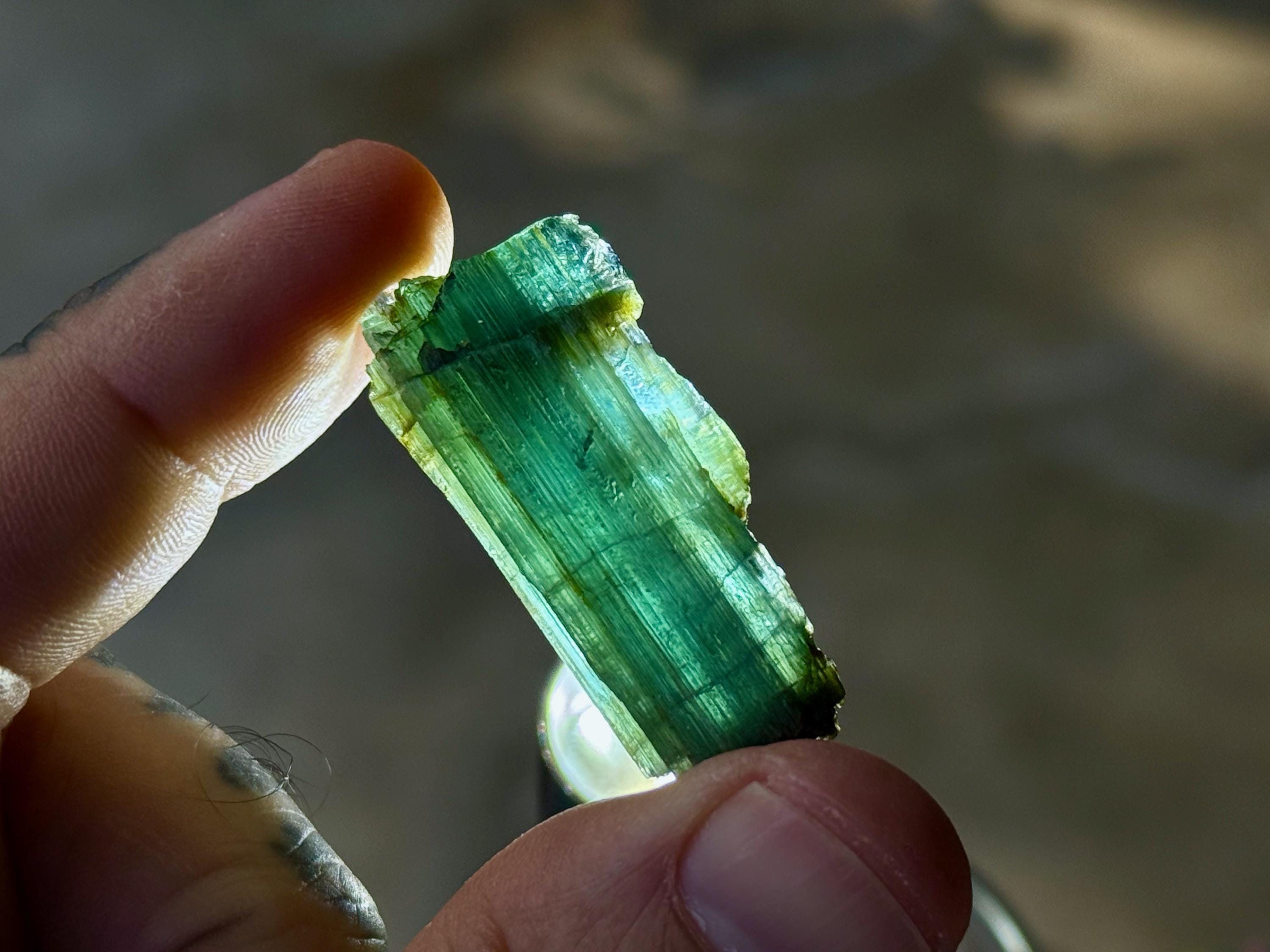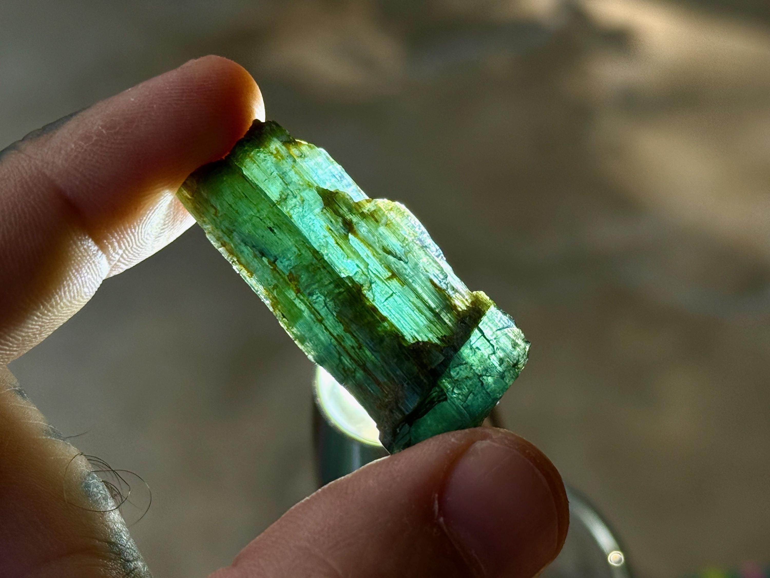 *These photos were taken in partially shaded, natural sunlight, as well as backlit. We've done our best to capture the true colors of this piece, but as with any gem tourmaline, please note that the color can vary a little depending on the lighting environment it is being viewed in.