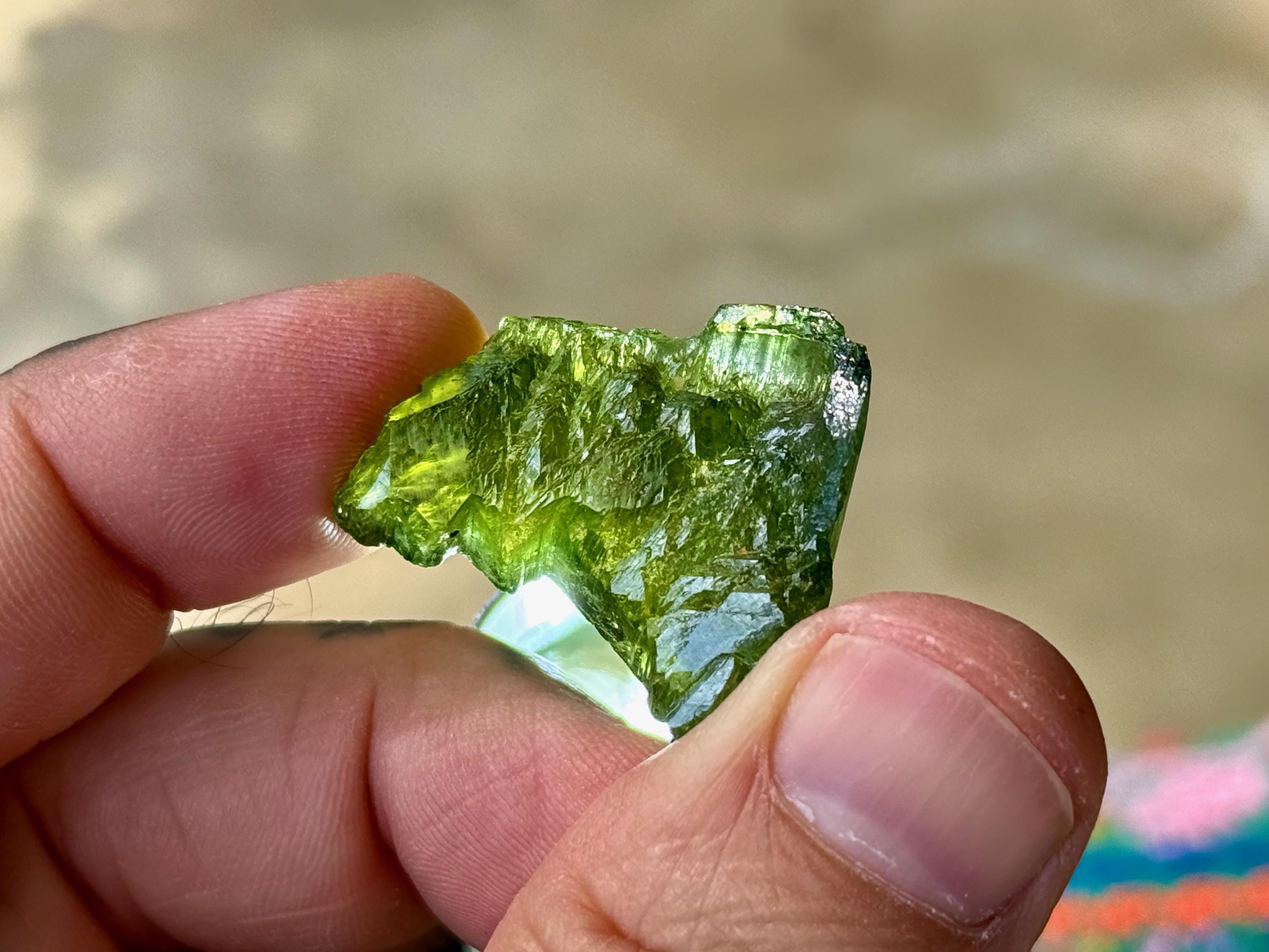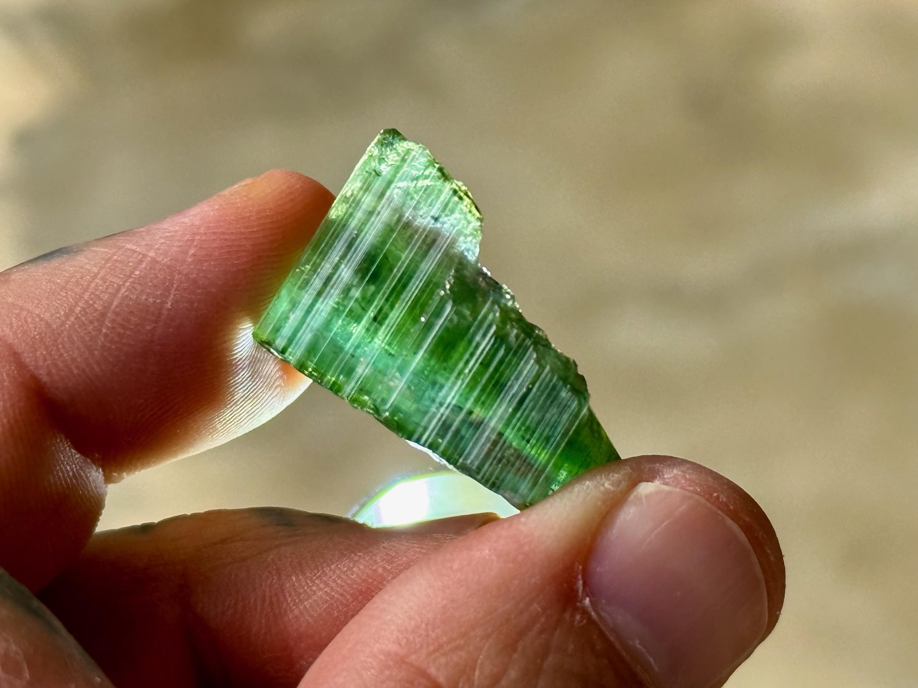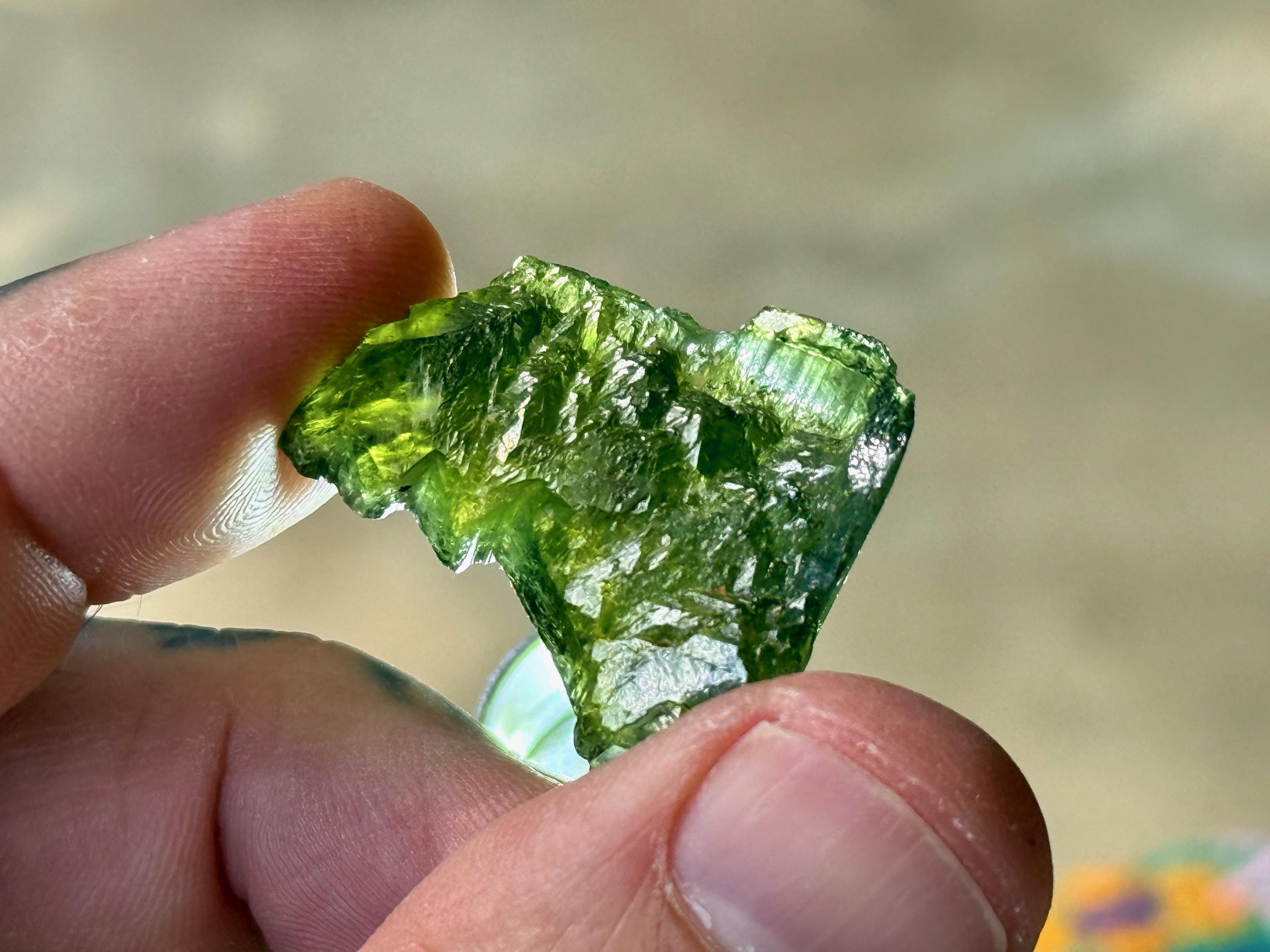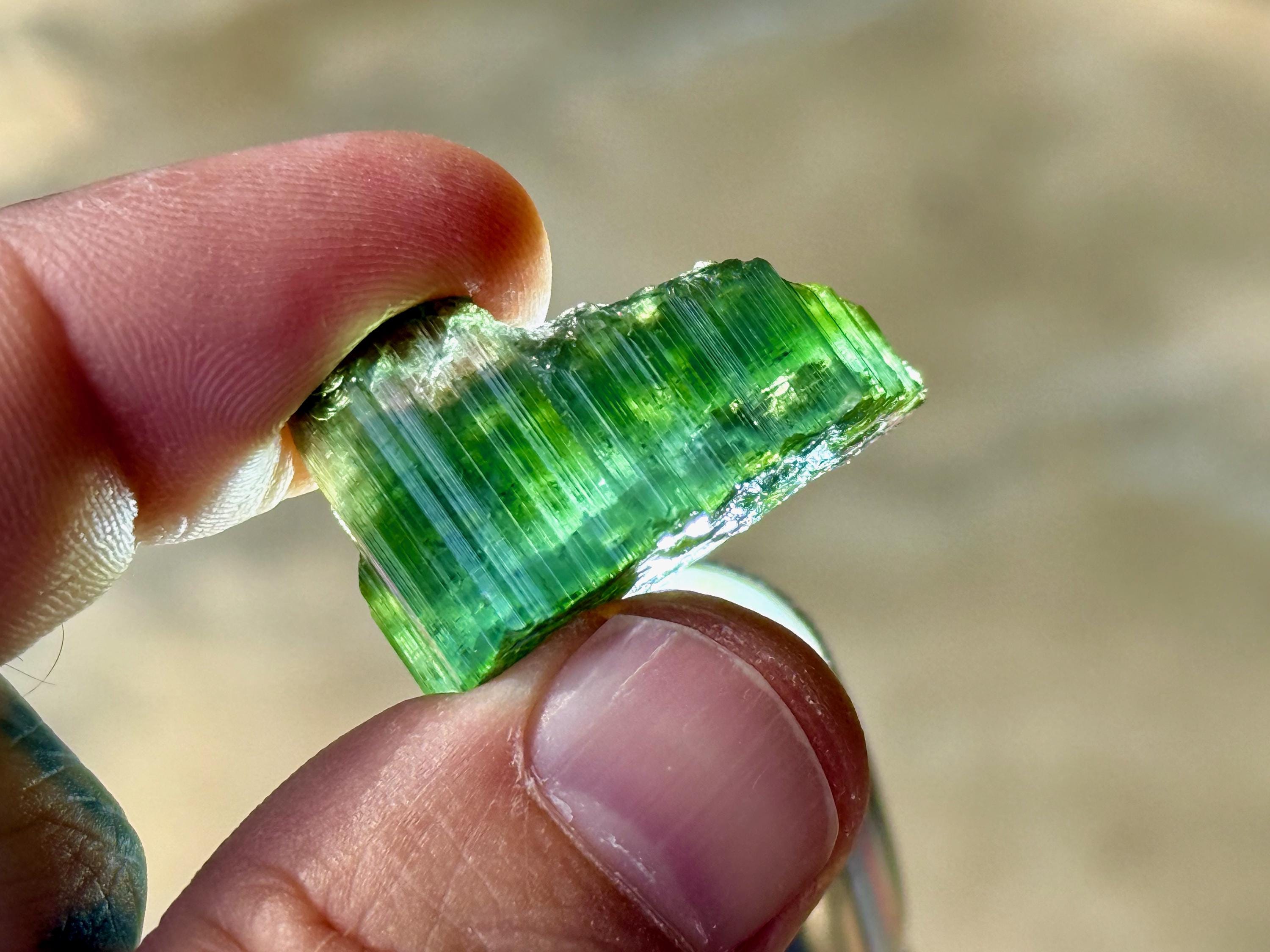 *These photos were taken in partially shaded, natural sunlight, as well as backlit. We've done our best to capture the true colors of this piece, but as with any gem tourmaline, please note that the color can vary a little depending on the lighting environment it is being viewed in.