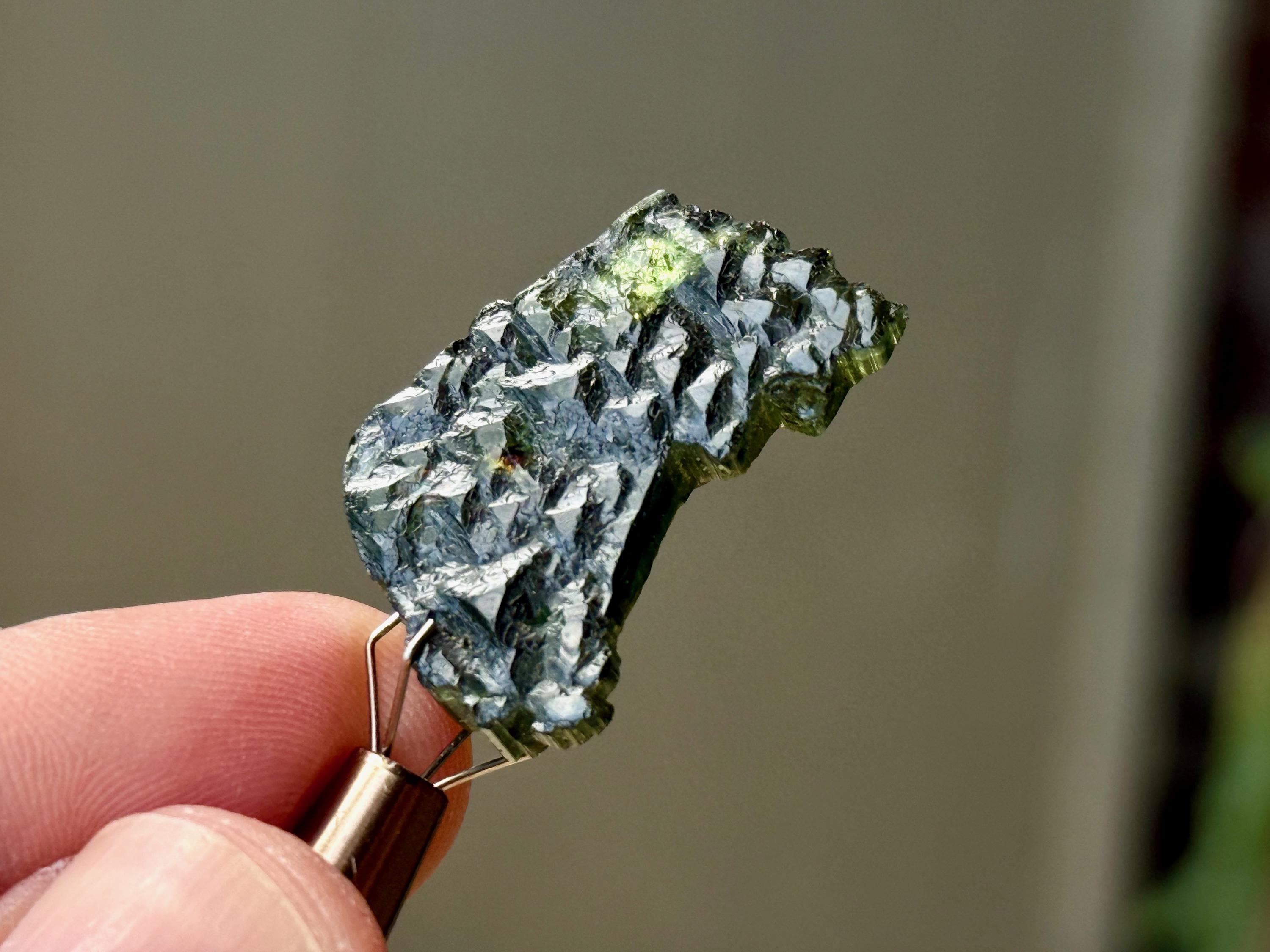 This crystal is a partial formation, but is entirely healed all around. The backside features a unique array of triangular textures (Photo 4).