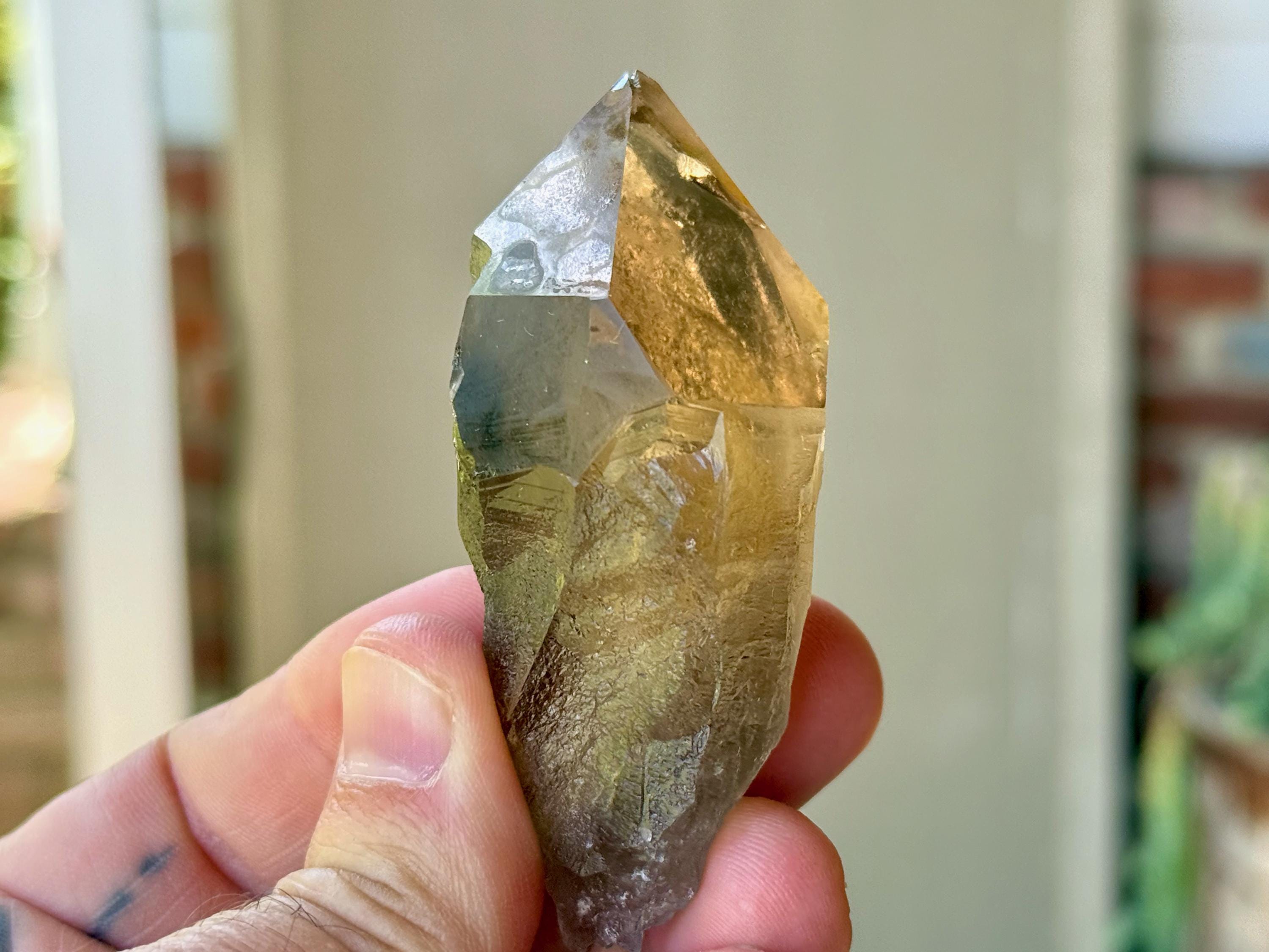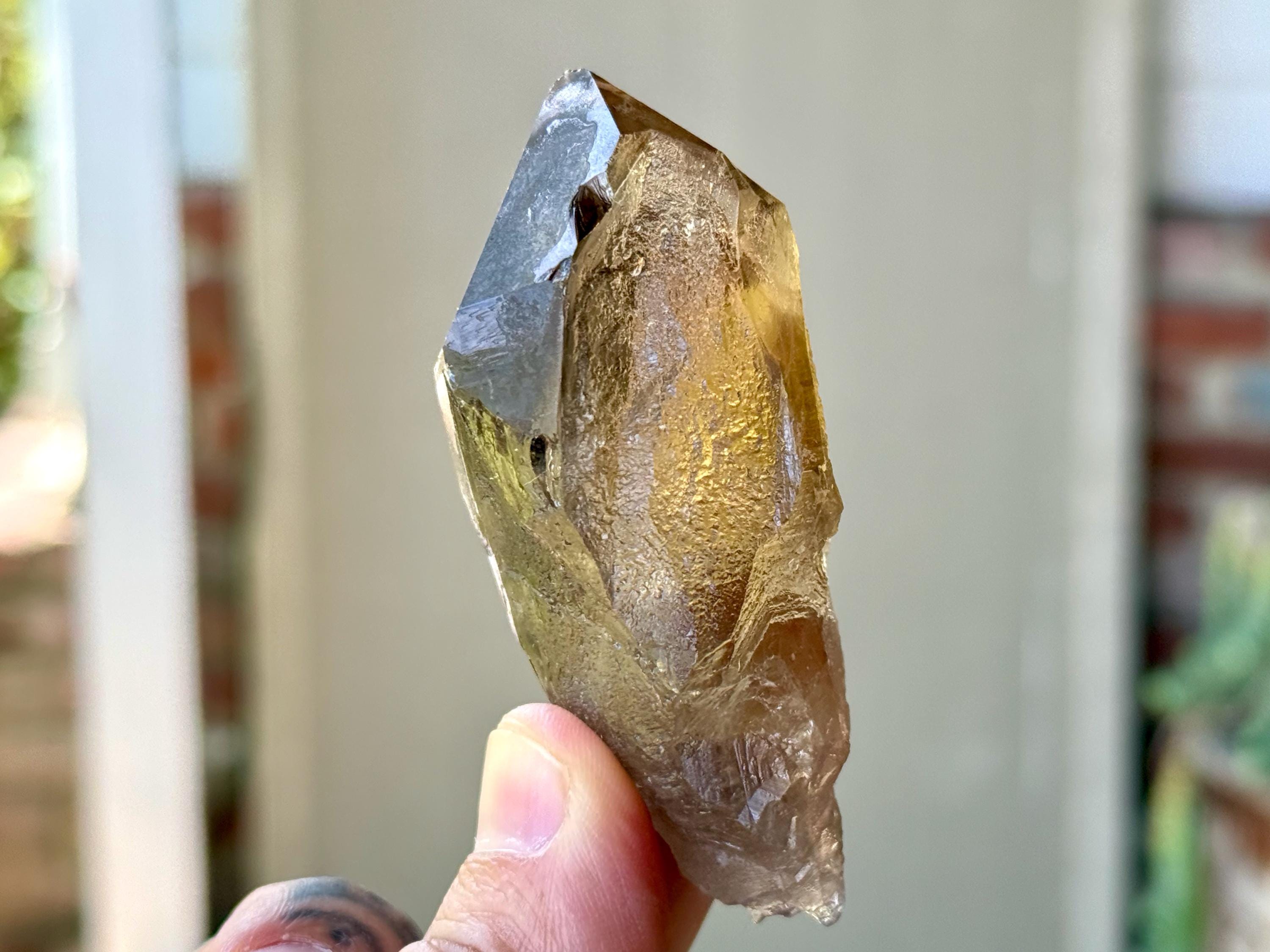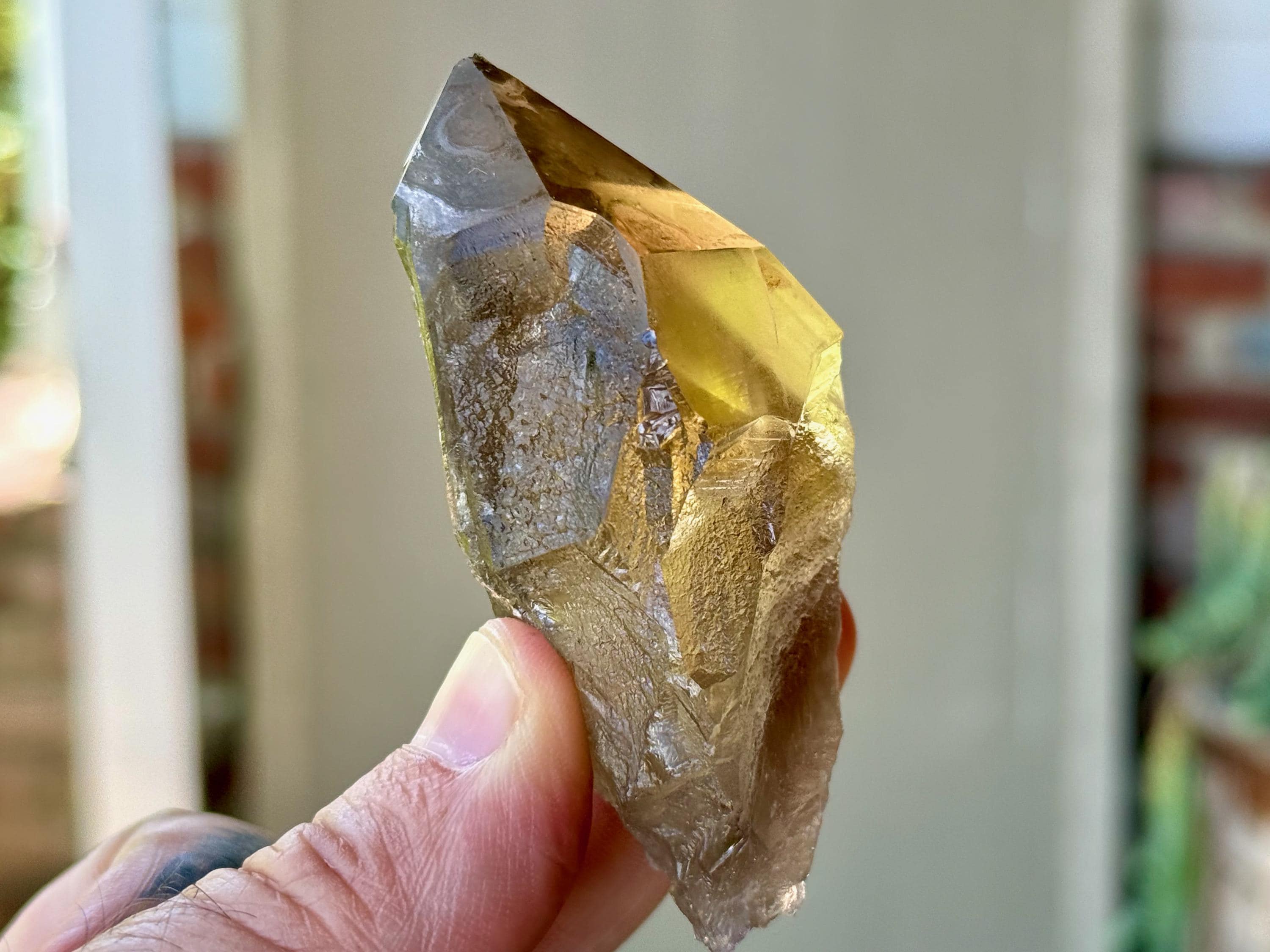 This natural Pele’s Dream Lemurian Citrine comes from a recent (2025) find in Cristalina, Goiás, Brazil.