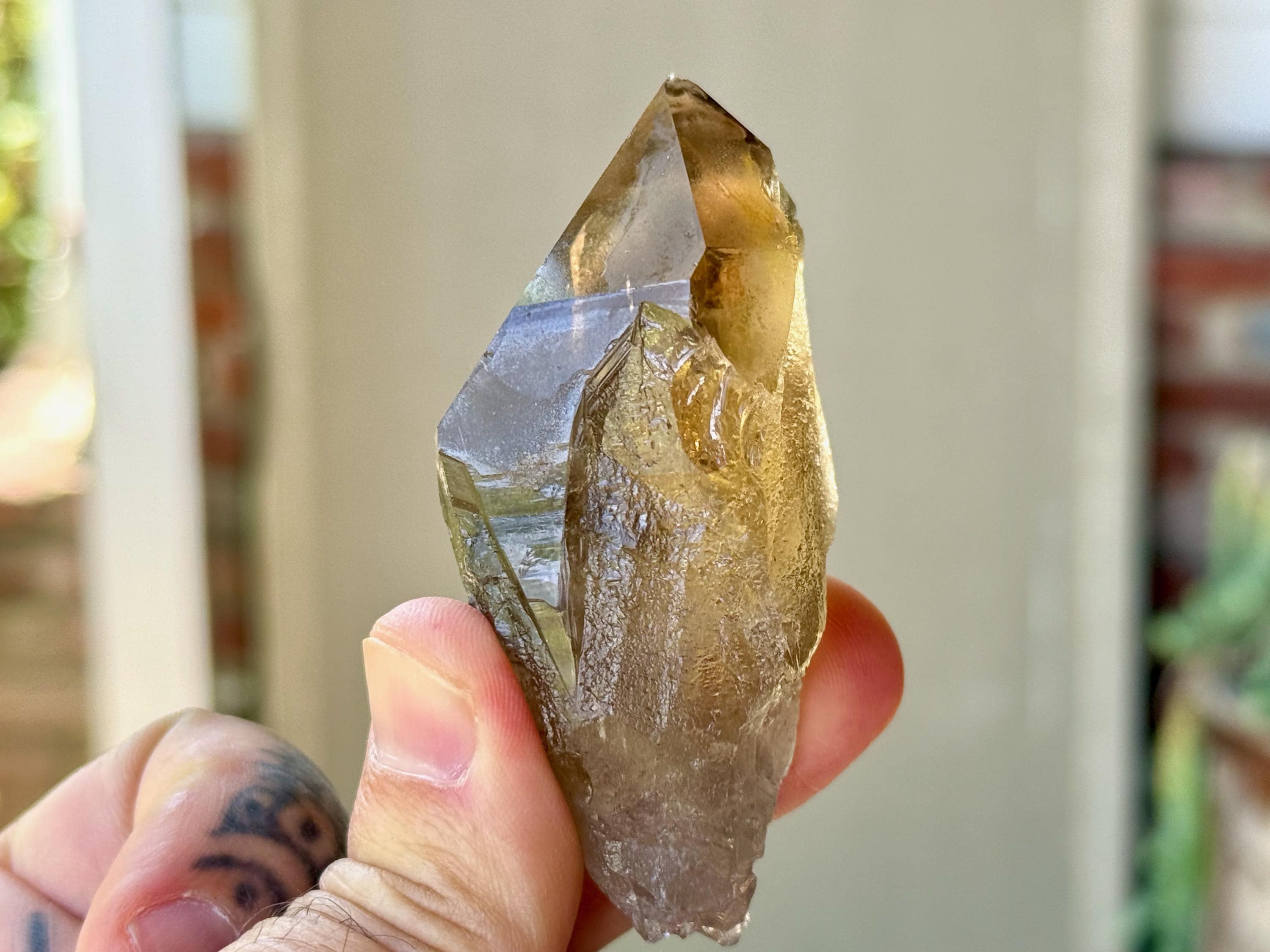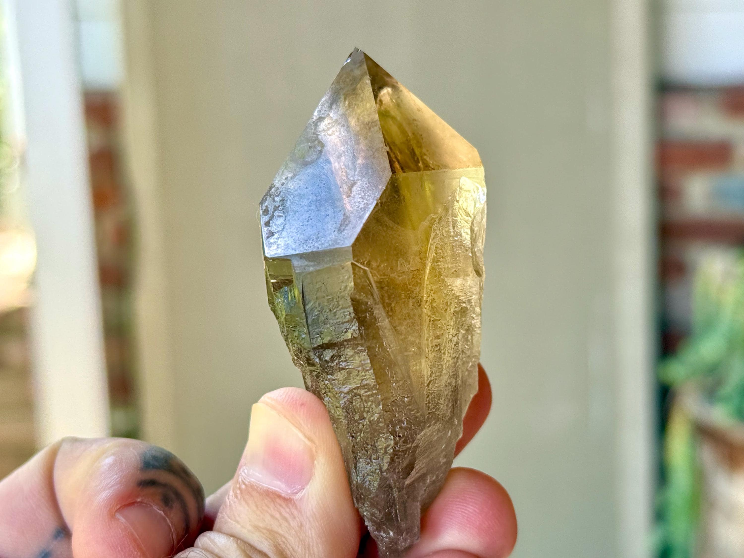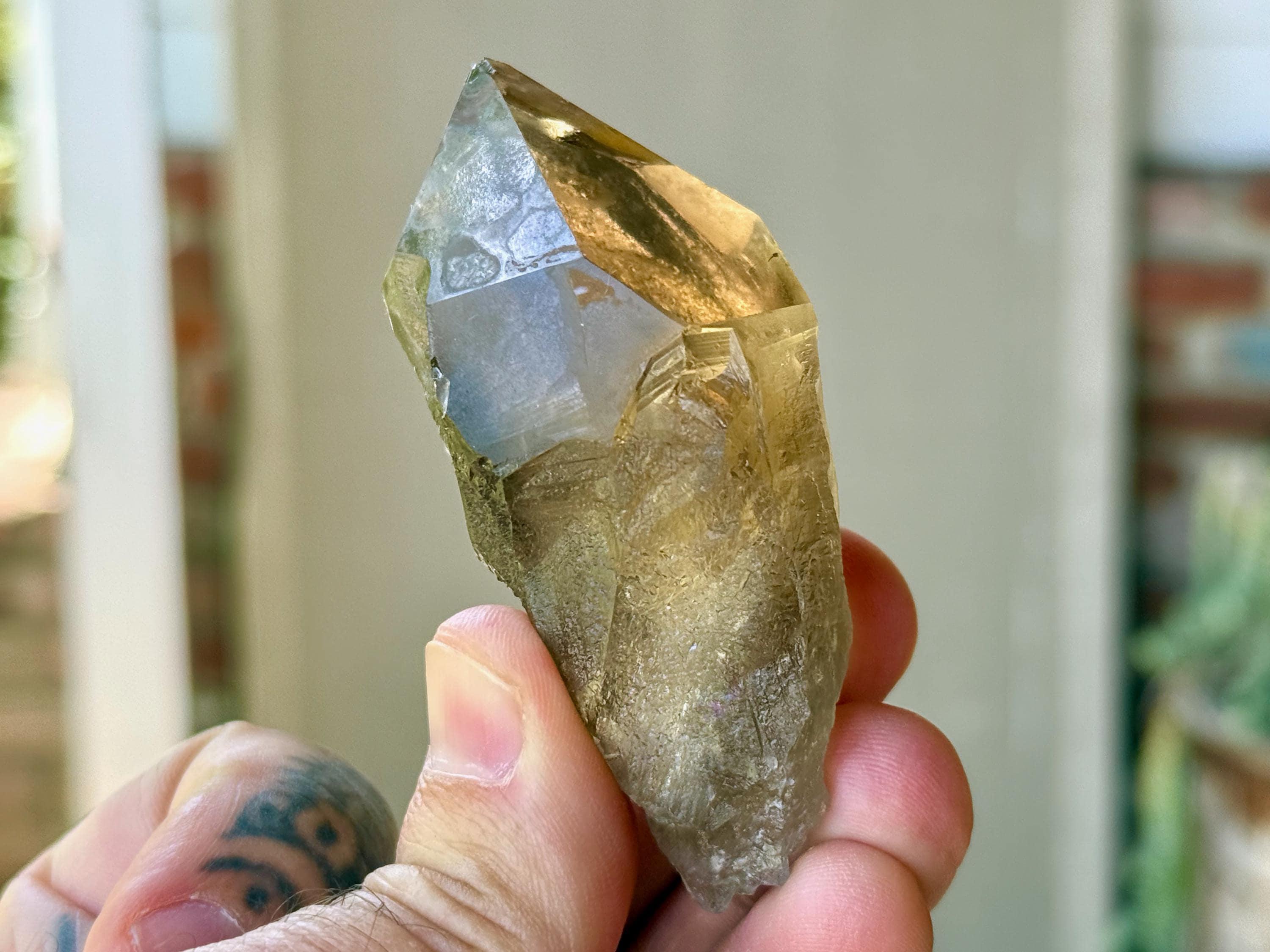 This natural Pele’s Dream Lemurian Citrine comes from a recent (2025) find in Cristalina, Goiás, Brazil.