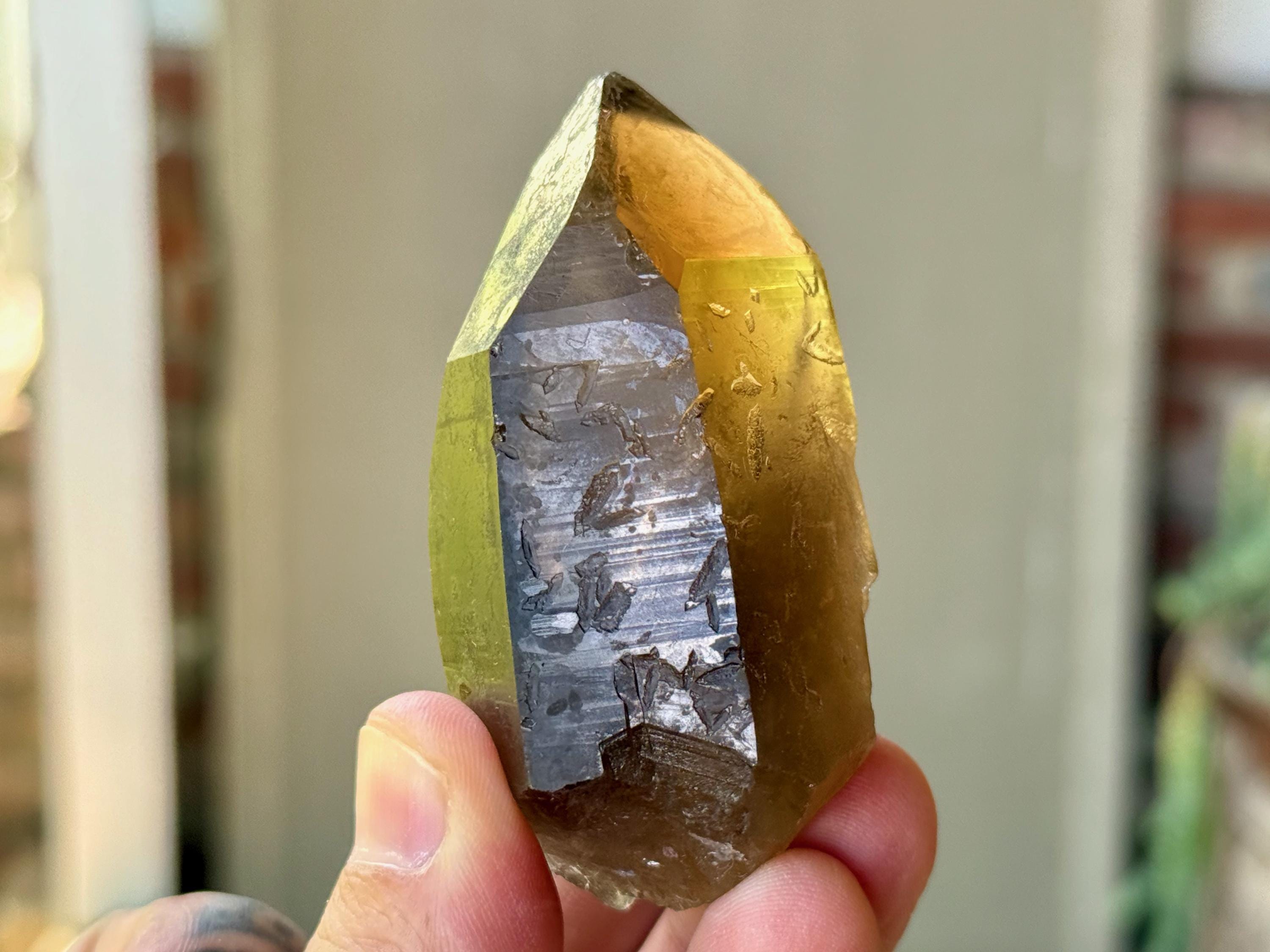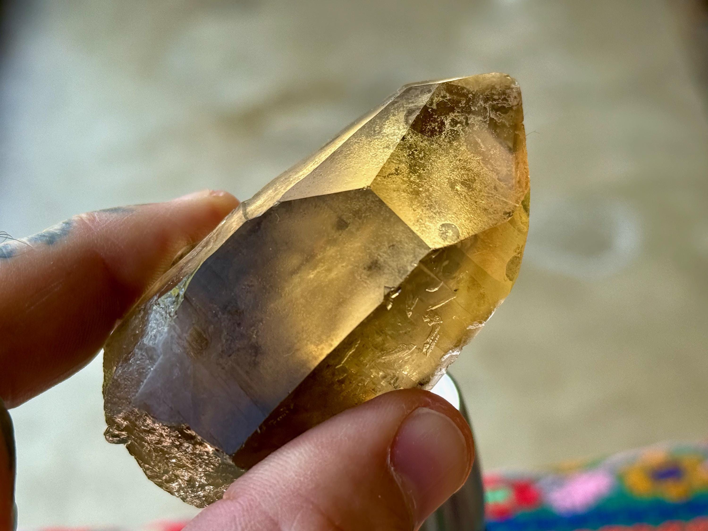 This natural Pele’s Dream Lemurian Citrine comes from a recent (2025) find in Cristalina, Goiás, Brazil.