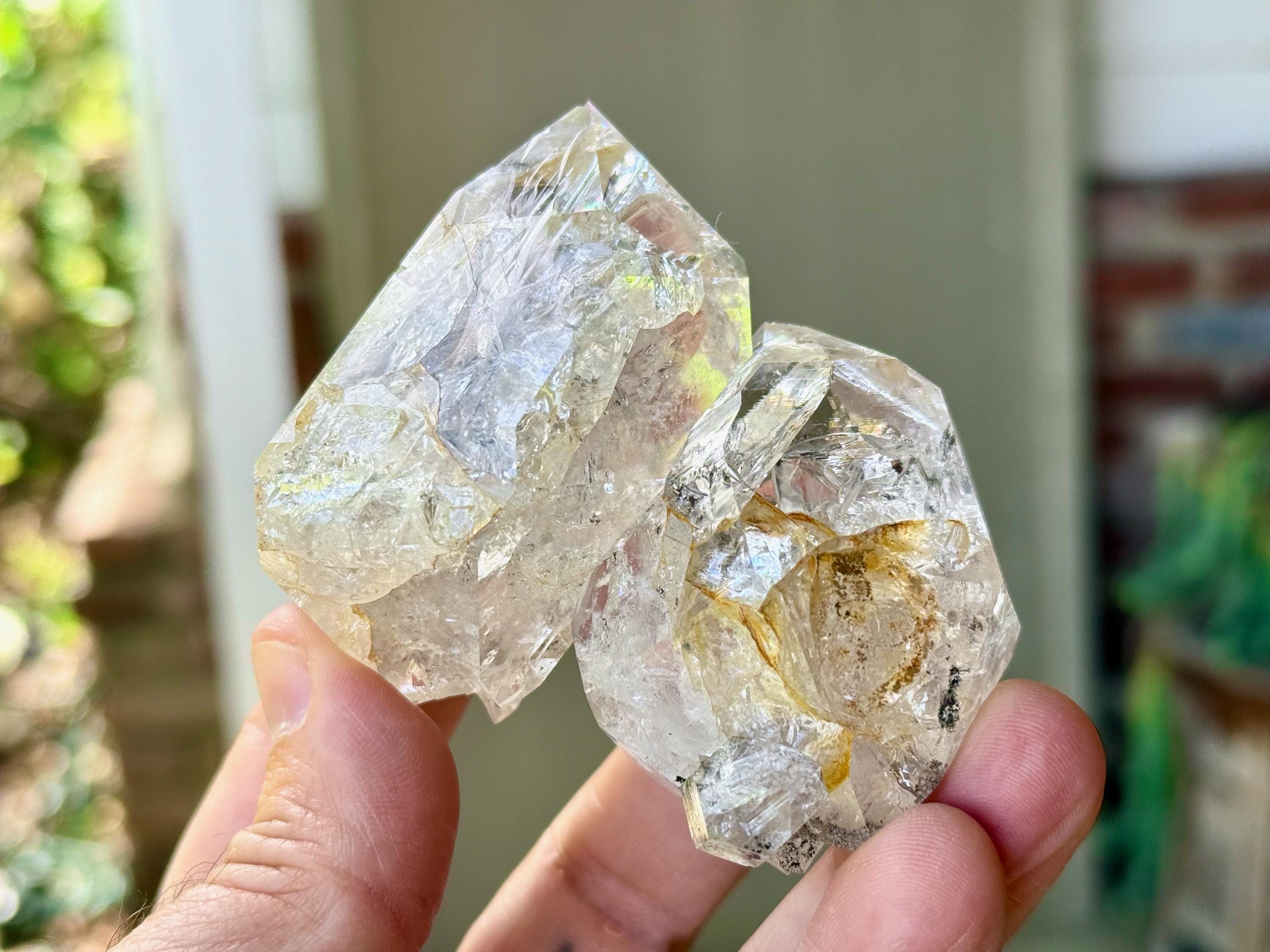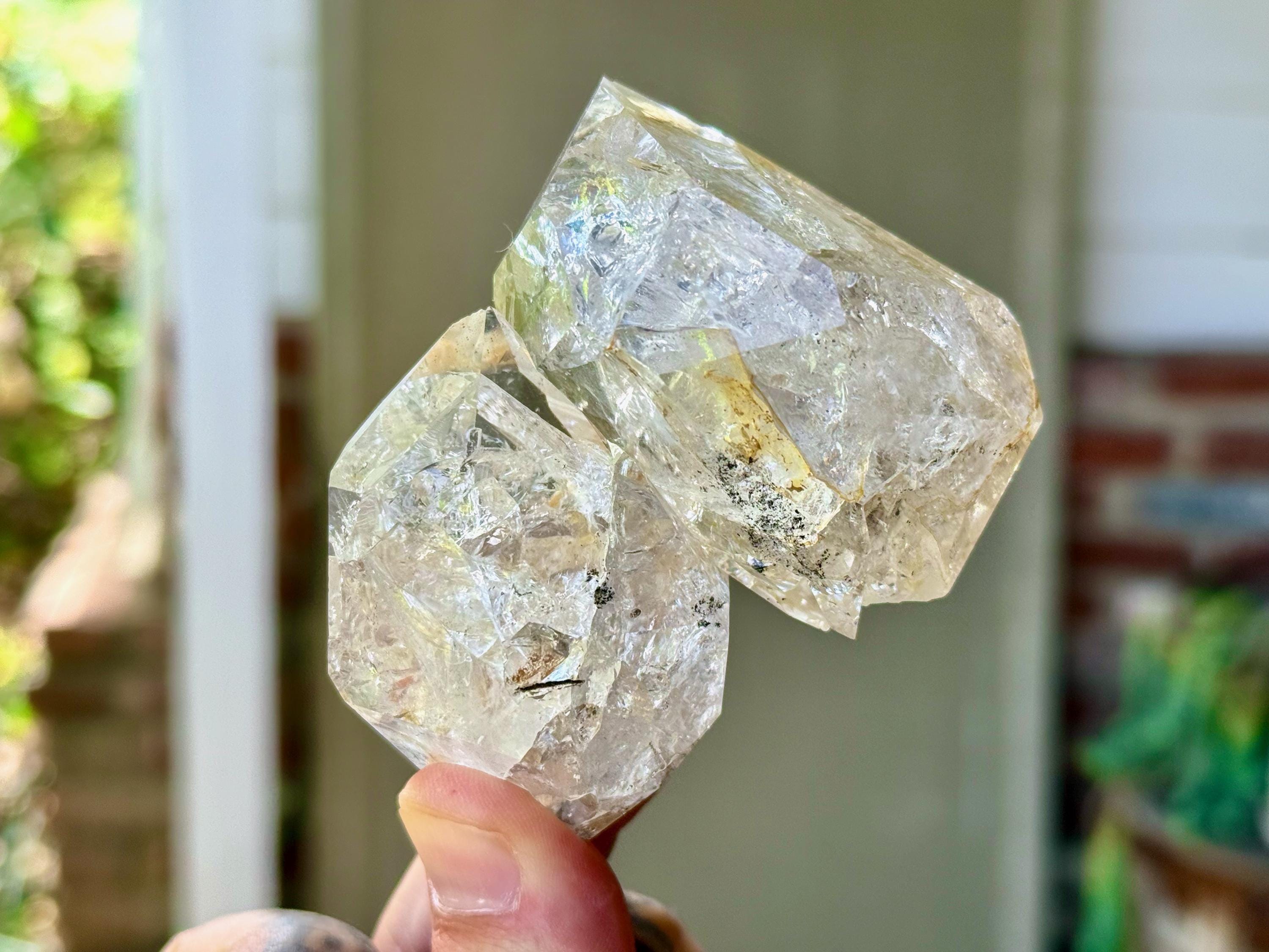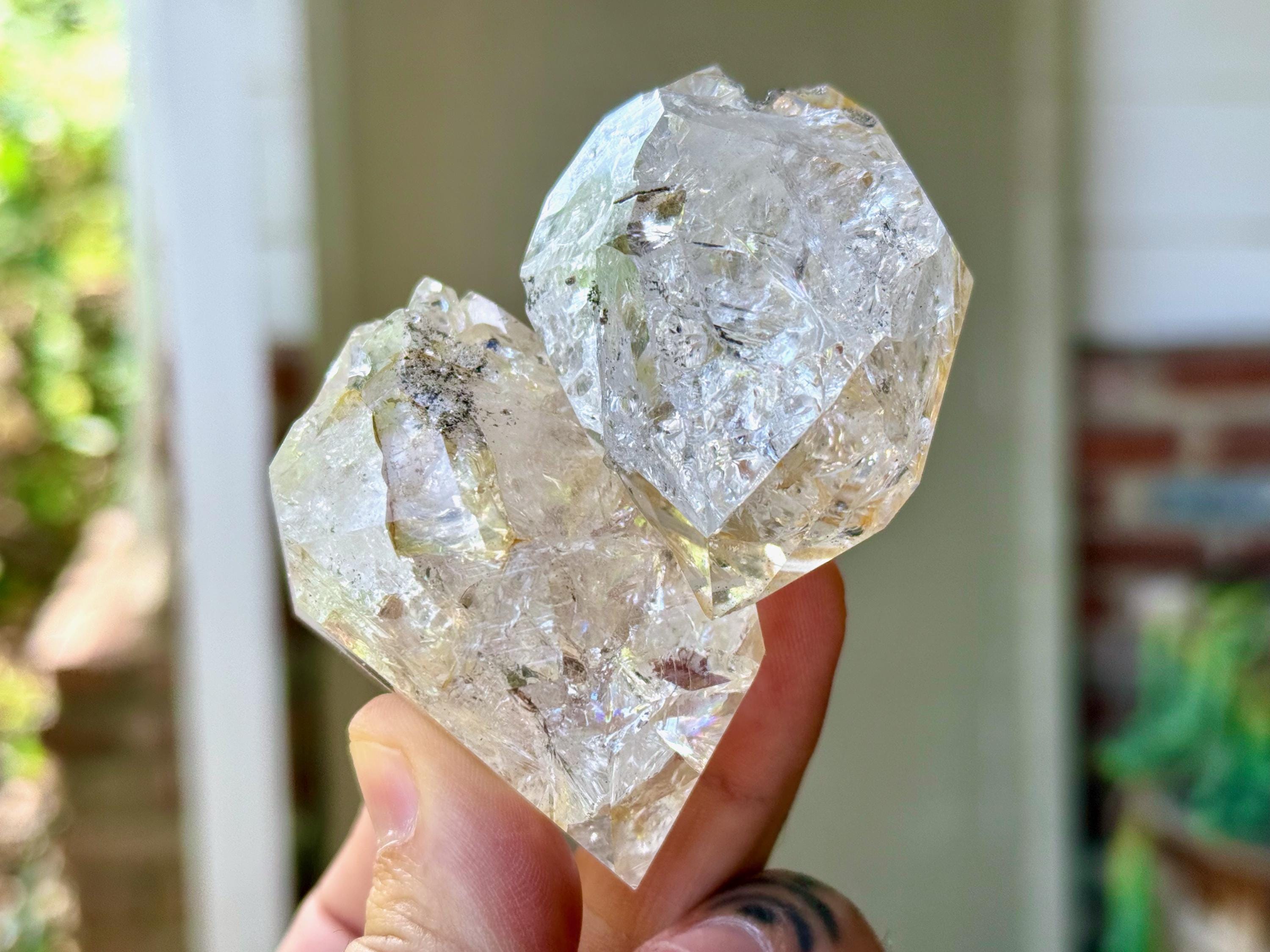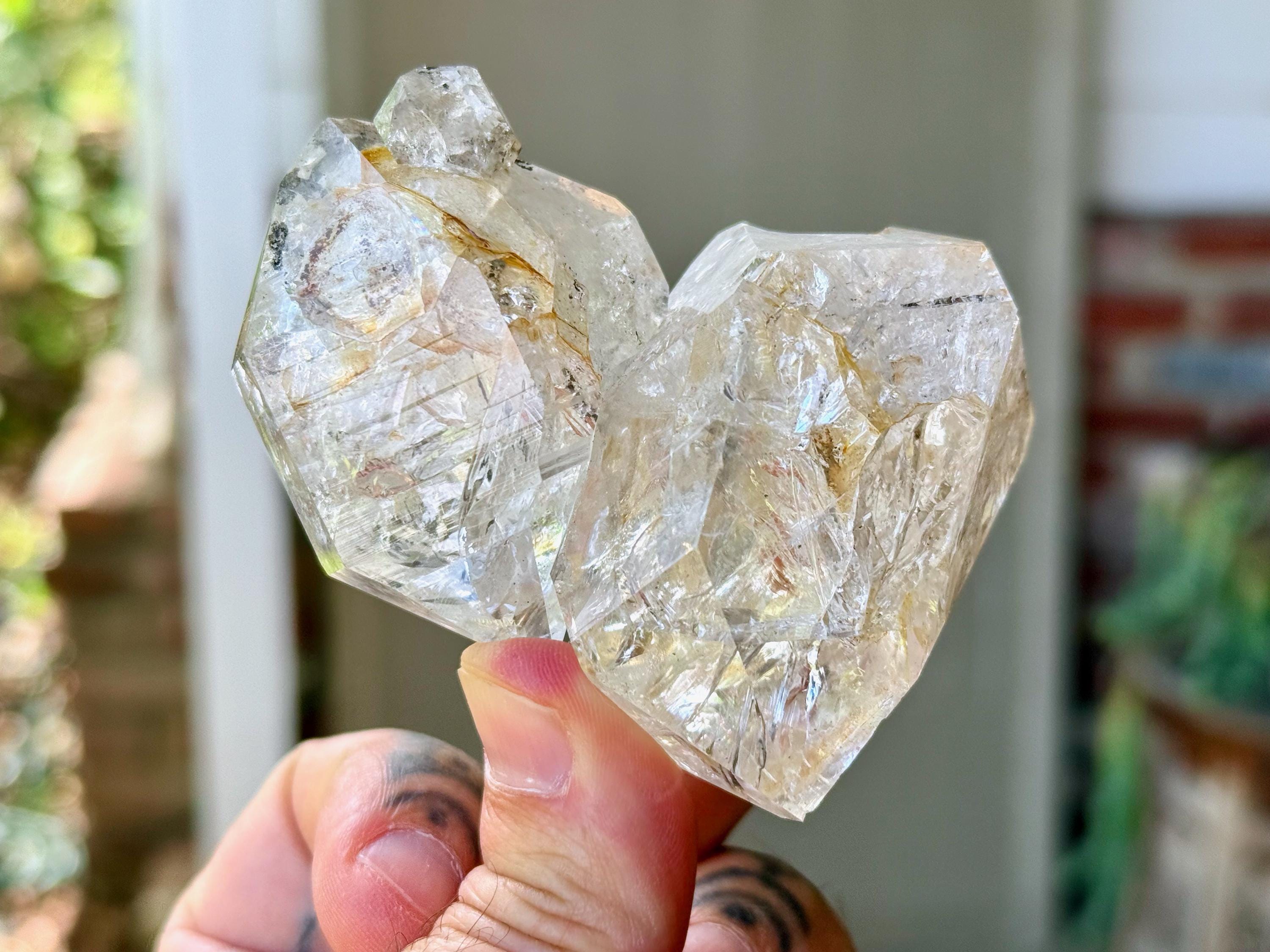 The formation is a Tantric Twin, or perhaps a "chain," with two crystals linked together. What's very special is that when held up, they make a heart-shape. Super sweet.