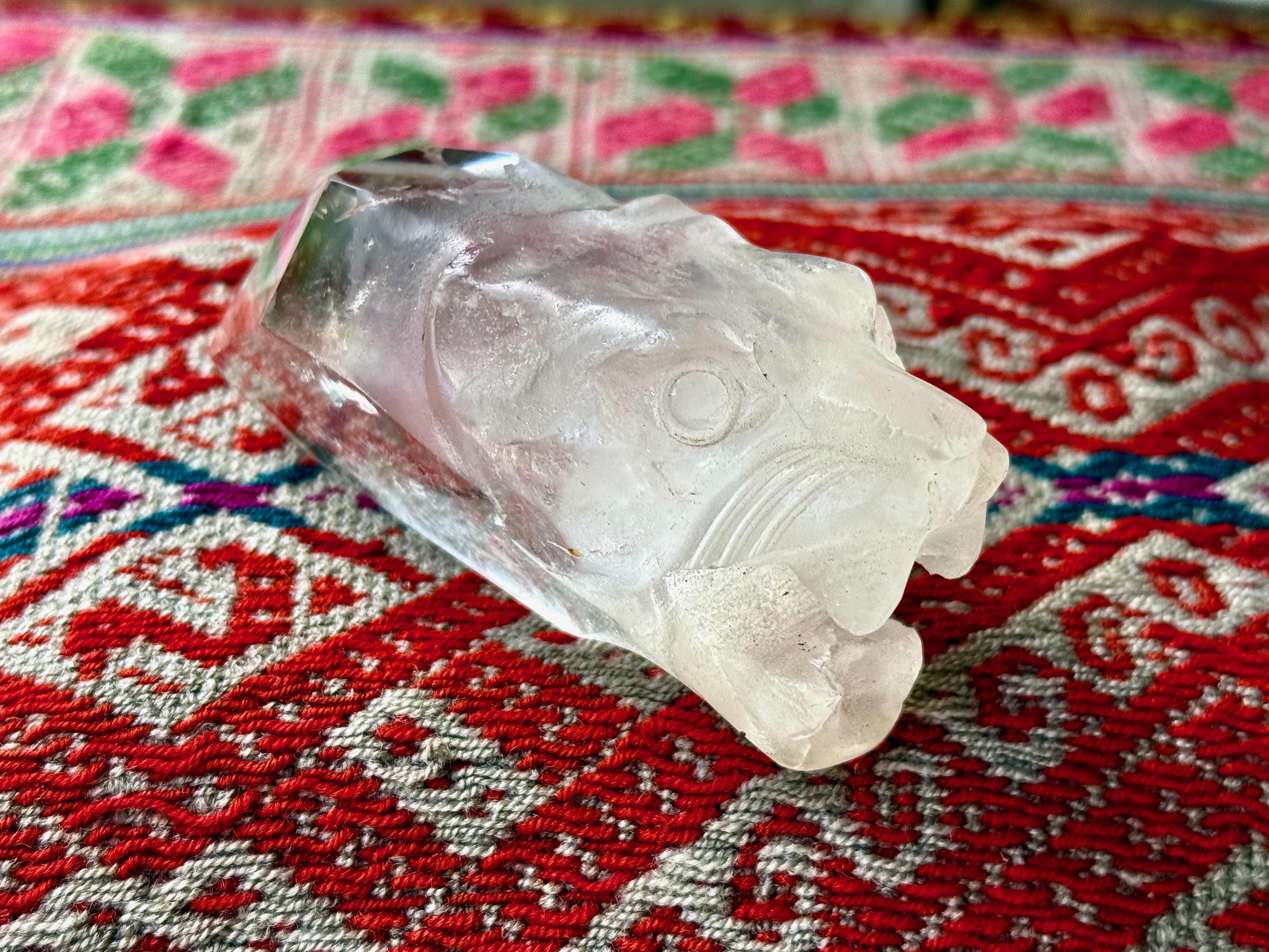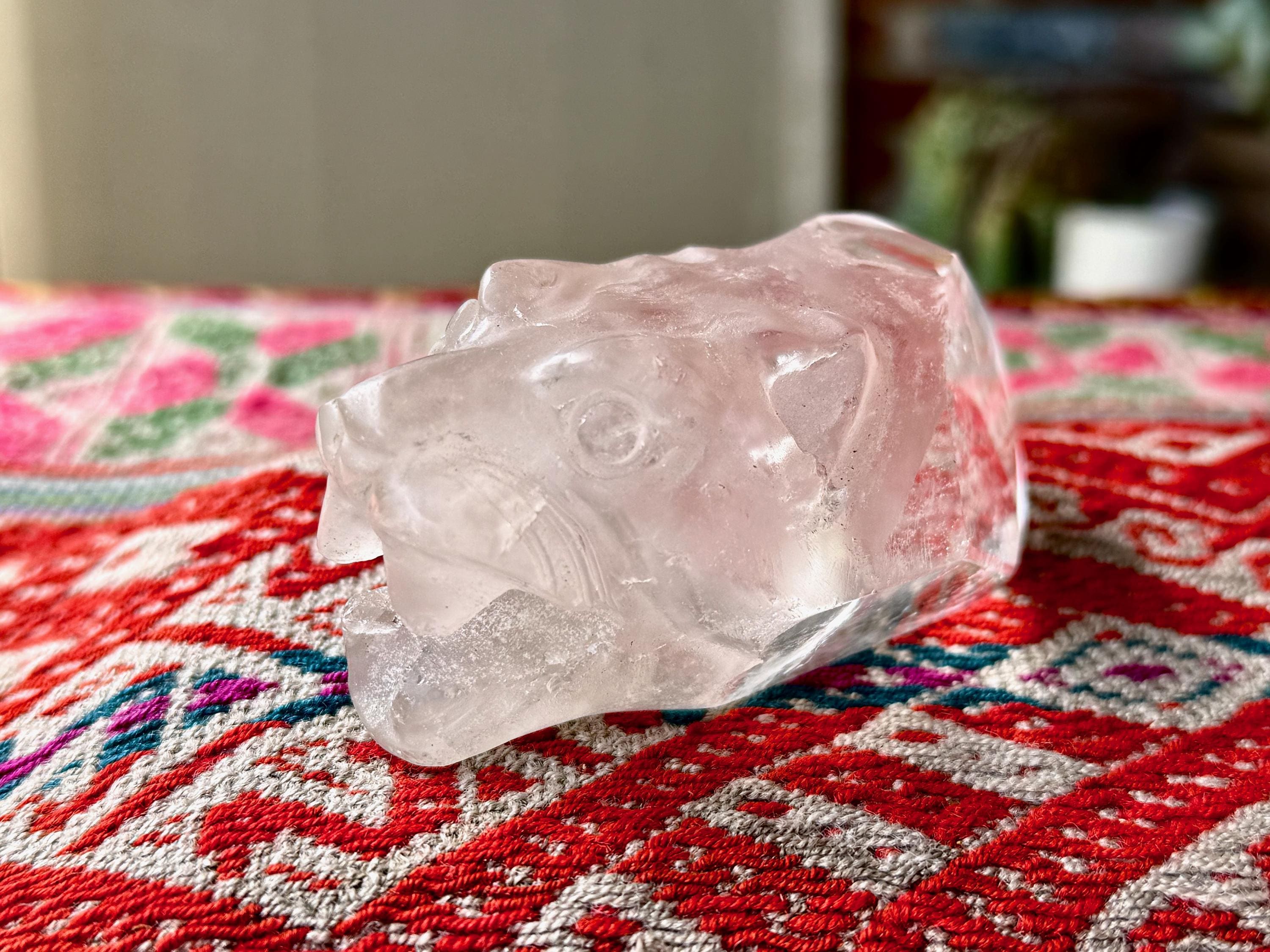 This exquisite Quartz Jaguar was hand carved from a piece of native Quartz by Peruvian artist Mario Deza in Peru's Sacred Valley.