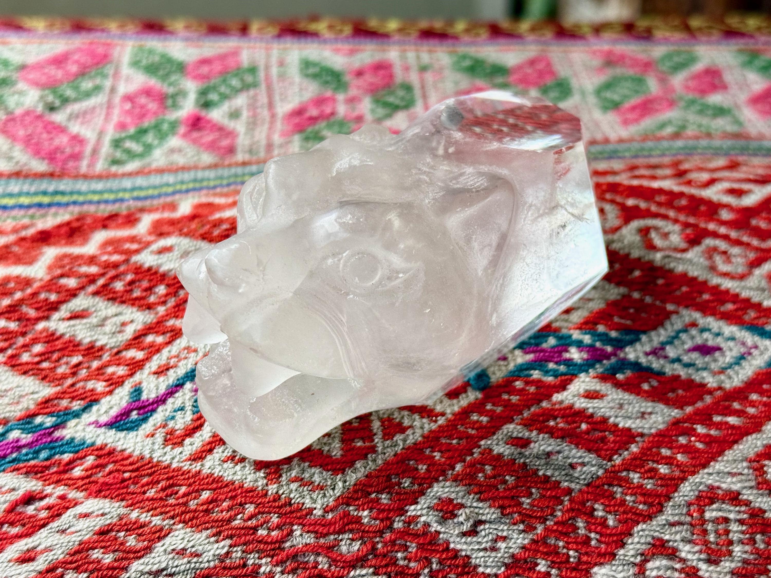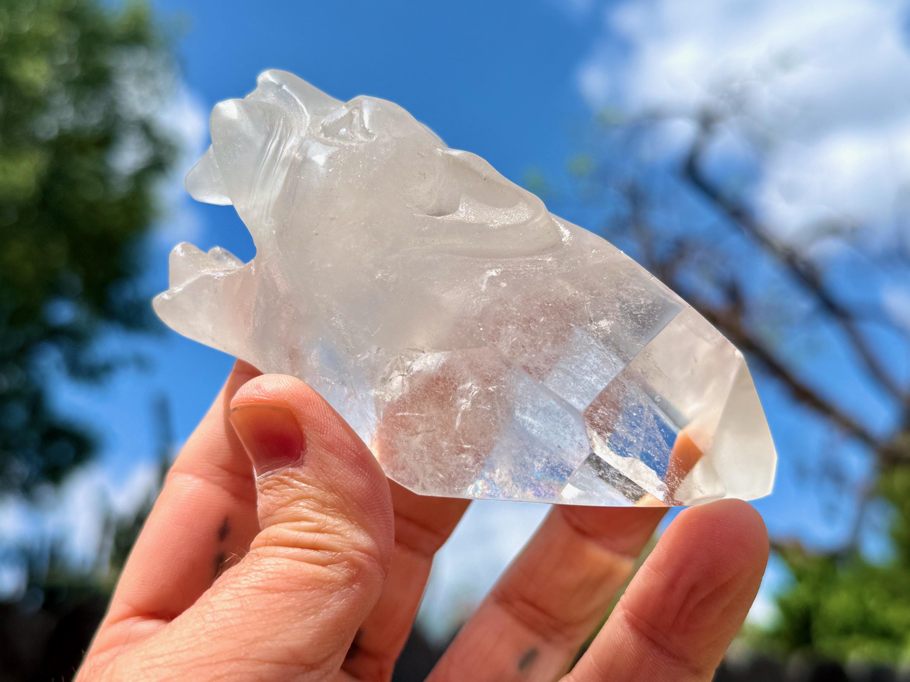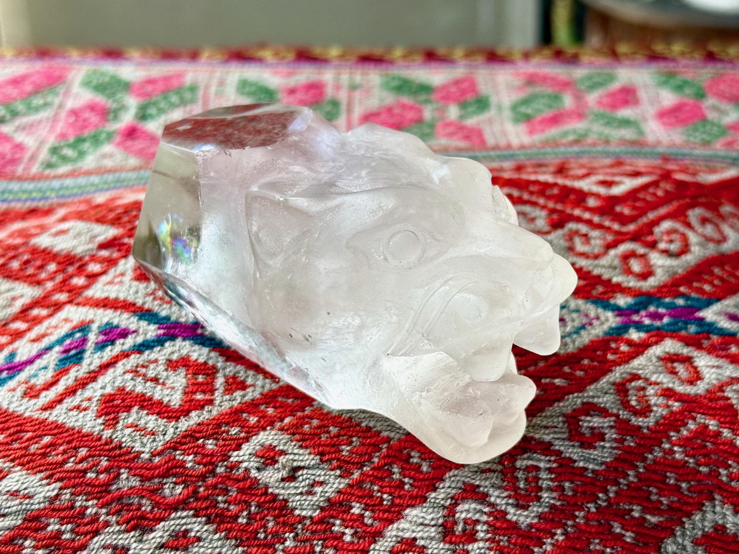 This exquisite Jaguar Quartz Crystal was hand carved from native Quartz by Peruvian artist Mario Deza in Peru's Sacred Valley.