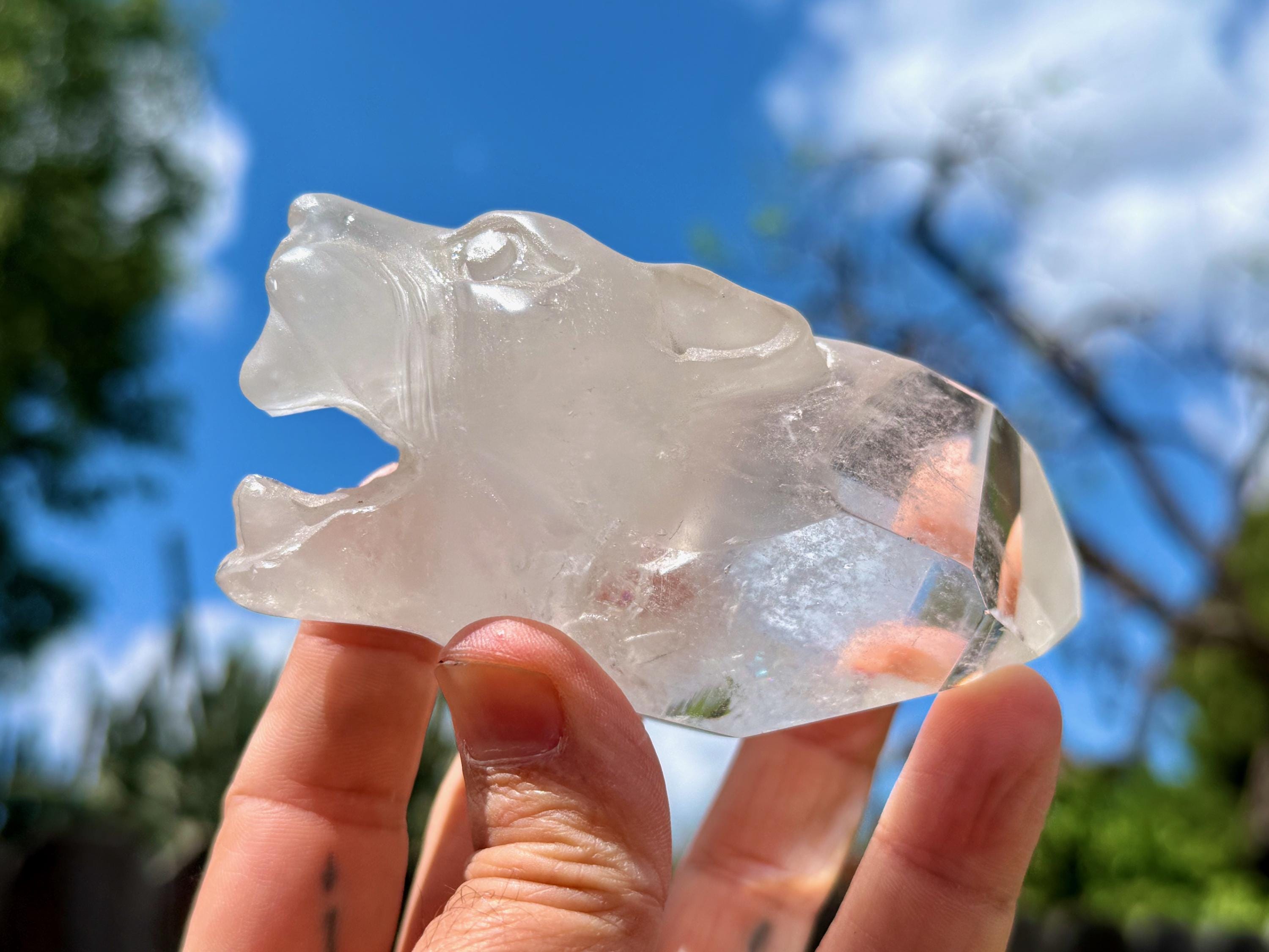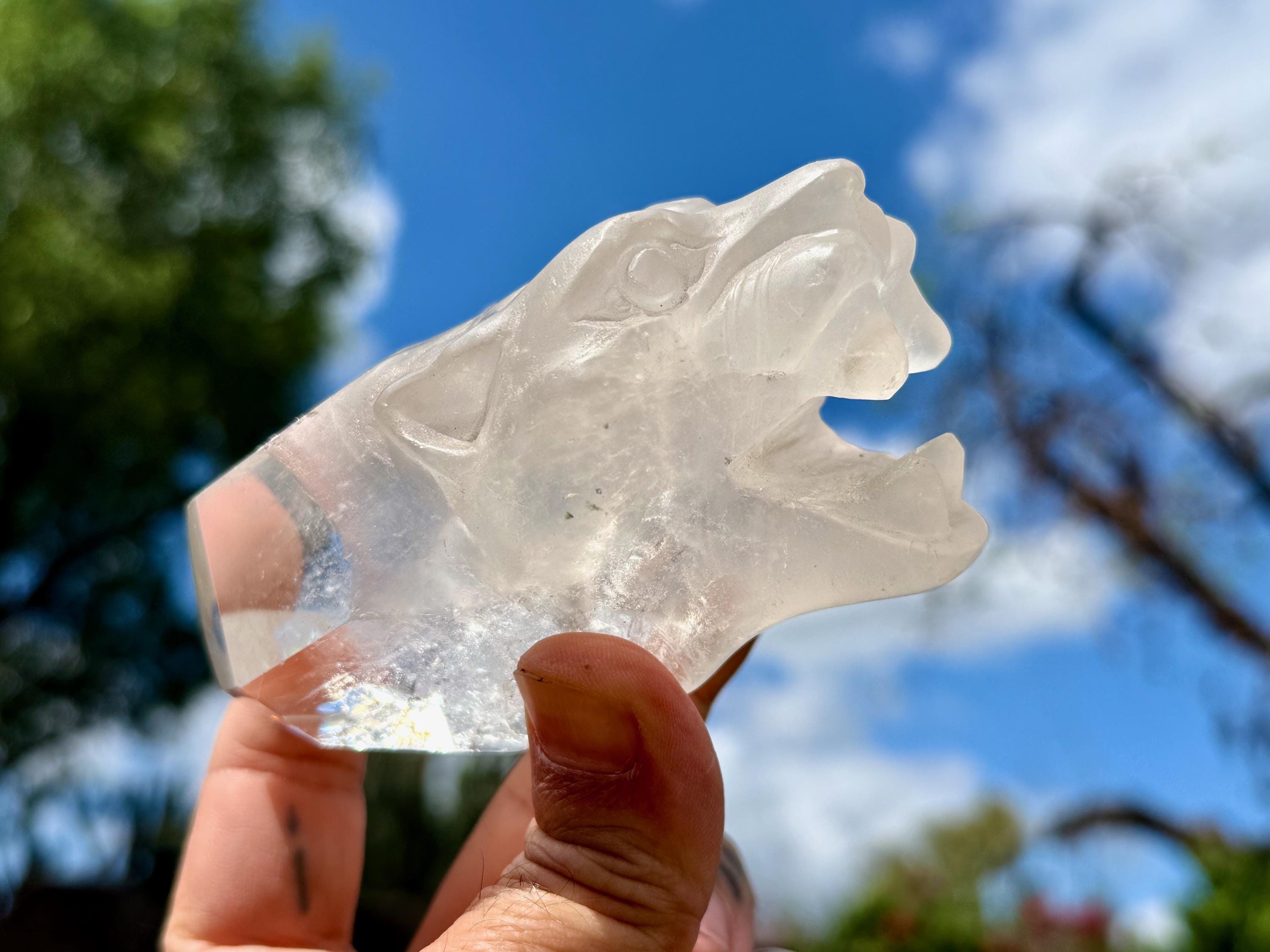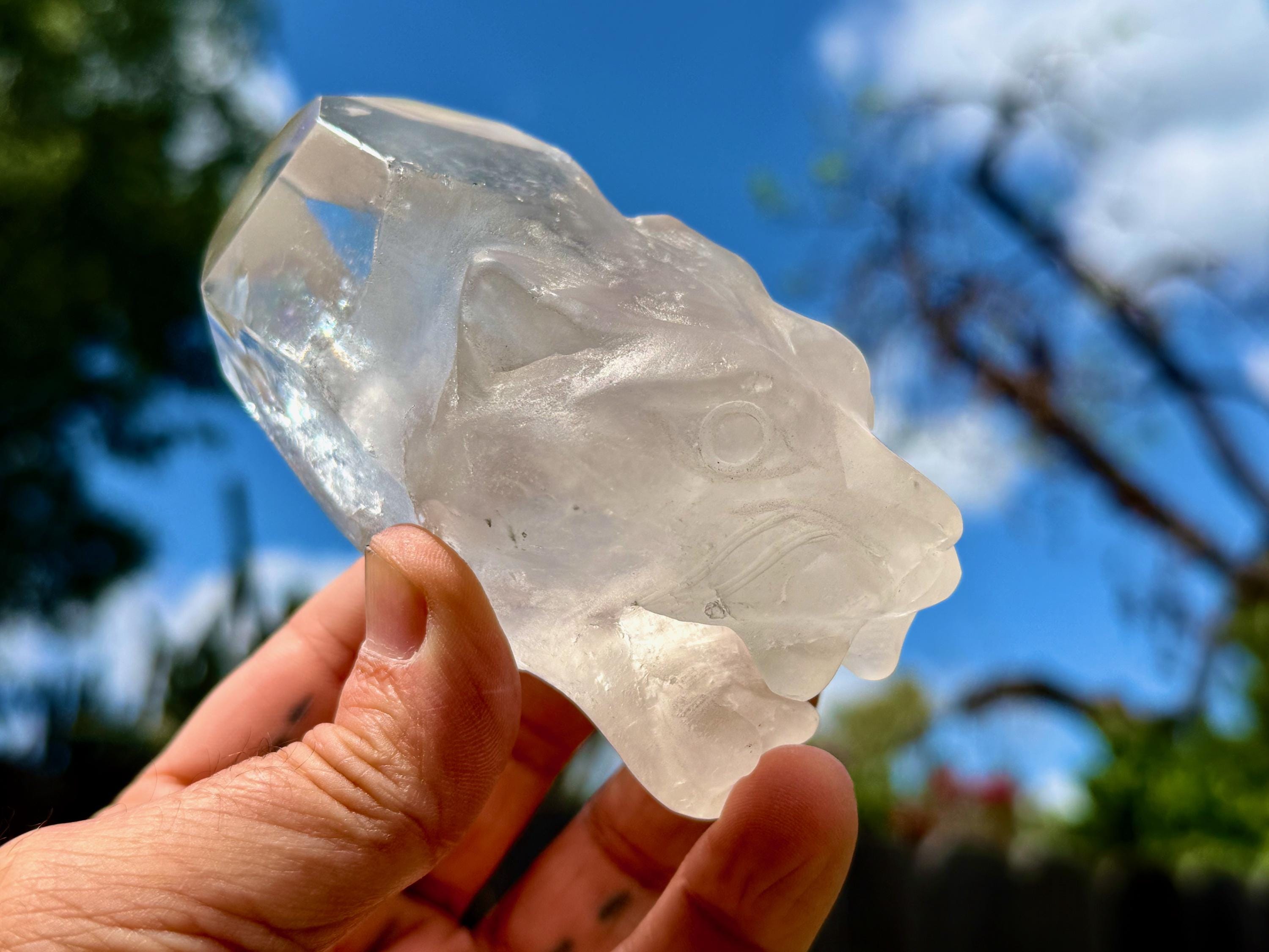 This exquisite Jaguar Quartz Crystal was hand carved from native Quartz by Peruvian artist Mario Deza in Peru's Sacred Valley.