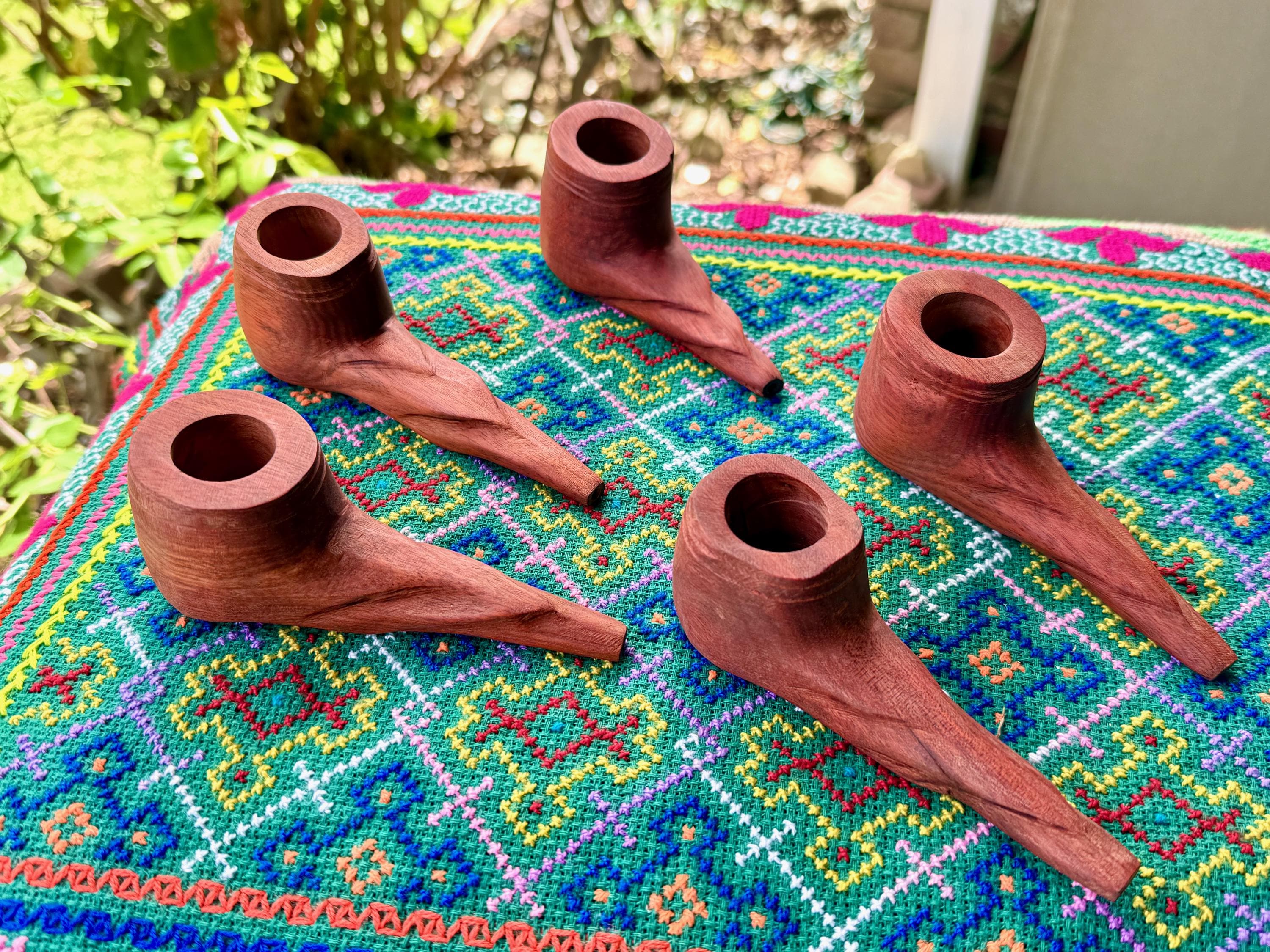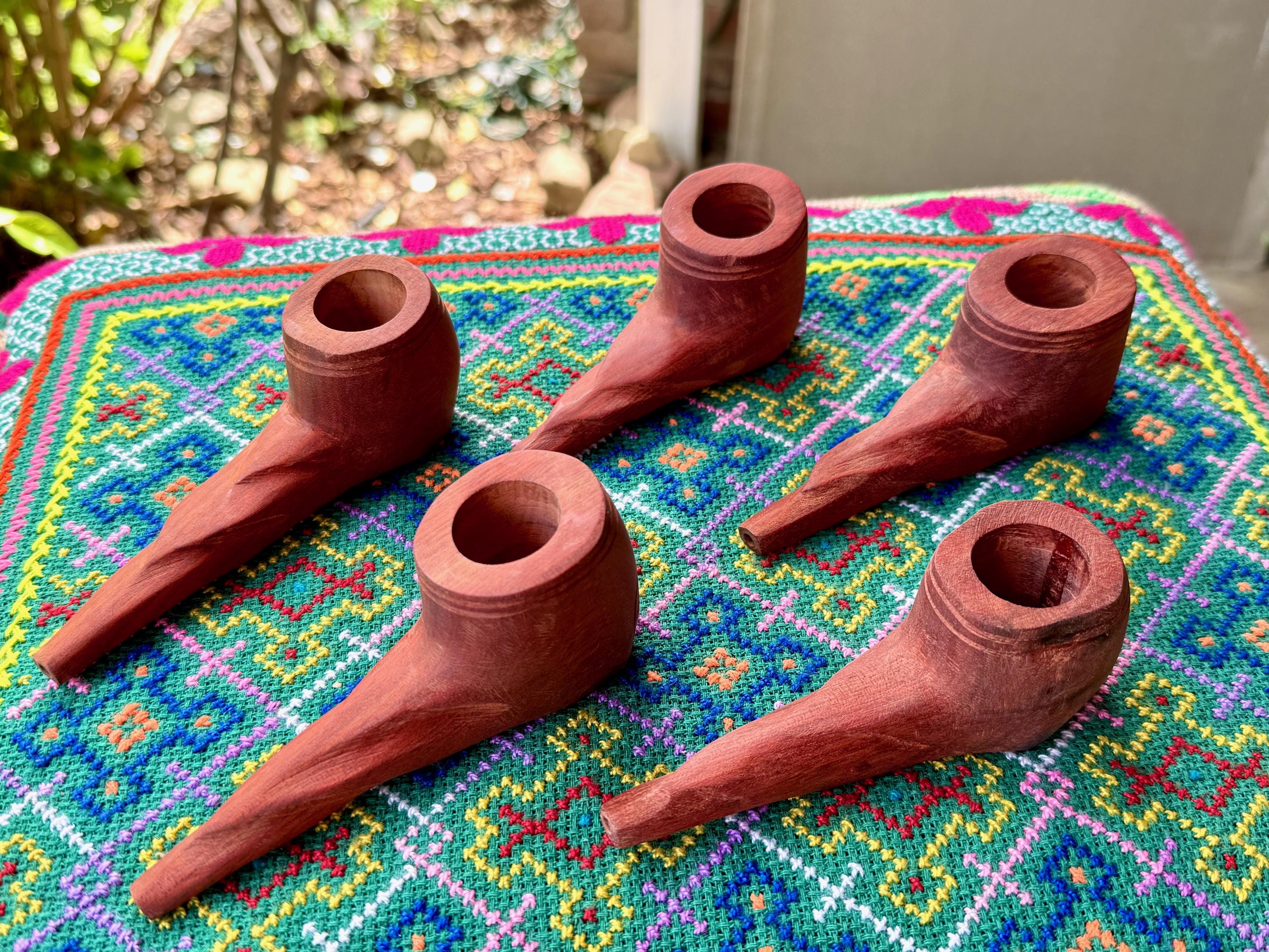 These traditional Shaman Pipes for tobacco or mapacho were hand-carved by Betson Macawashi, an artisan living and working in Pucallpa, in the Peruvian Amazon.