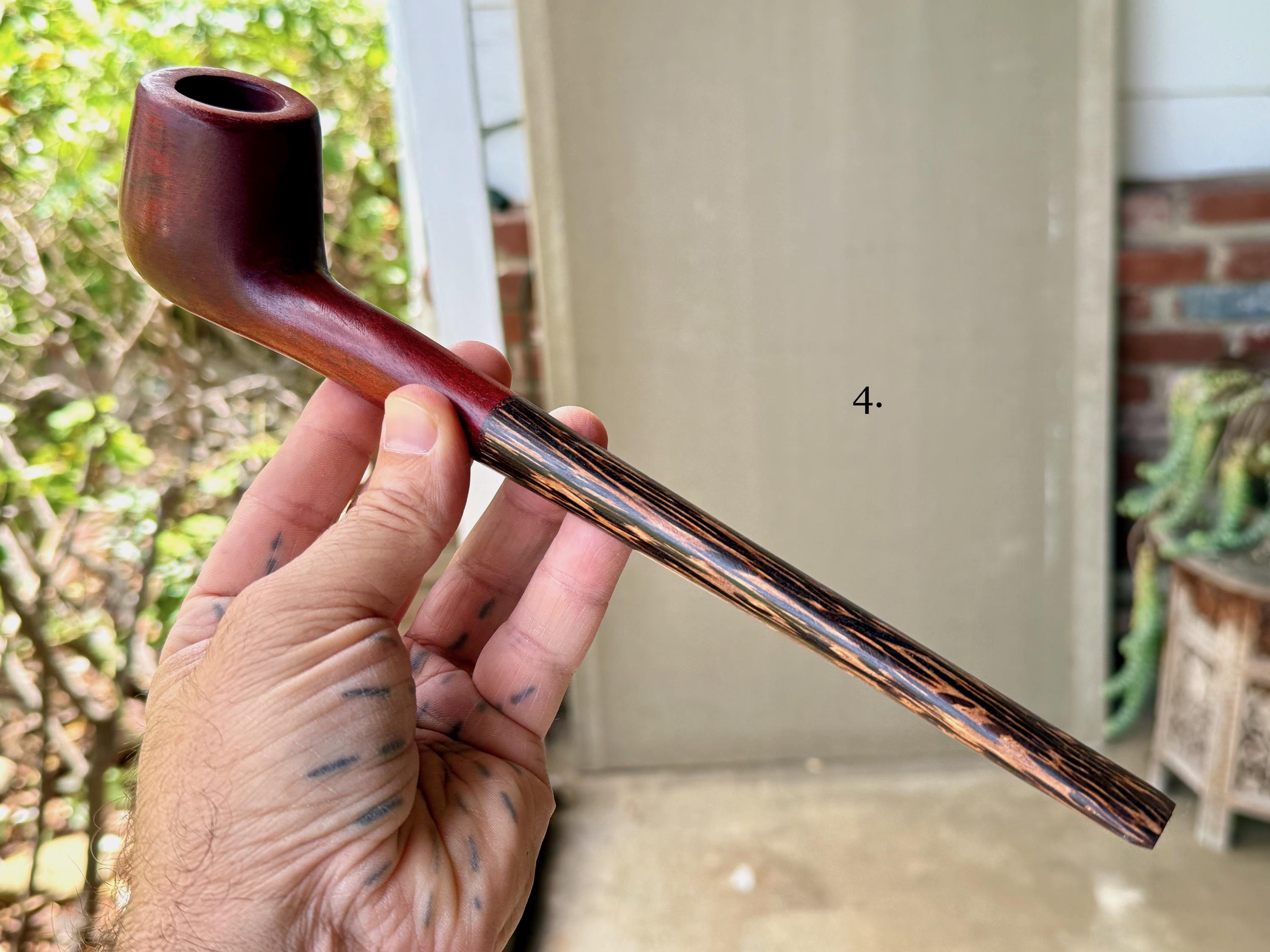 These traditional, elegant pipes are ideal for use in ceremony Even though they are slightly longer than our average handheld design, they are lightweight and durable. We can still use them with one hand, leaving the other hand free to shake a chakapa, rattle or conduct hands-on healing work.
