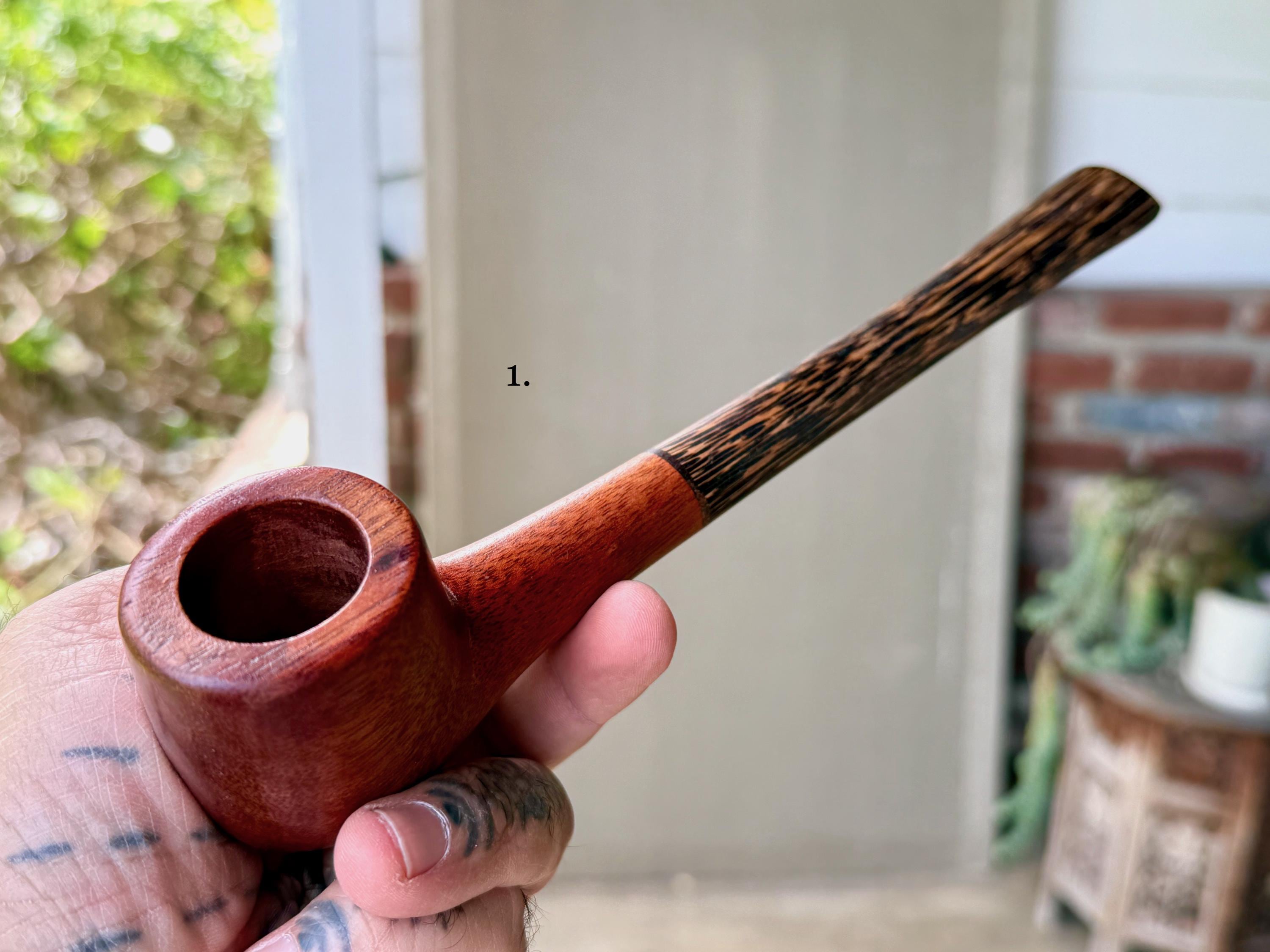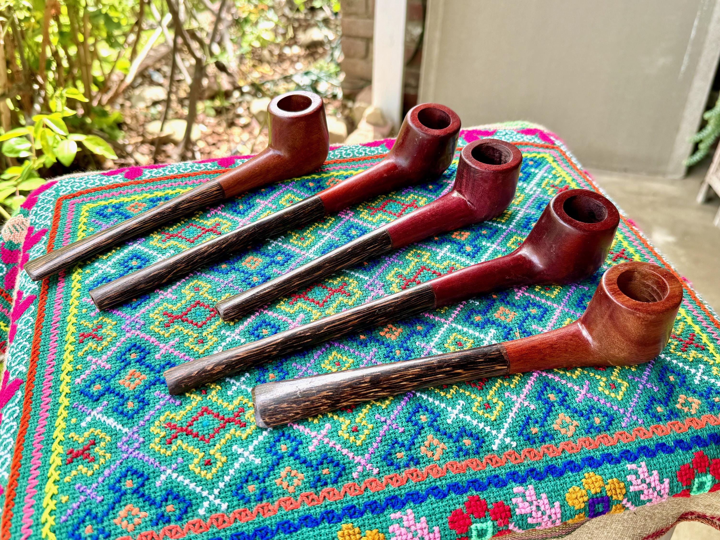 Each pipe is hand-carved from indigenous Amazonian hardwoods (Palo Sangre & Chonta) and are intended for use in shamanic ceremony.