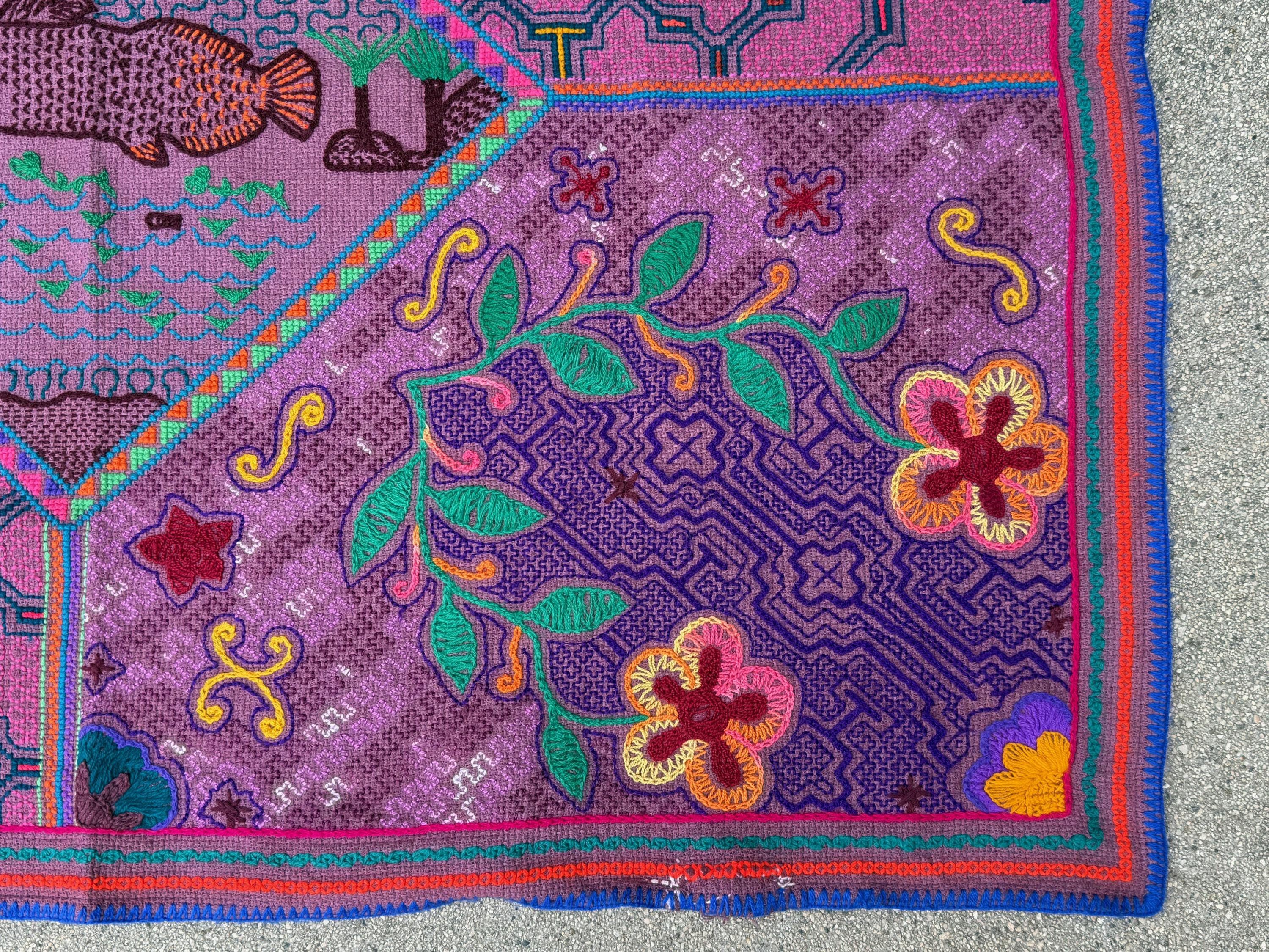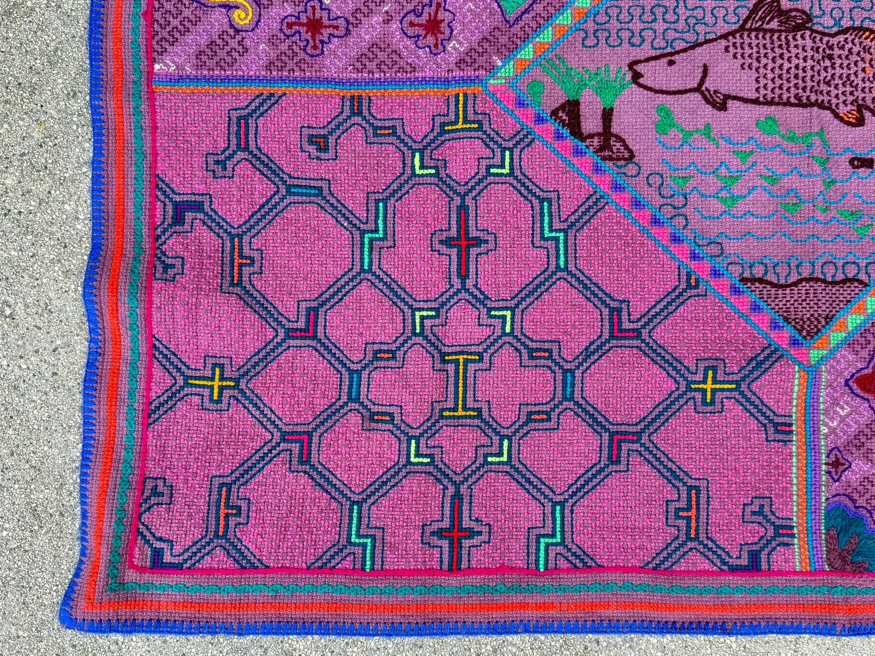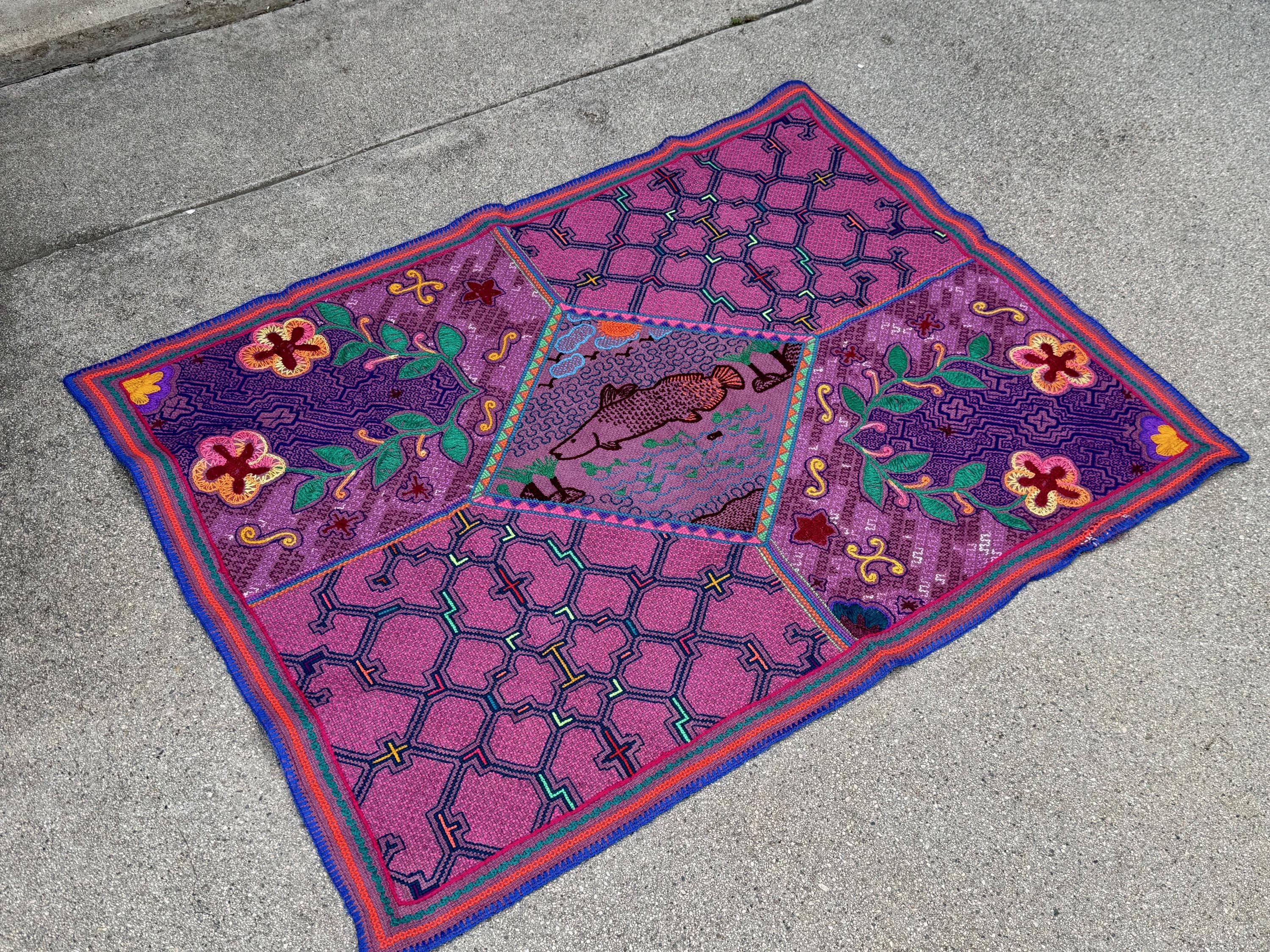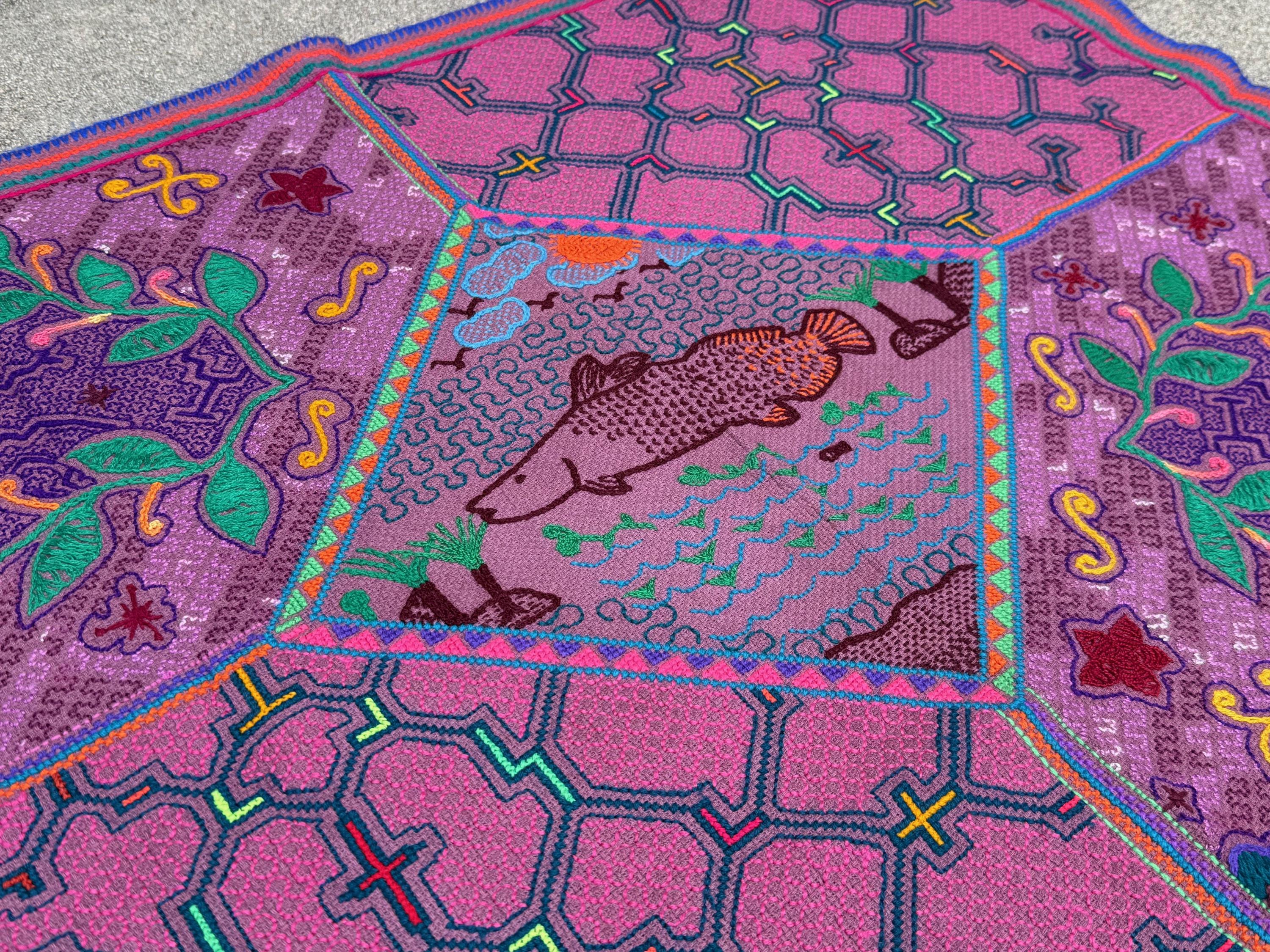 While this cloth is a wonderful medium-large size for a mesa or ceremonial use, the artistic nature of the design would make it appropriate for framing or wall art. An absolutely beautiful piece of folk art from the Amazon.