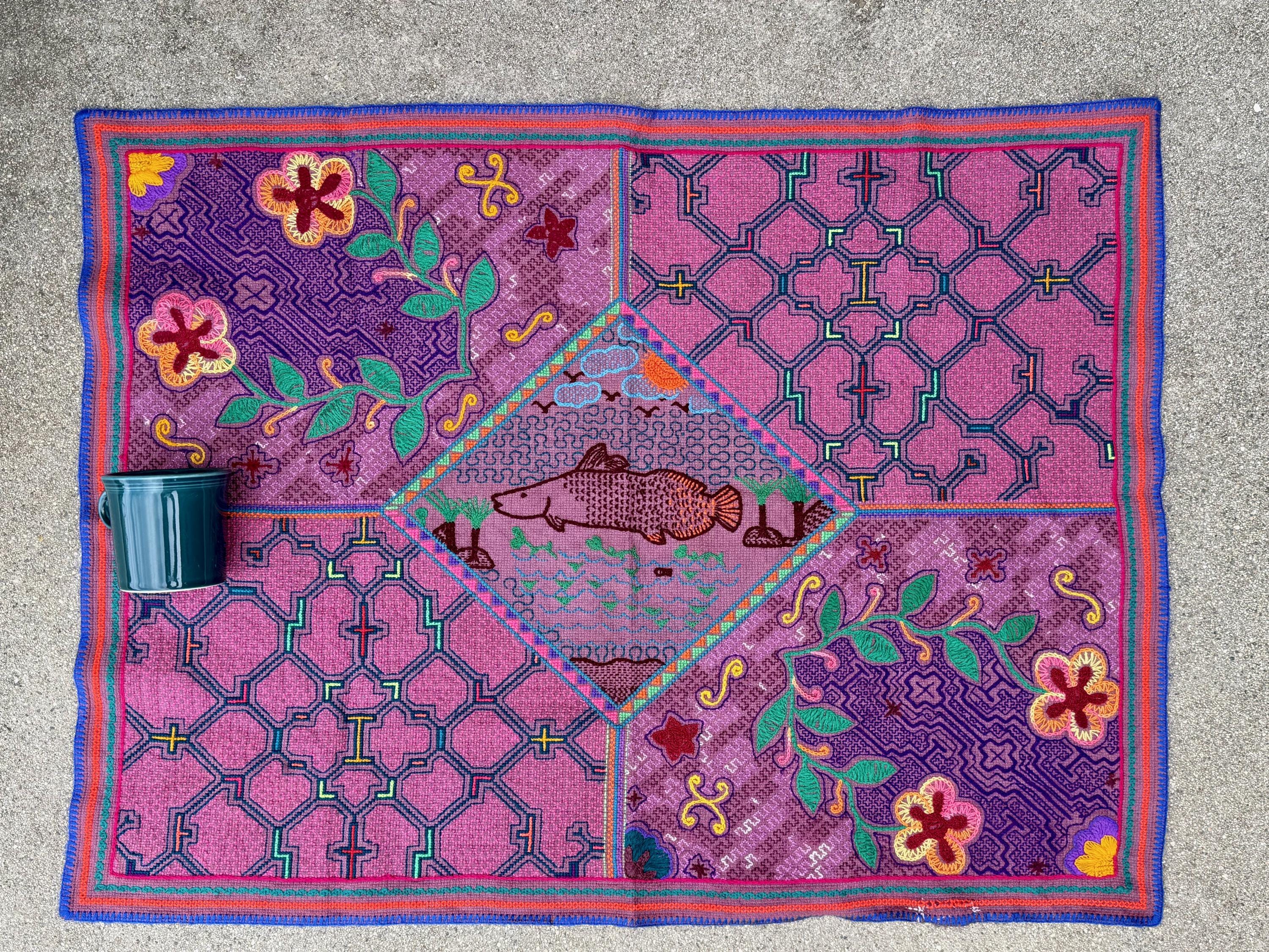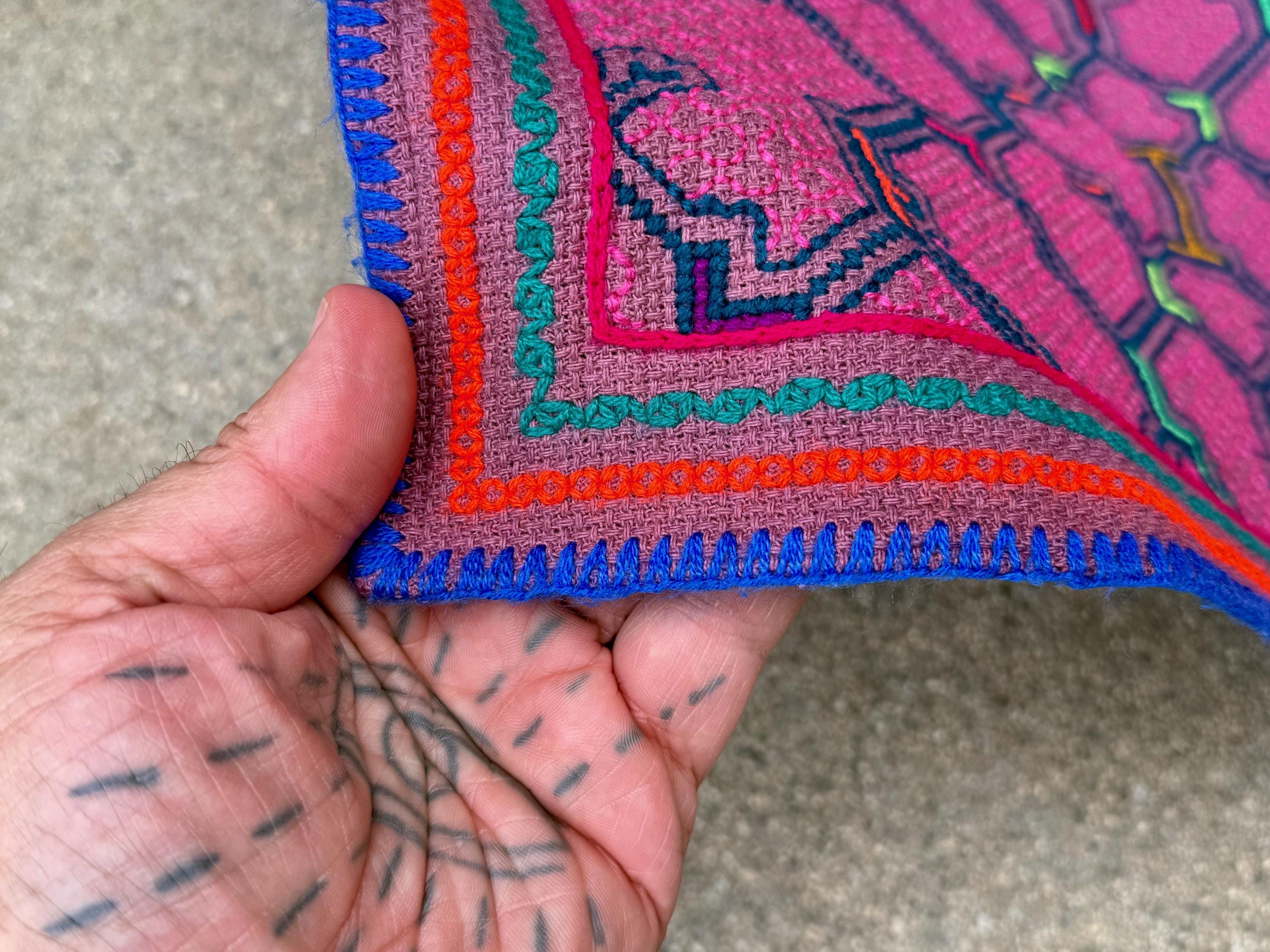 These embroidered cloths are traditional to the Shipibo-Conibo and are artistic expressions of medicine songs (icaros), that bring the energies of the plants they represent to life with their exquisite patterning and designs (kene). These powerful songs are sung during their creation, imbuing each stitch with the beauty and energy of the plant icaro.