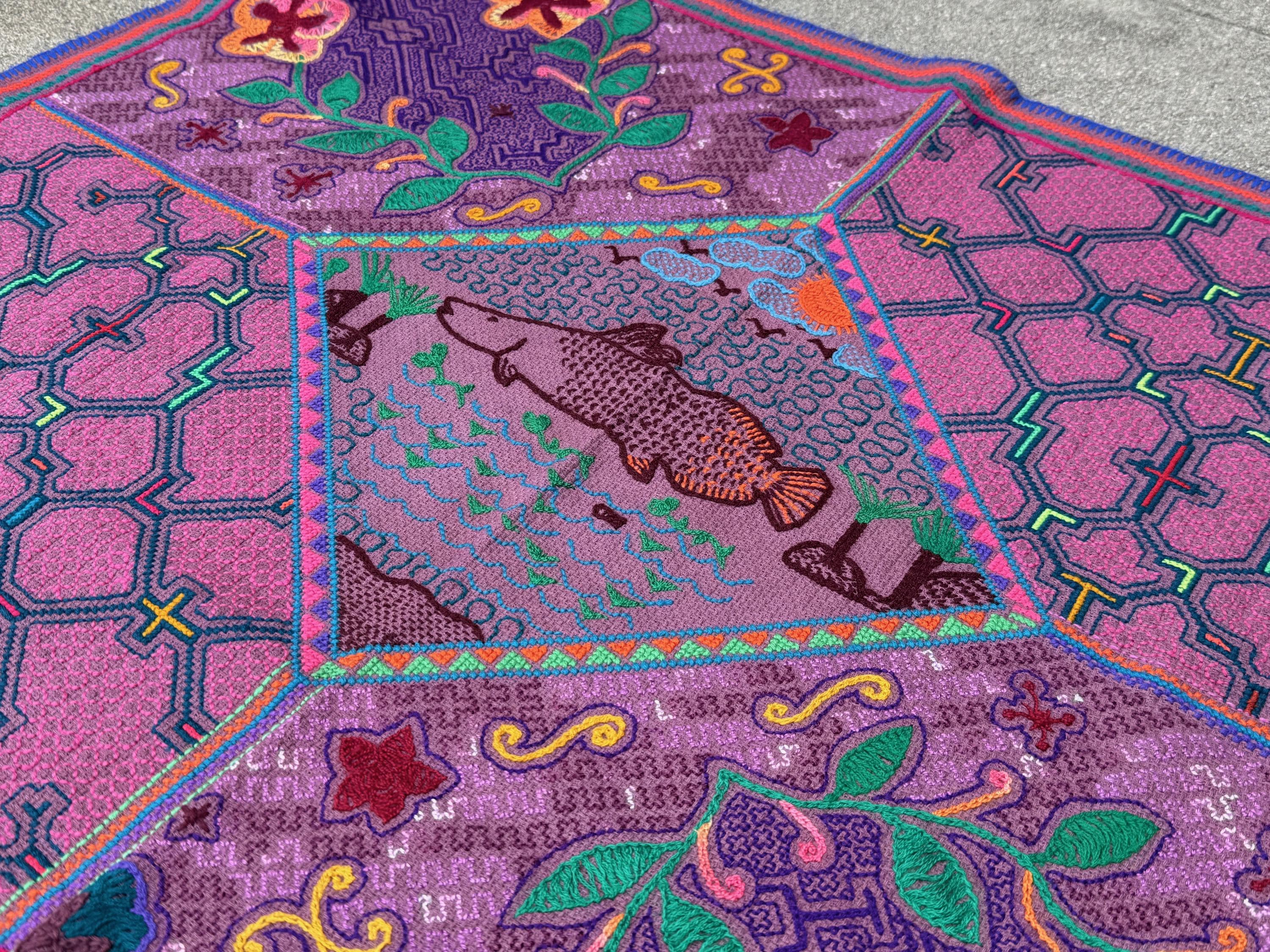 This Shipibo manta cloth was hand-embroidered by the wonderful Peruvian artisan Delfina in Pucallpa, Peru.