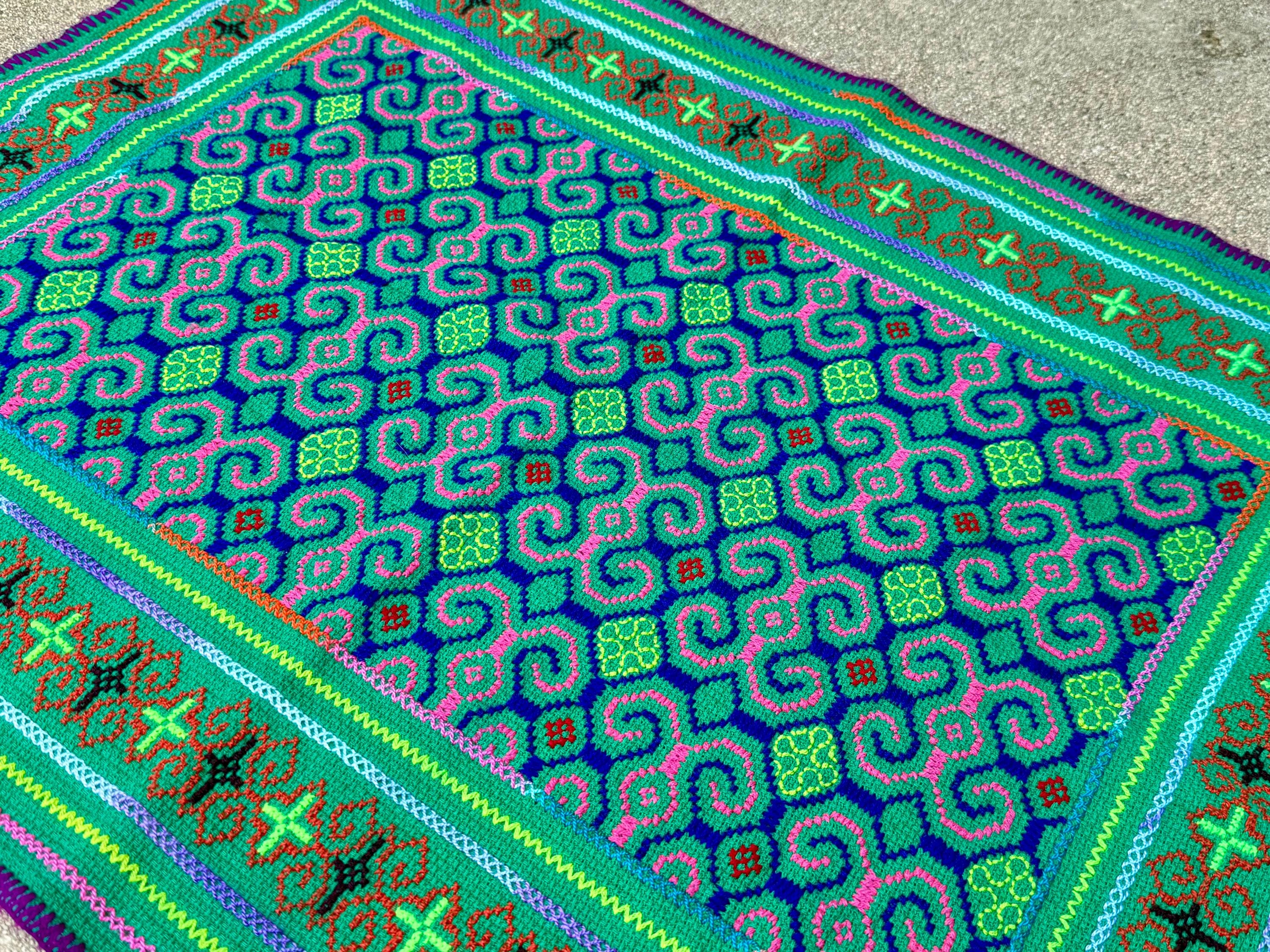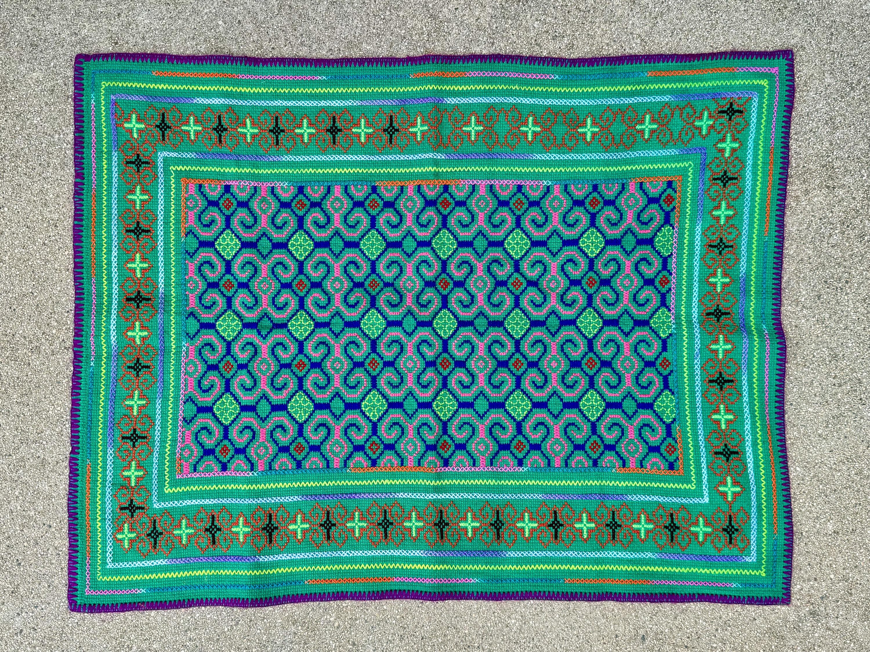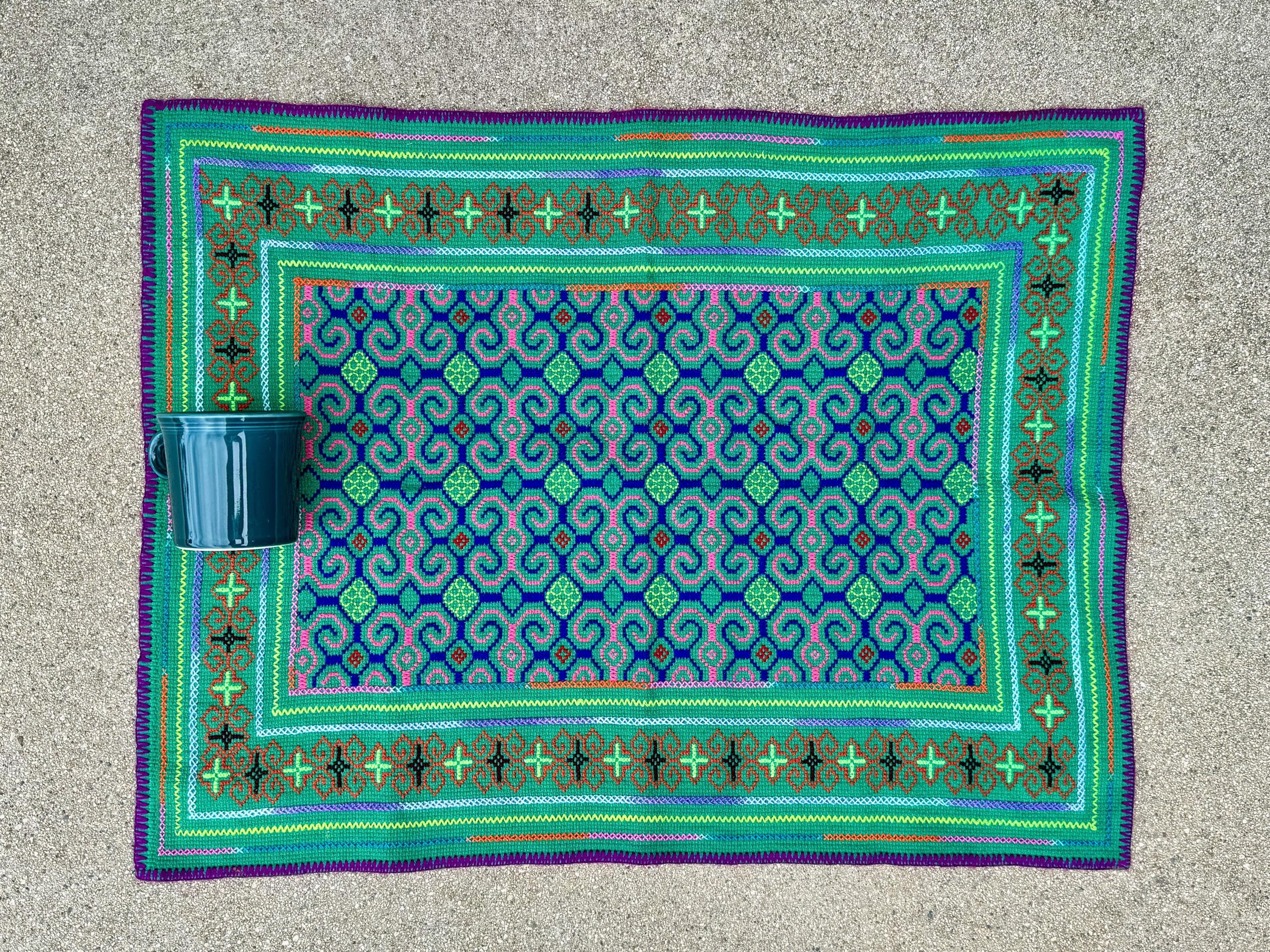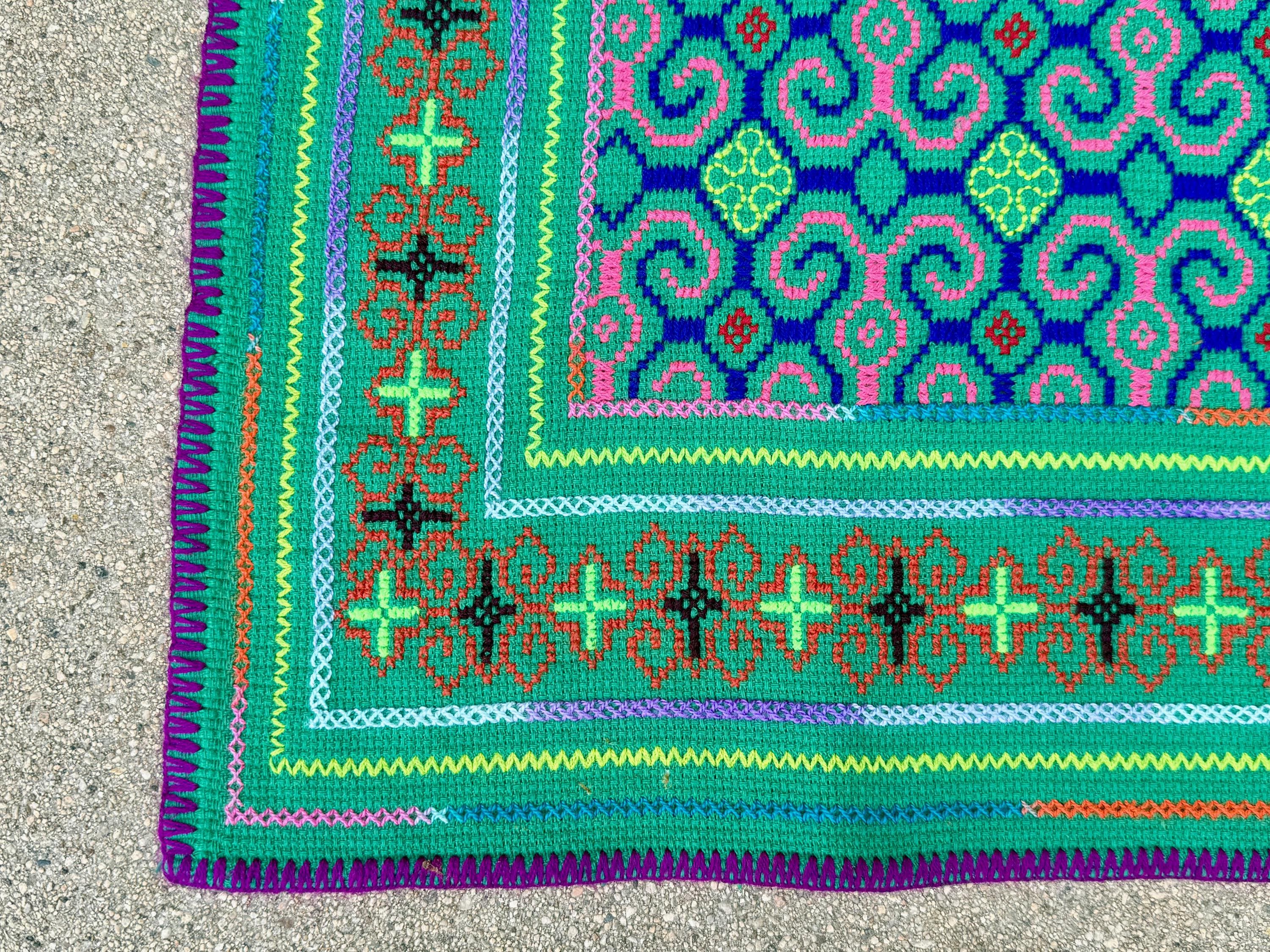 Vibrant, verdant colors and exquisite traditional patterning on this handsome medium sized manta cloth!