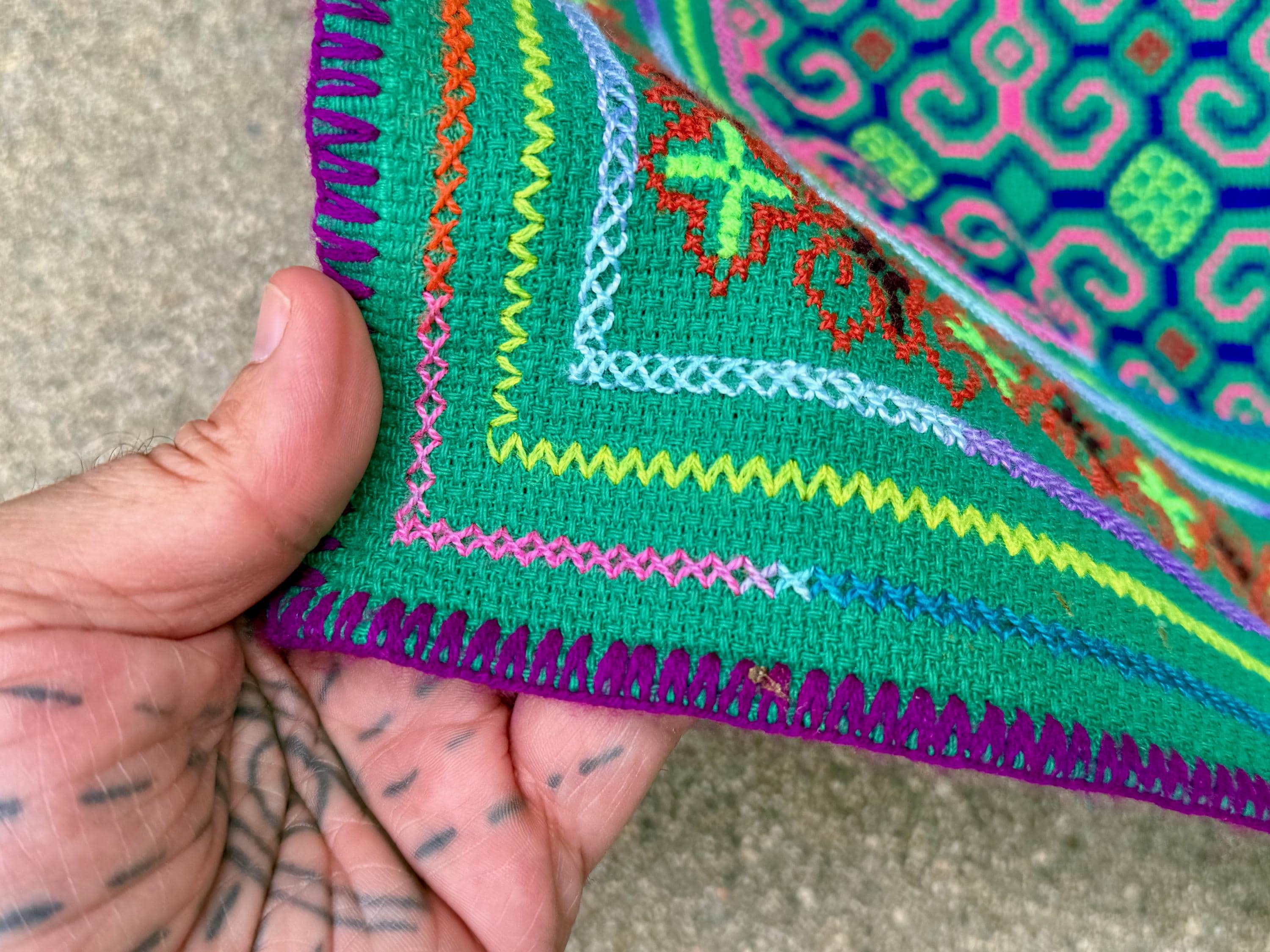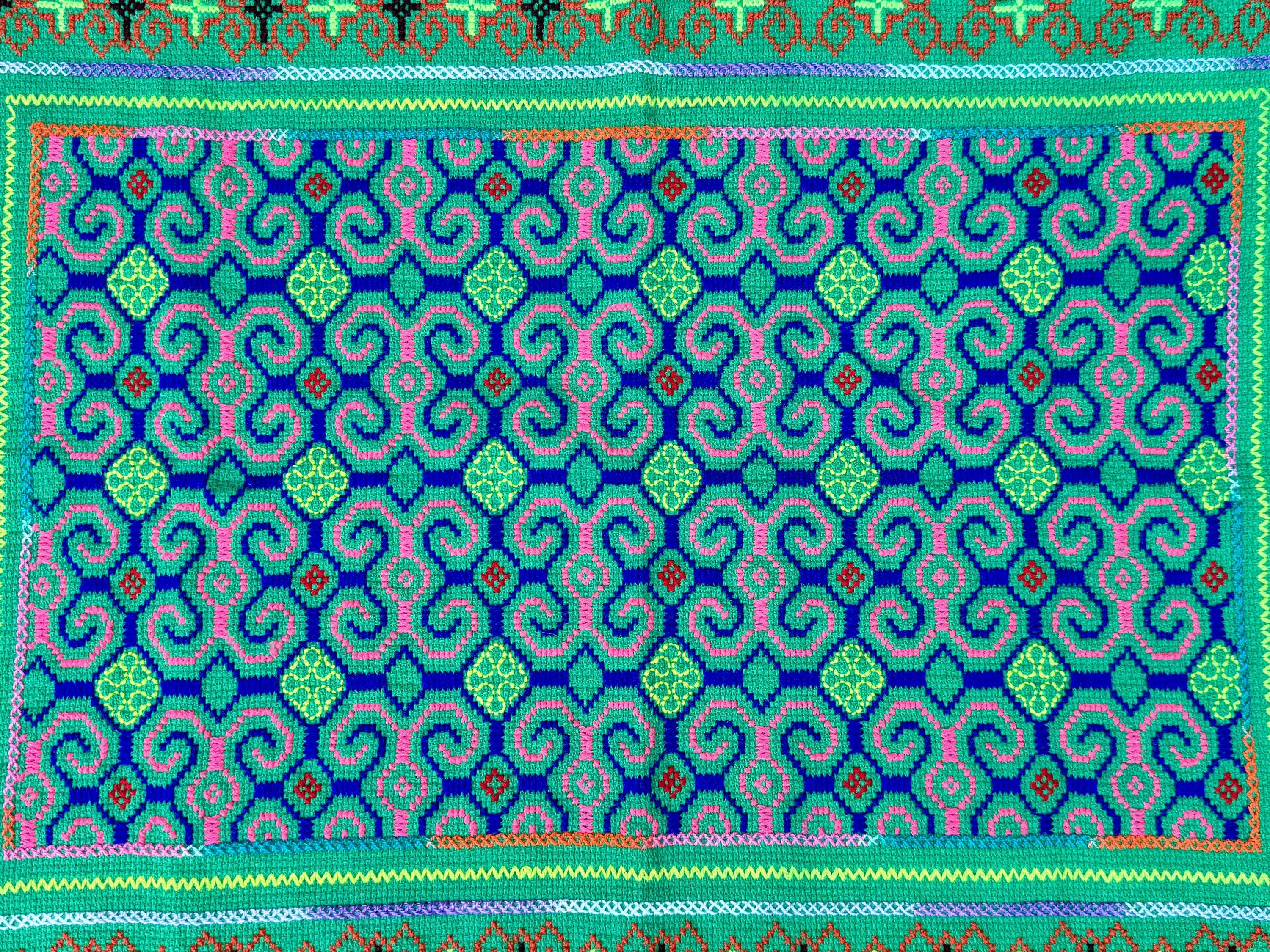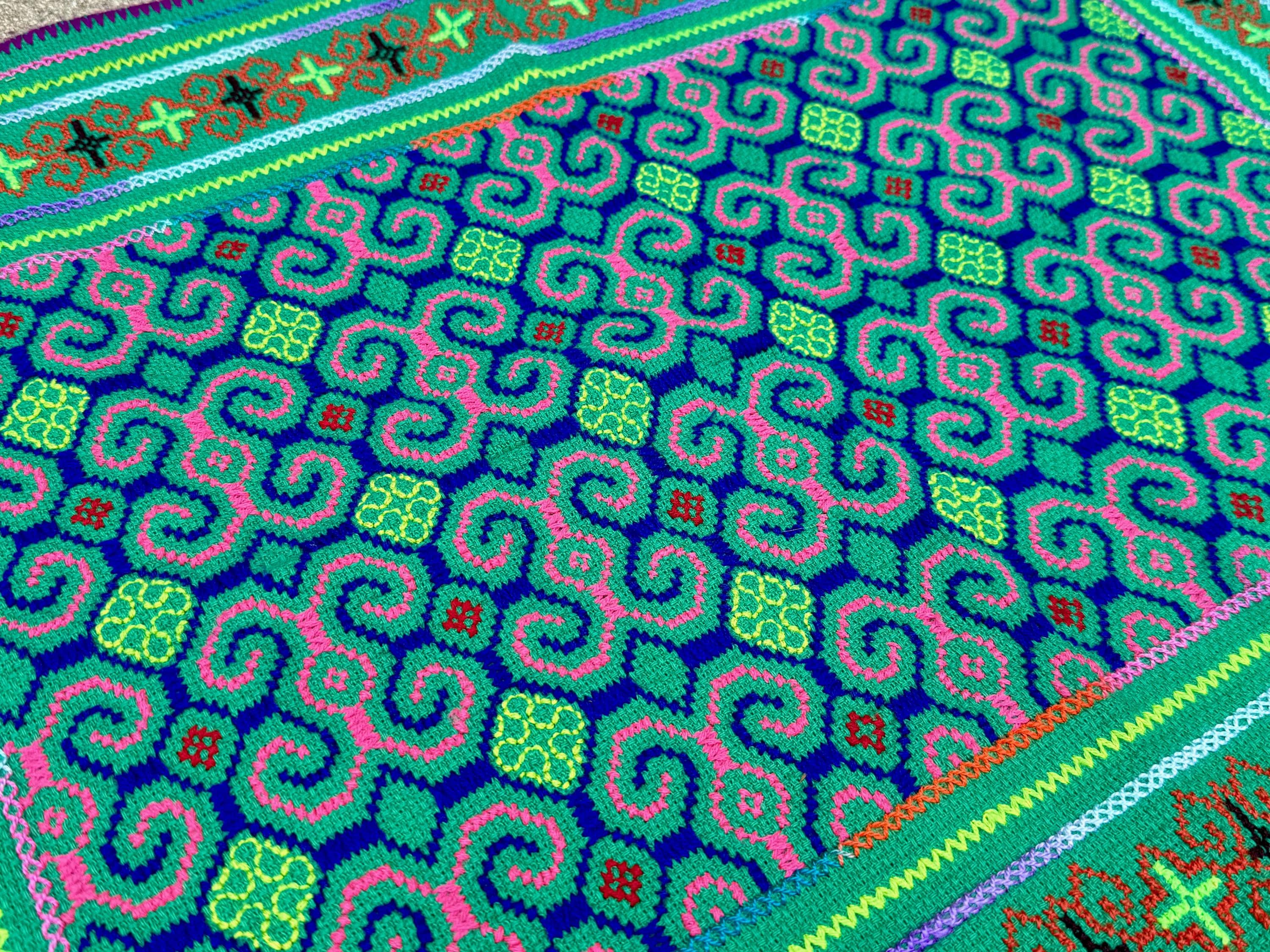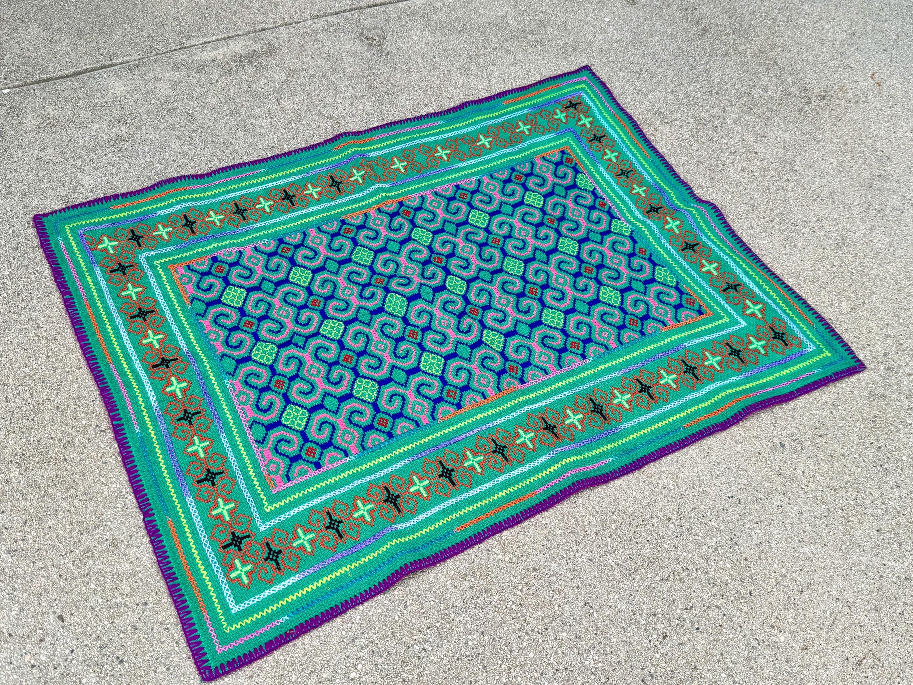 Vibrant, verdant colors and exquisite traditional patterning on this handsome medium sized manta cloth!