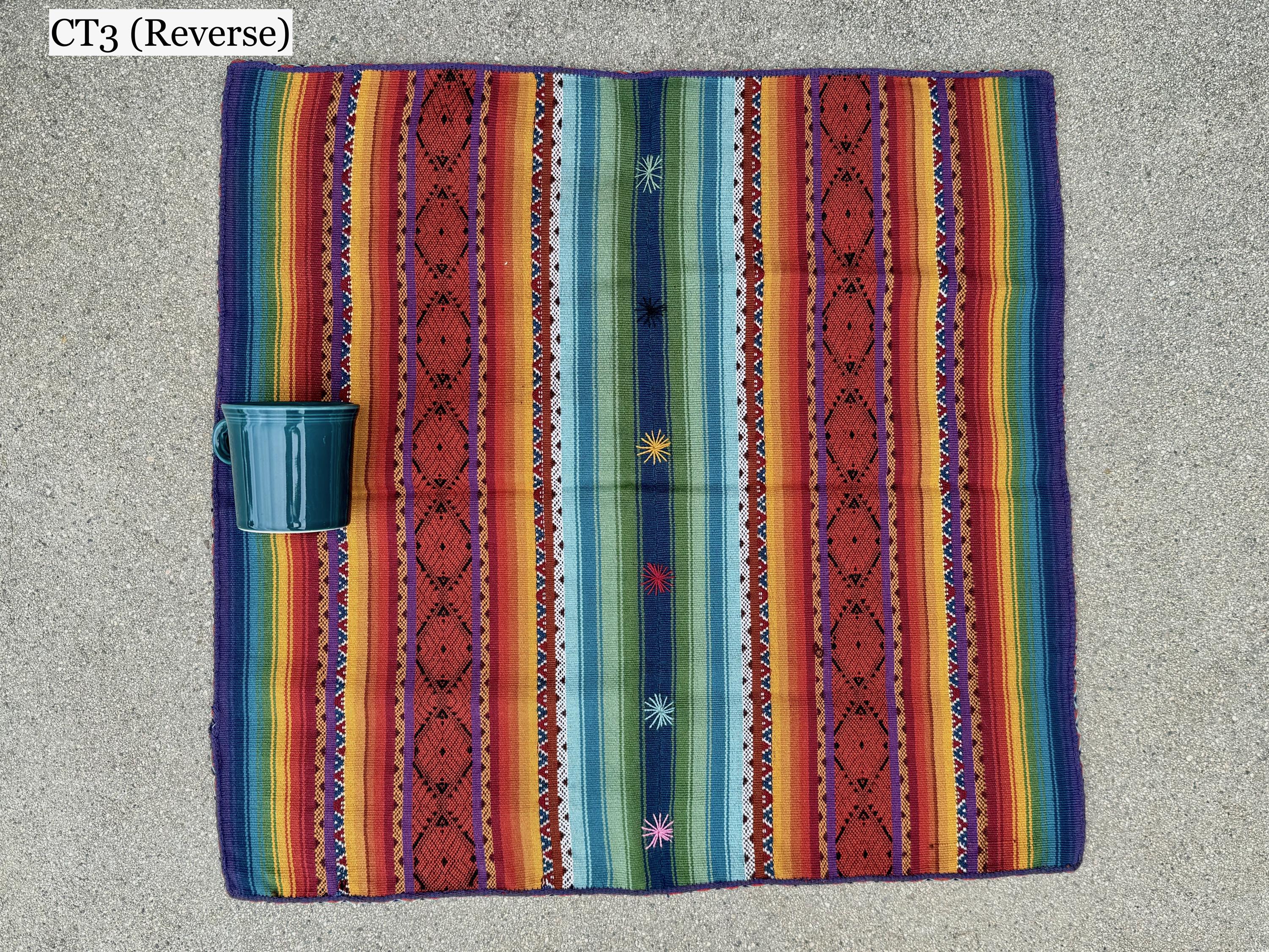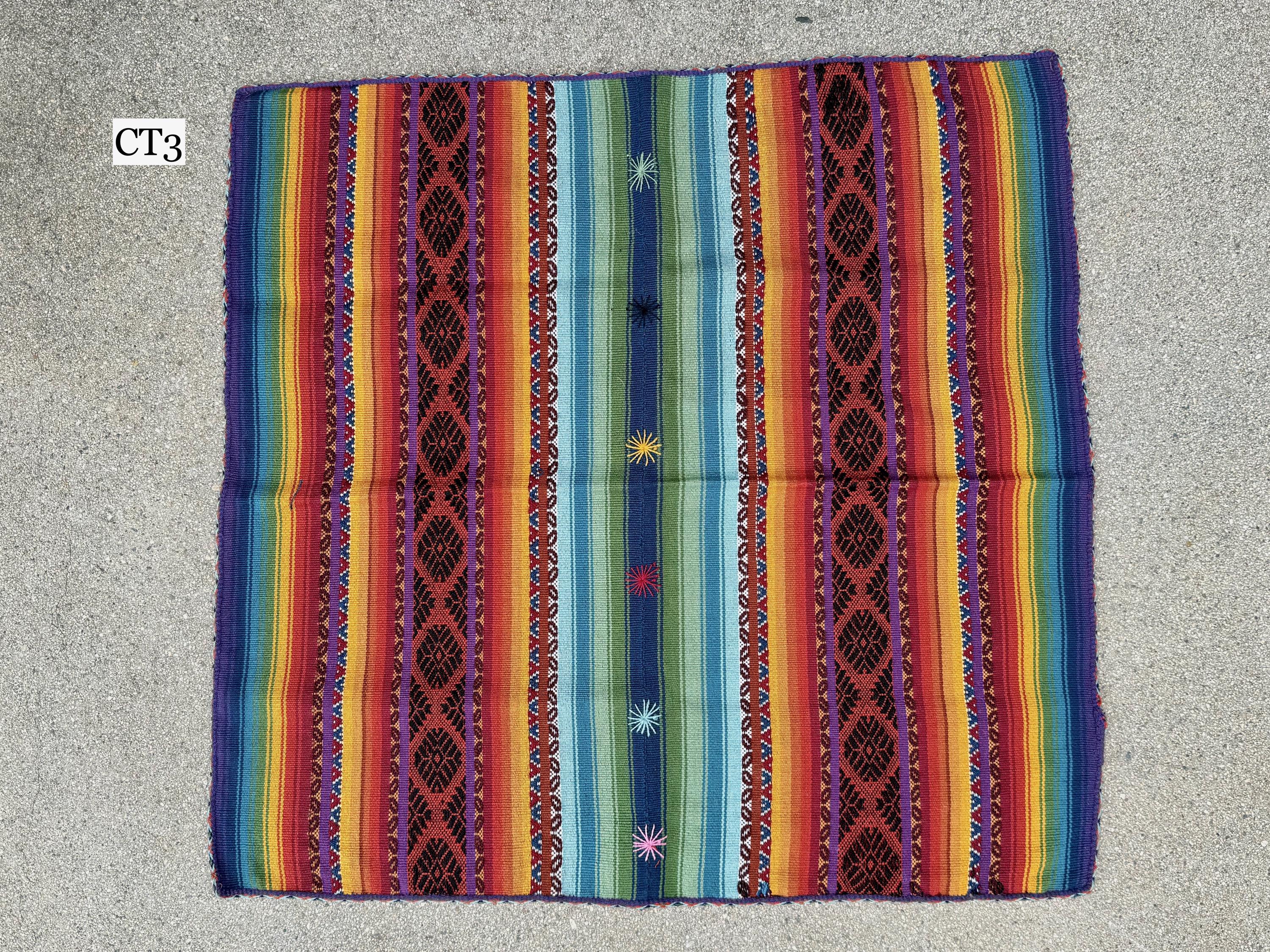 Vibrant colors and traditional patterns and symbols adorn each of these high-quality manta cloths from Chawaytiri. These mantas are all reversible/double-sided, making them ideal for those who follow shamanic traditions that require "bundling" one's mesa.