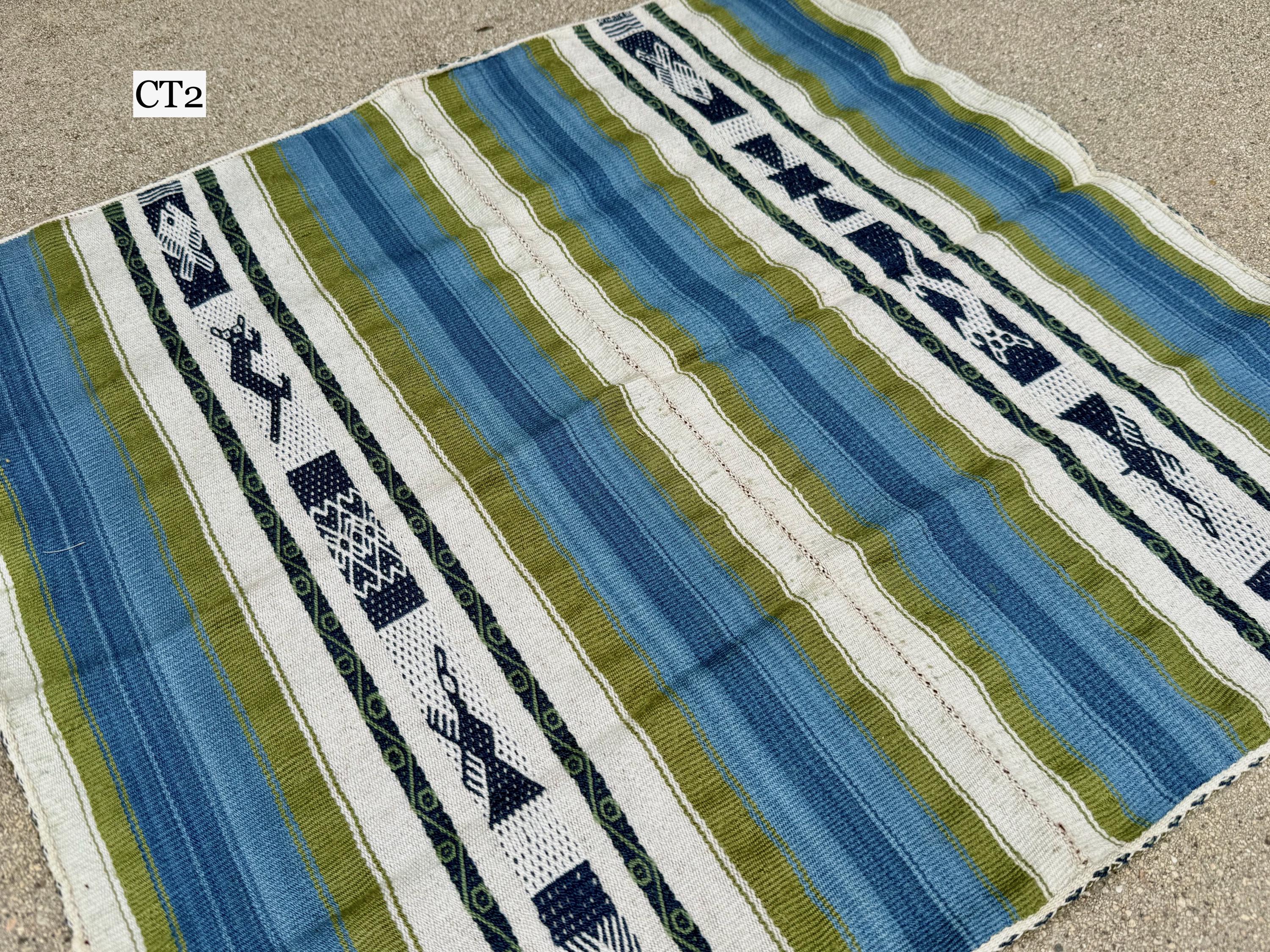 These manta cloths are hand loomed from alpaca wool and natural fibers, and display a multitude of traditional symbols that represent earth elements, animals and other aspects of the Andean cosmology that are considered sacred. While they can certainly be used in a decorative way, they are used traditionally as altar cloths for one's "mesa" (or shamanic altar) or as a setting for one's shamanic tools during plant medicine ceremonies.
