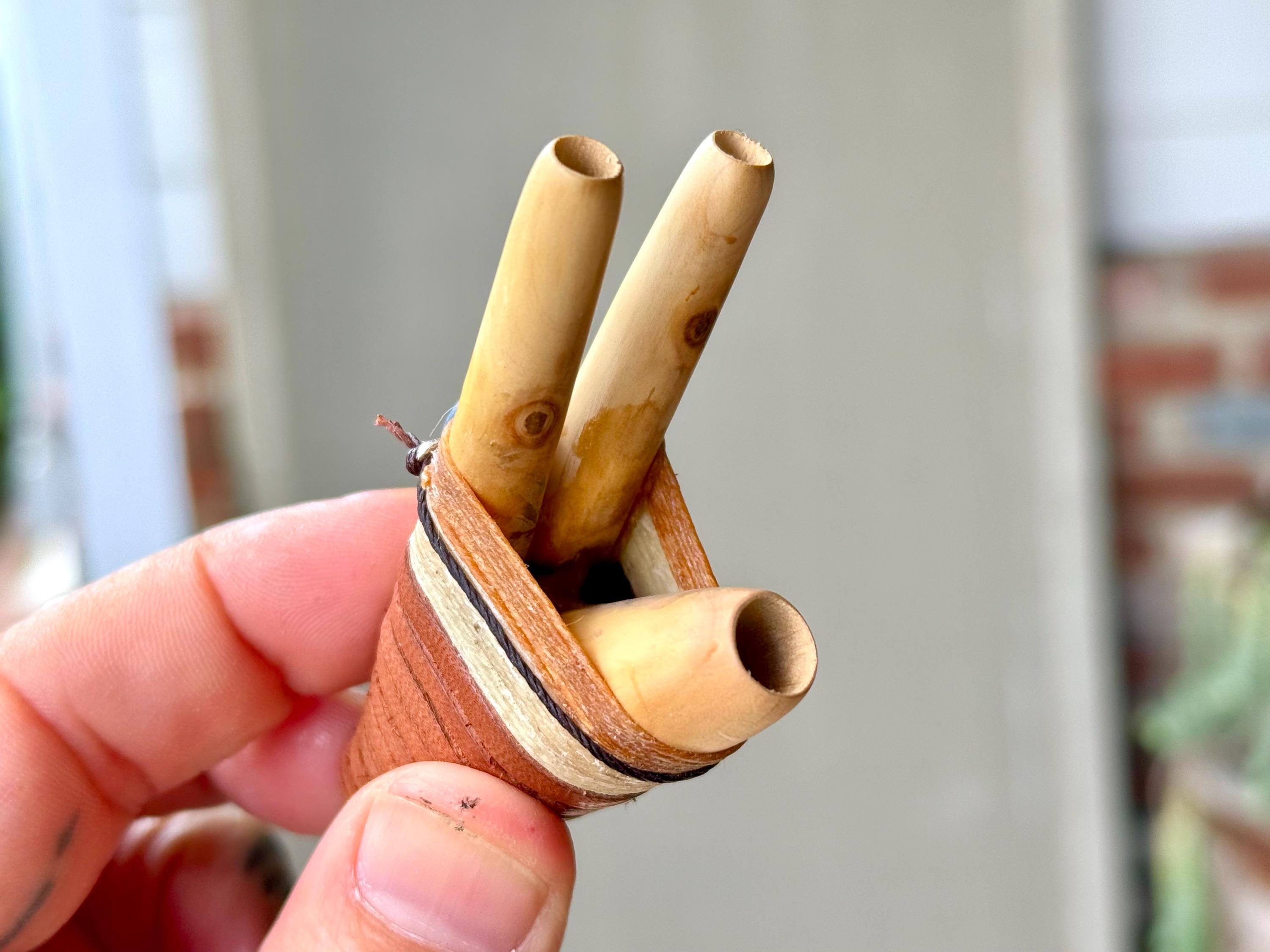 Please be aware that it can be very tricky to design a Double Kuripe that fits everyone due to the unique anatomical features of human beings. We have taken a good deal of time and consideration to craft pipes that are designed to fit MOST people. That being said, please be aware that there is always the chance that a Double Kuripe may be too wide or too narrow for some. If this is a concern, it is best to stick with a traditional single kuripe. However, we have found that our design fits most people without a problem.