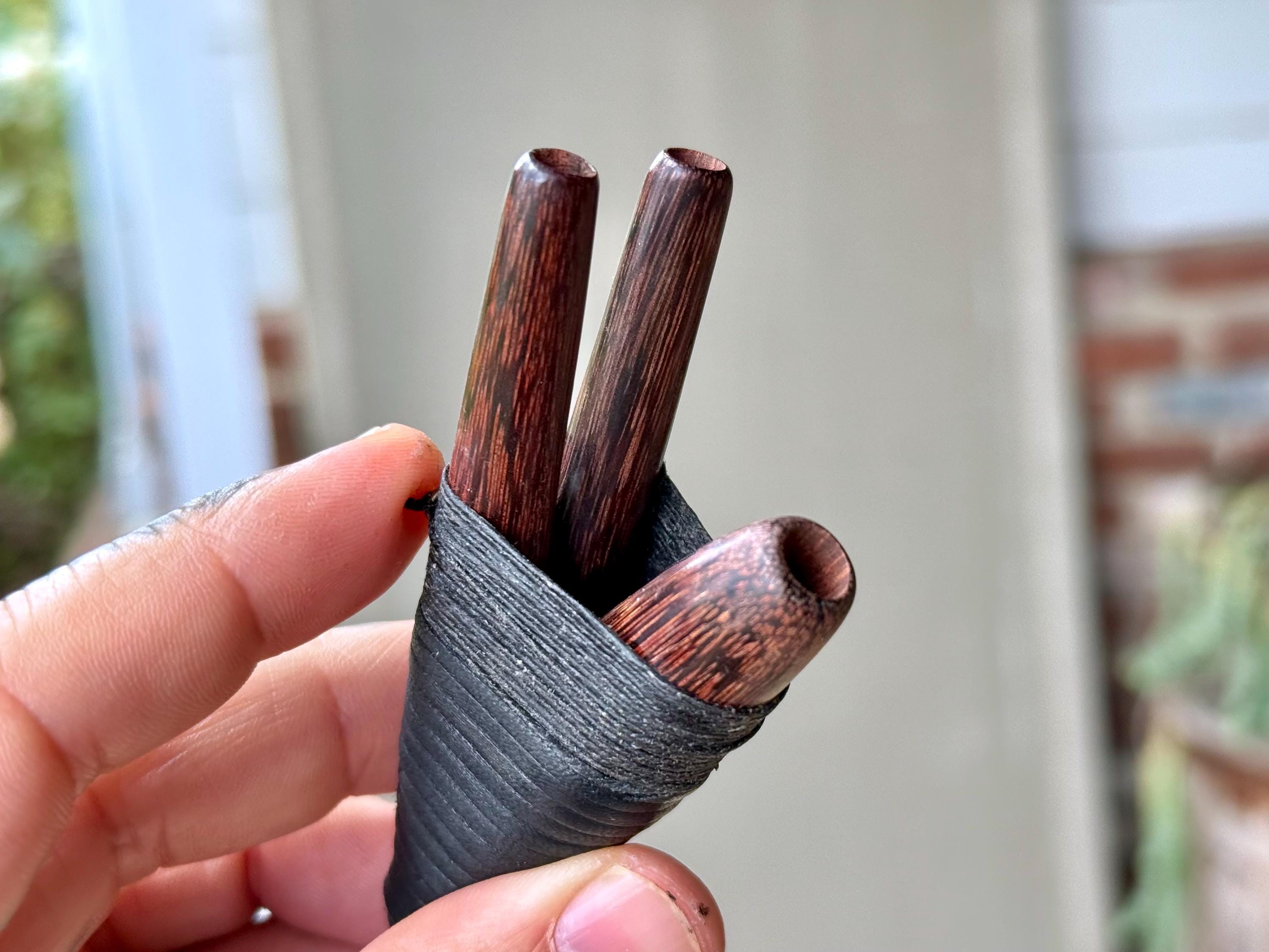 Please be aware that it can be very tricky to design a Double Kuripe that fits everyone due to the unique anatomical features of human beings. We have taken a good deal of time and consideration to craft pipes that are designed to fit MOST people. That being said, please be aware that there is always the chance that a Double Kuripe may be too wide or too narrow for some. If this is a concern, it is best to stick with a traditional single kuripe. However, we have found that our design fits most people without a problem.