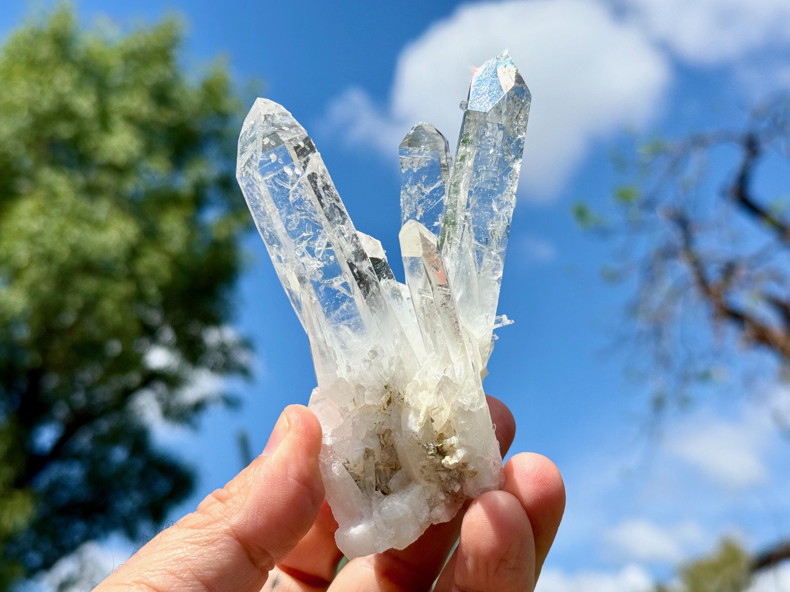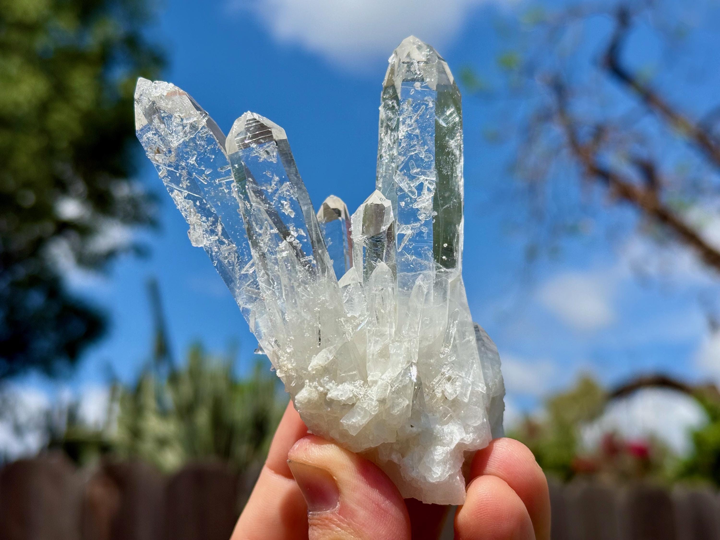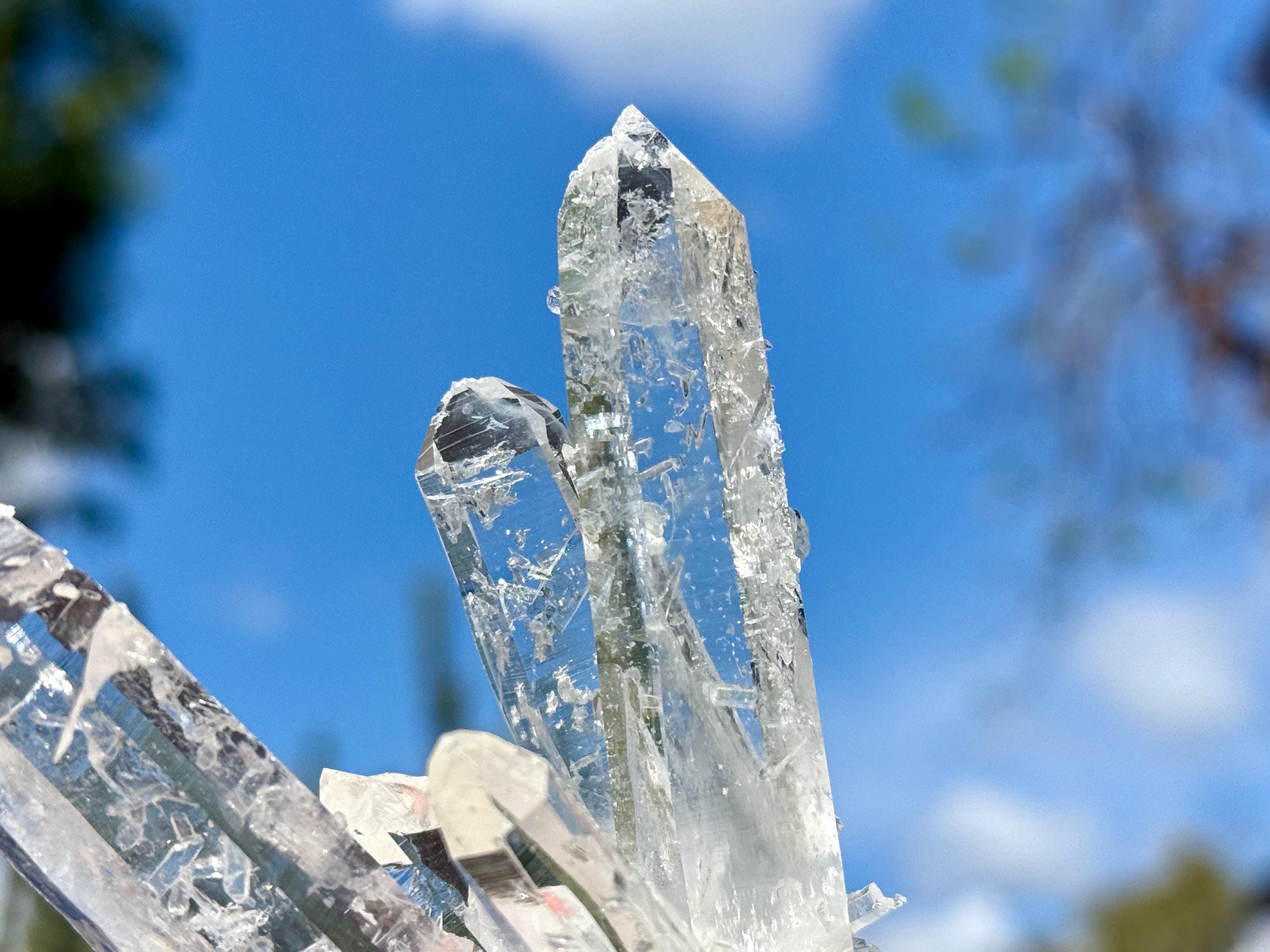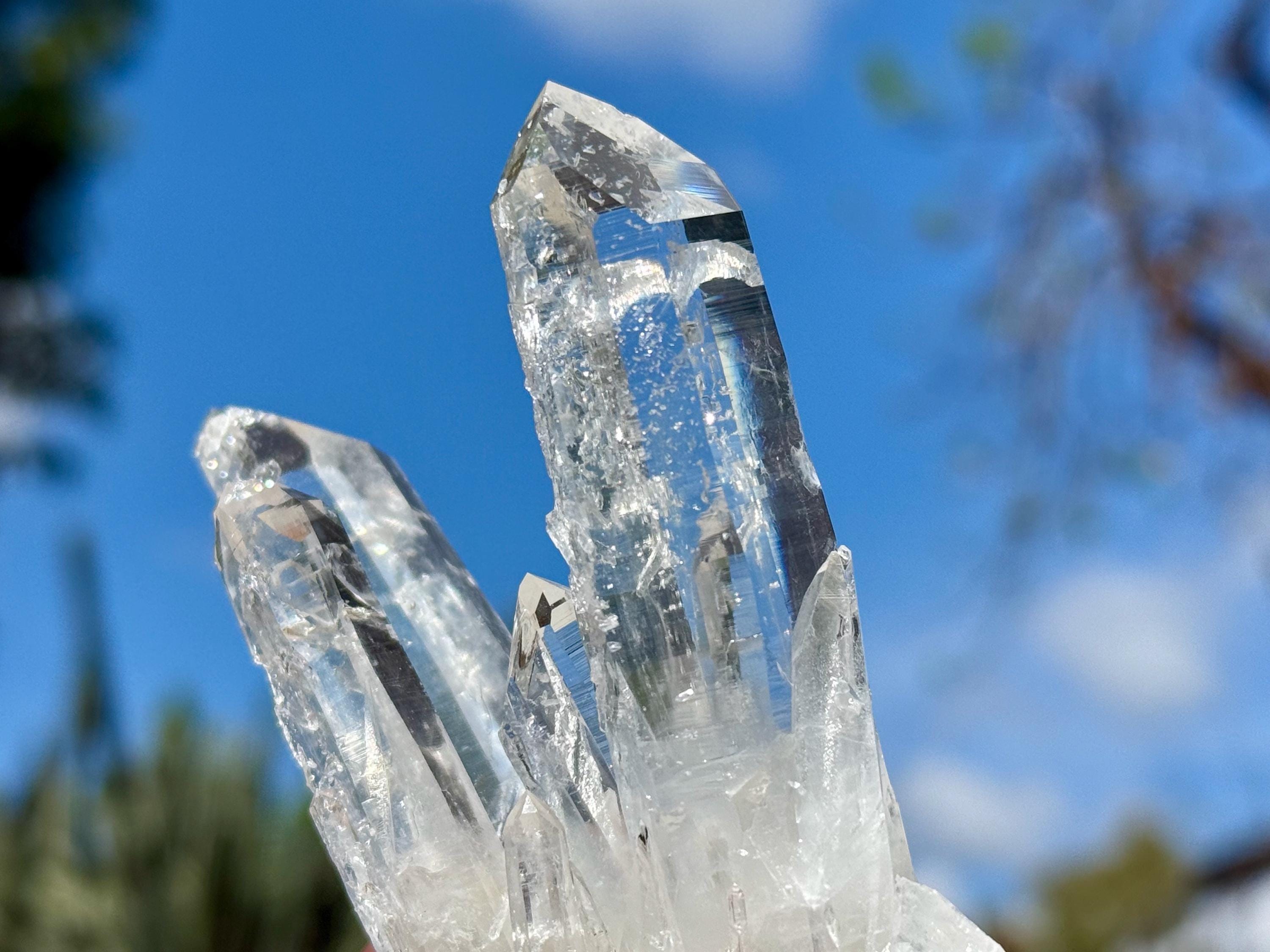 Lemurian Quartz resonates with all chakras, but primarily the Crown Chakra. It has one of the highest vibrations of any crystal and is a beautiful companion for meditation and to realign energies in the body. It can assist in clearing blockages in one's energy field and/or chakras, dispelling heavy energies from the body. If there is stagnant energy in the body, it can help to increase Prana (life force) energy to get things moving properly again. Meditating with Lemurian Crystals can allow us to connect with higher-dimensional spirit guides and connect to Divine realms, as well as to decode the information they contain within.