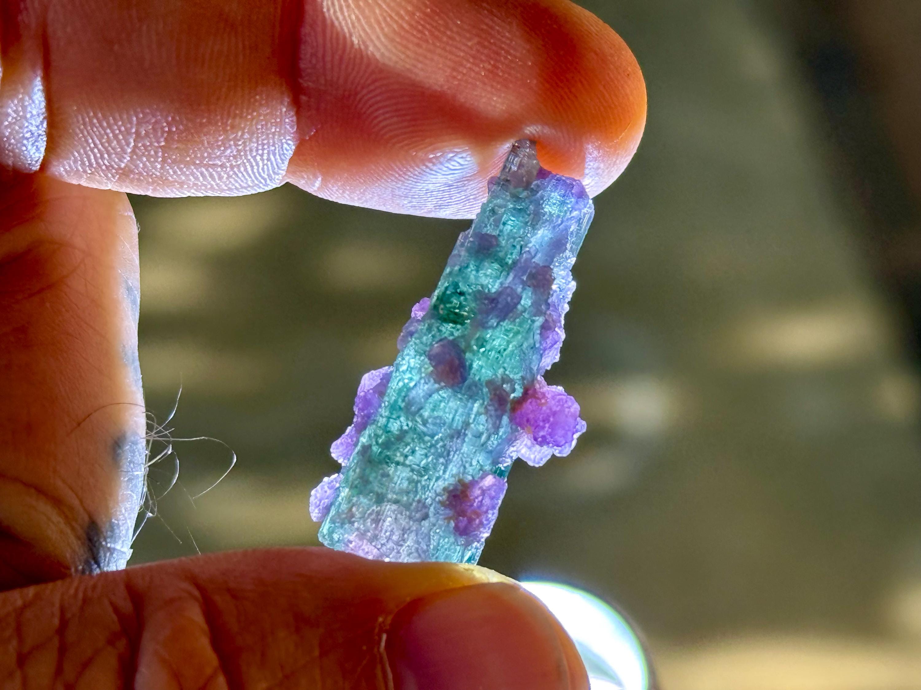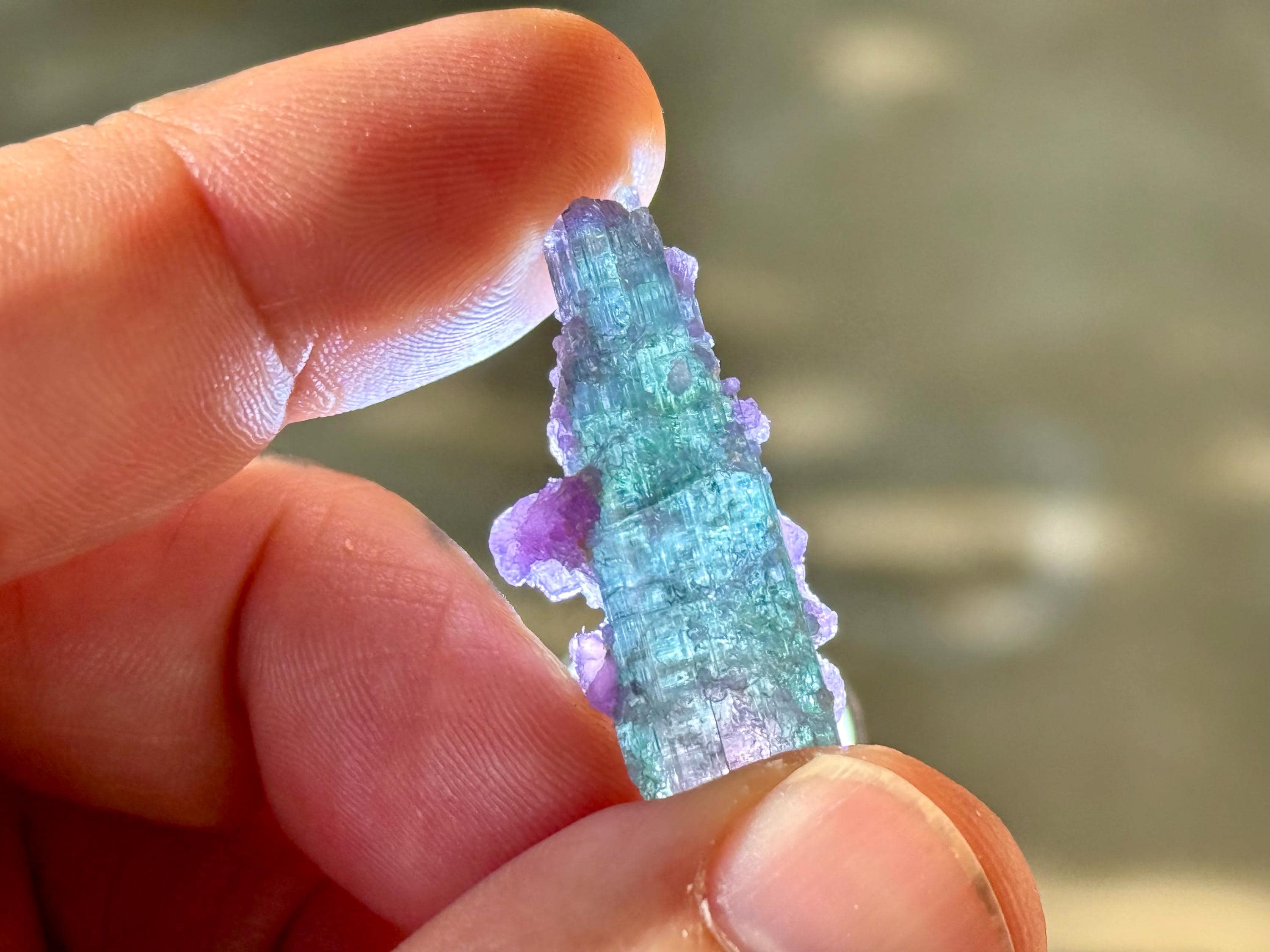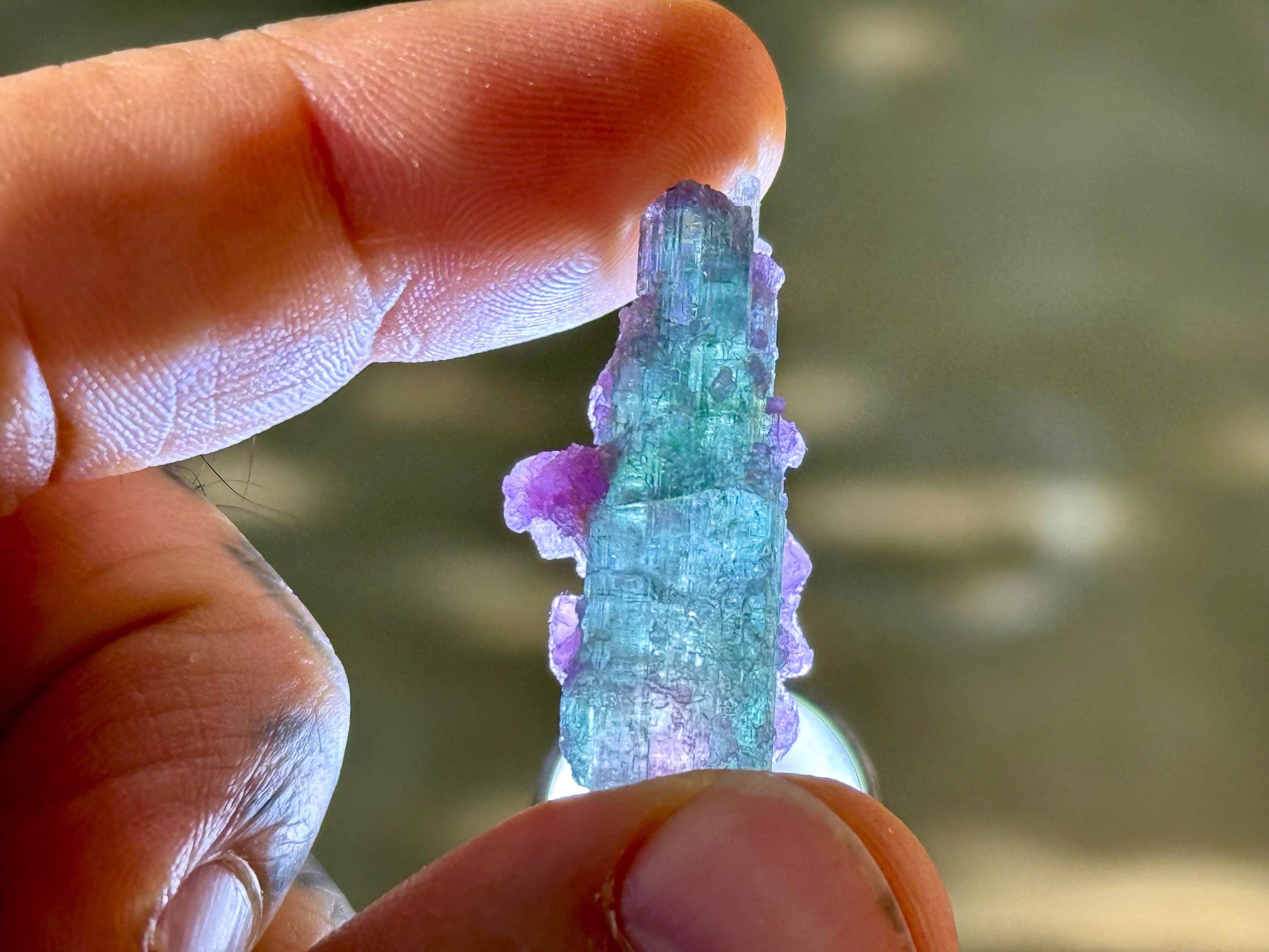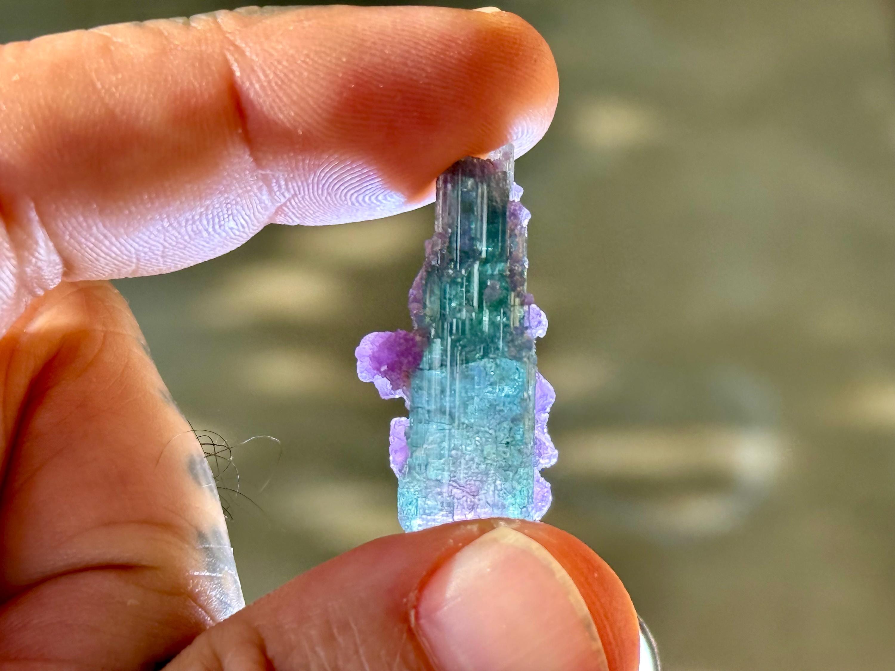 This exquisite Polychrome Tourmaline comes from a 2025 find in the Aricanga Mine, São Jose do Safira, Minas Gerais, Brazil. This crystal is all-natural, with blue and green hues, as well as a pink core.