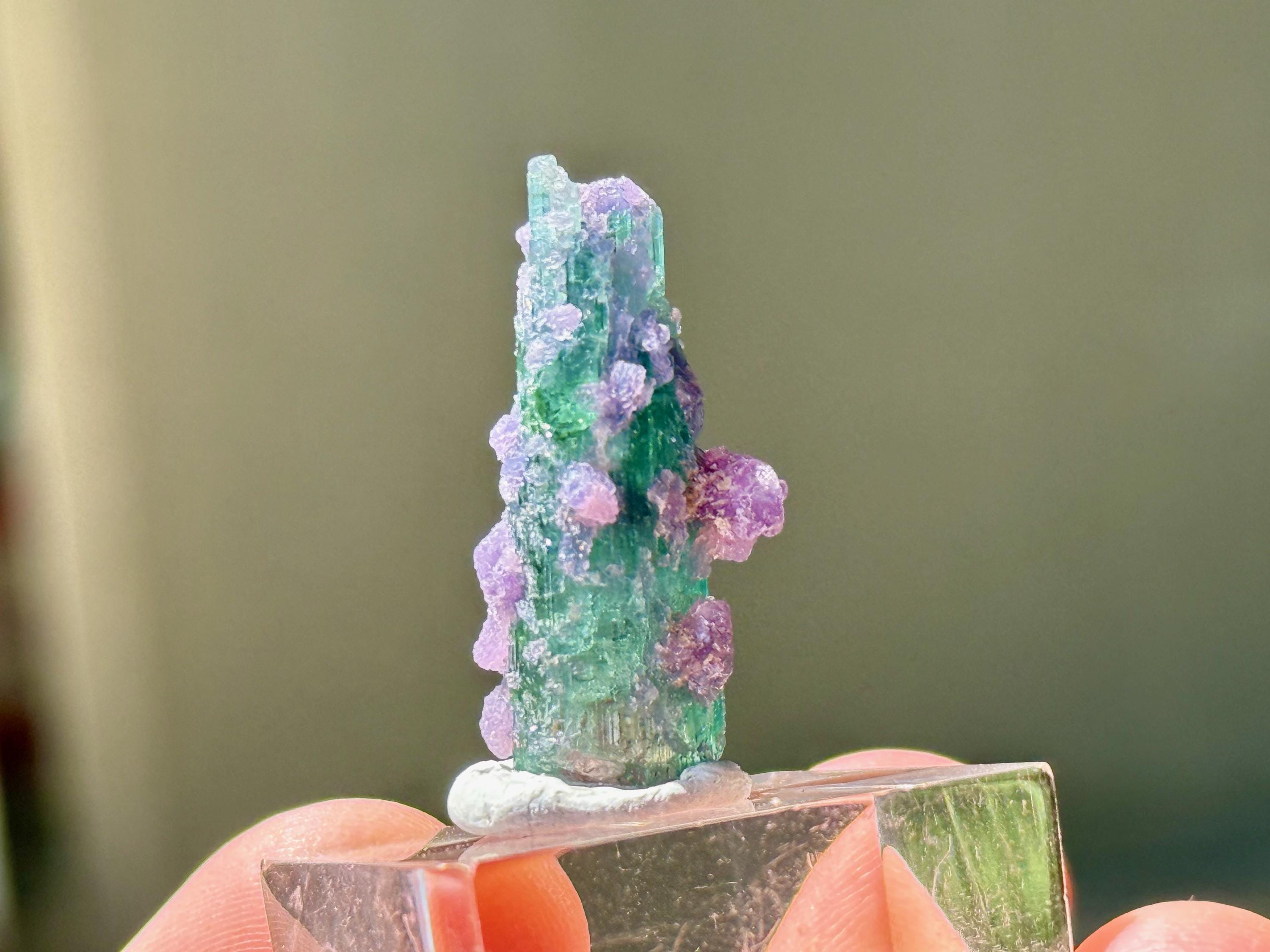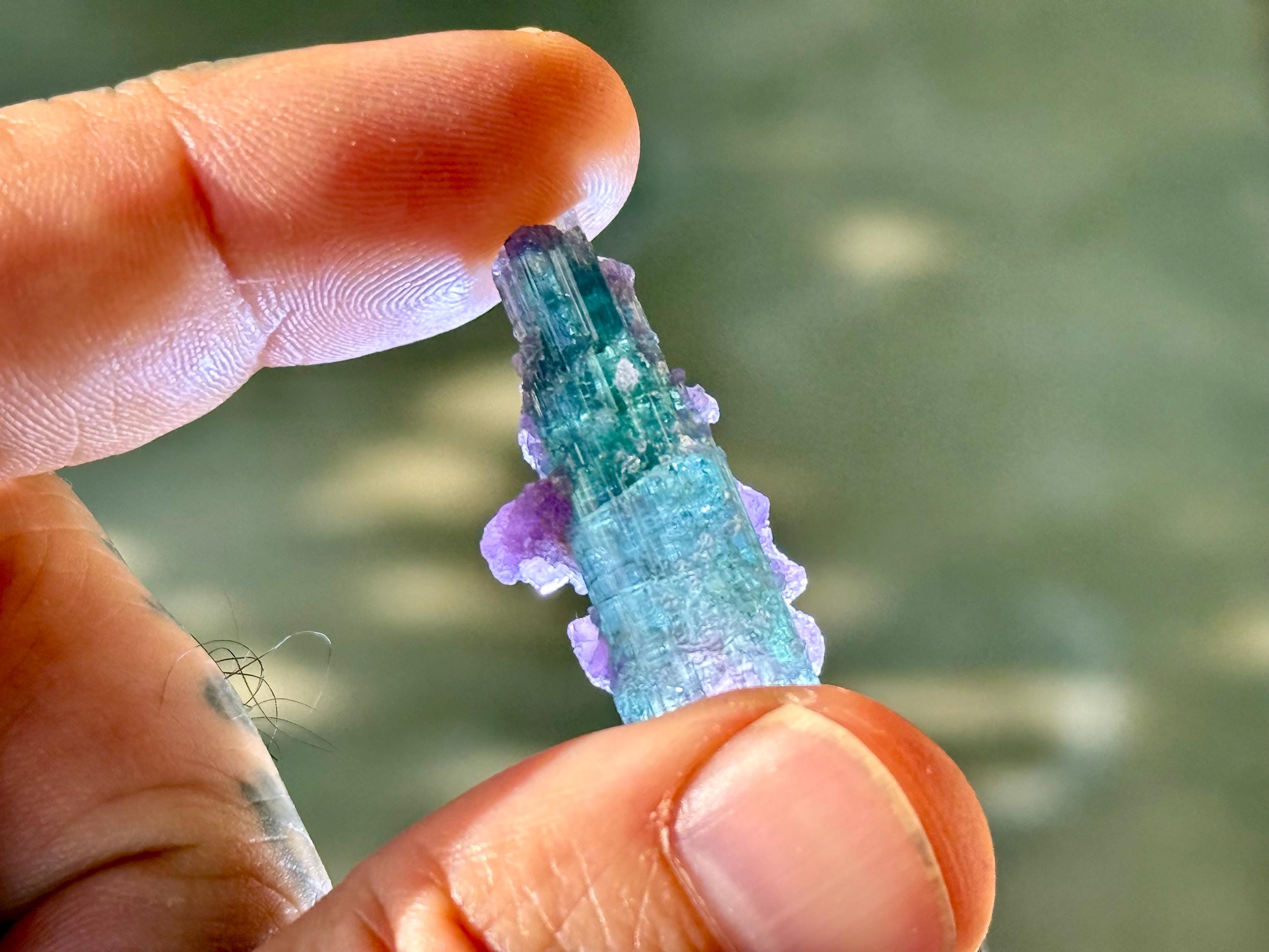 *These photos were taken in partially shaded, natural sunlight, as well as backlit. We've done our best to capture the true colors of this piece, but as with any gem tourmaline, please note that the color may vary a little depending on the lighting environment it is being viewed in.