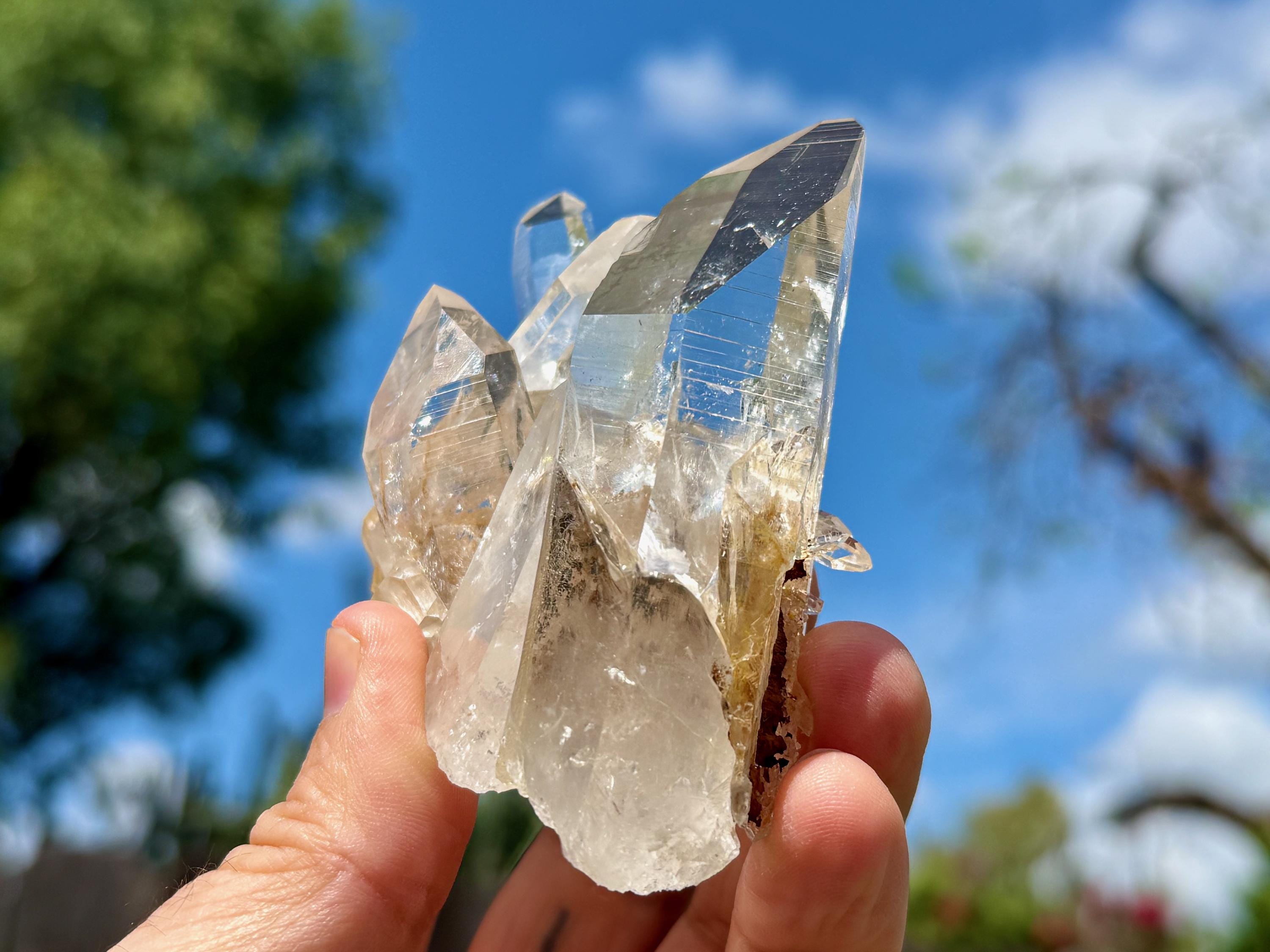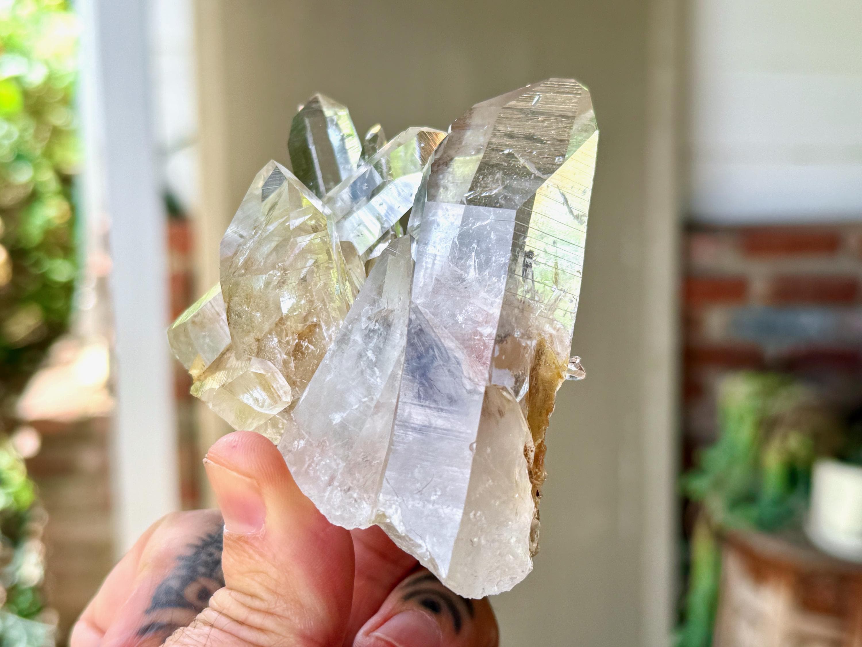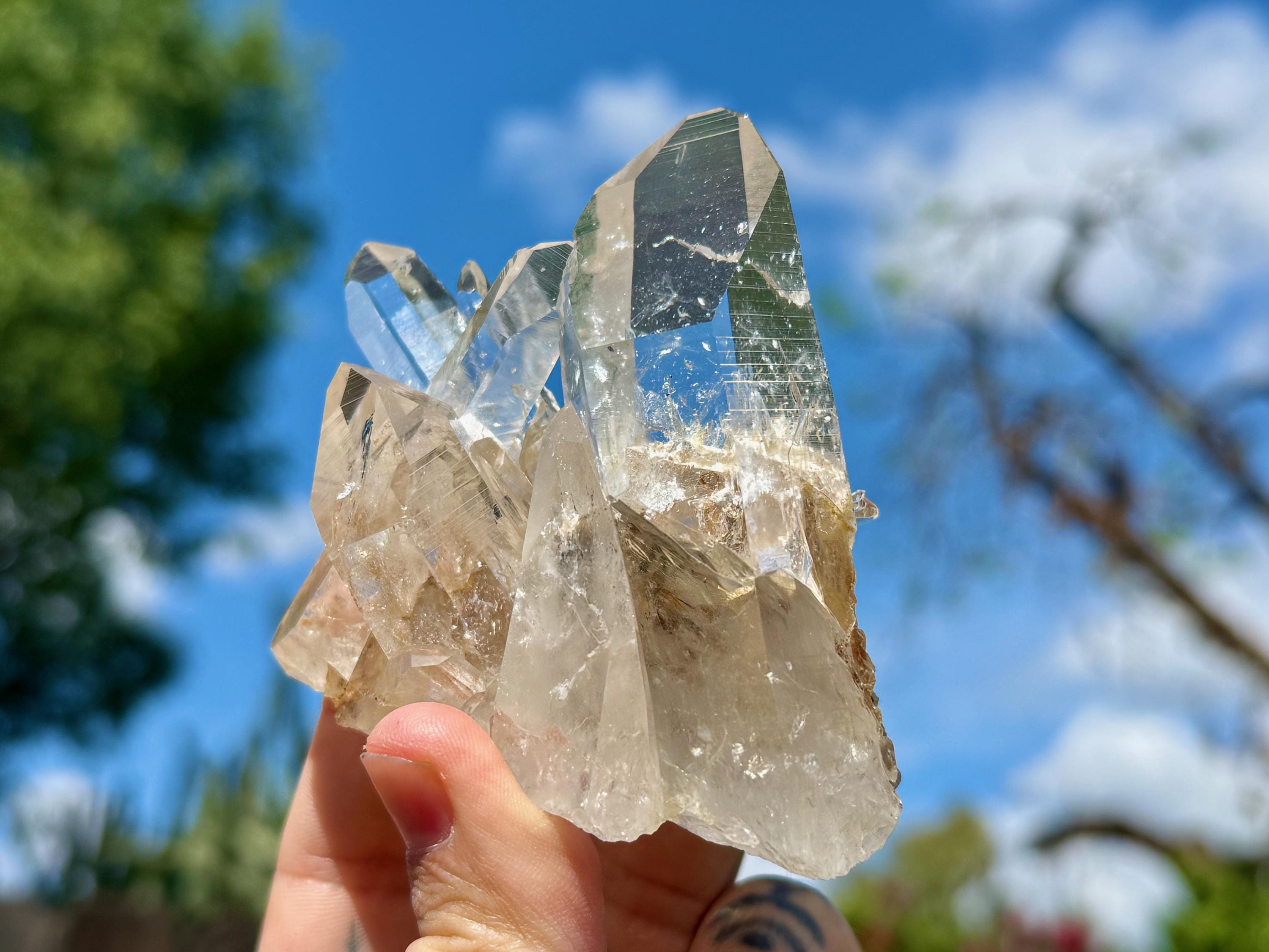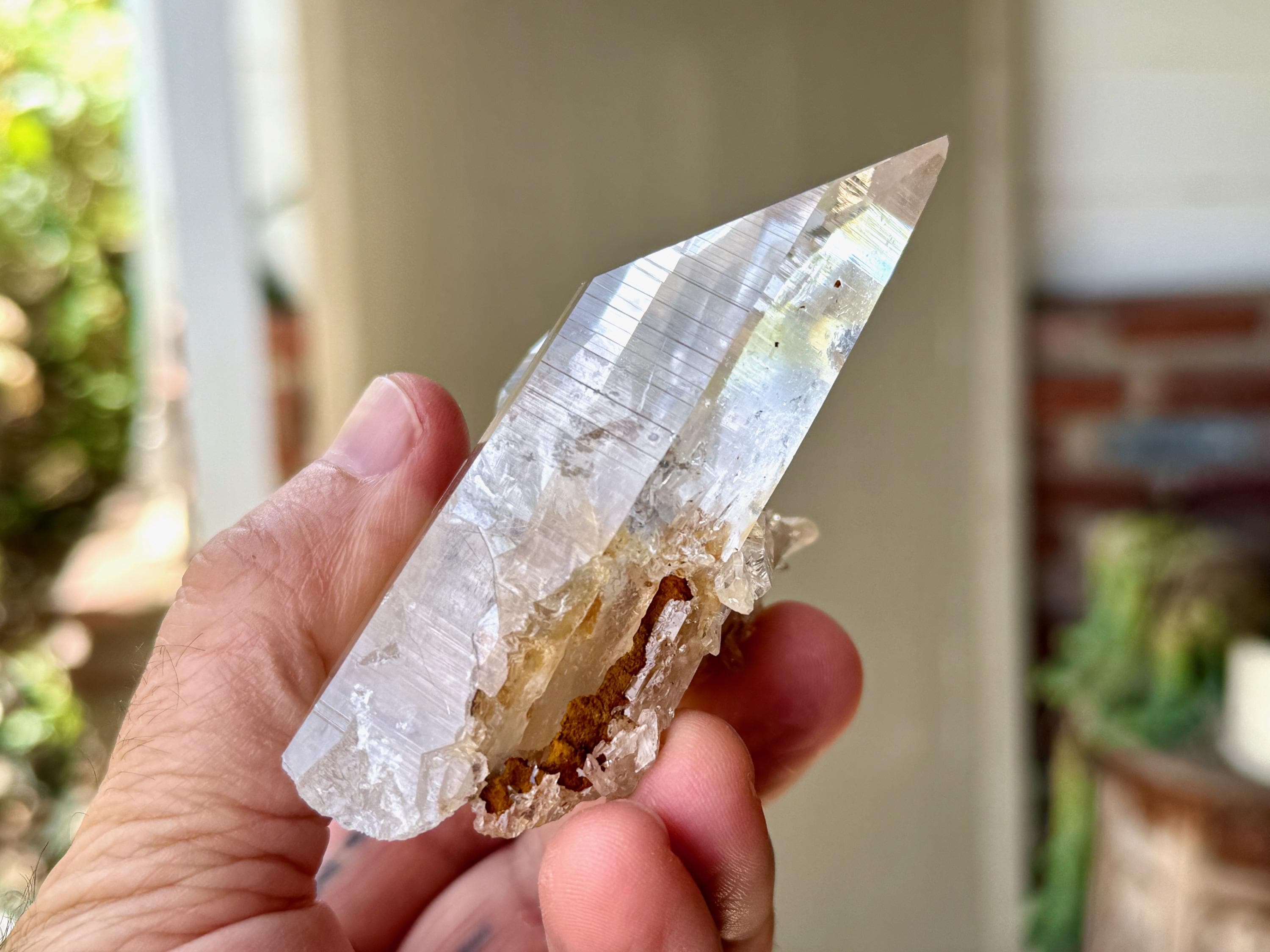 *Please note this crystal is clear and colorless. Any yellow hues in the photos are due to the natural sunlight and surrounding environment reflecting off the crystal.