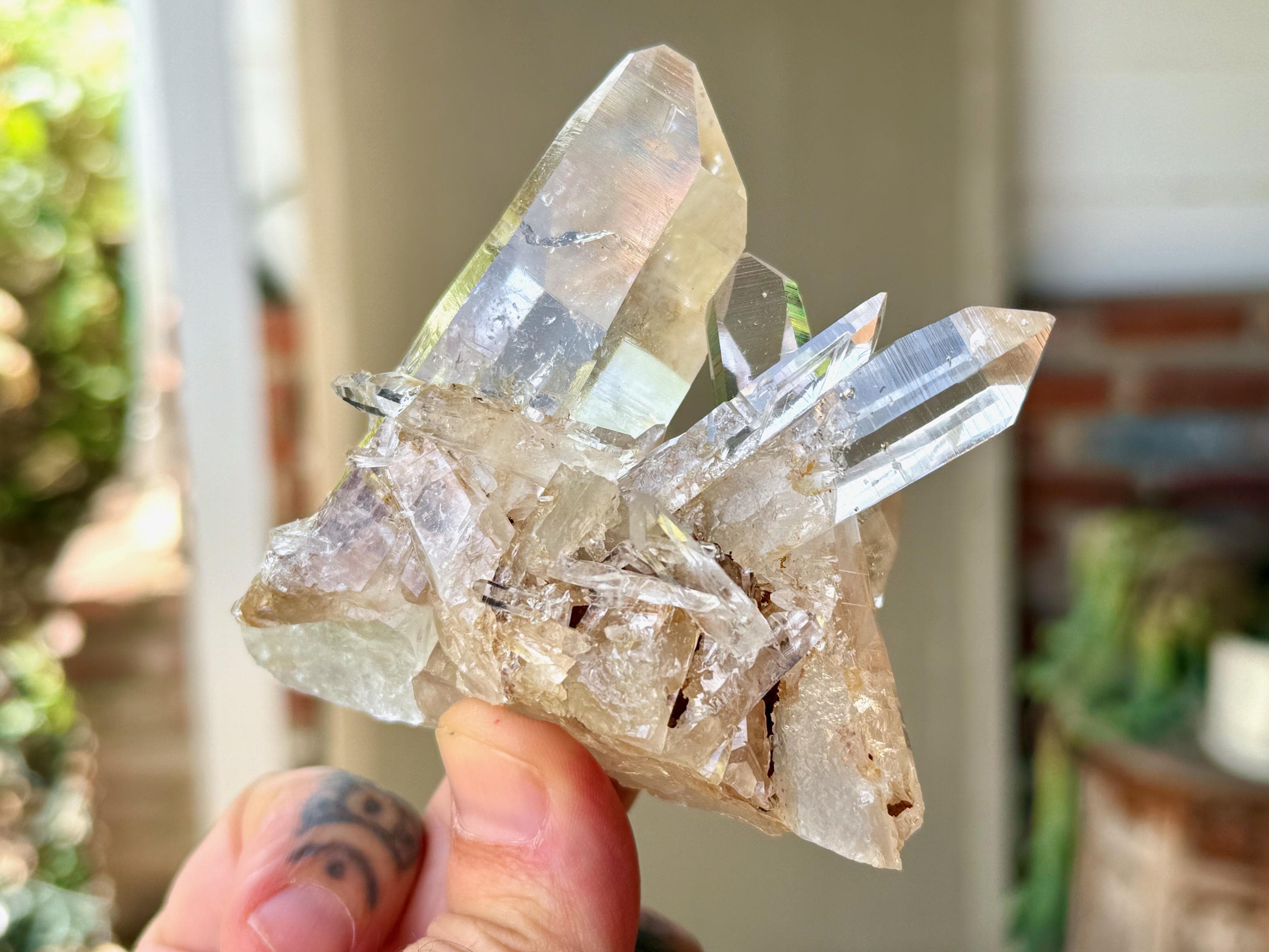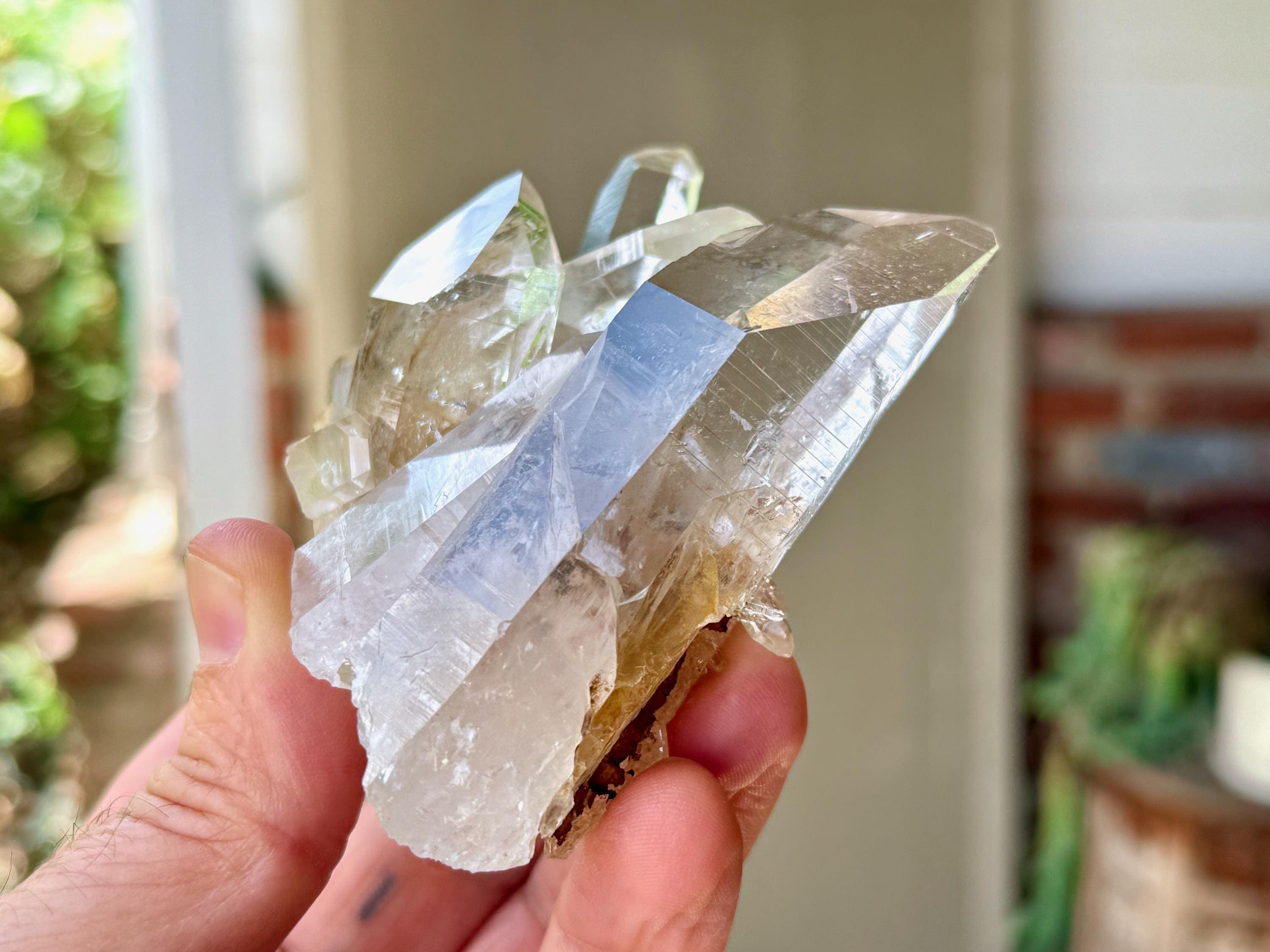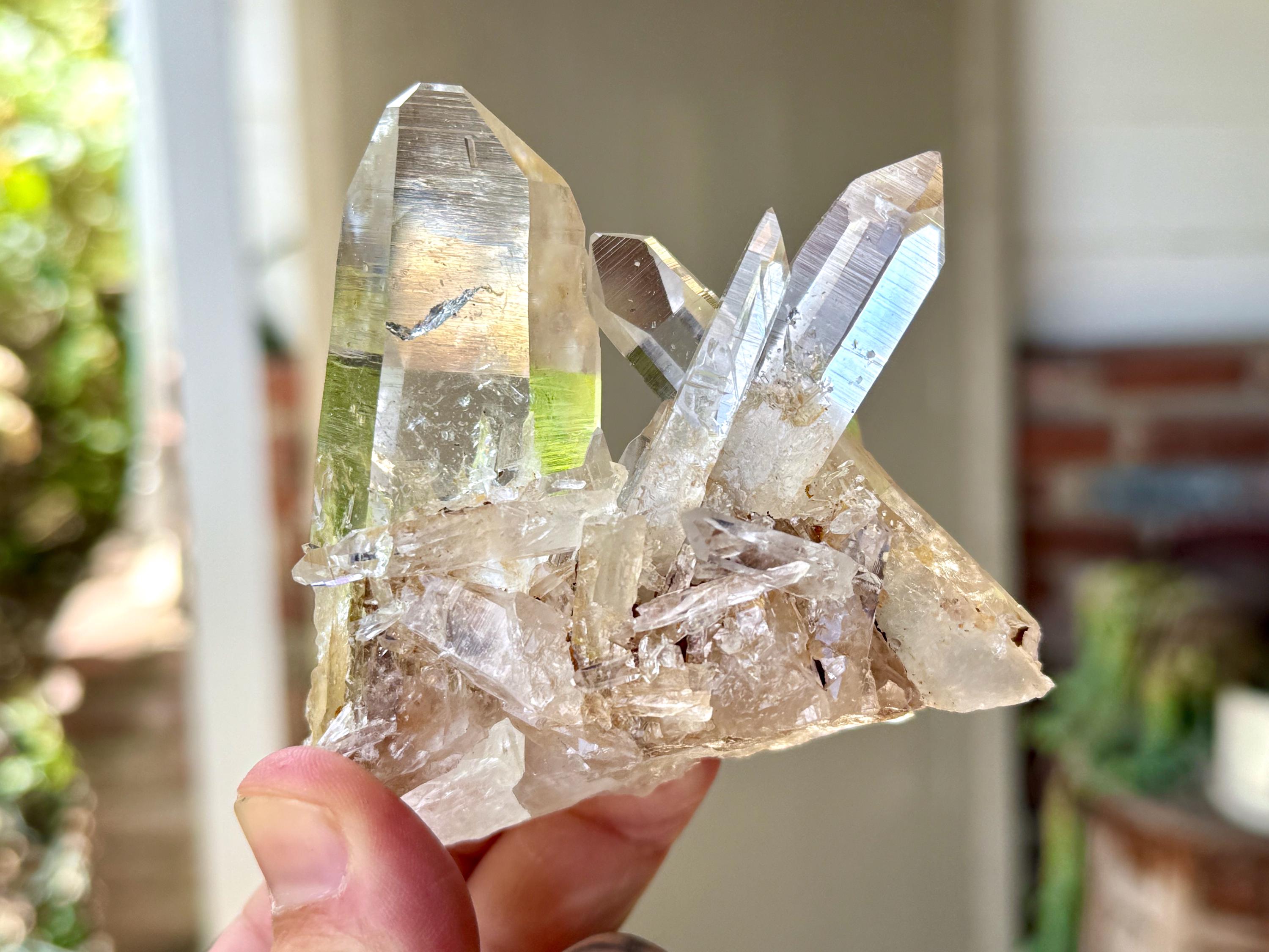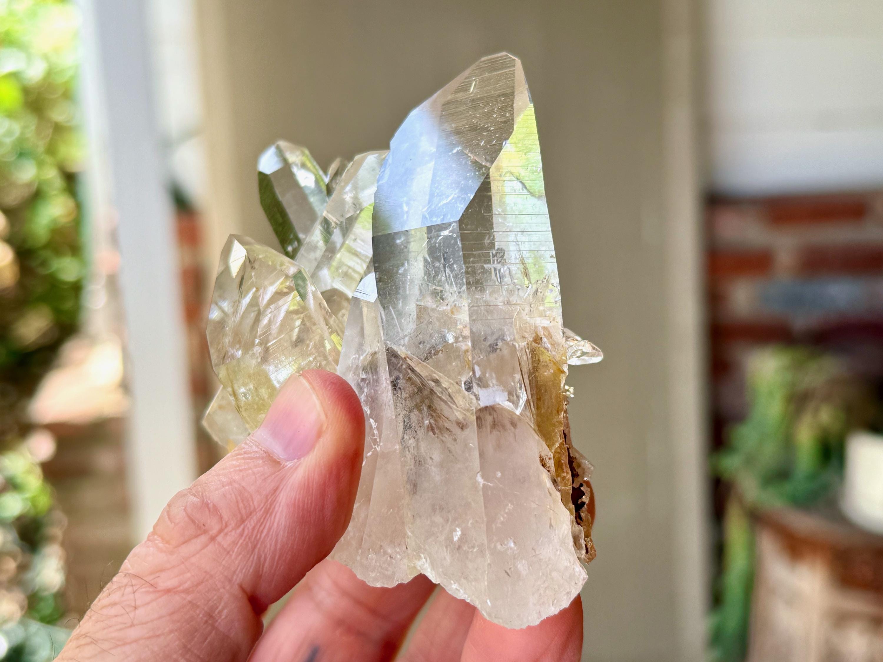 *Please note this crystal is clear and colorless. Any yellow hues in the photos are due to the natural sunlight and surrounding environment reflecting off the crystal.