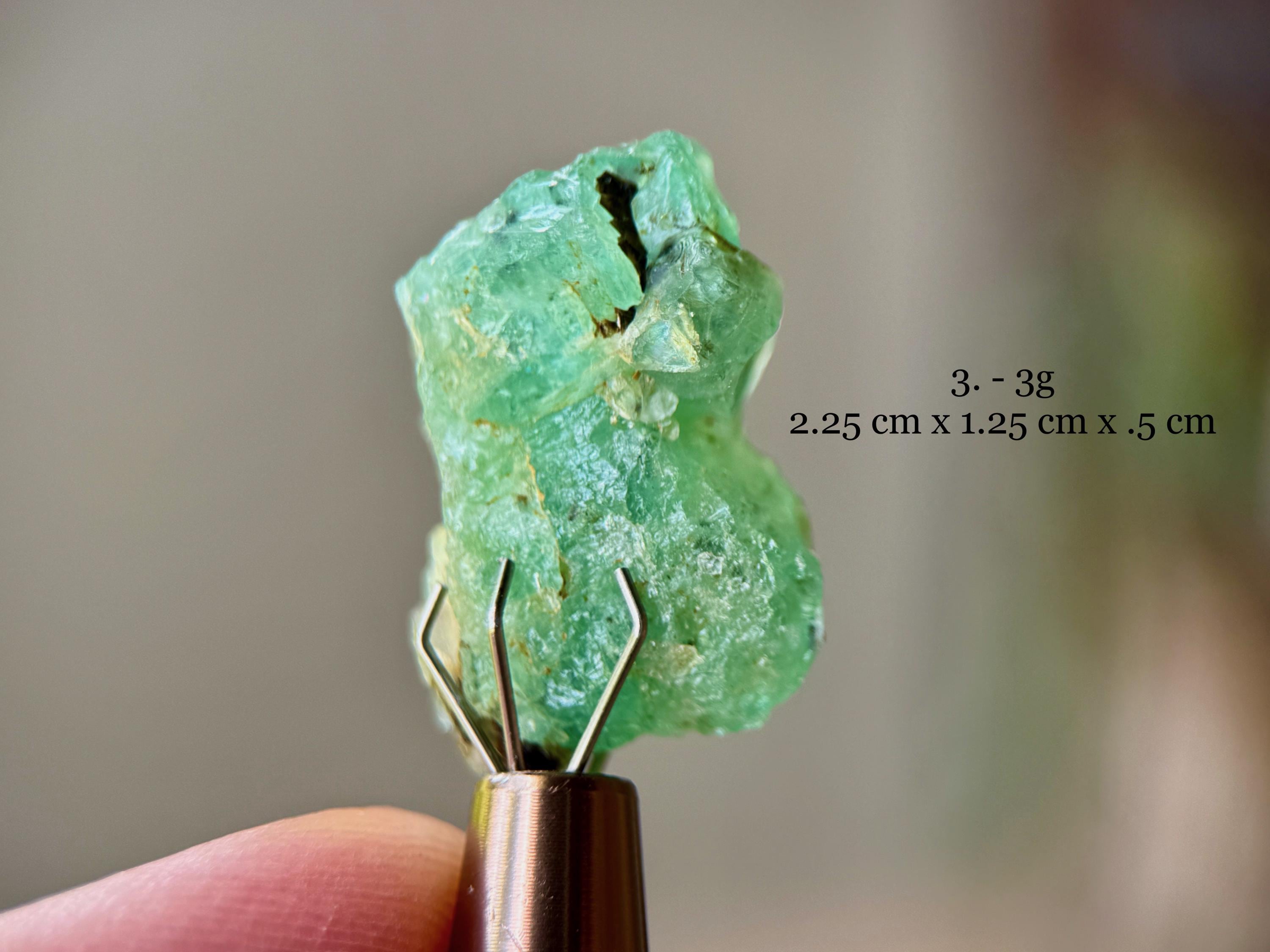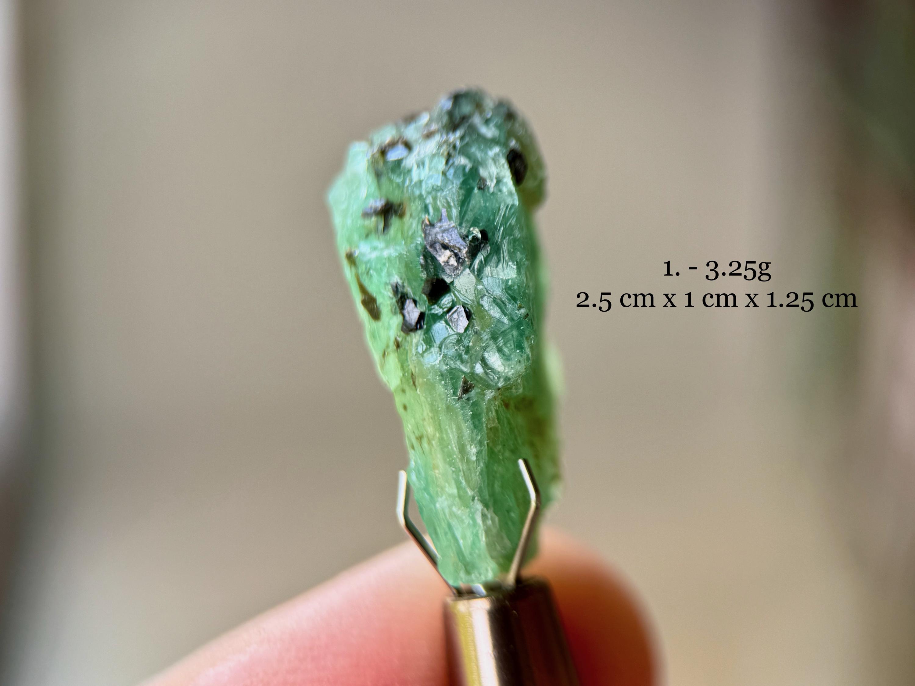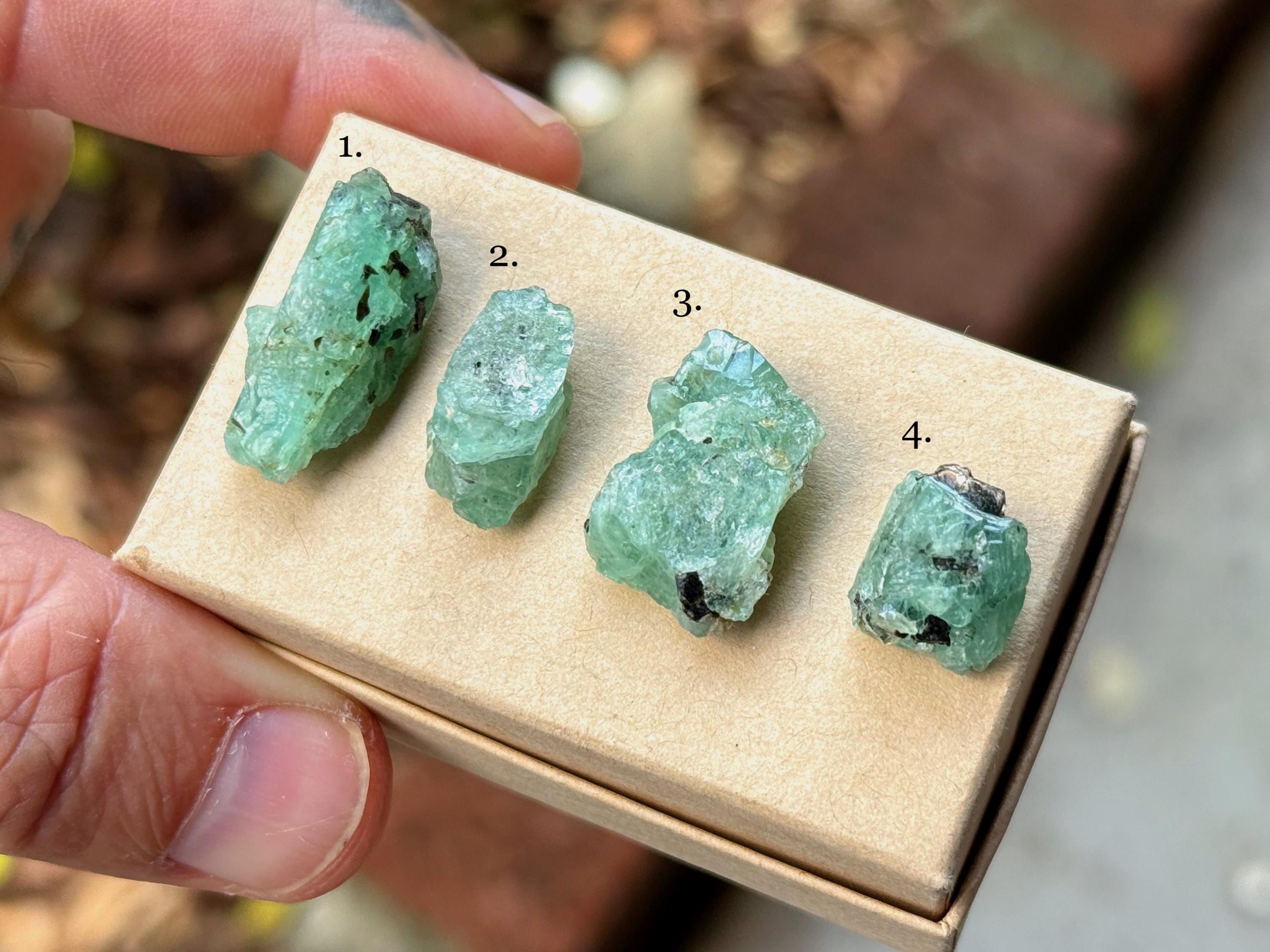 These exquisite, natural Emerald crystals come from Tanzania. Each selection is numbered, simply select your preference(s) from the dropdown menu.