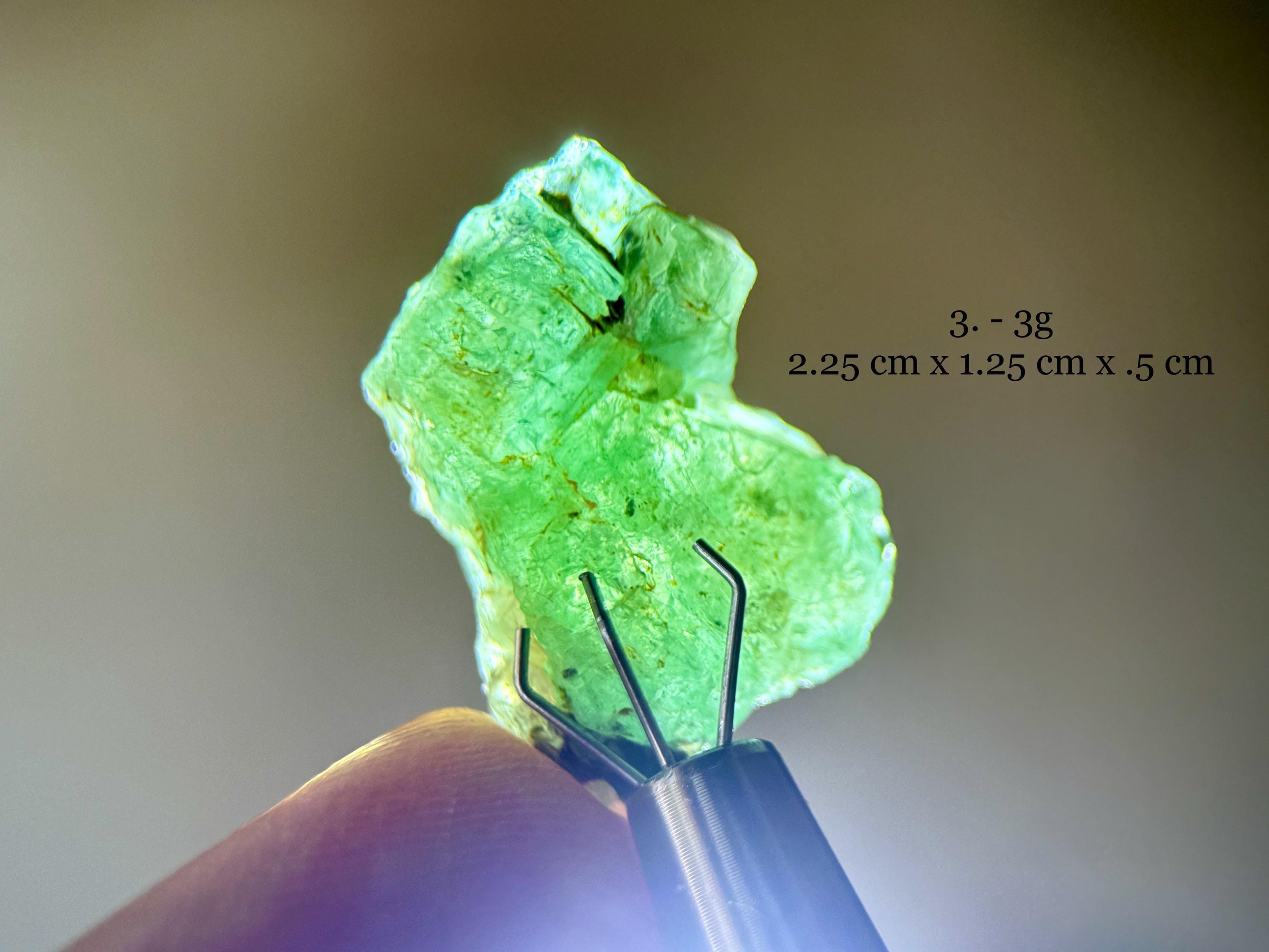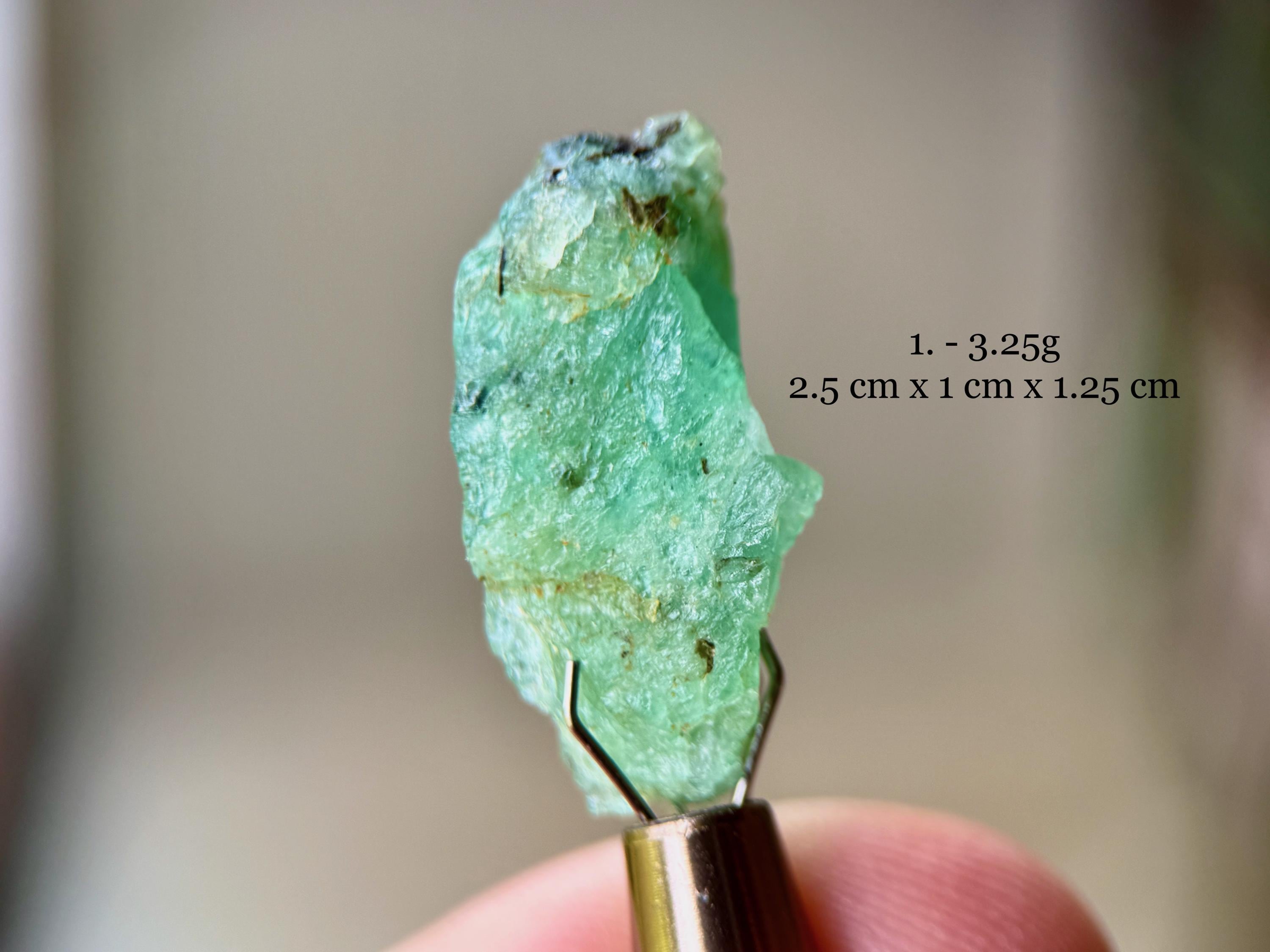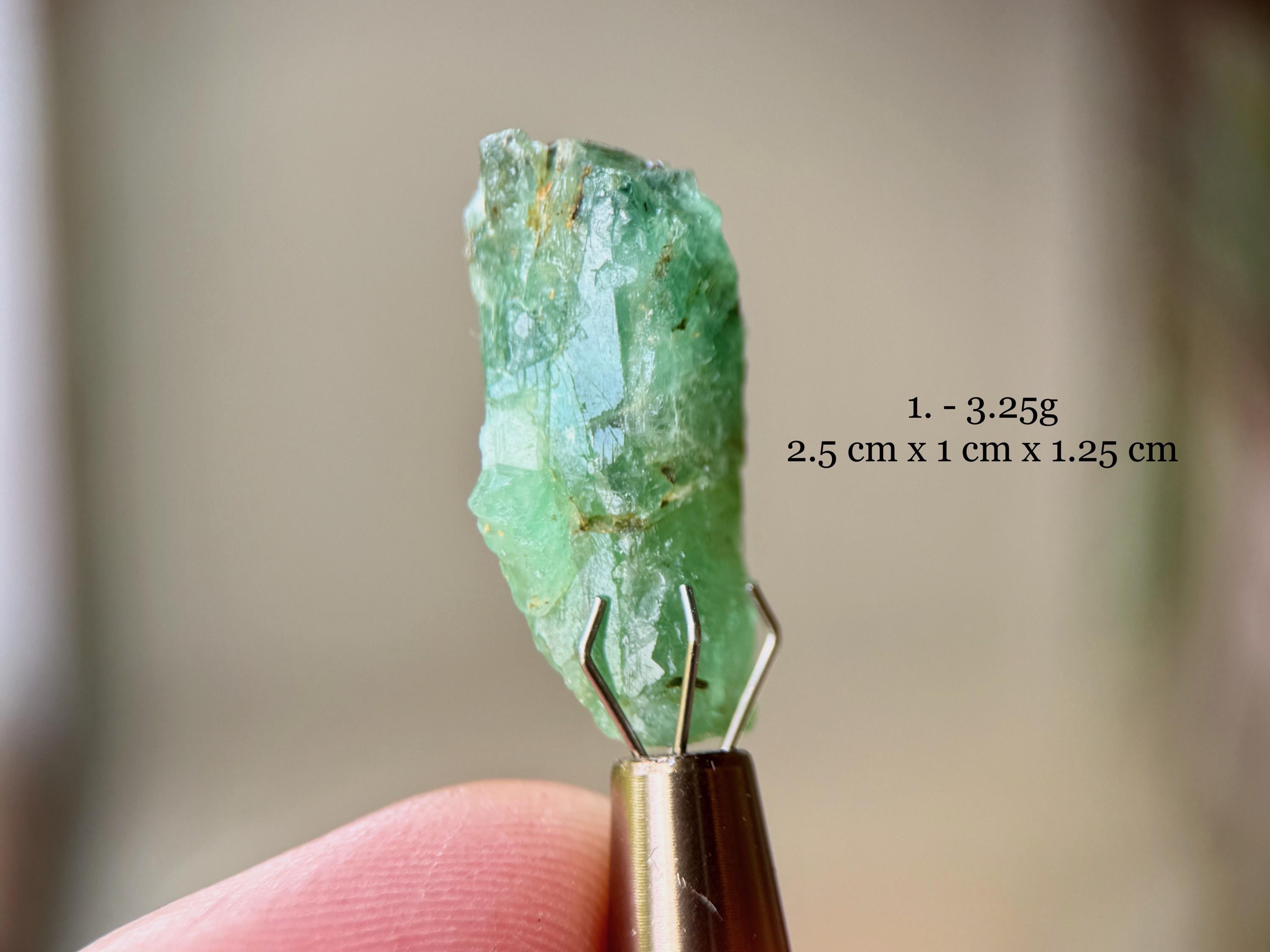 These exquisite, natural Emerald crystals come from Tanzania. Each selection is numbered, simply select your preference(s) from the dropdown menu.