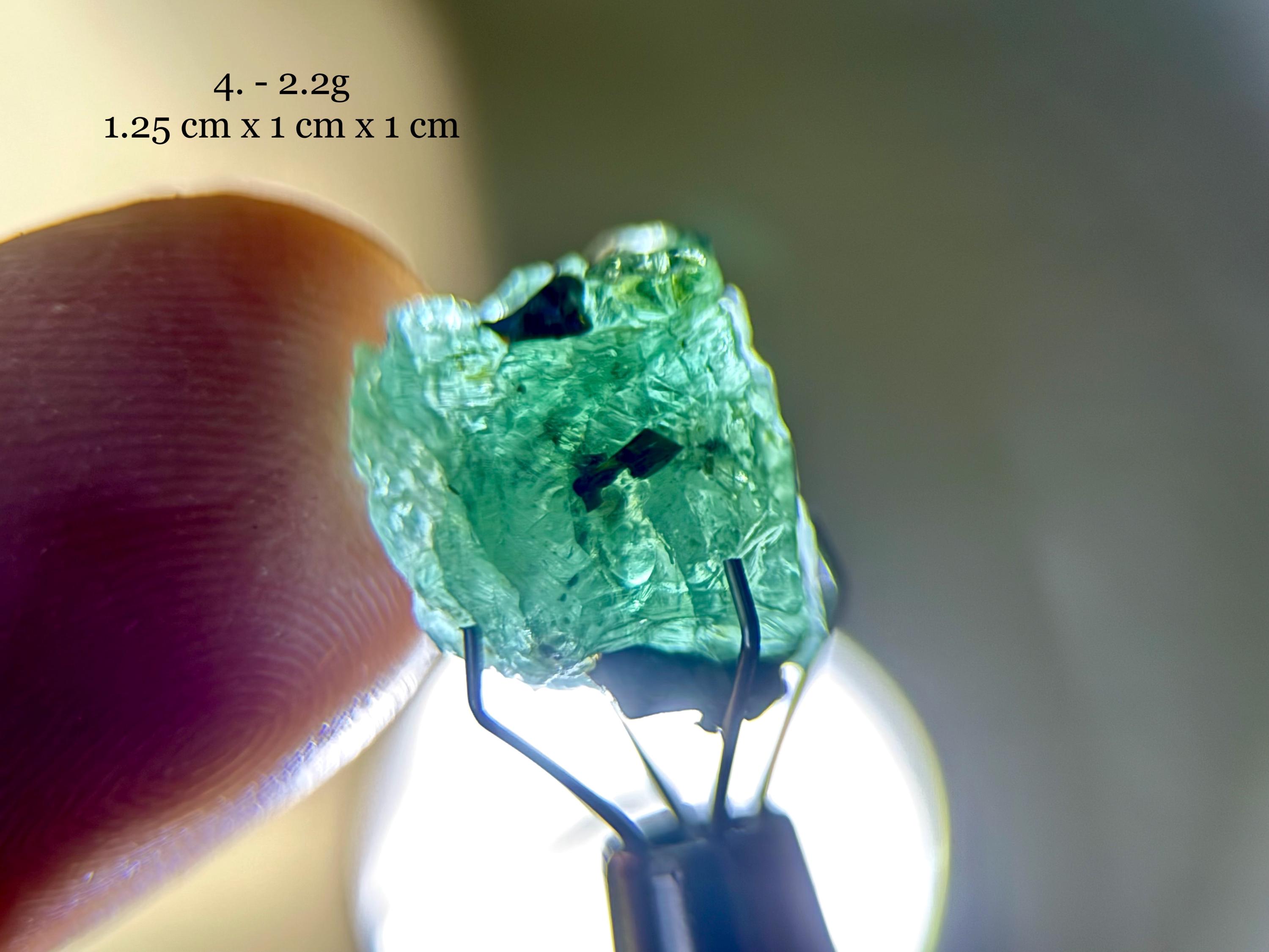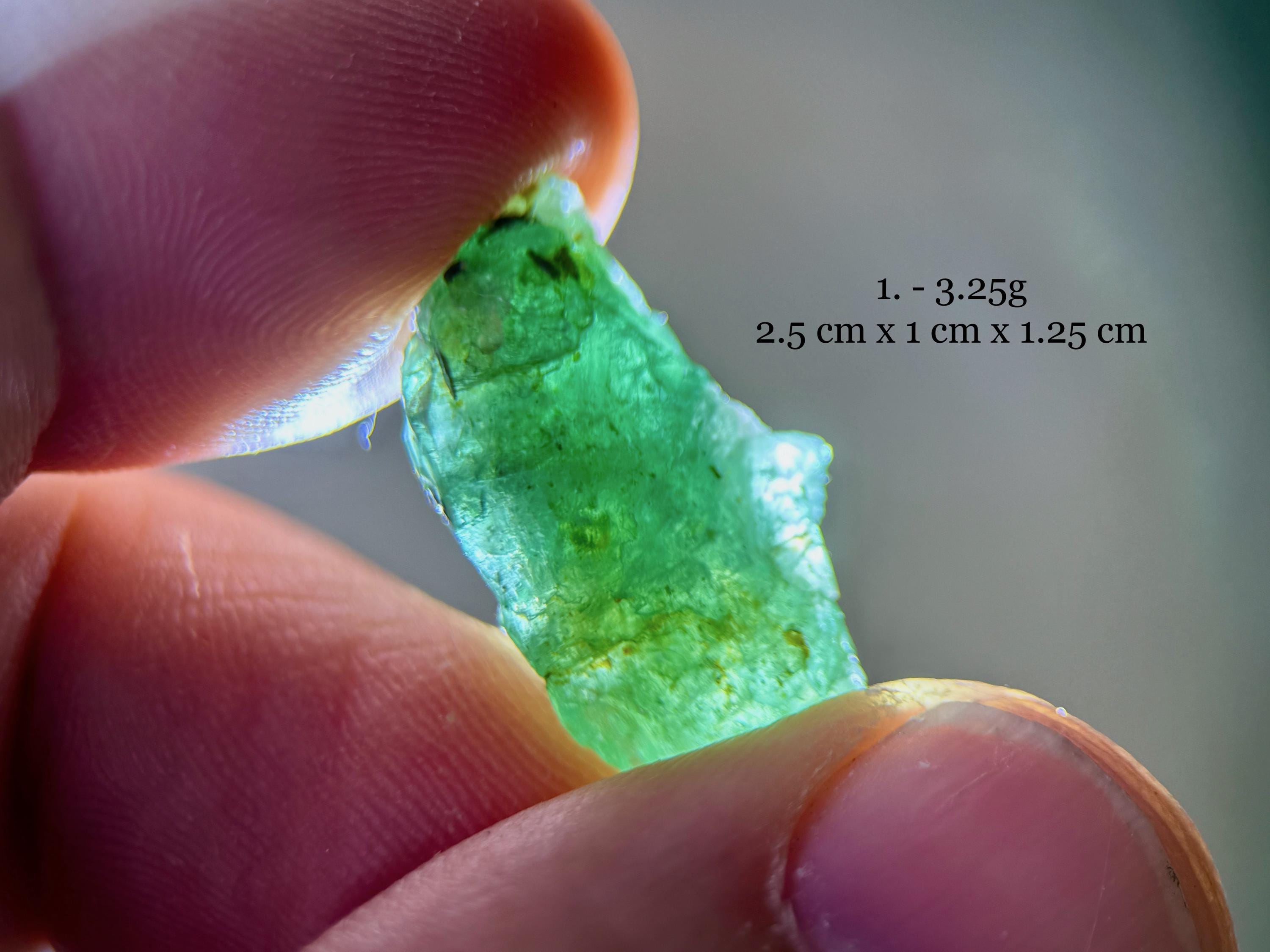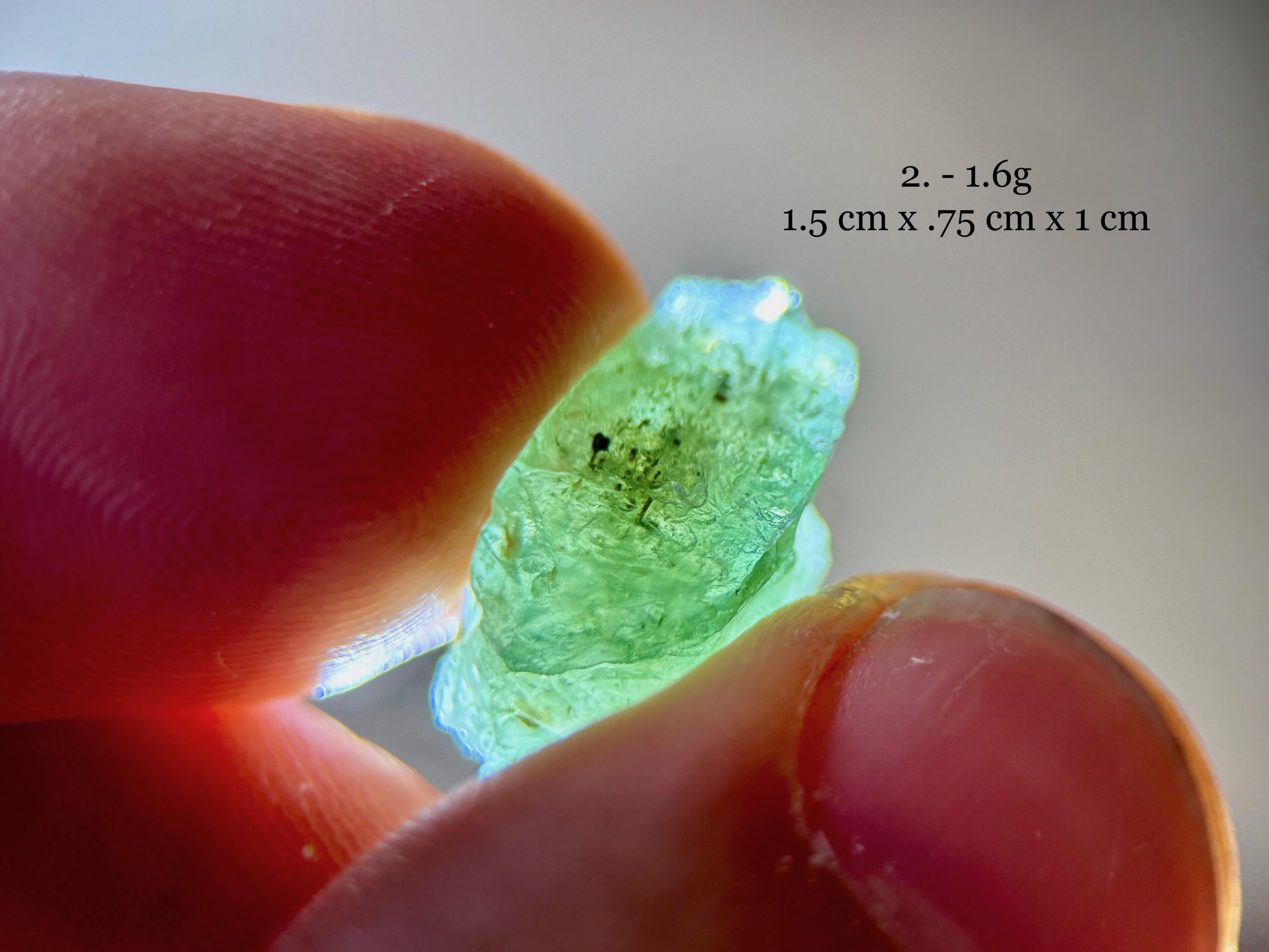 Vibrant blue-green hues and superb luster to these natural gem Emerald crystals! These are raw Emeralds in their natural formations. Each has some natural terminations (true or self-healed). We've included photos in natural light and backlit. Please note that these crystals are small and we used a macro lens to photograph them.