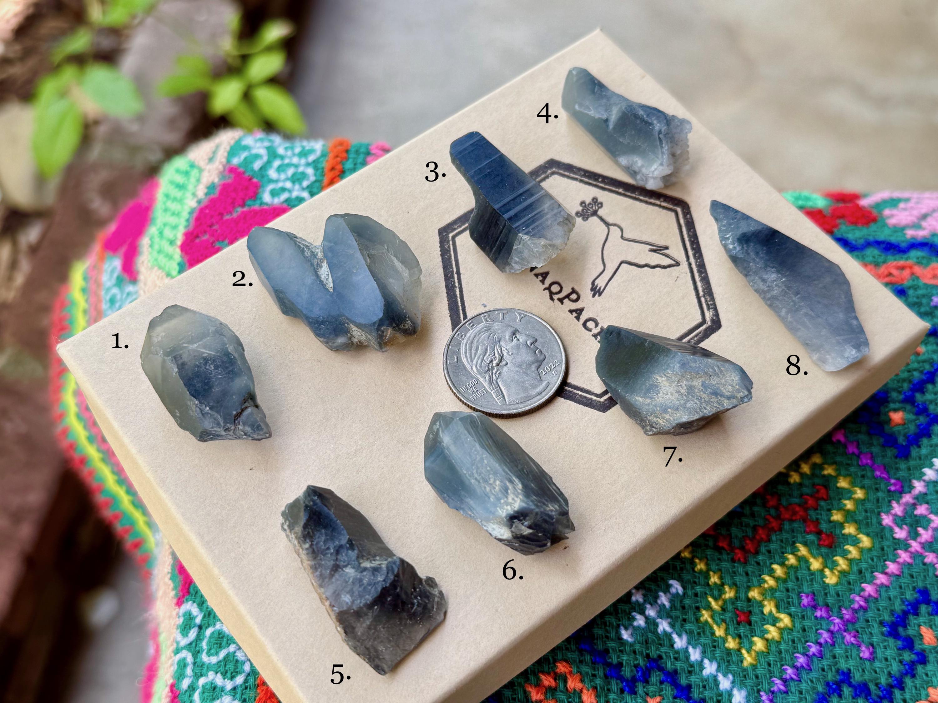 These Blue Tara Quartz crystals come from a recent find in Itacambira, Minas Gerais, Brazil. Each selection is numbered, simply select the one(s) you'd like from the dropdown.