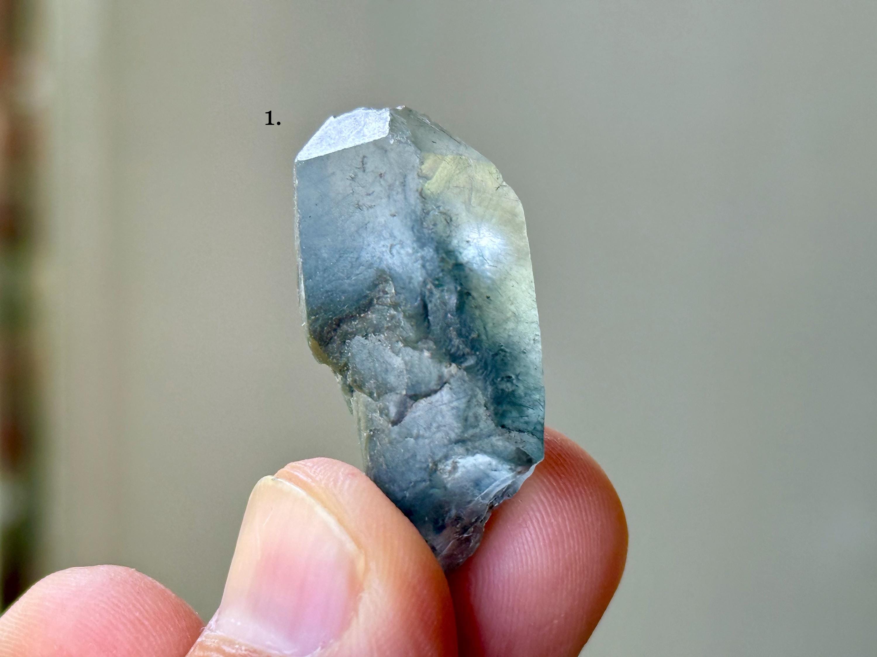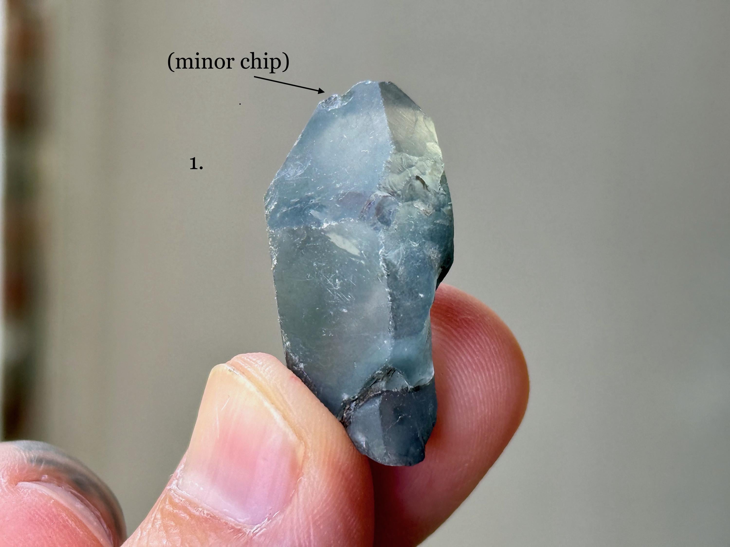 Most of these crystals do not have traditional terminations, instead having self-healed or growth interference-type terminations. All terminations are natural formations (i.e. not damaged unless noted in photo). Most of these crystals also feature self-healed portions or contact areas on their back or underside.