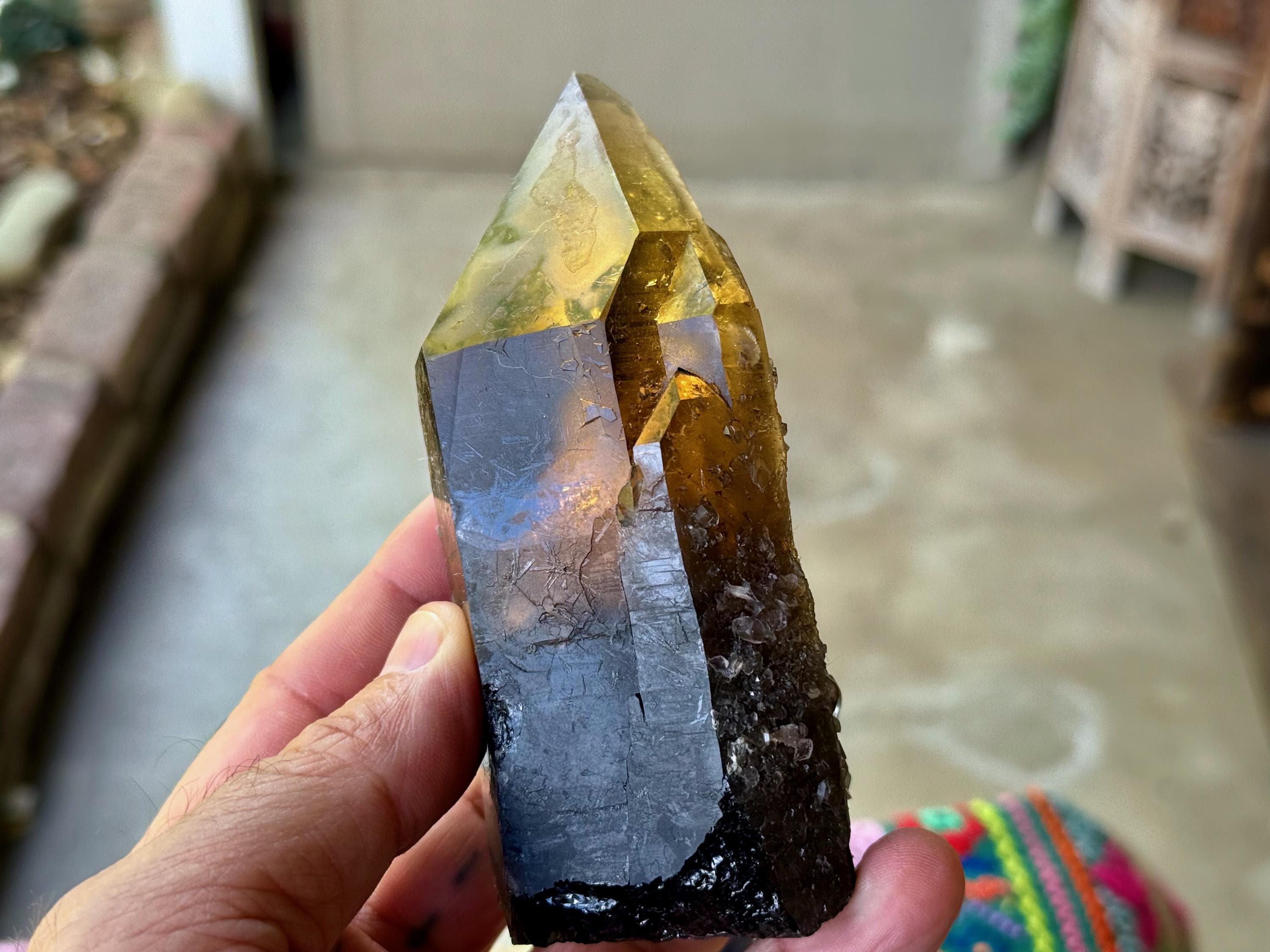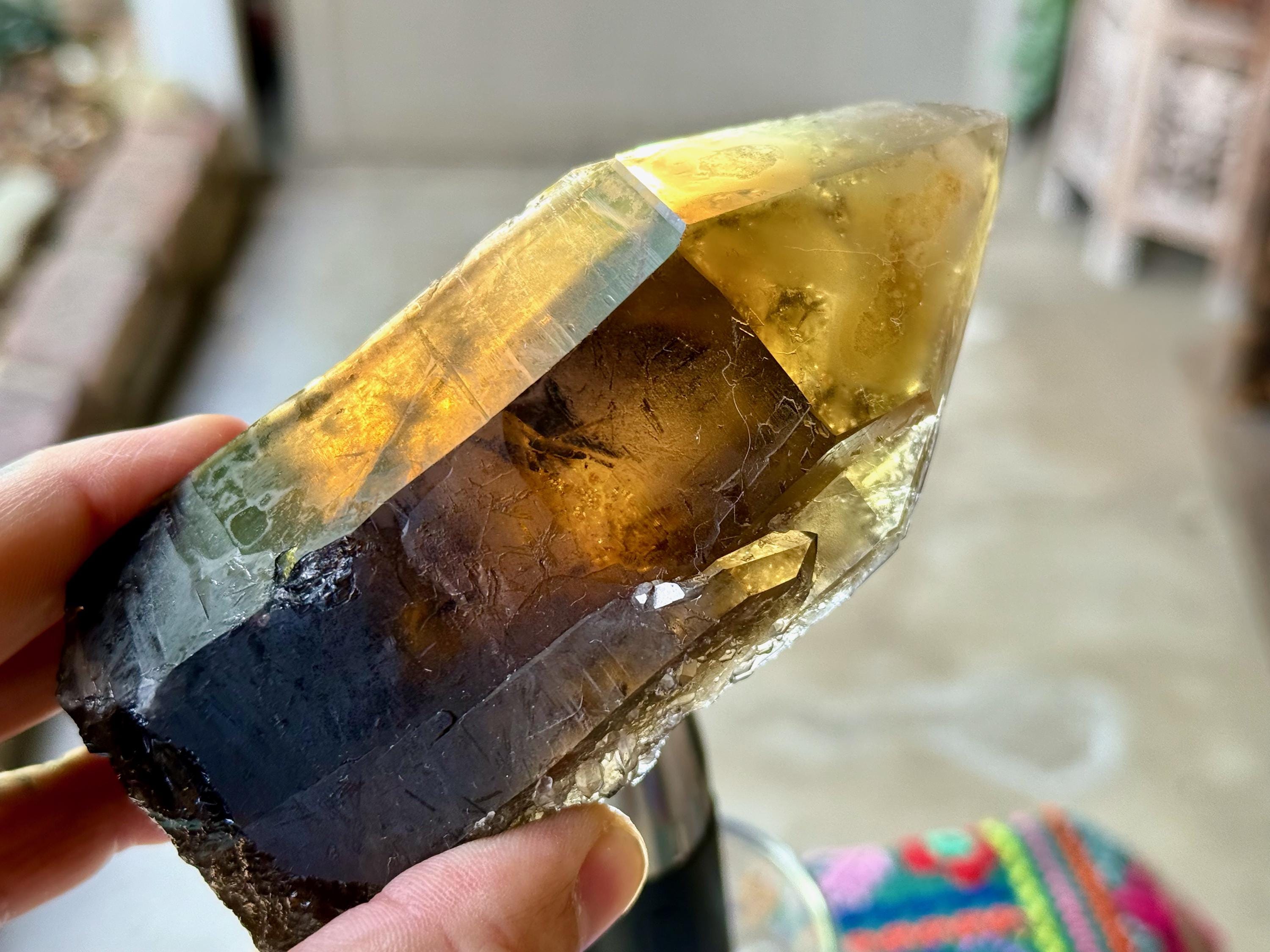 This natural Pele’s Dream Lemurian Citrine comes from a recent (2025) find in Cristalina, Goiás, Brazil.